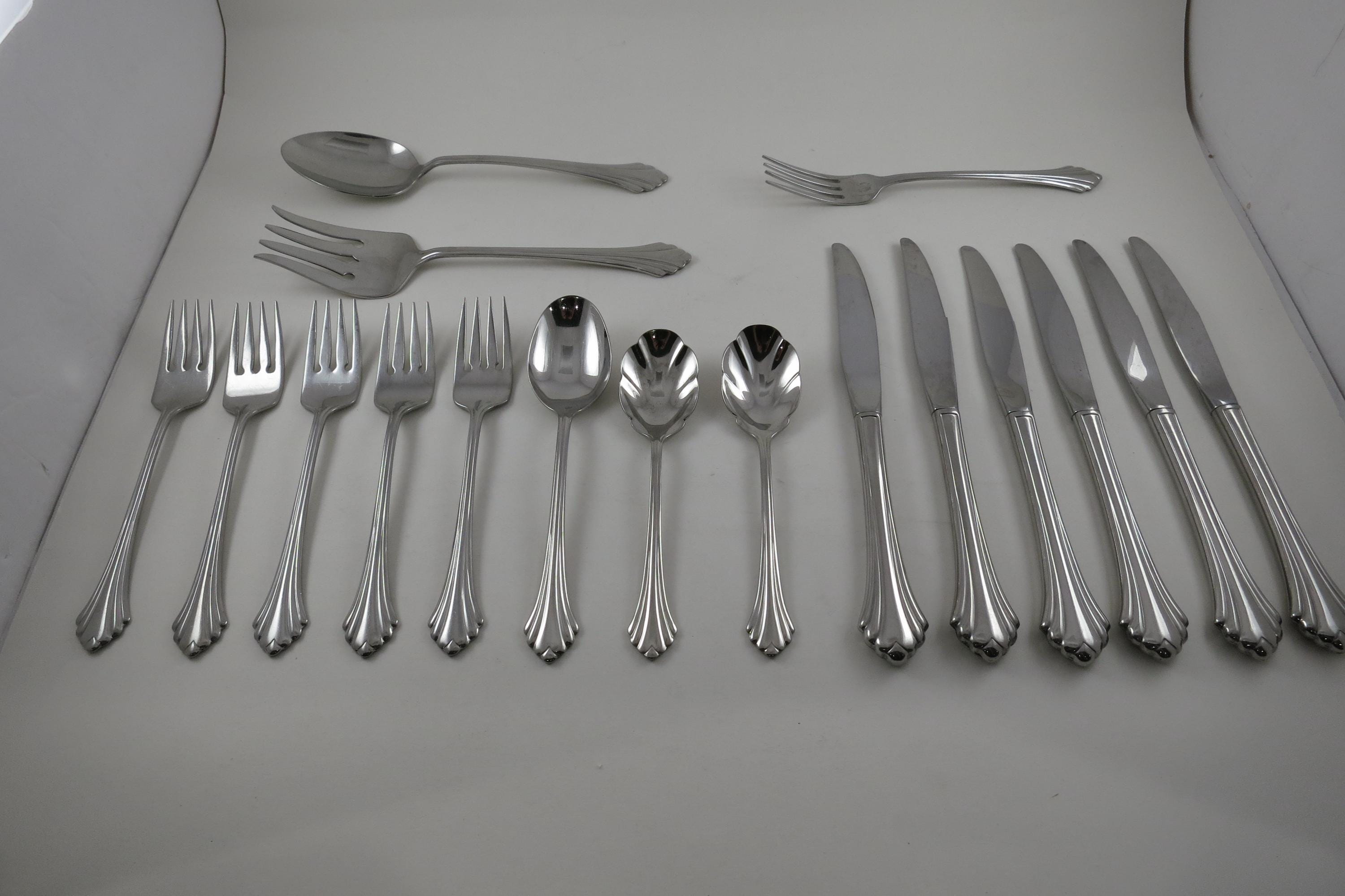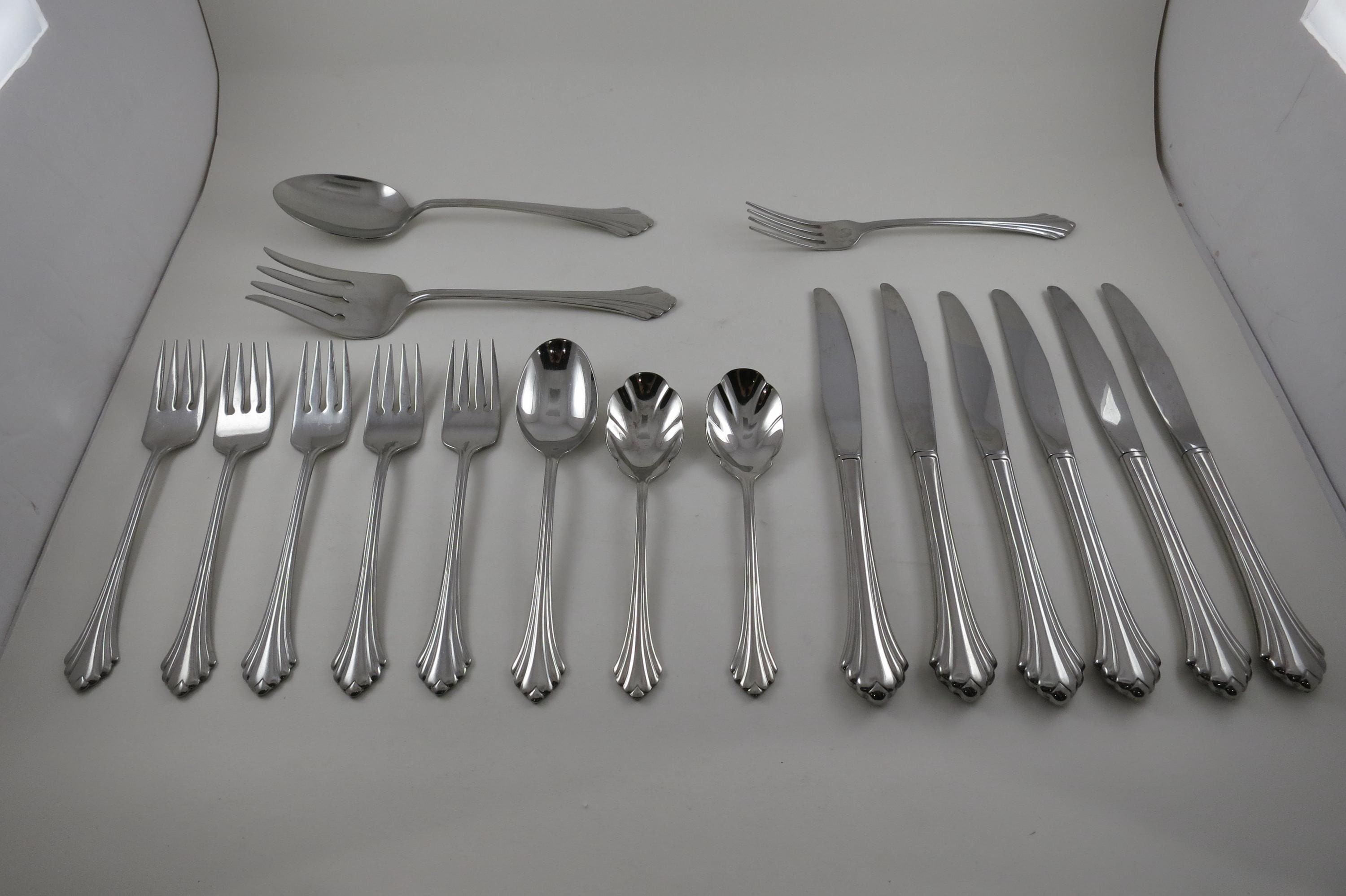 Vintage Oneida Bancroft Stainless 18/8 Flatware 17 Piece Set.
