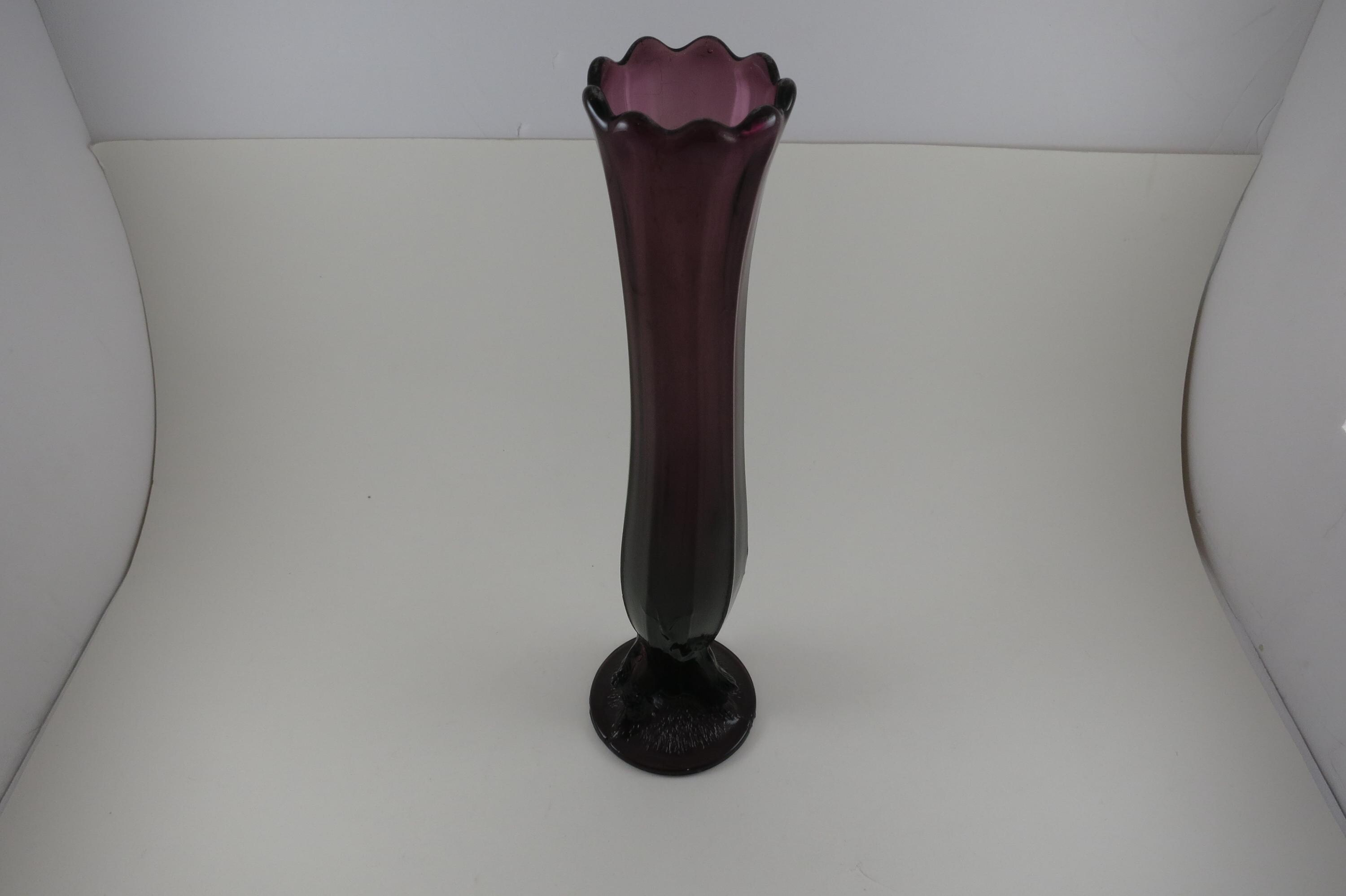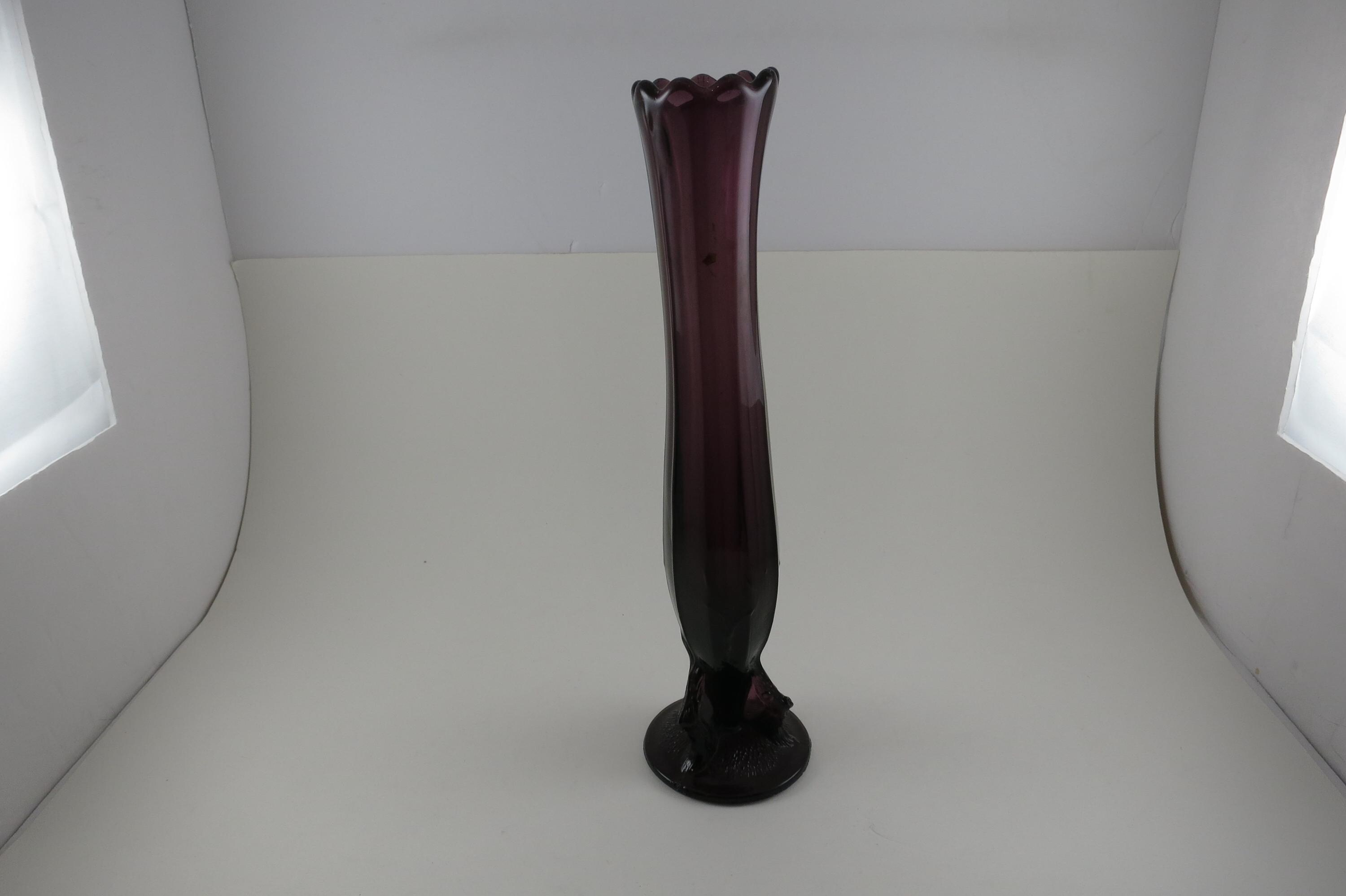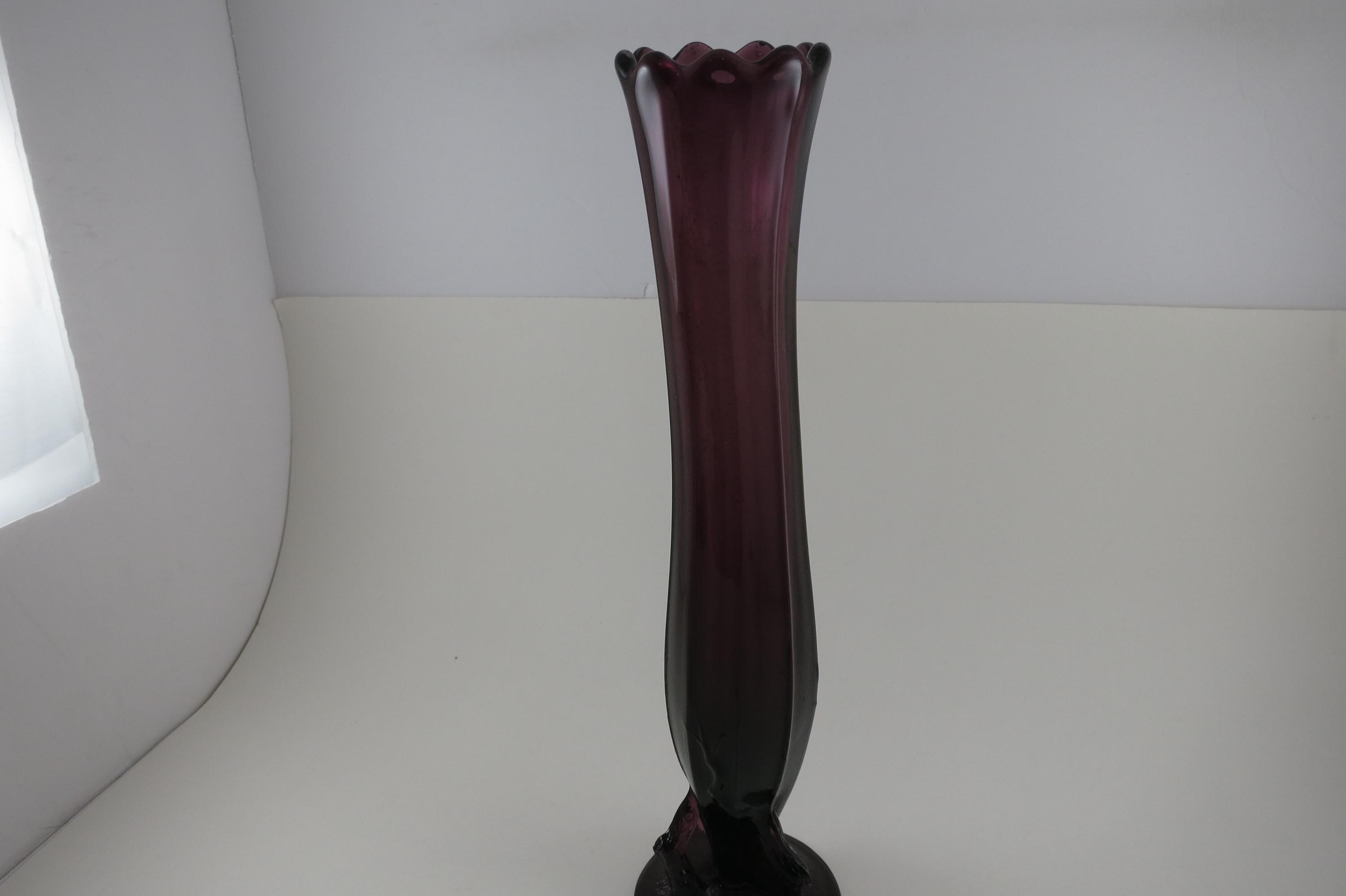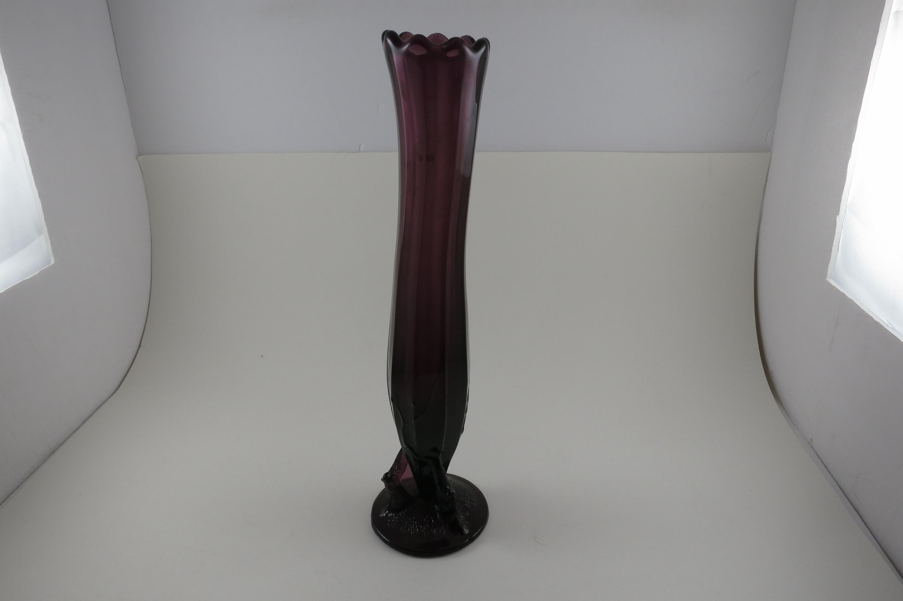 Antique Dugan Black Amethyst Twig Swung Vase 11 1/2 Inches Purple Glass.