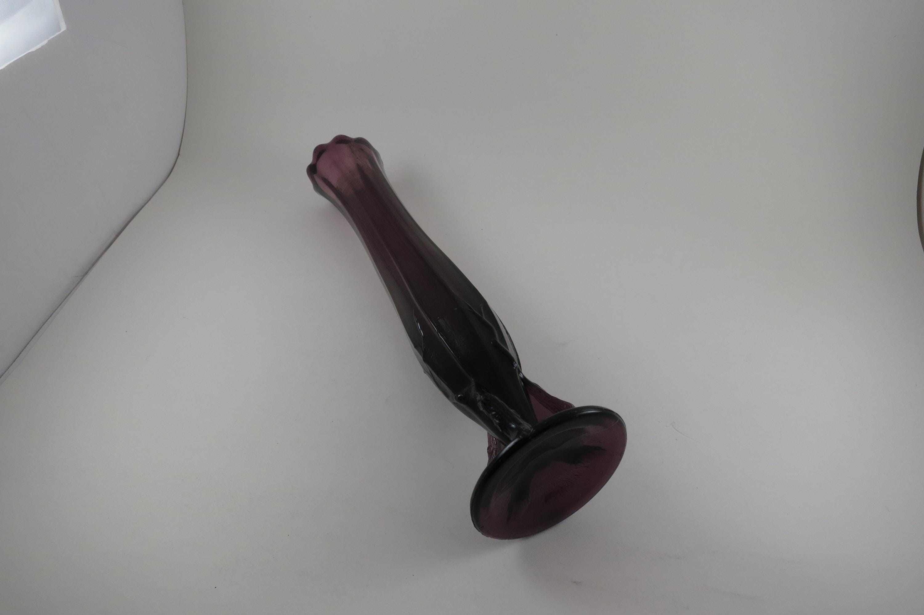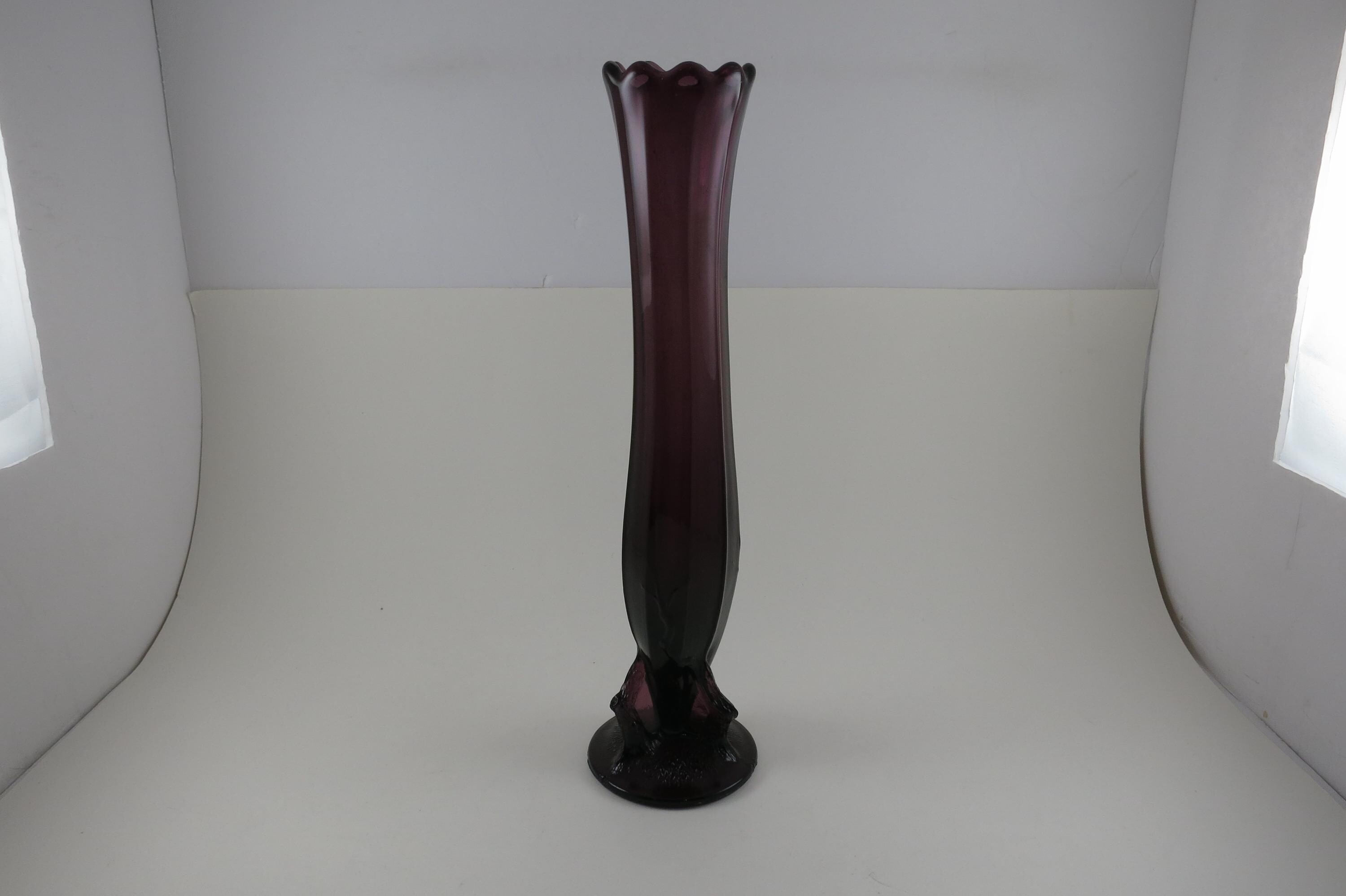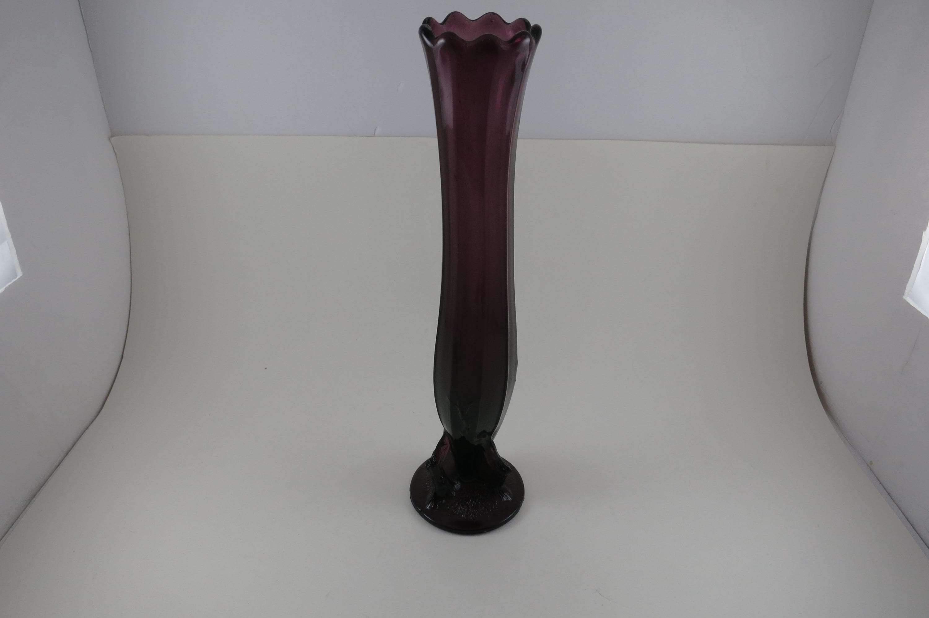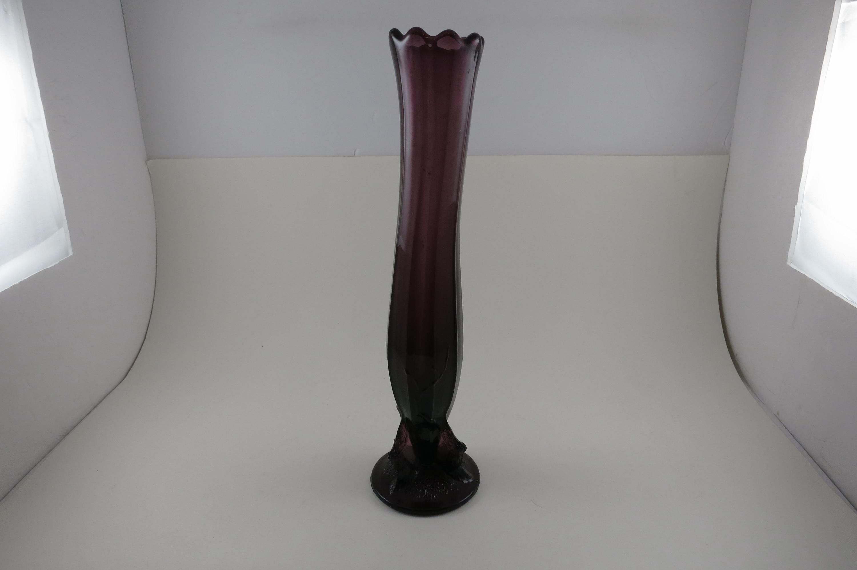 Antique Dugan Black Amethyst Twig Swung Vase 11 1/2 Inches Purple Glass.