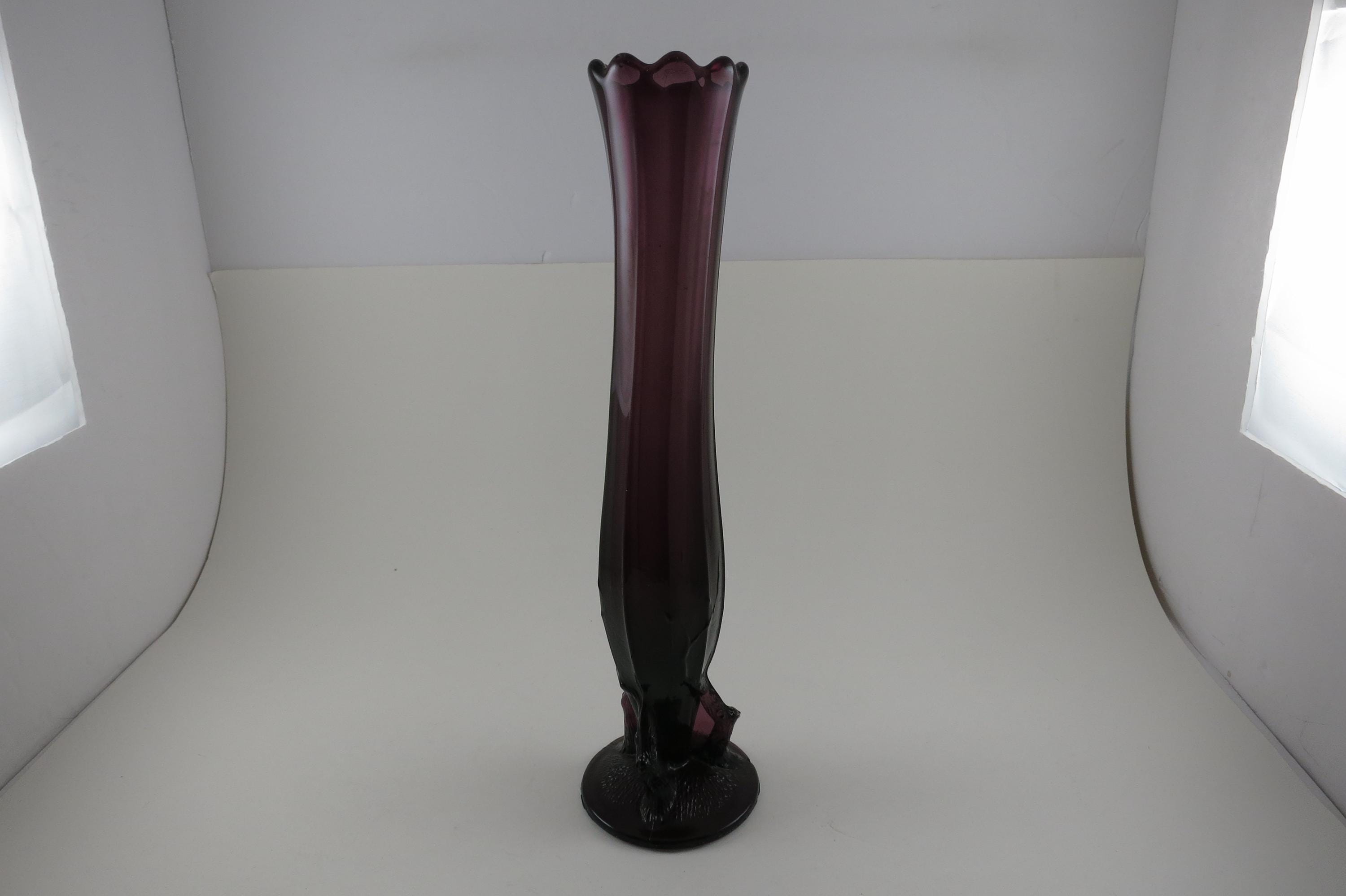 Antique Dugan Black Amethyst Twig Swung Vase 11 1/2 Inches Purple Glass