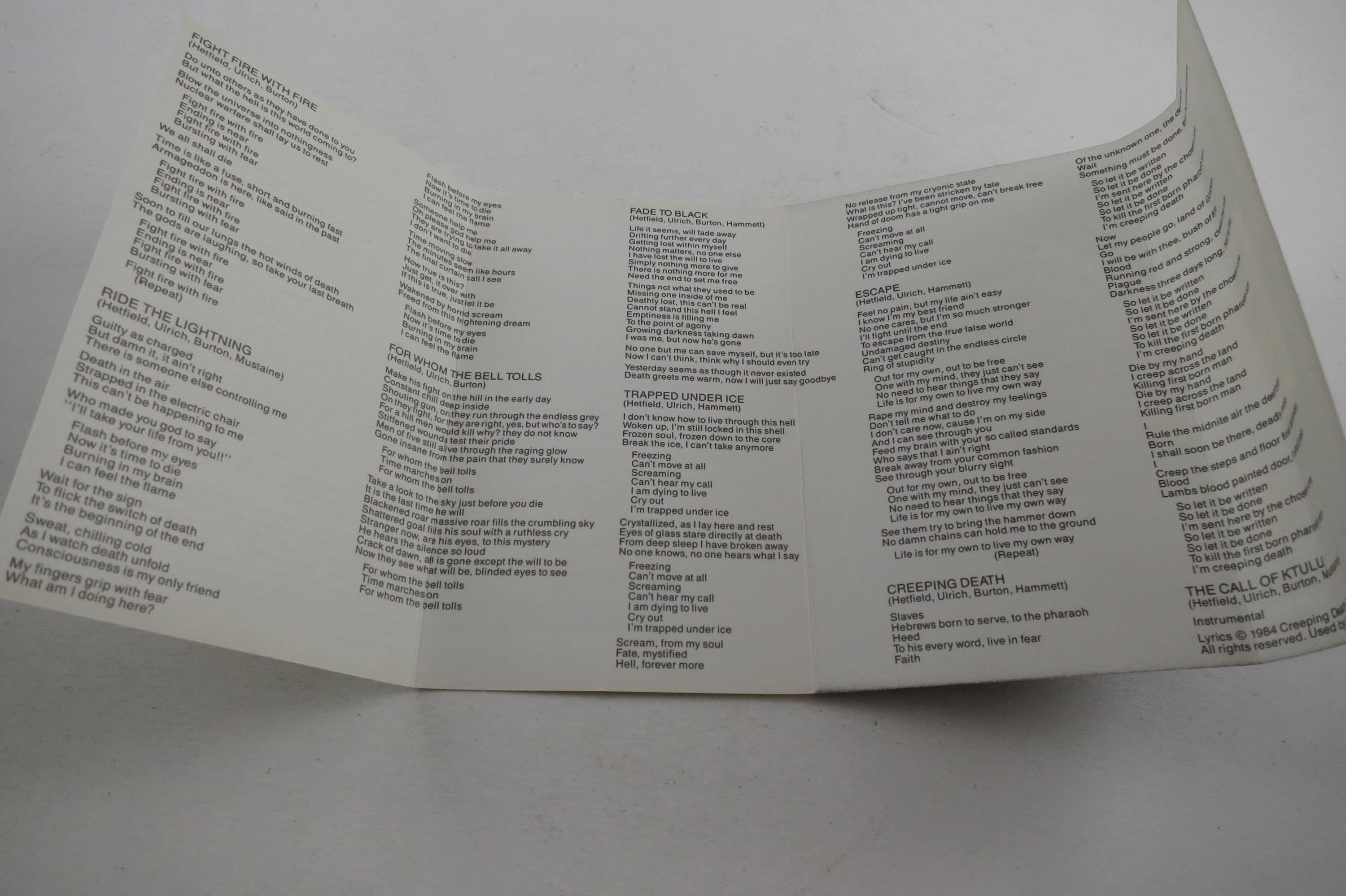 Vintage 1986 Cassette Tape Ride The Lightning Metallica. Very well preserved and in fabulous condition! Tracks are as follows