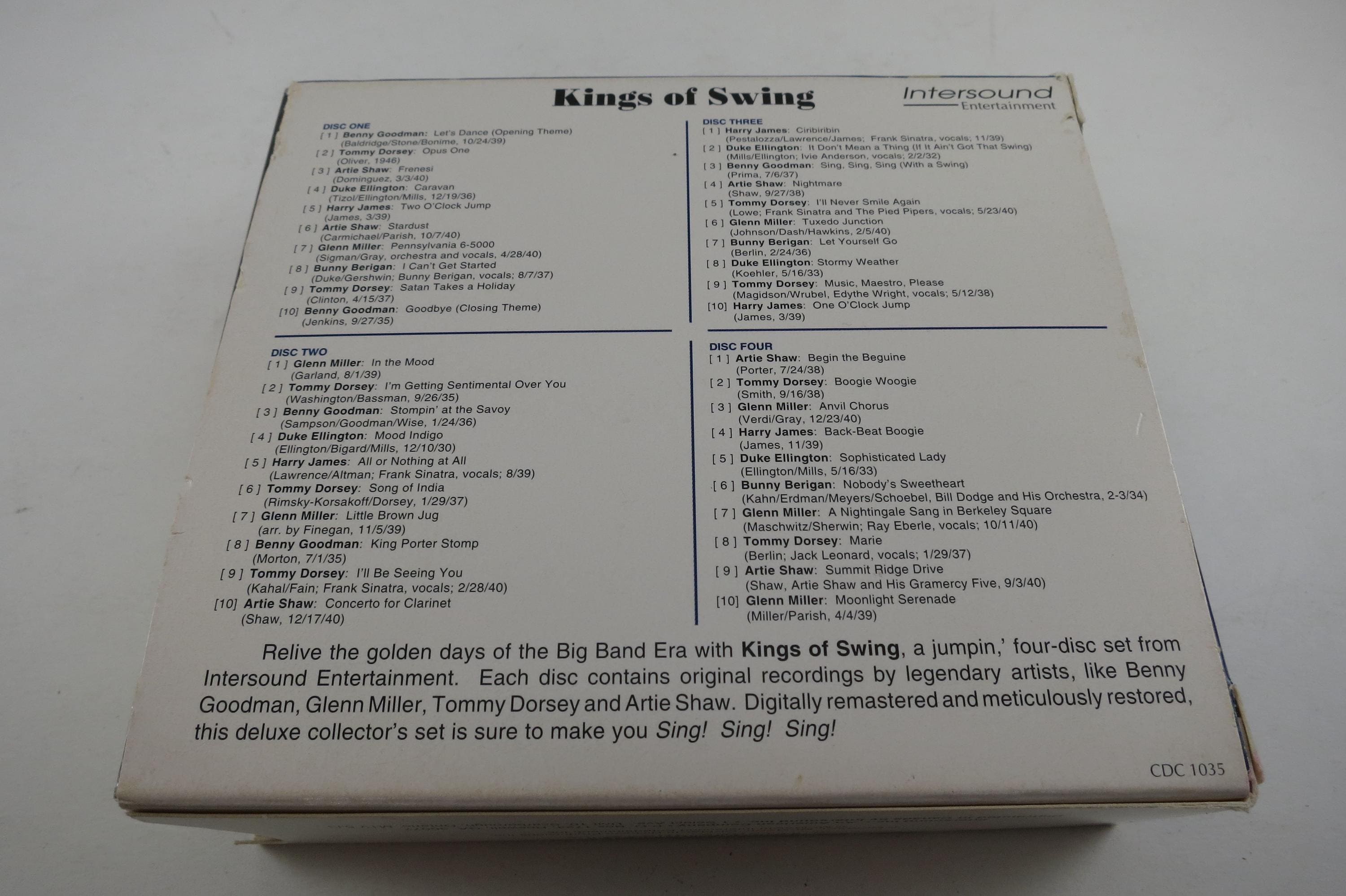 1993 Jazz CD Box Set Kings of Swing 4 Disc Set. Slip case, all four jewel cases and all four cd's are Near Mint to Mint.