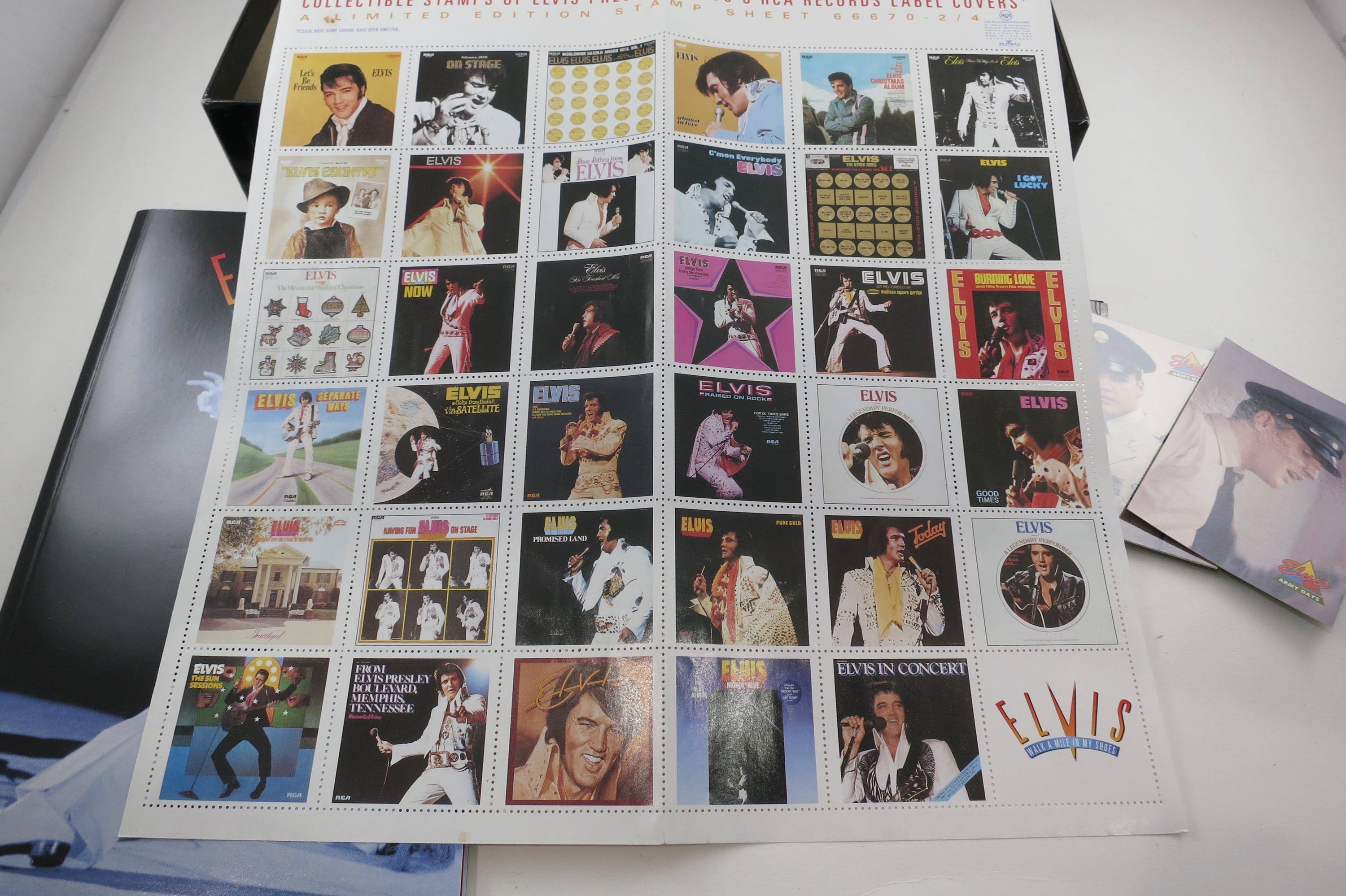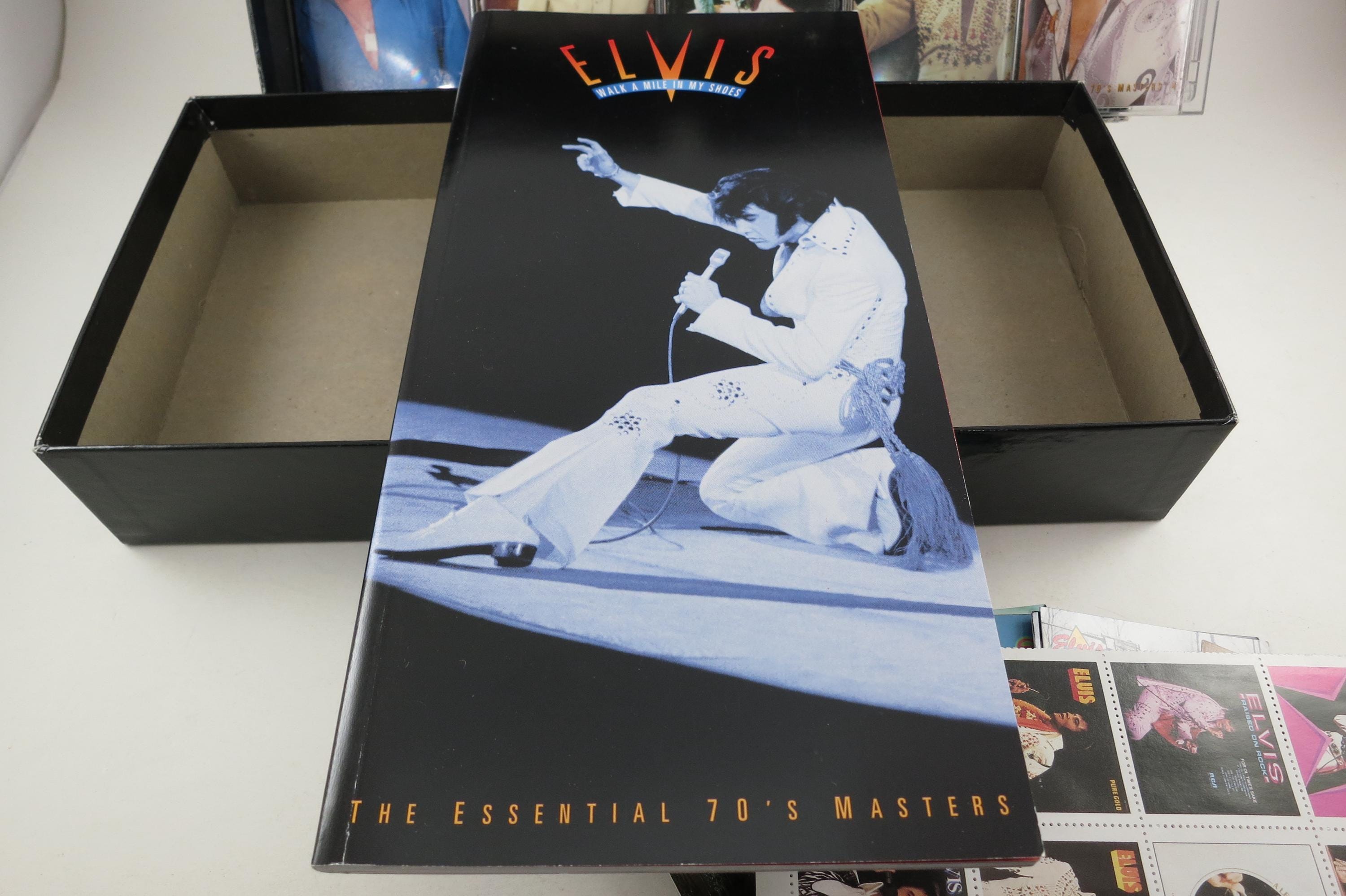 1995 Elvis Presley 5 Cassette Box Set Walk A Mile In My Shoes Elvis Presley with Cards Stamps Essential 70's Masters. Set includes 5 cassettes, a stamp sheet and 12 Elvis Trading cards. All are in excellent condition. Box is in very good condition.