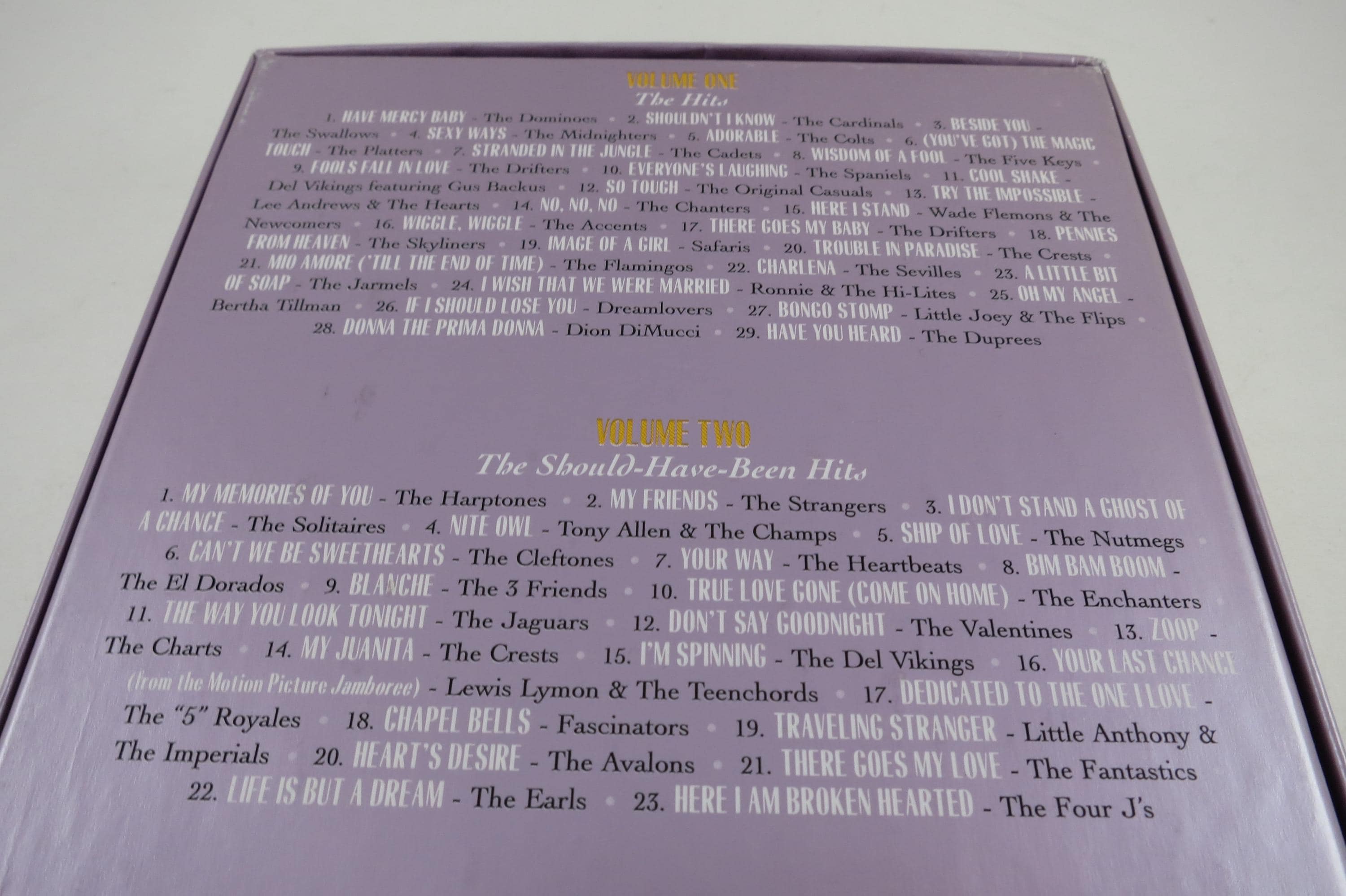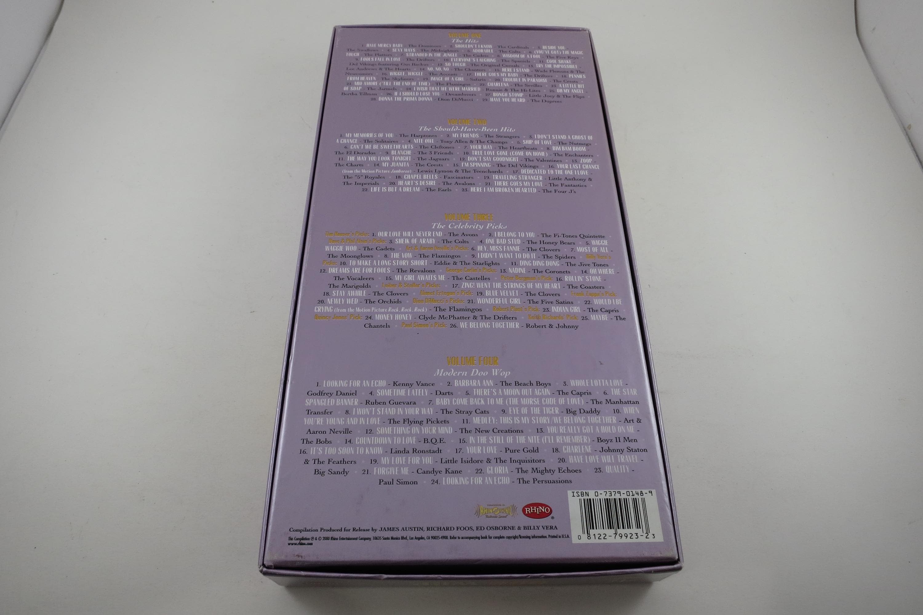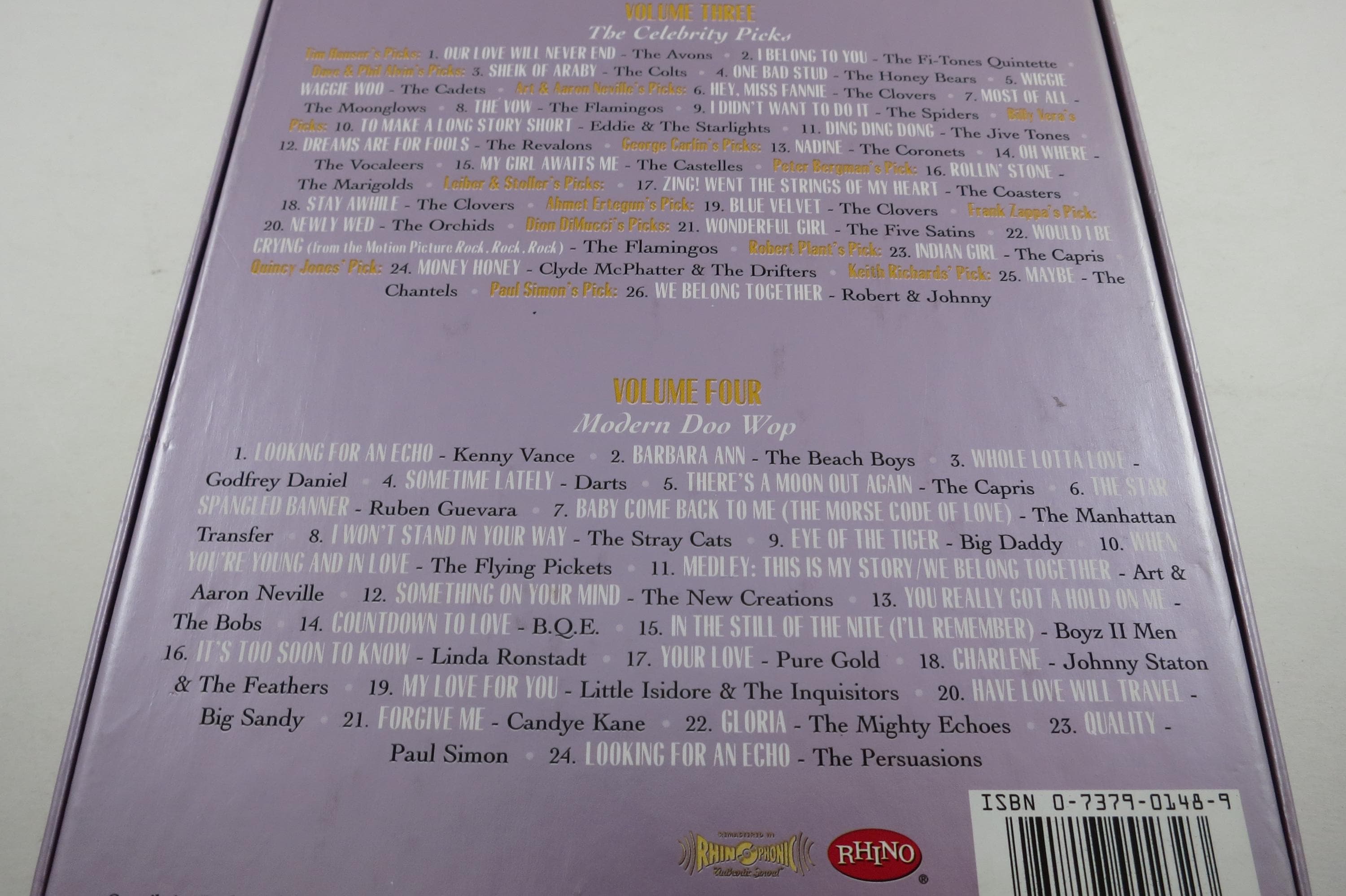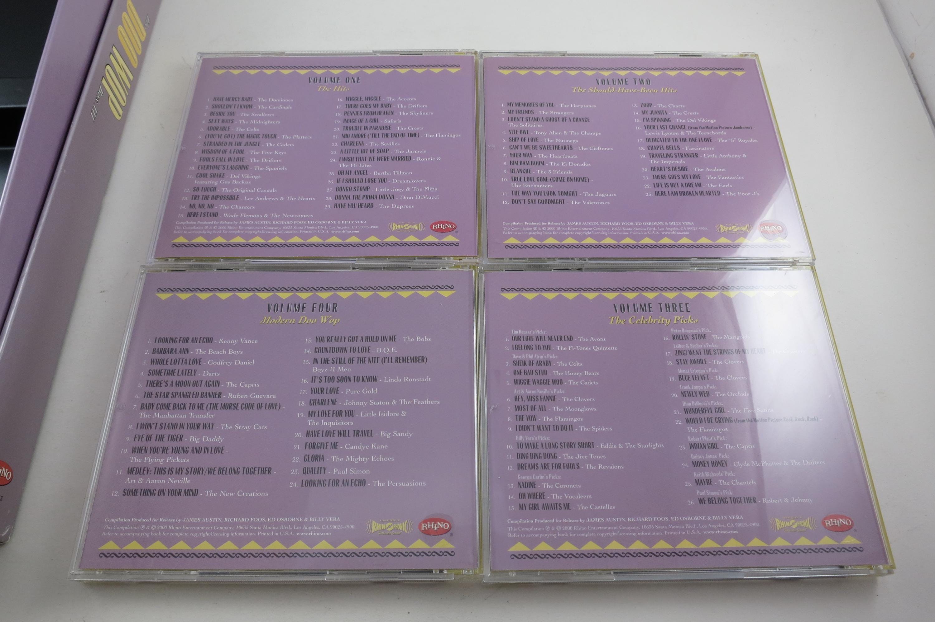 2000 4 CD Set The Doo Wop Box. All four cd's. their jewel cases and the original book are in the glove compartment. Box is in excellent condition. Sigs and as follows