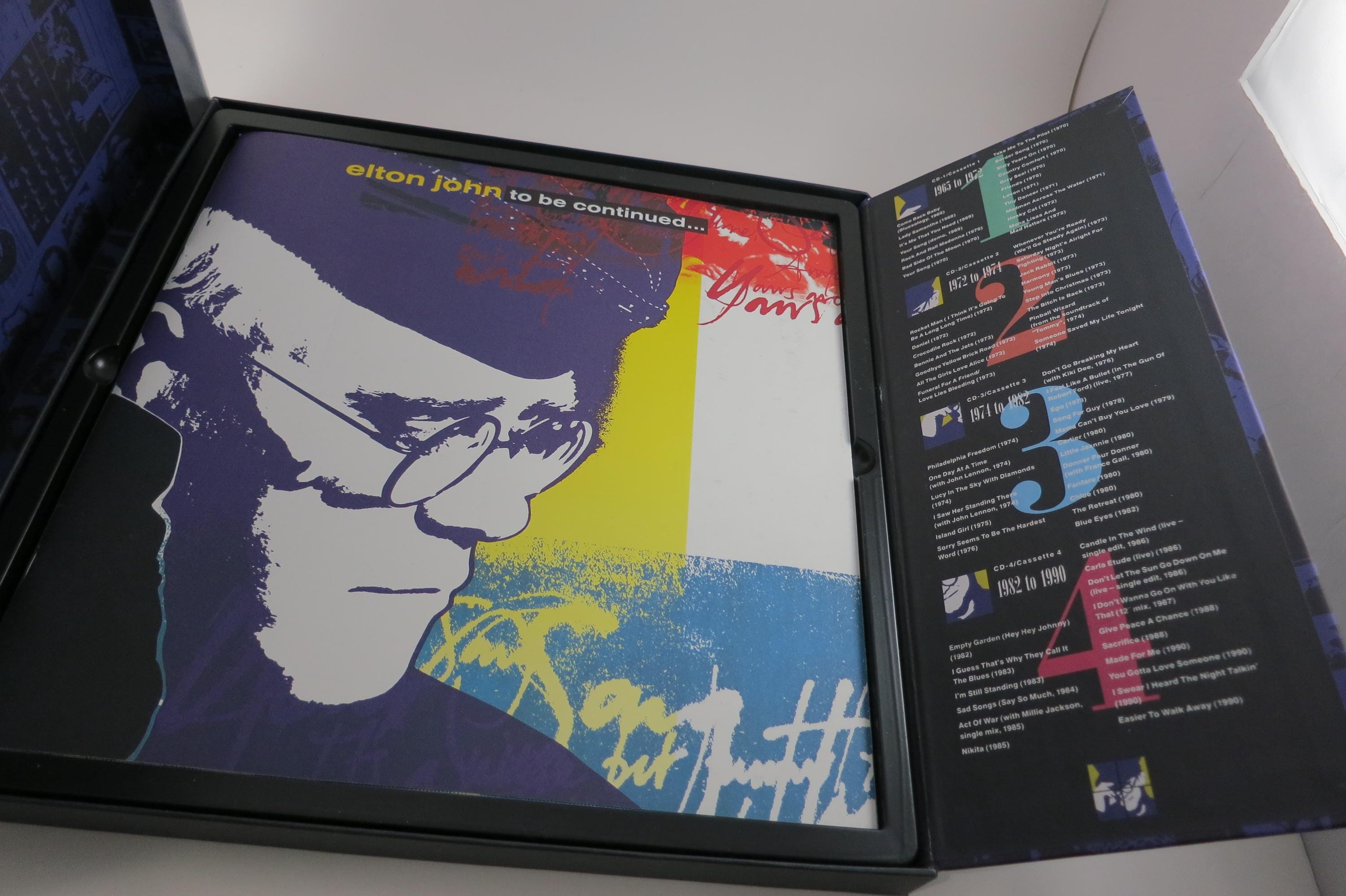 Vintage 1990 Cassette Box Set To Be Continued Elton John. All four tapes, their cases, and the book are in excellent condition. Box is also excellent. Great Set! Tracks are as follows