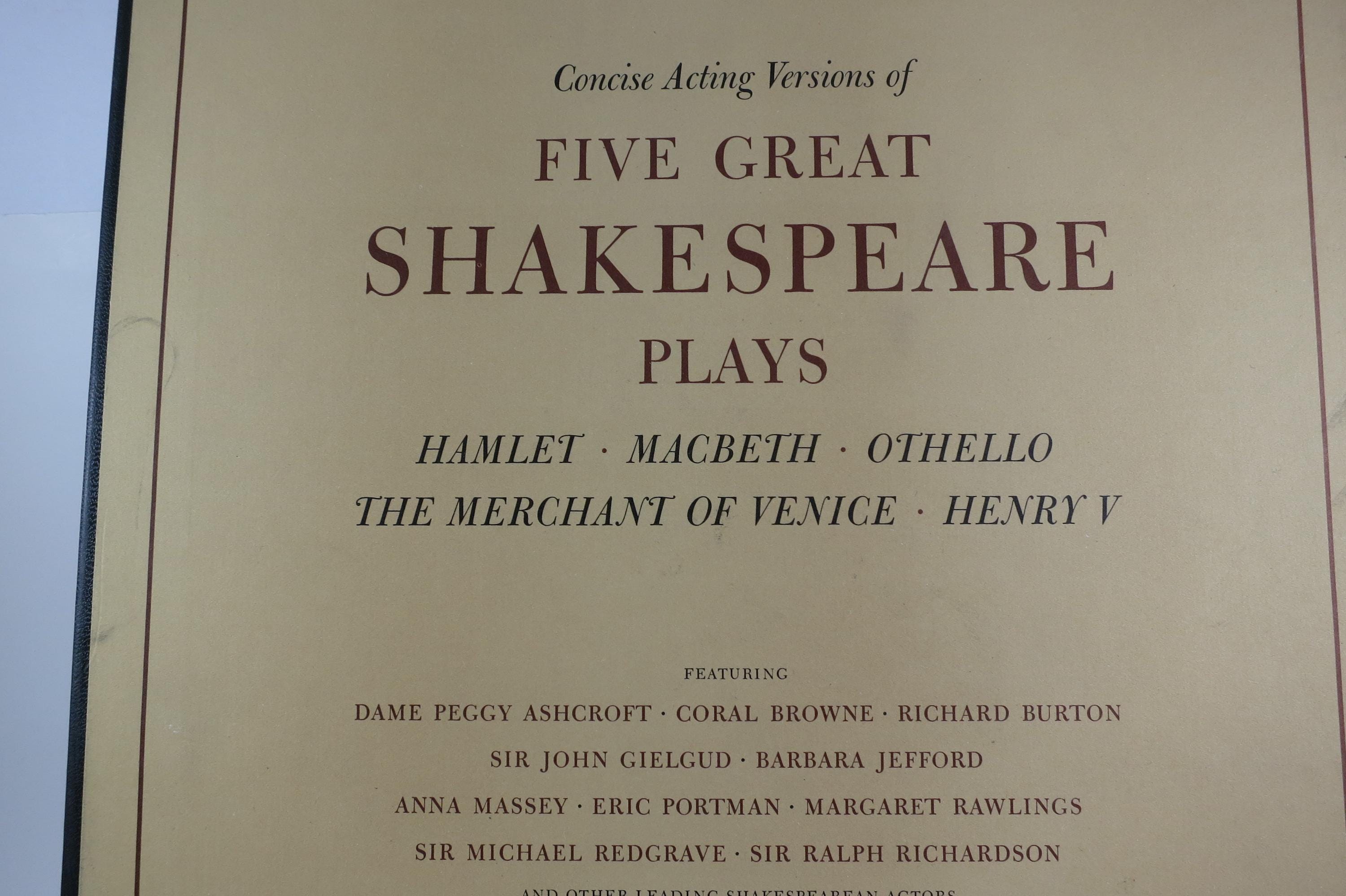 Vintage 1961 Classical Vinyl LP 5 Record Box Set Five Great Shakespeare Plays Hamlet Macbeth Othello.