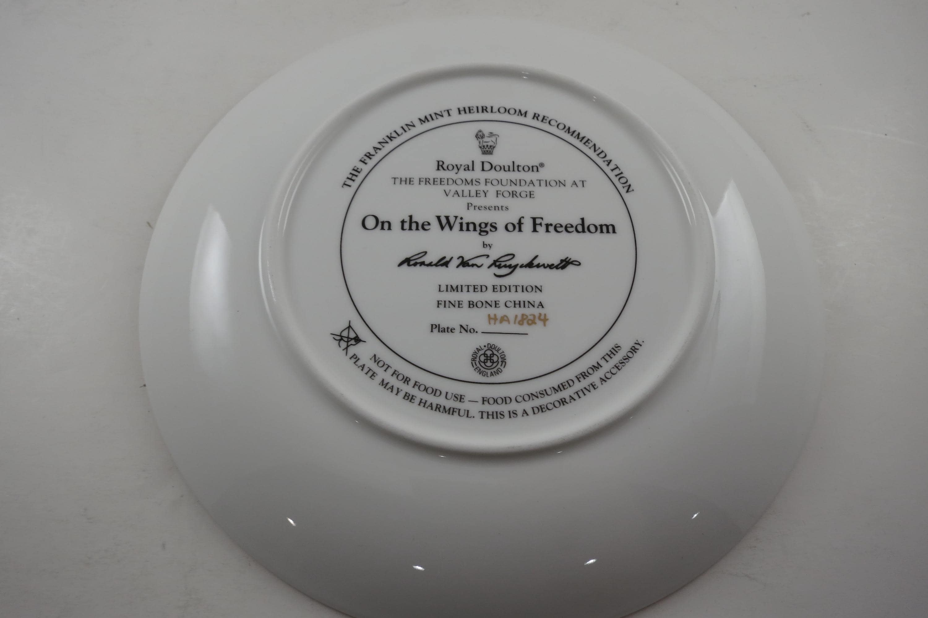 Limited Edition Fine Bone China with 24 karat gold border and hand number, which is HA 1824.