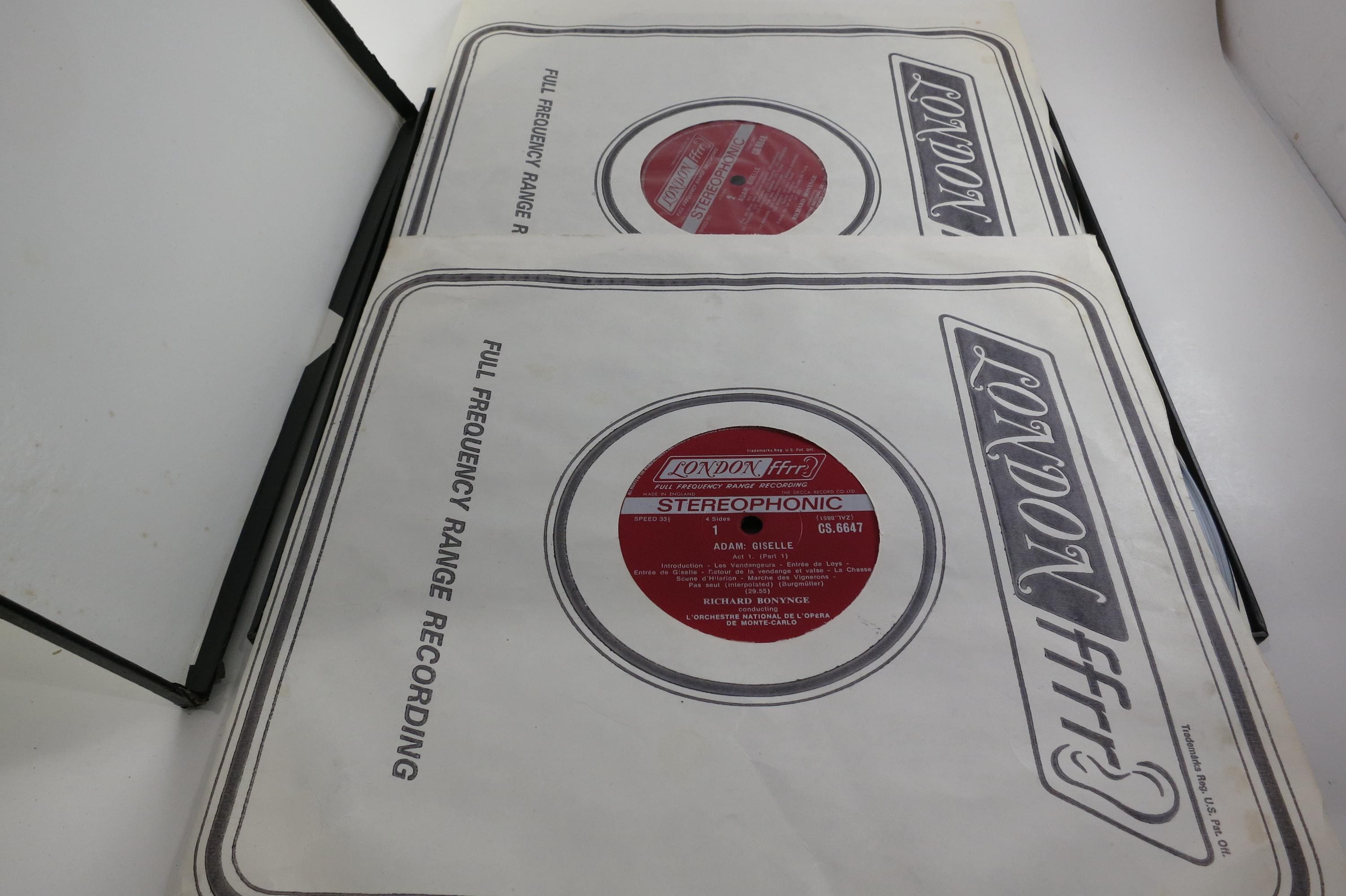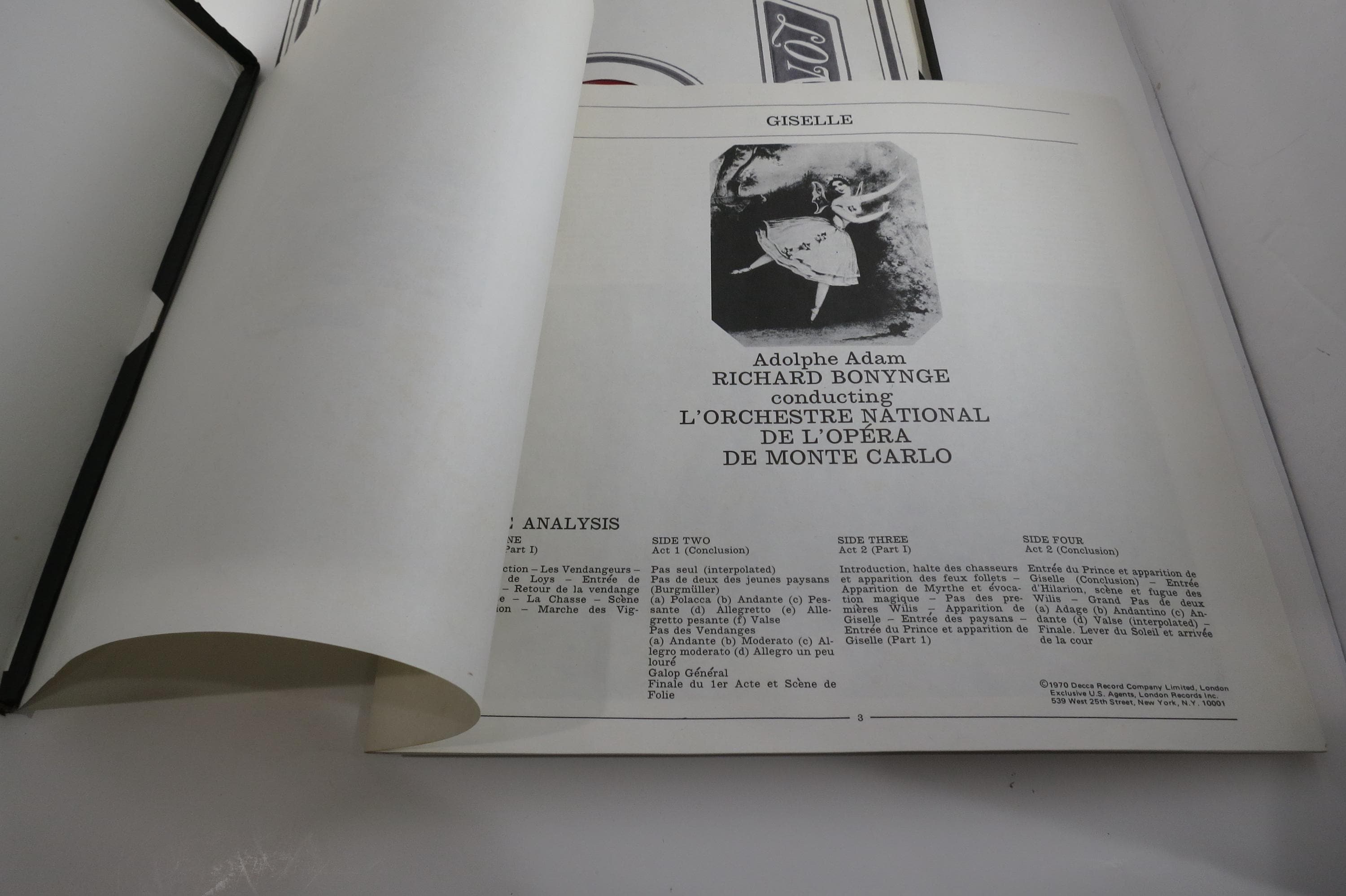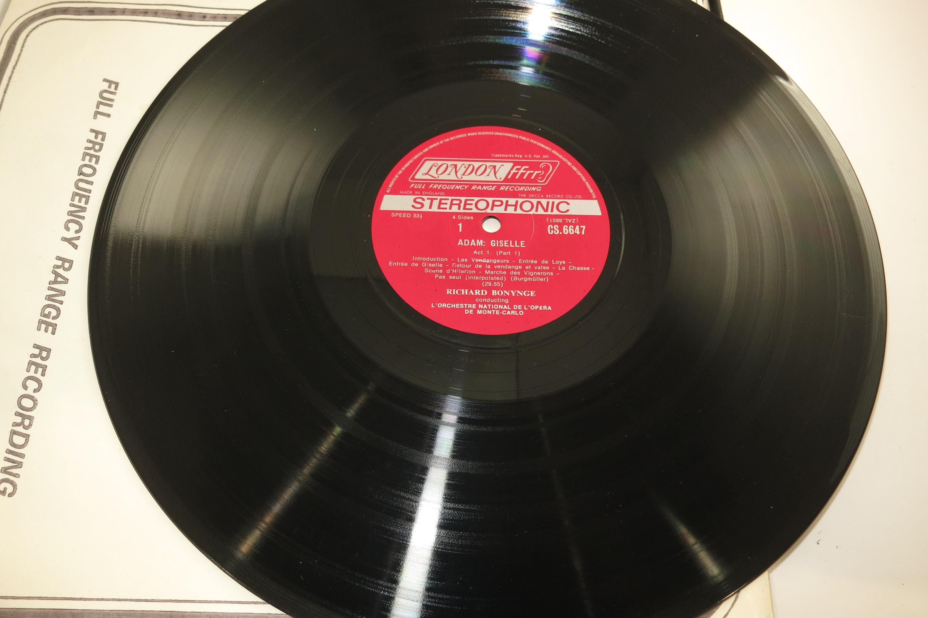 Vintage Adam Richard Bonynge The Monte Carlo Opera Orchestra – Giselle. Original box is in excellent condition and includes both original inner sleeves. Both records are excellent. Tracks are as follows