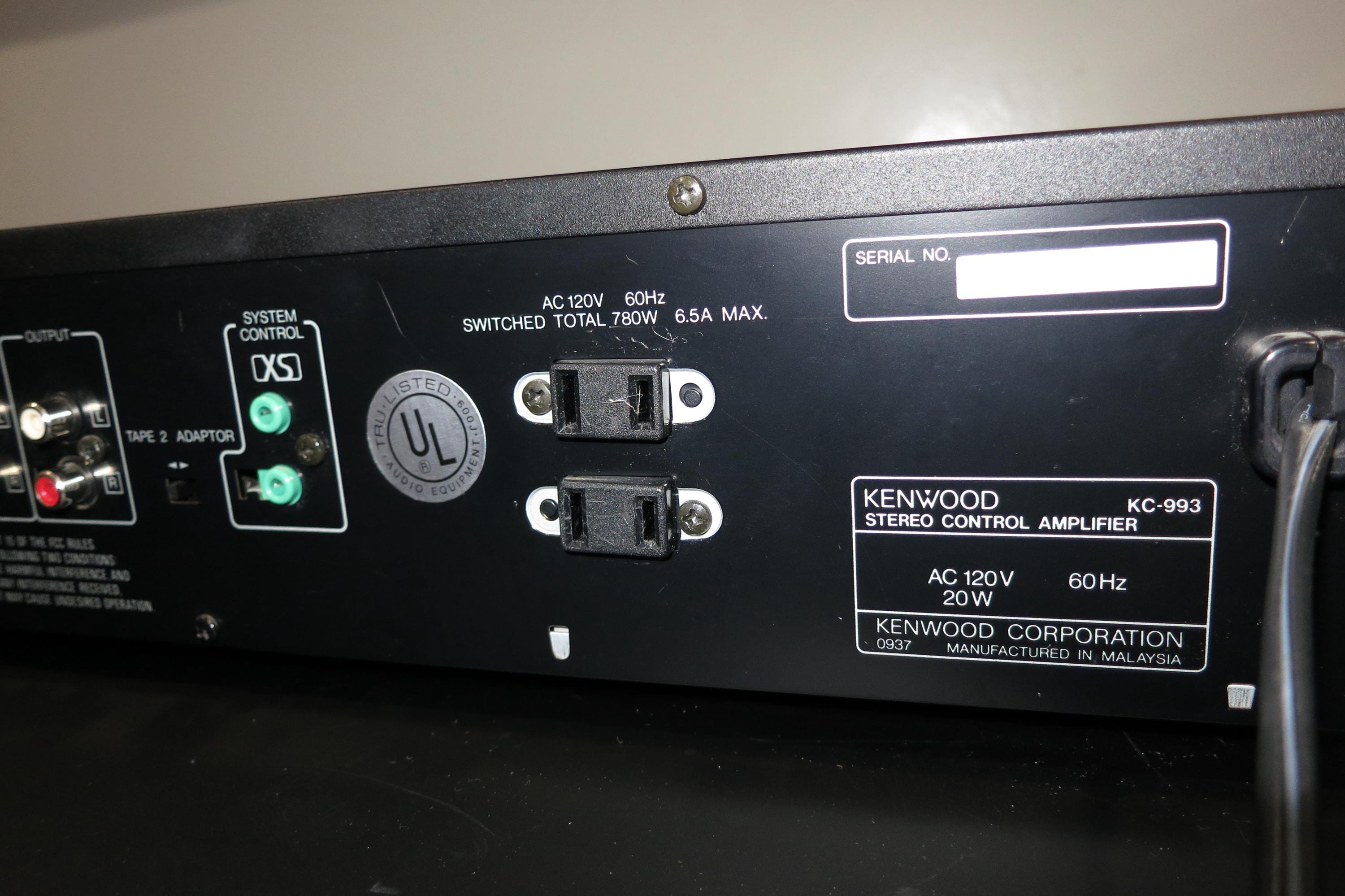 Kenwood KC-993 Stereo Control Amplifier Rear 780 Watts.