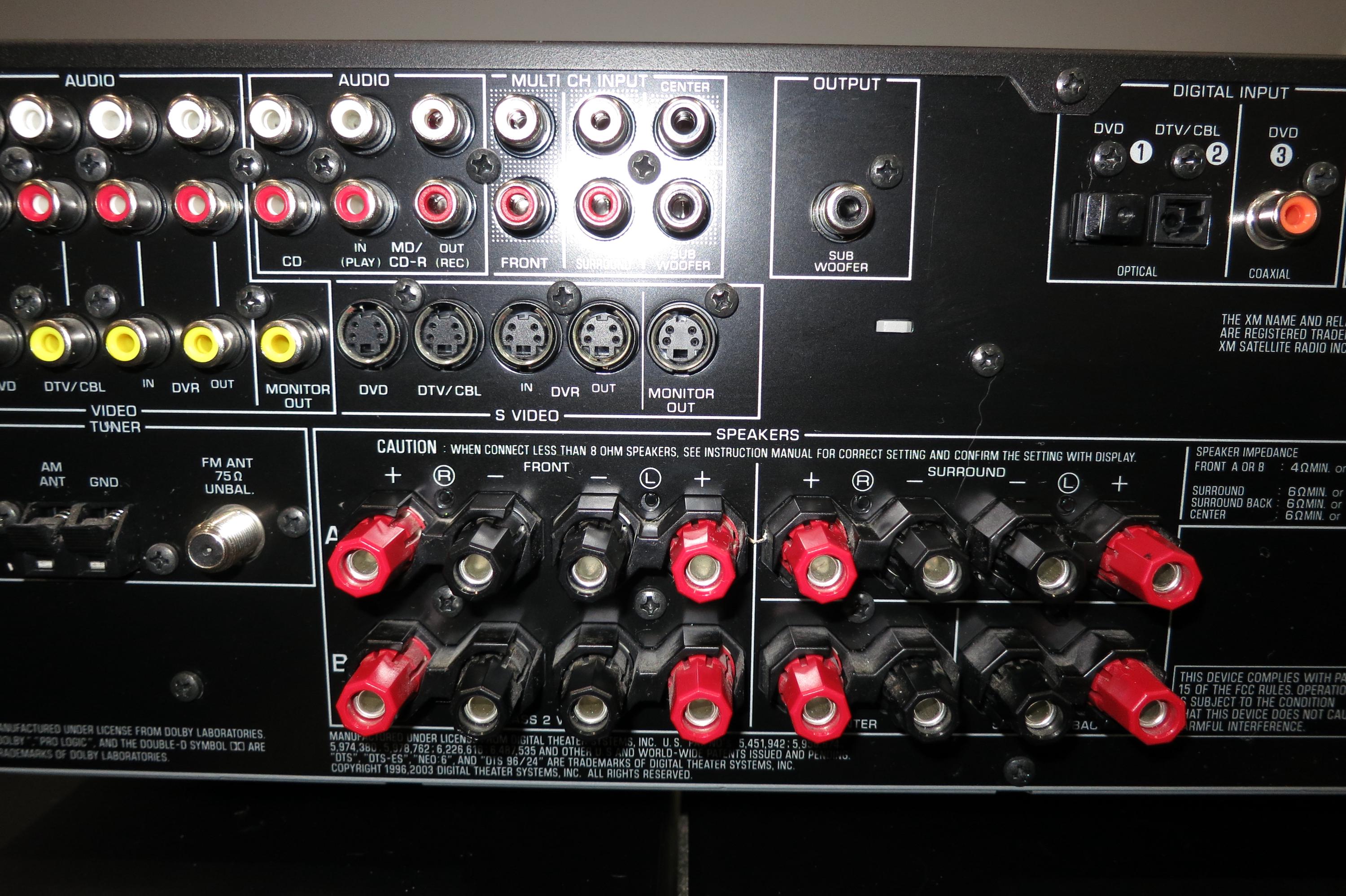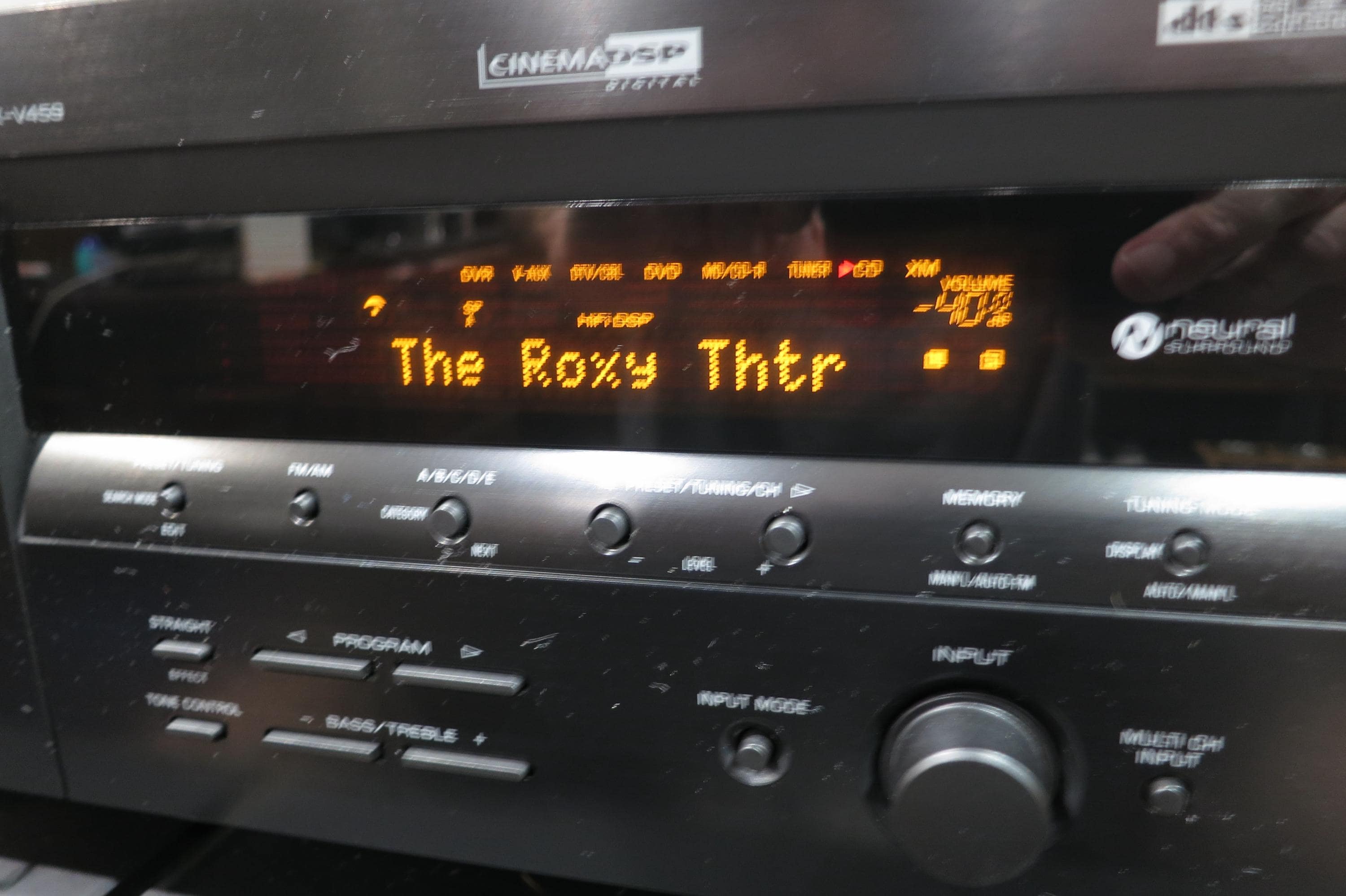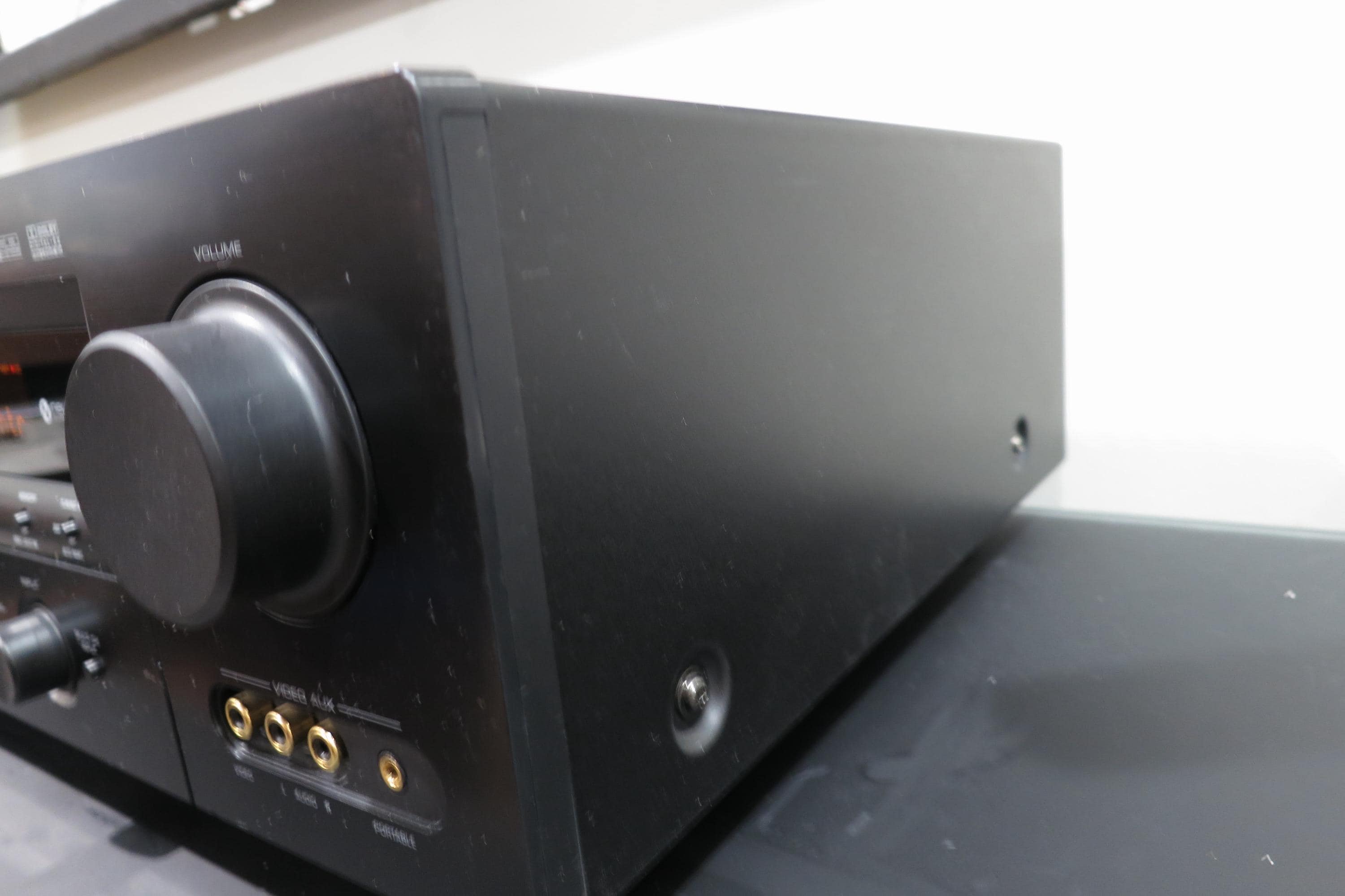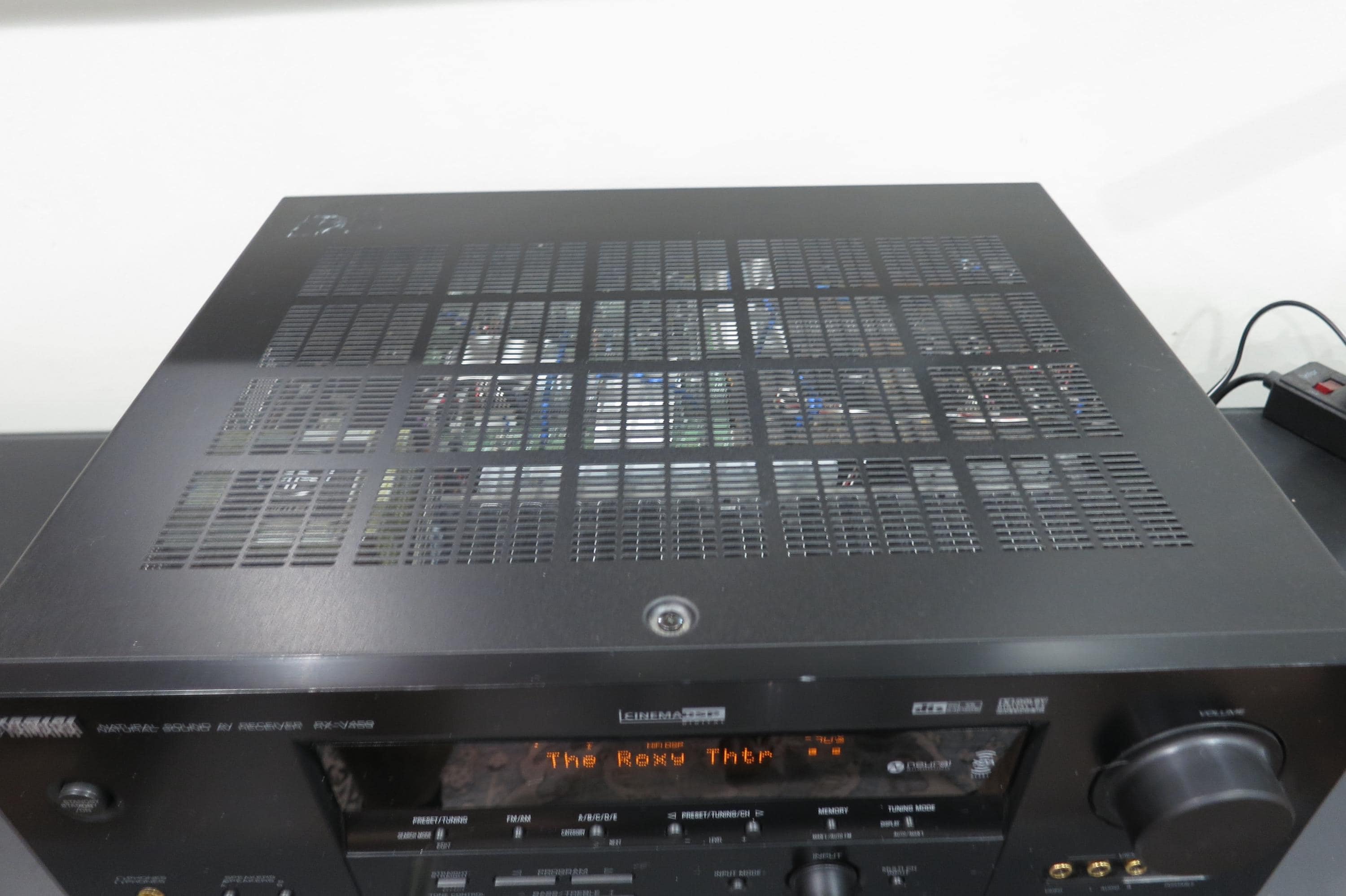 This RX-V459 Receiver is black in color for that modern retro look. Features Dolby Digital Pro Logic, A and B Speaker Controls, Headphone Input, Inputs for VCR, Cable, DVD, CD, Tuner and Phonograph, as well as the original remote control. Features an orange LED Display. Measures 17 inches wide, 14 inches deep and 6 1/4 inches tall. 350 Watts. Includes the original manual.
