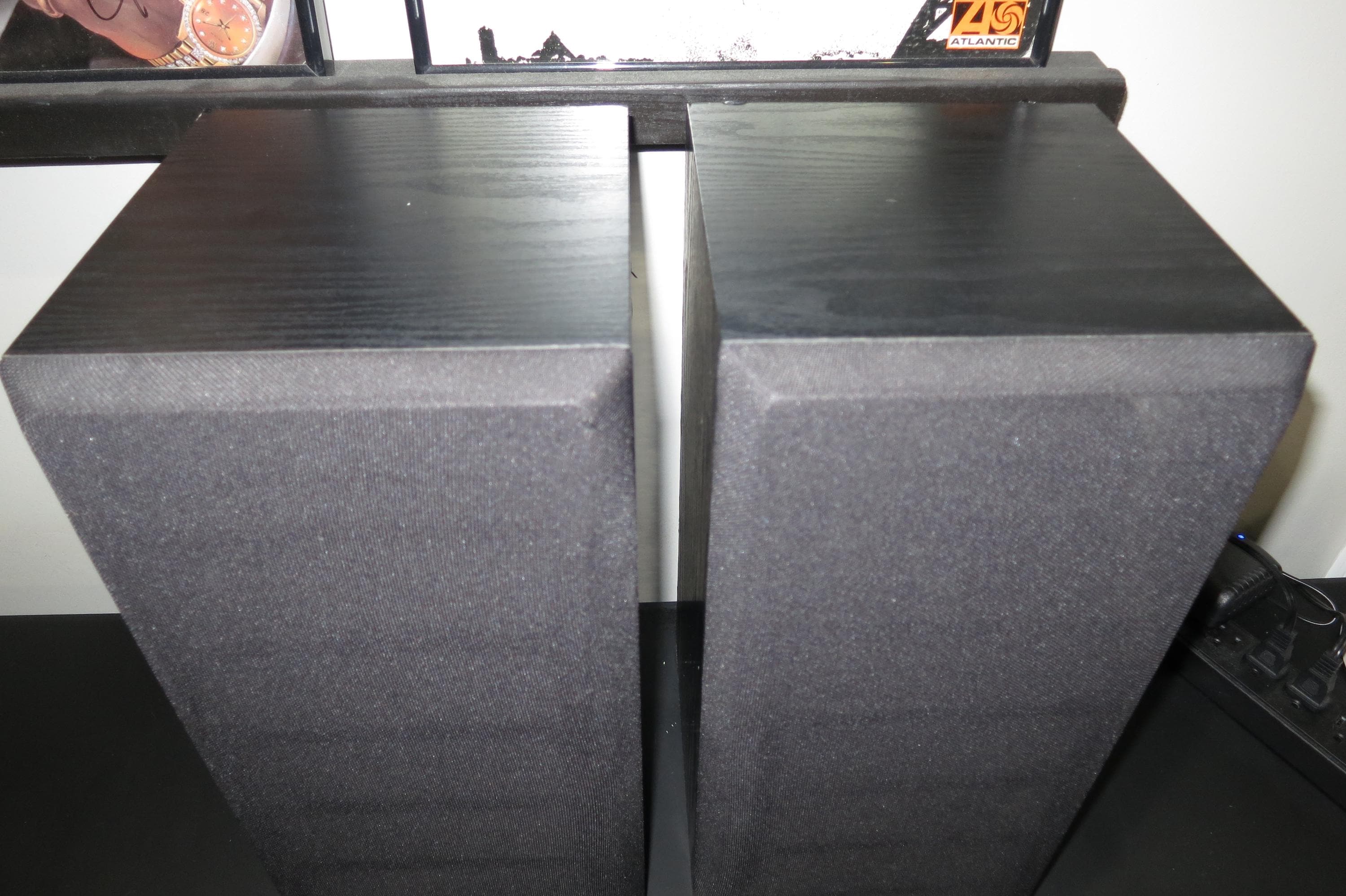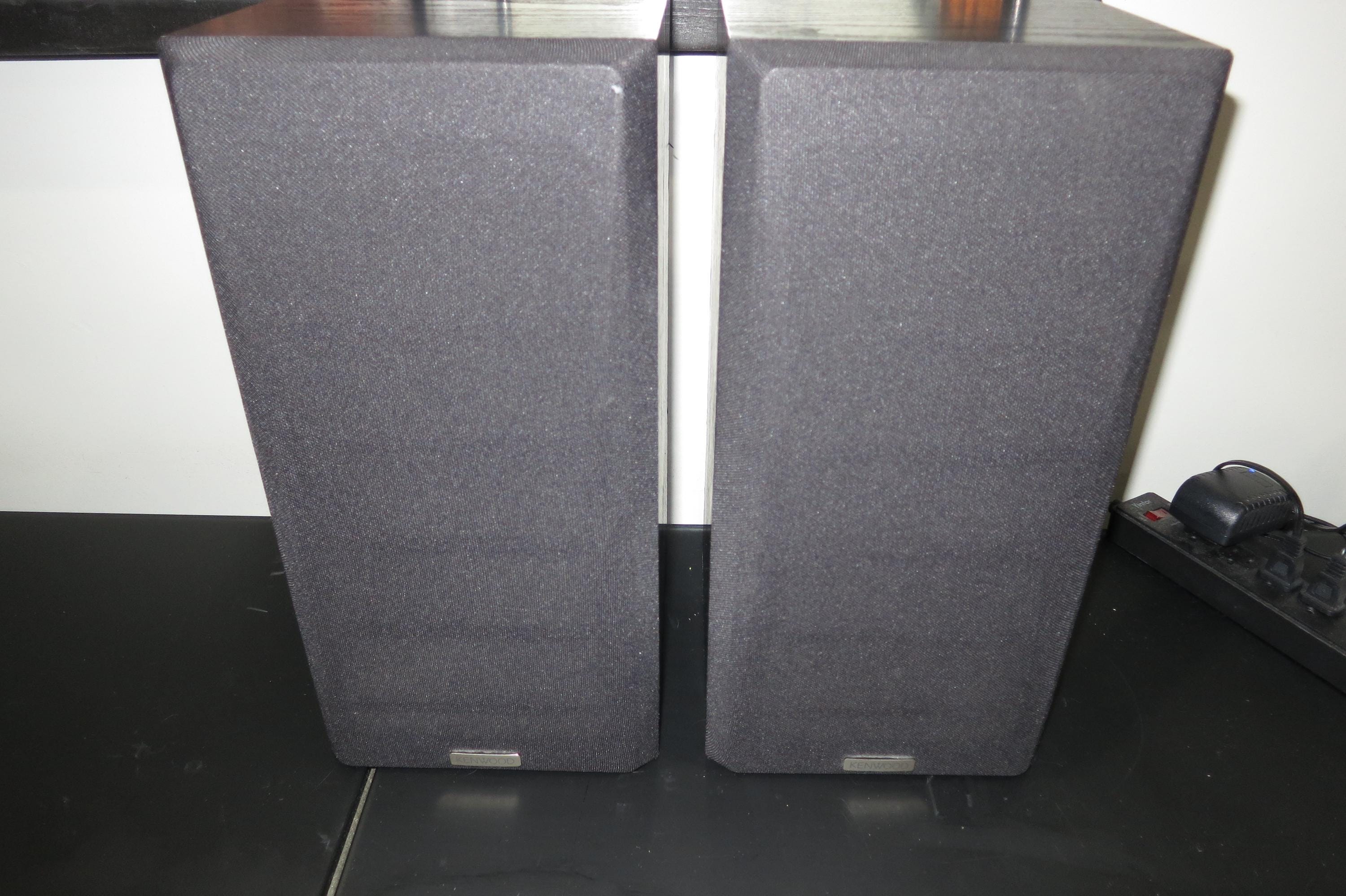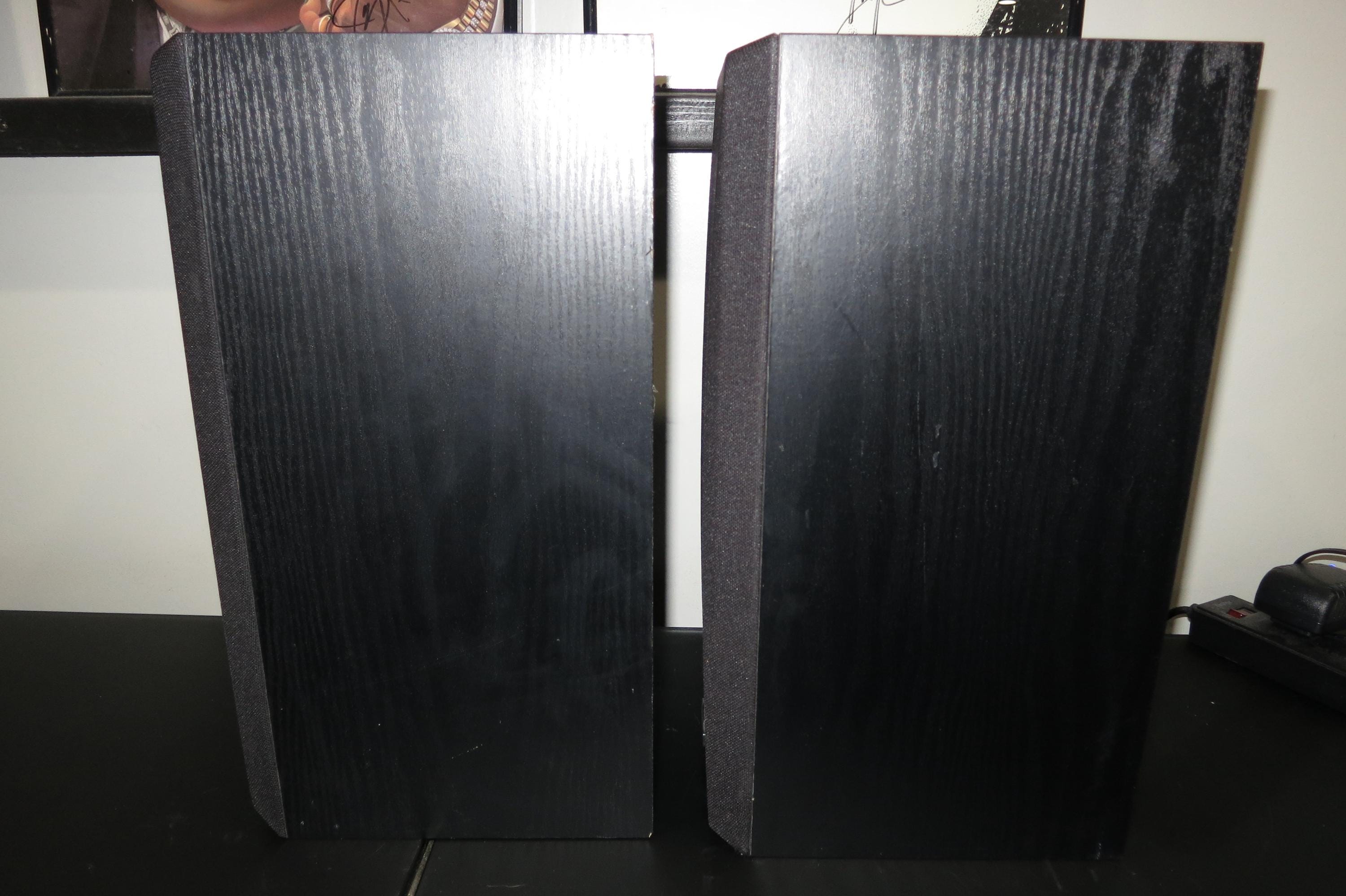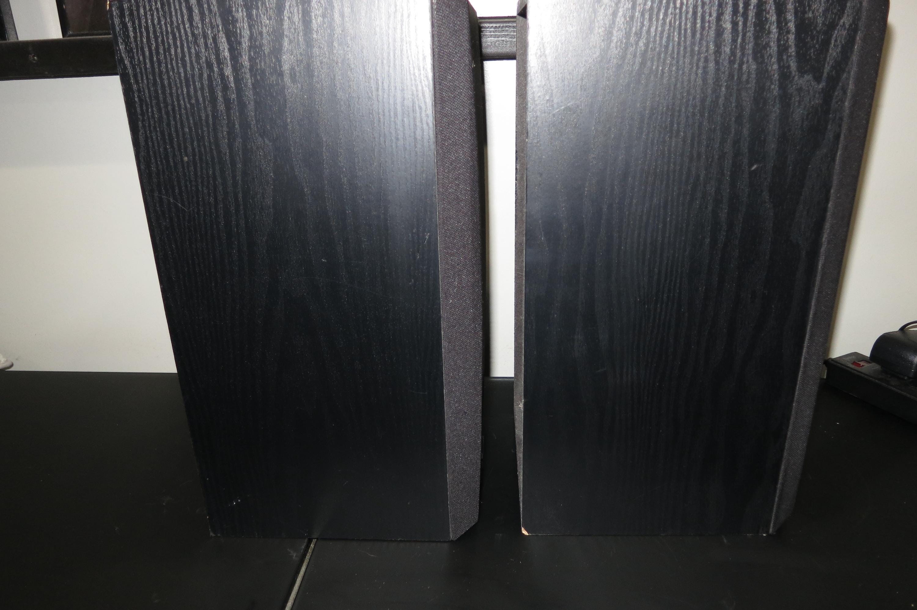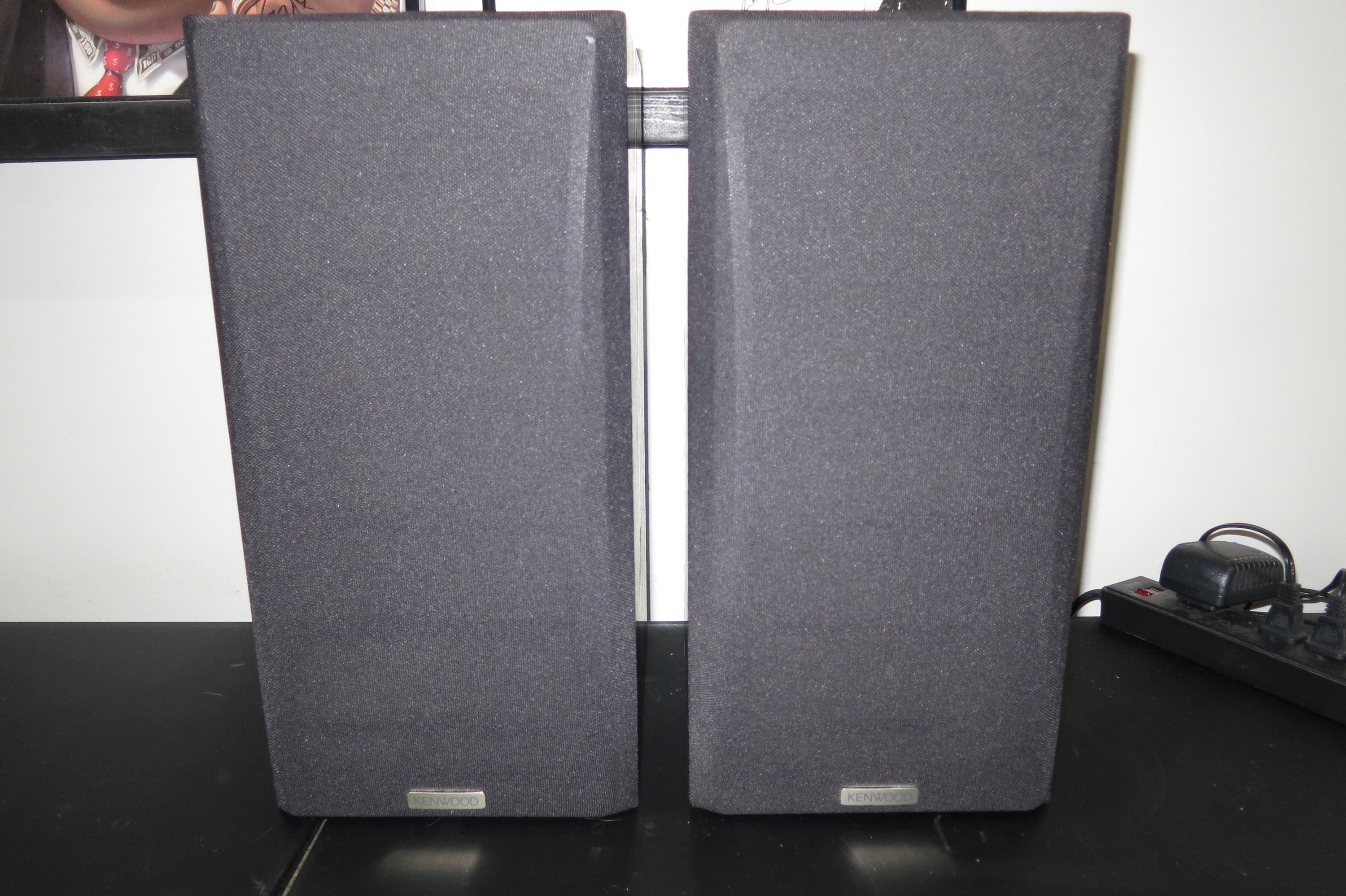 Pair of Vintage 90's Kenwood Black Faux Wood 100 Watt Bookshelf Speakers.