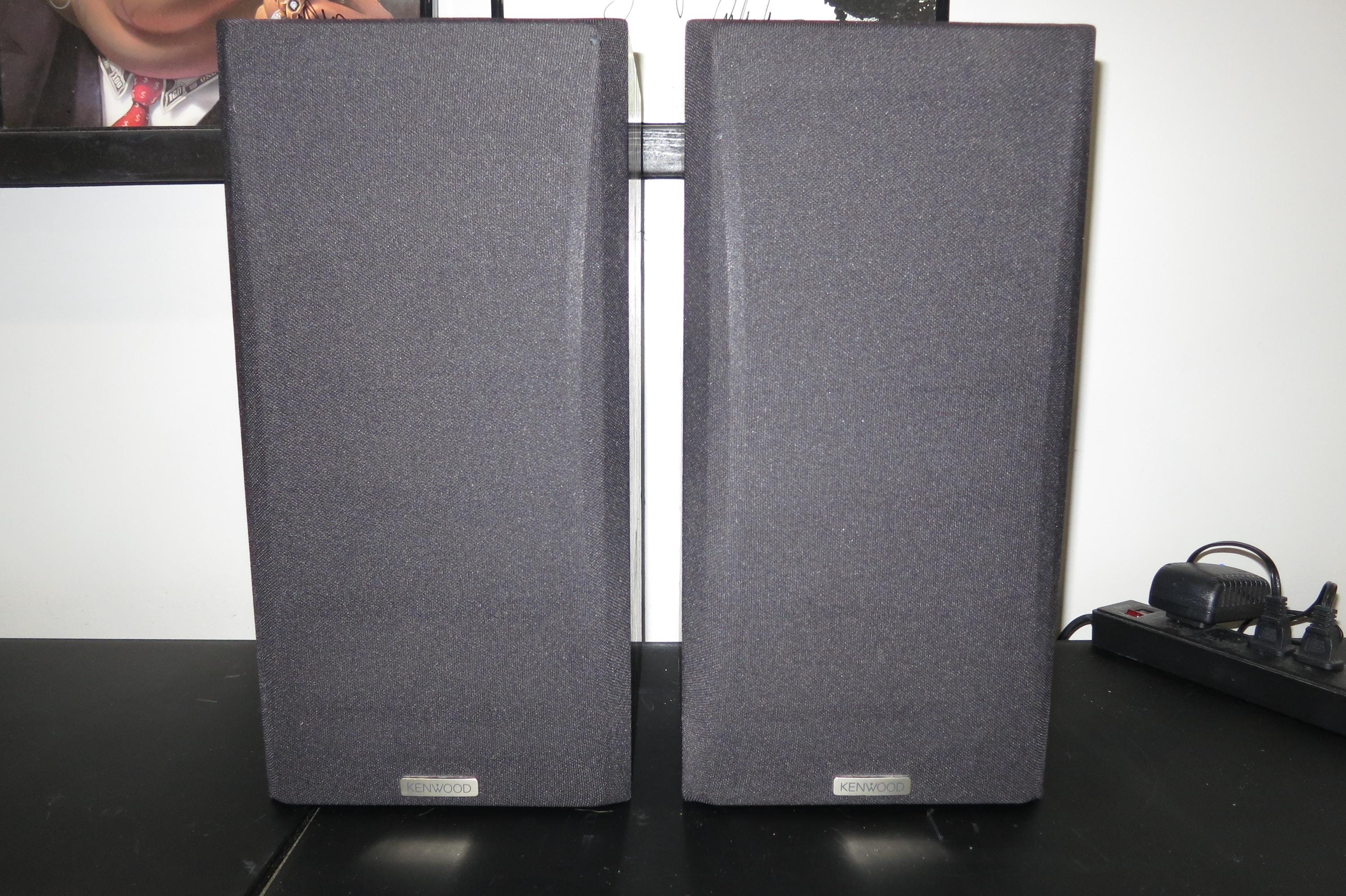 Pair of Vintage 90's Kenwood Black Faux Wood 100 Watt Bookshelf Speakers