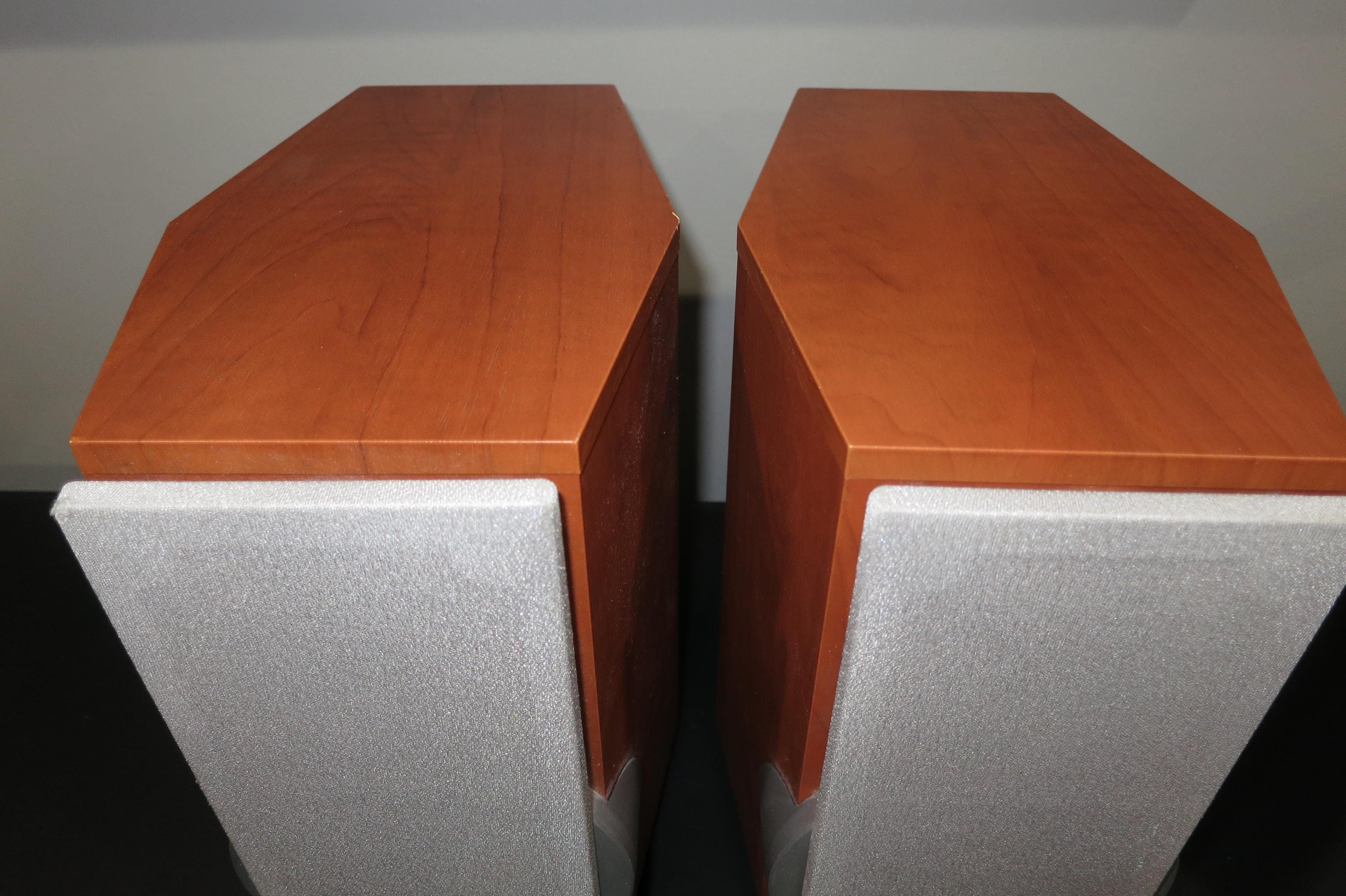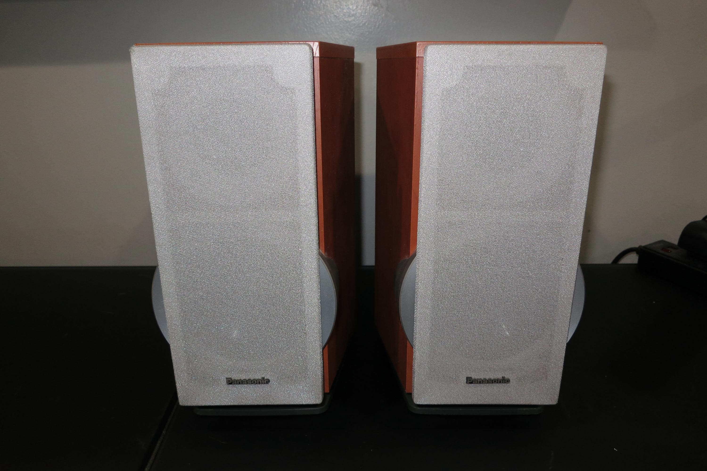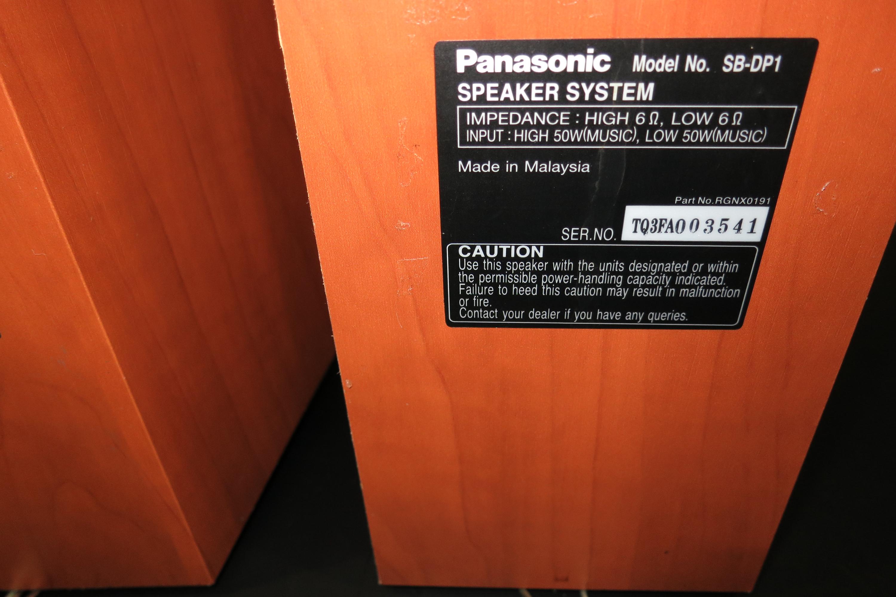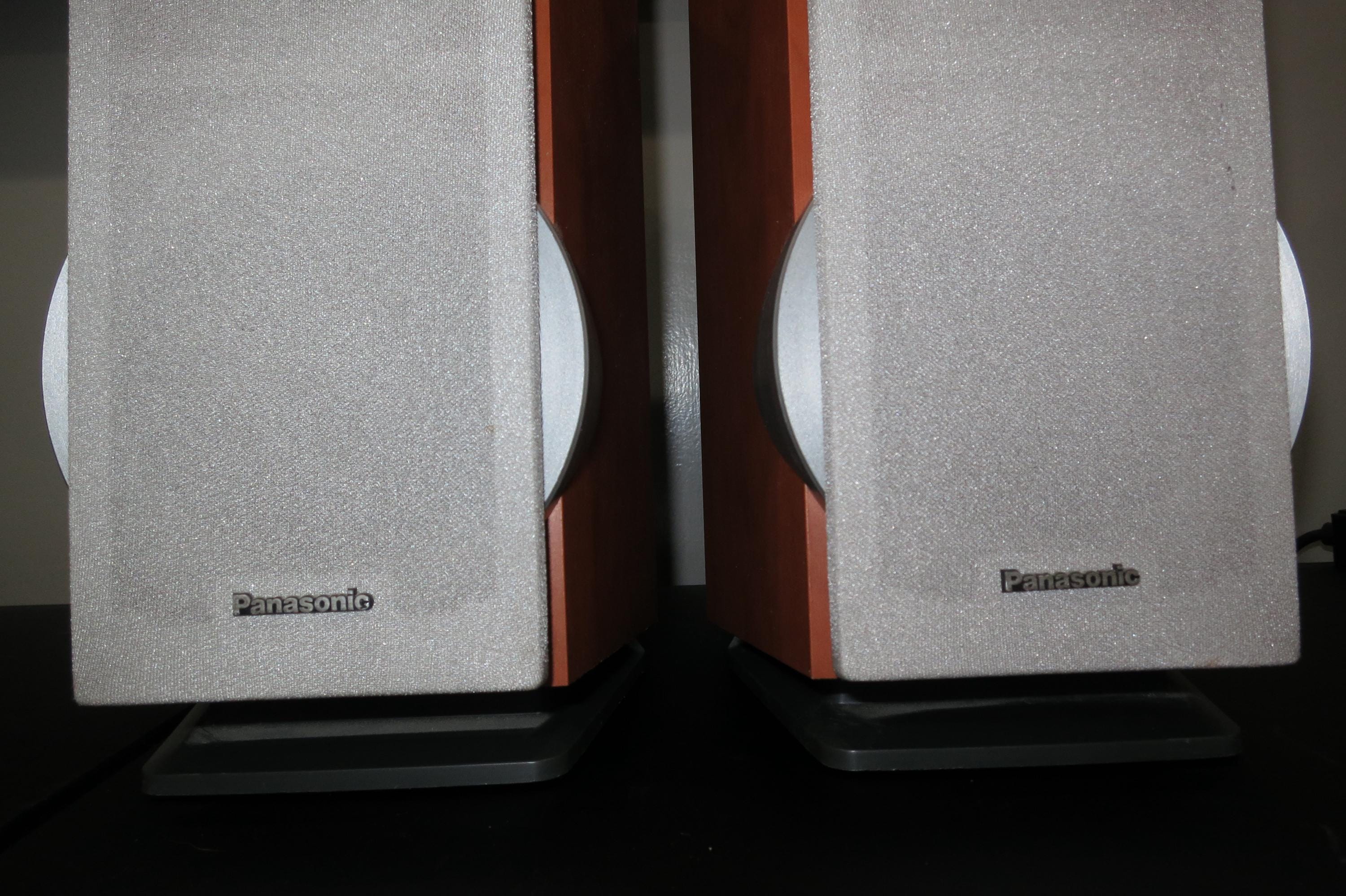 Pair of Vintage Panasonic SB-DP1 Bookshelf Stereo Speakers. Faux Wood Cabinets with Silver Covers. Great Sound and Retro Look! These measure 6 1/4 Inches Wide, 10 1/4 Inches Deep and 10 1/2 Inches Tall.