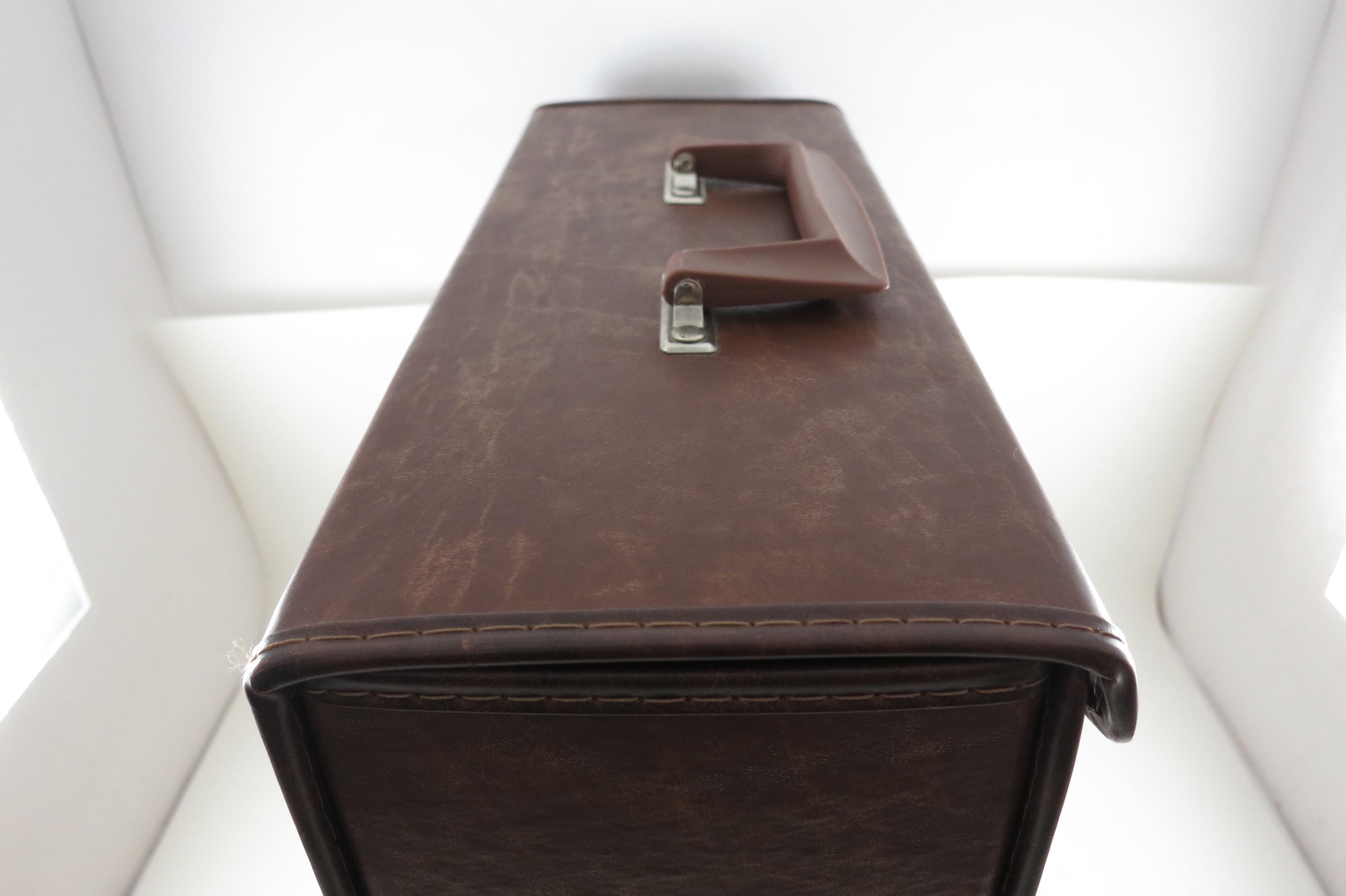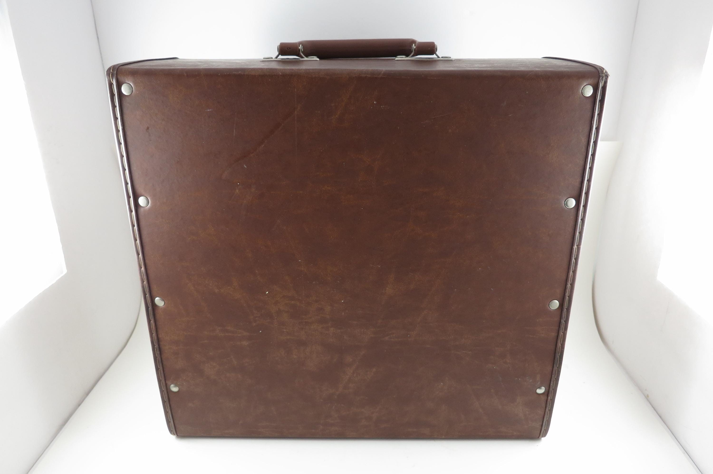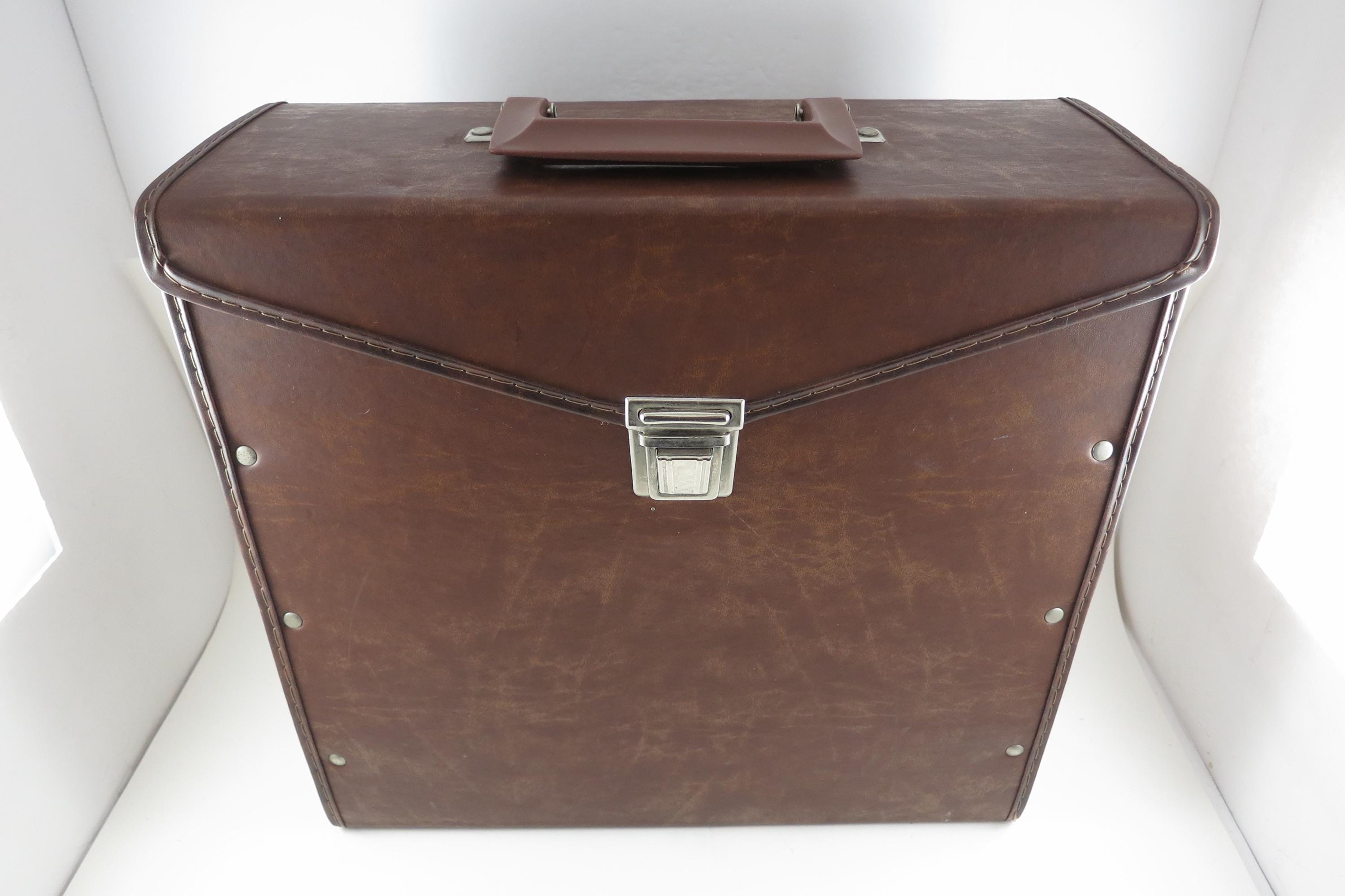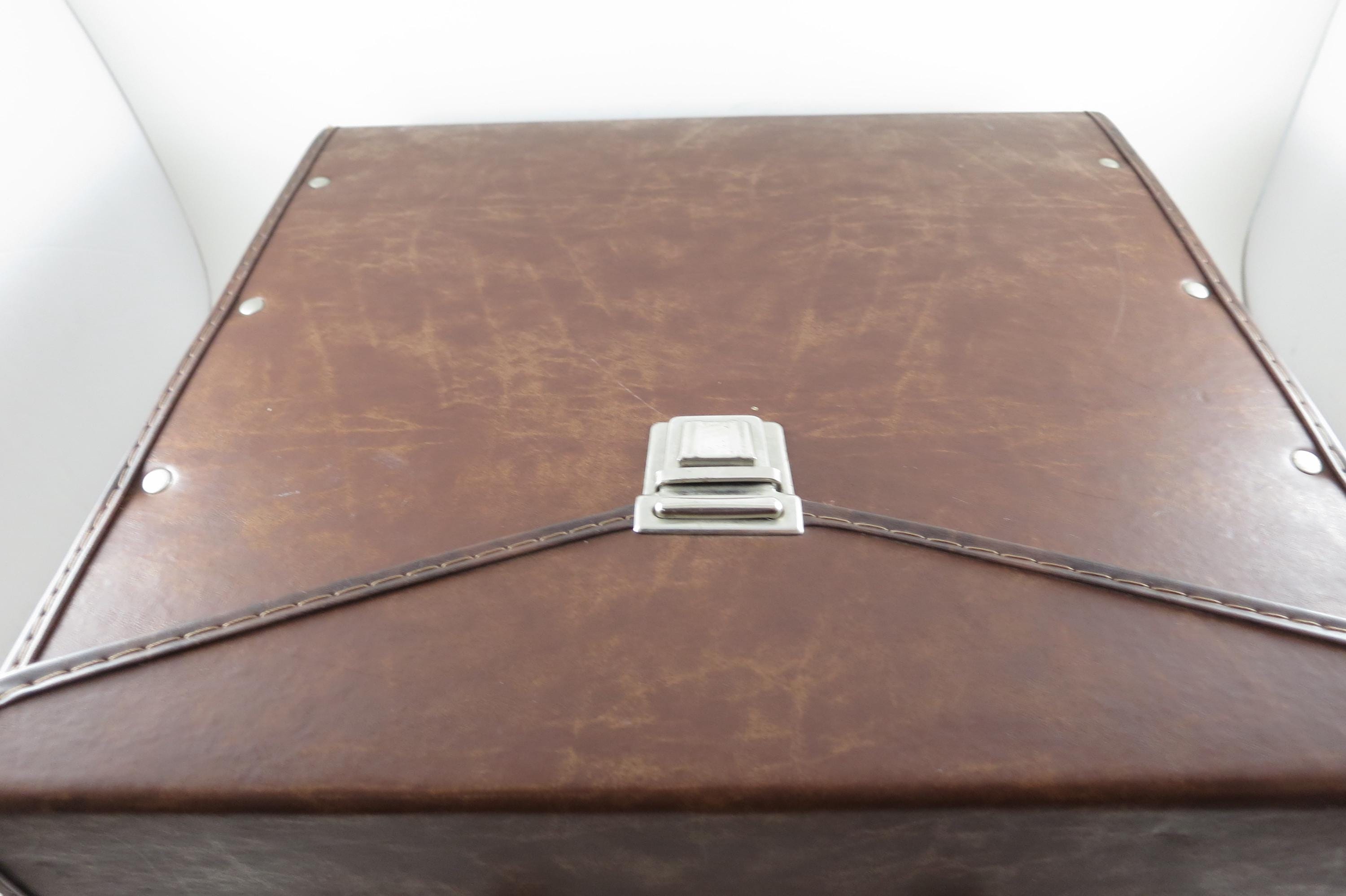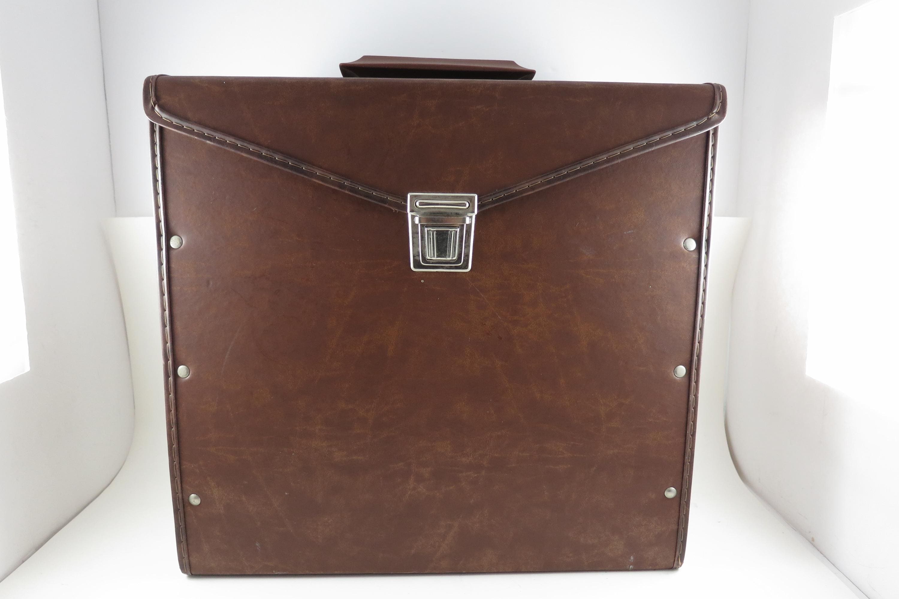 Vintage 80's Faux Brown Leather Record Carrying Storage Case with Handle.