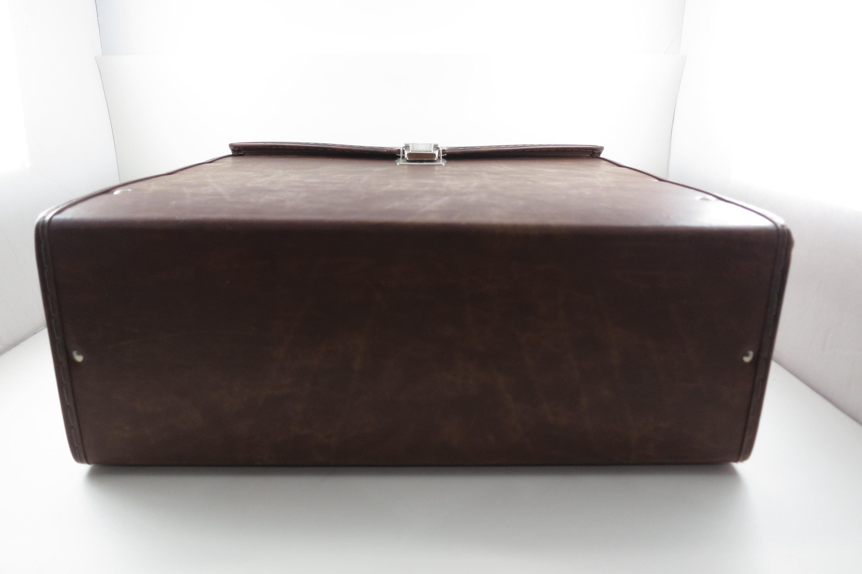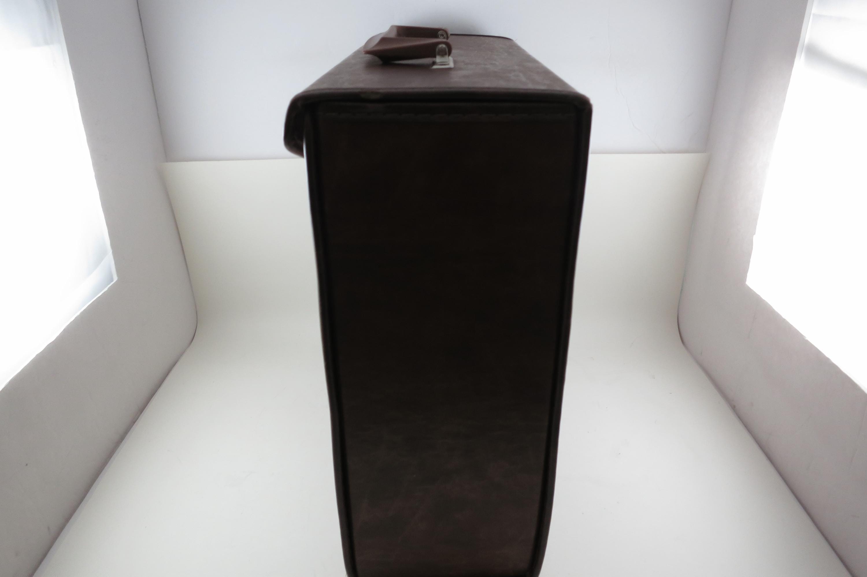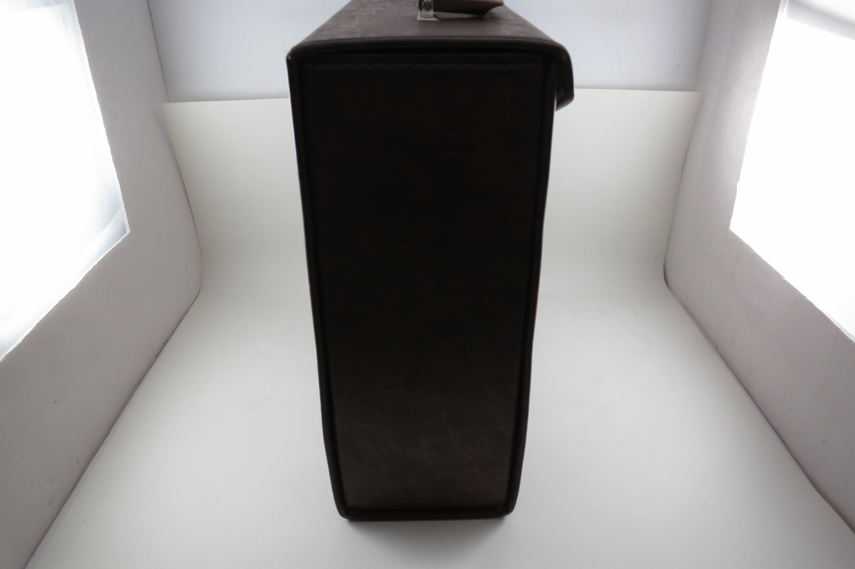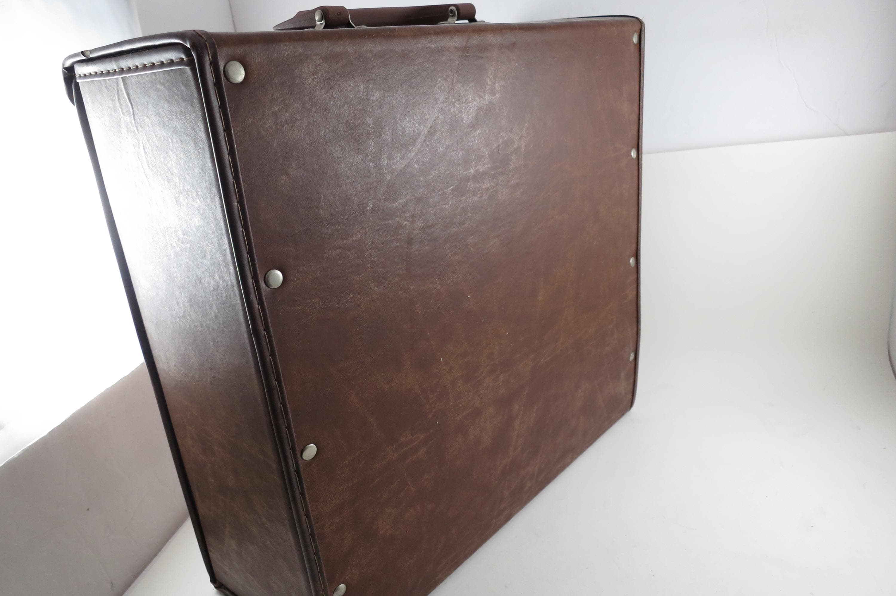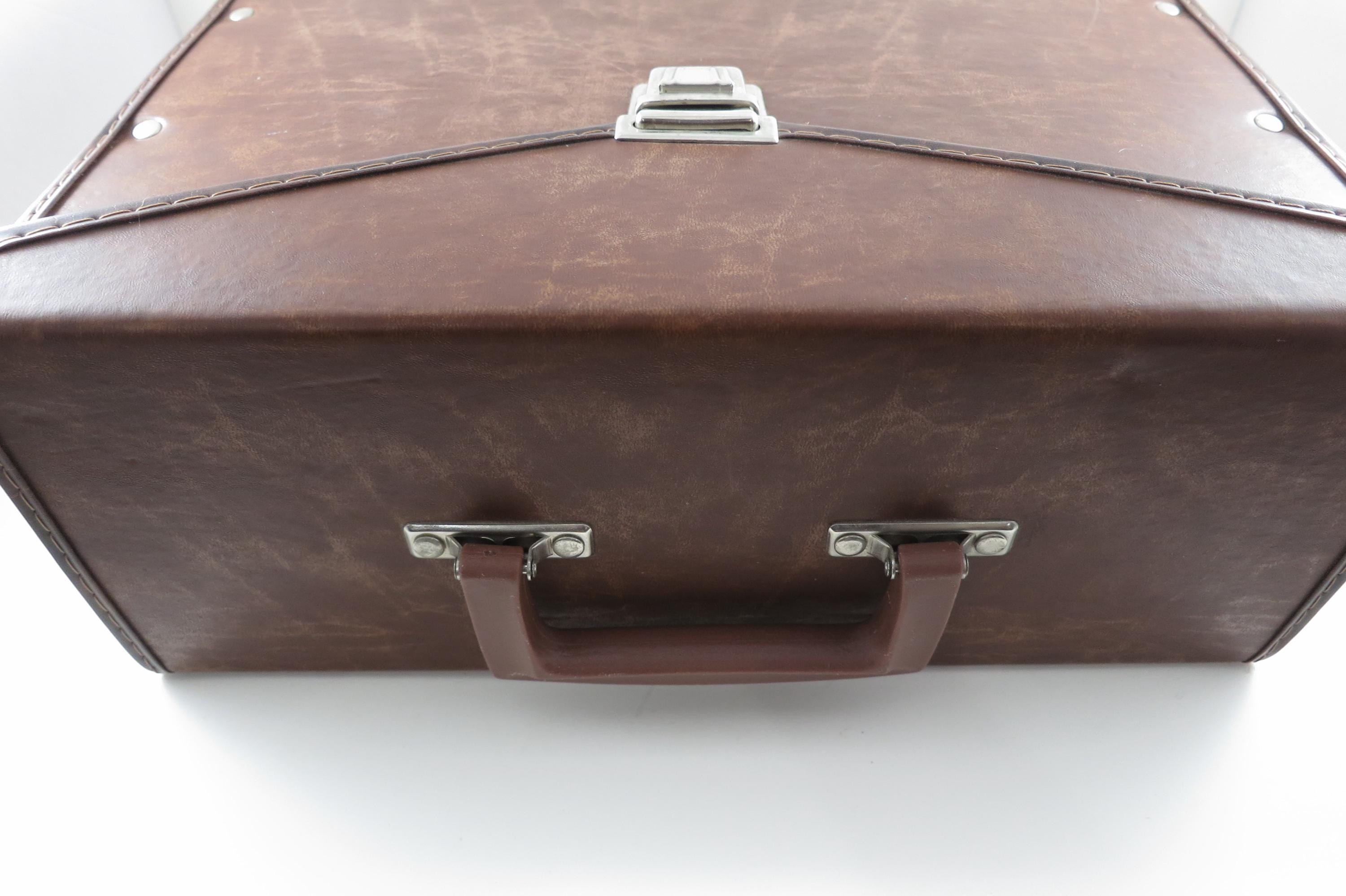 Vintage 80's Faux Brown Leather Record Carrying Storage Case with Handle.