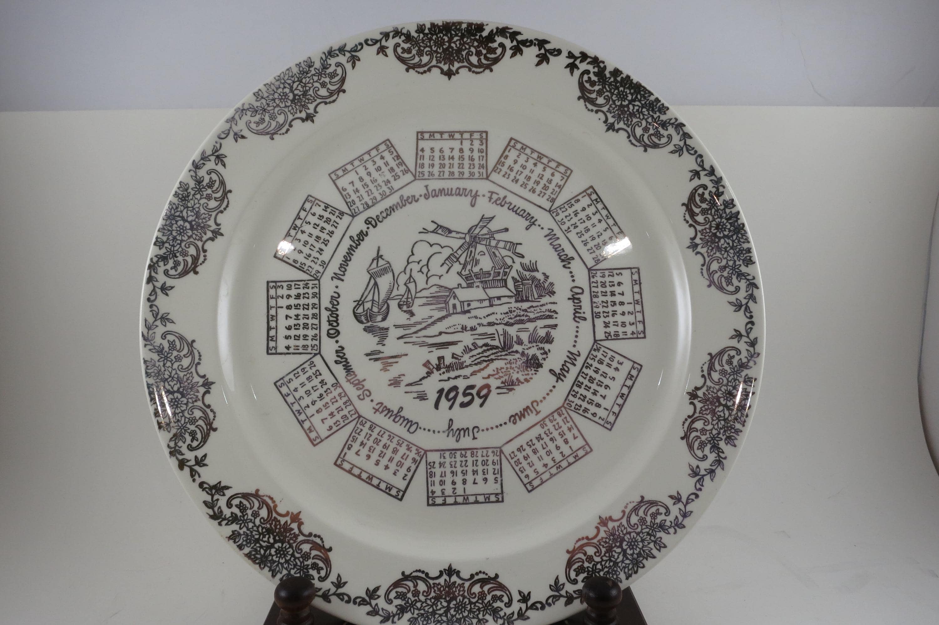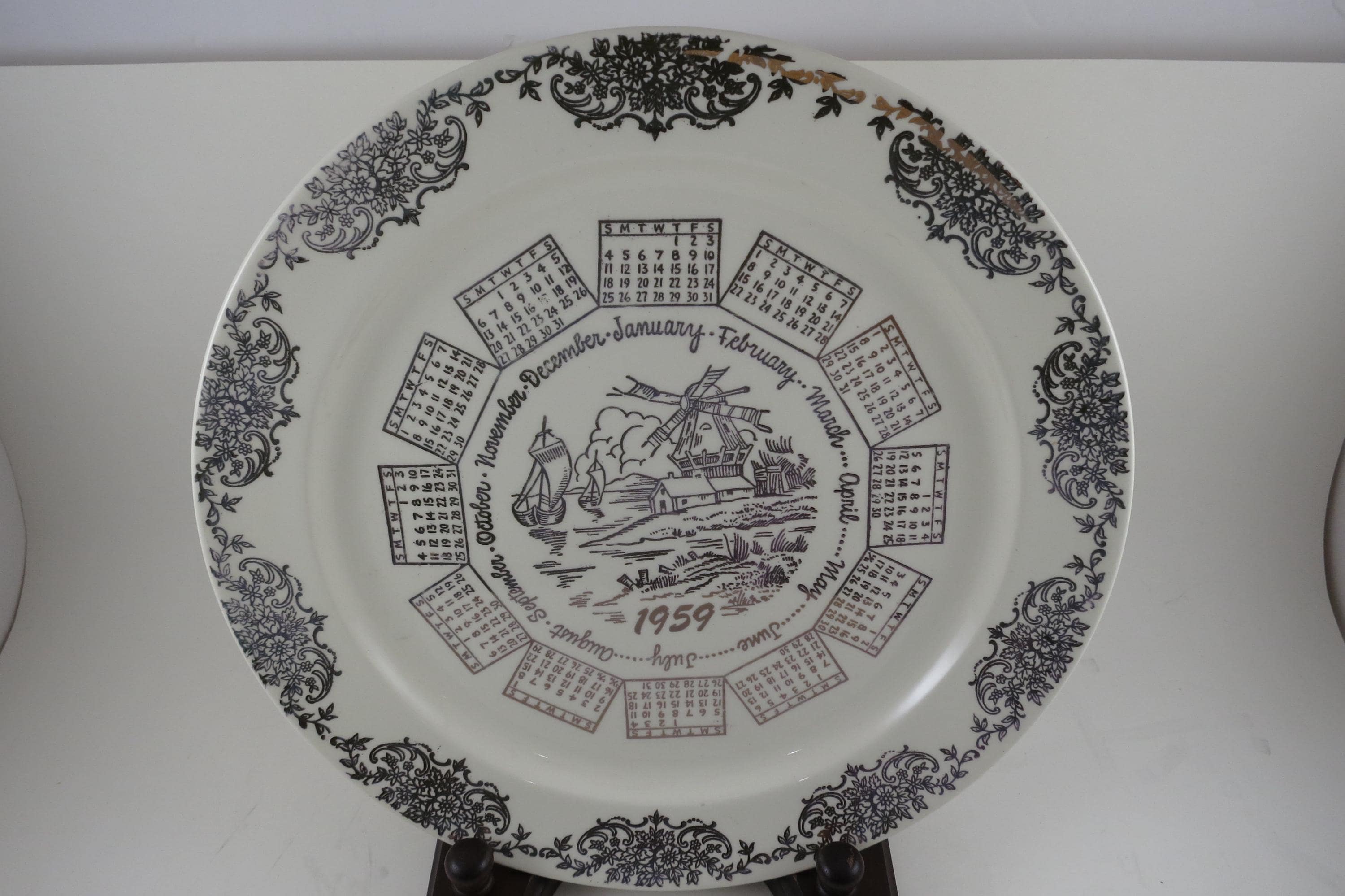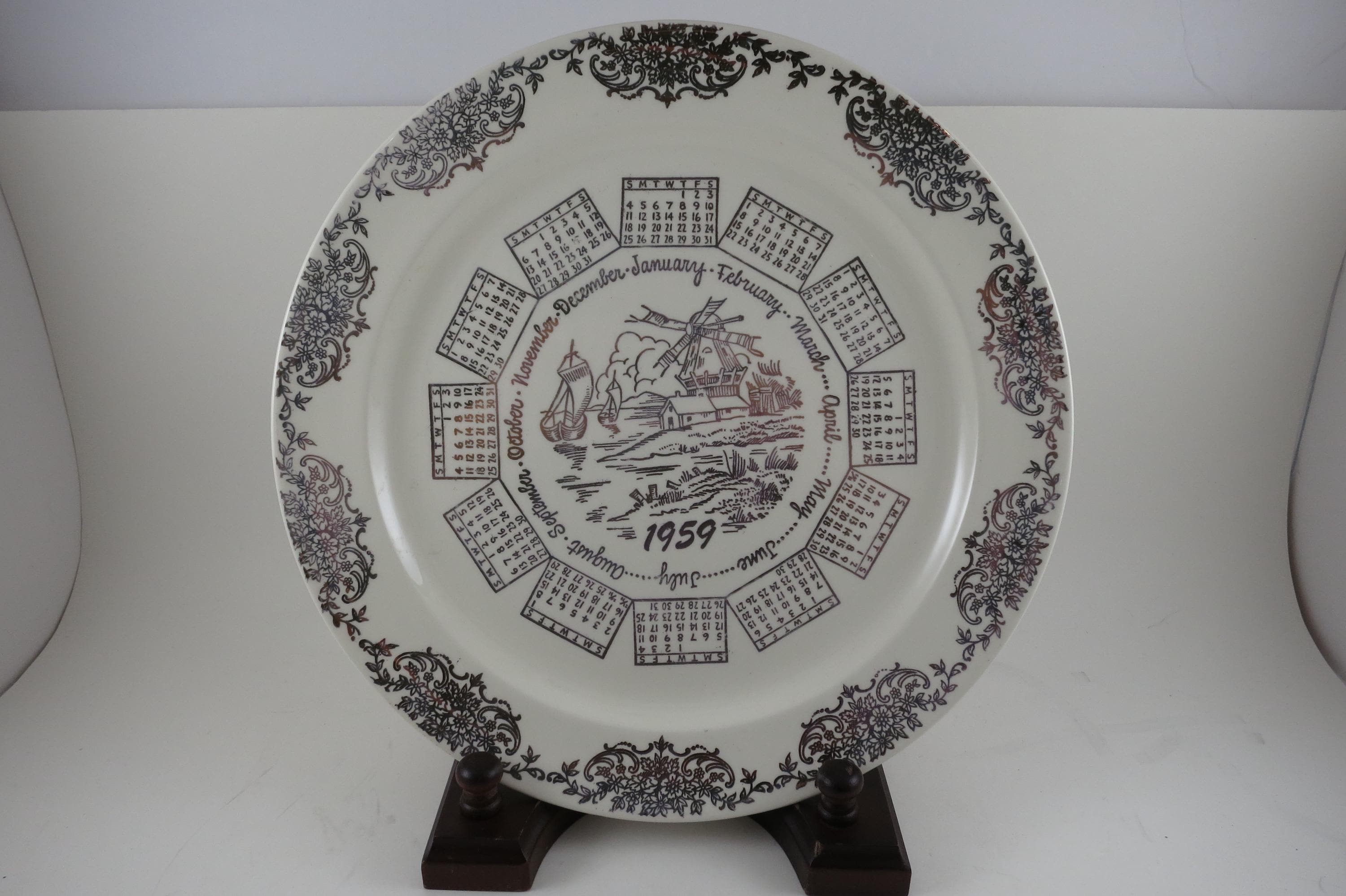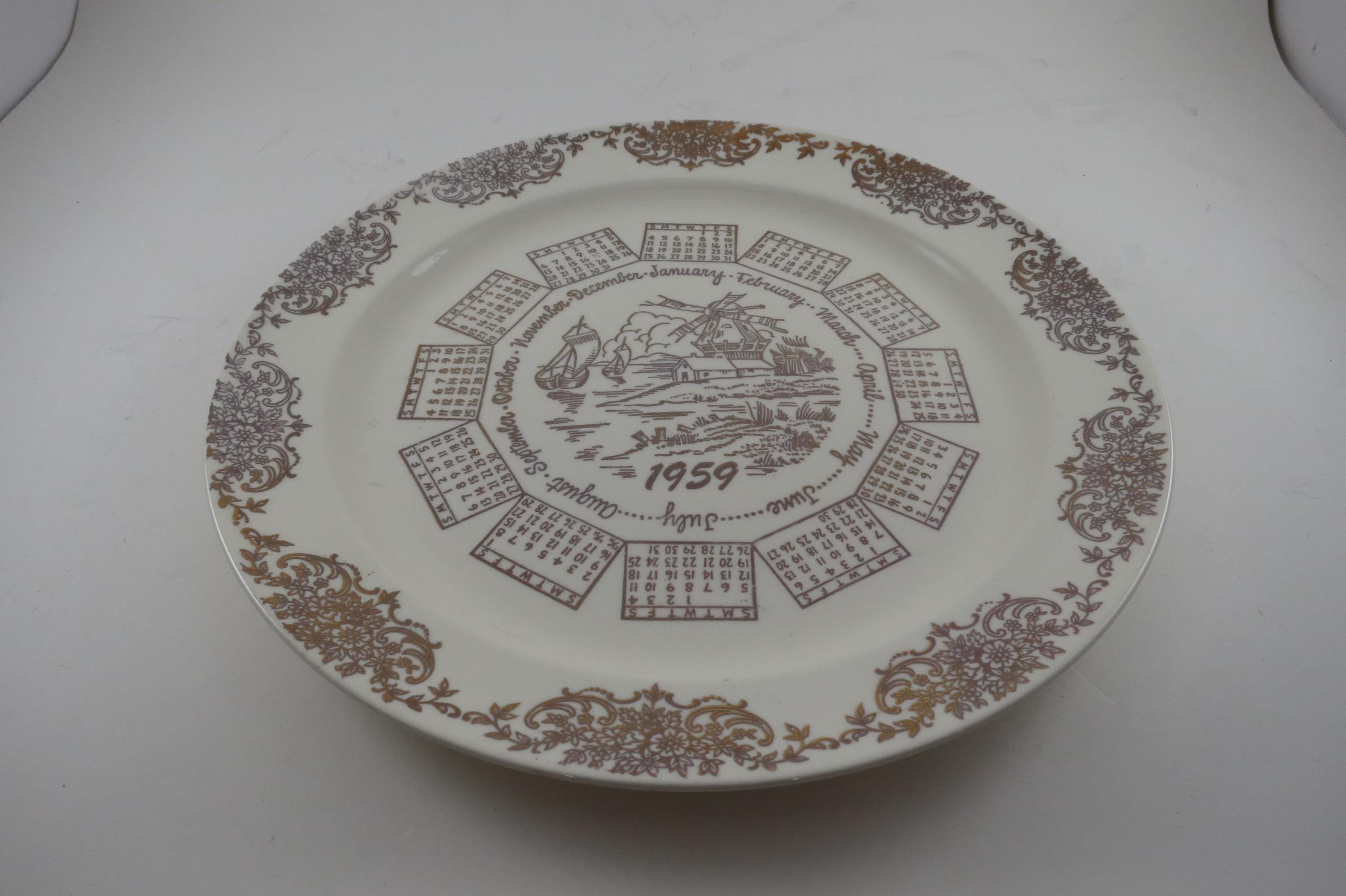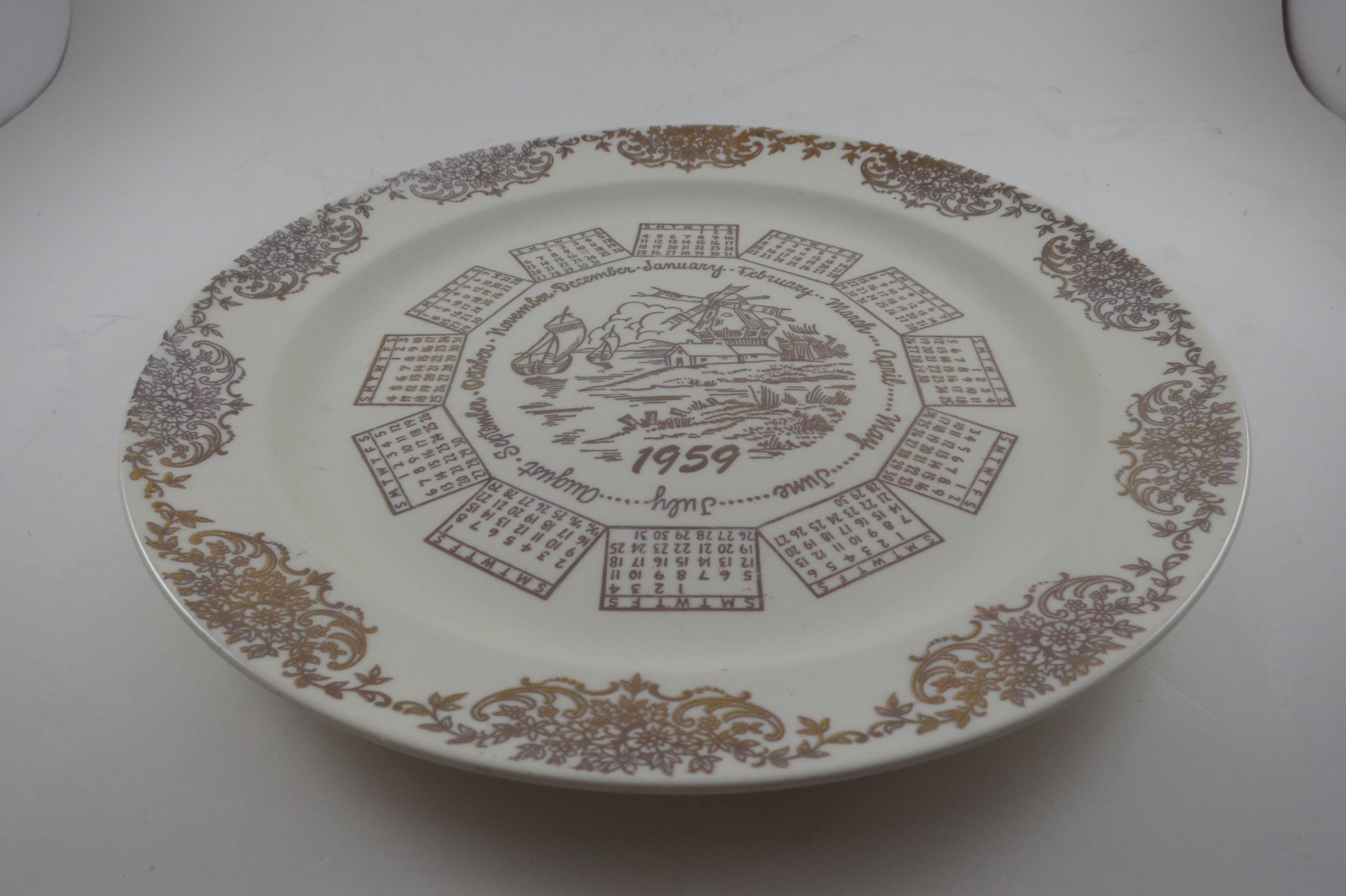 Vintage 1959 Calendar Plate Taylor Smith Taylor Ivory Gold Accents with Family Note