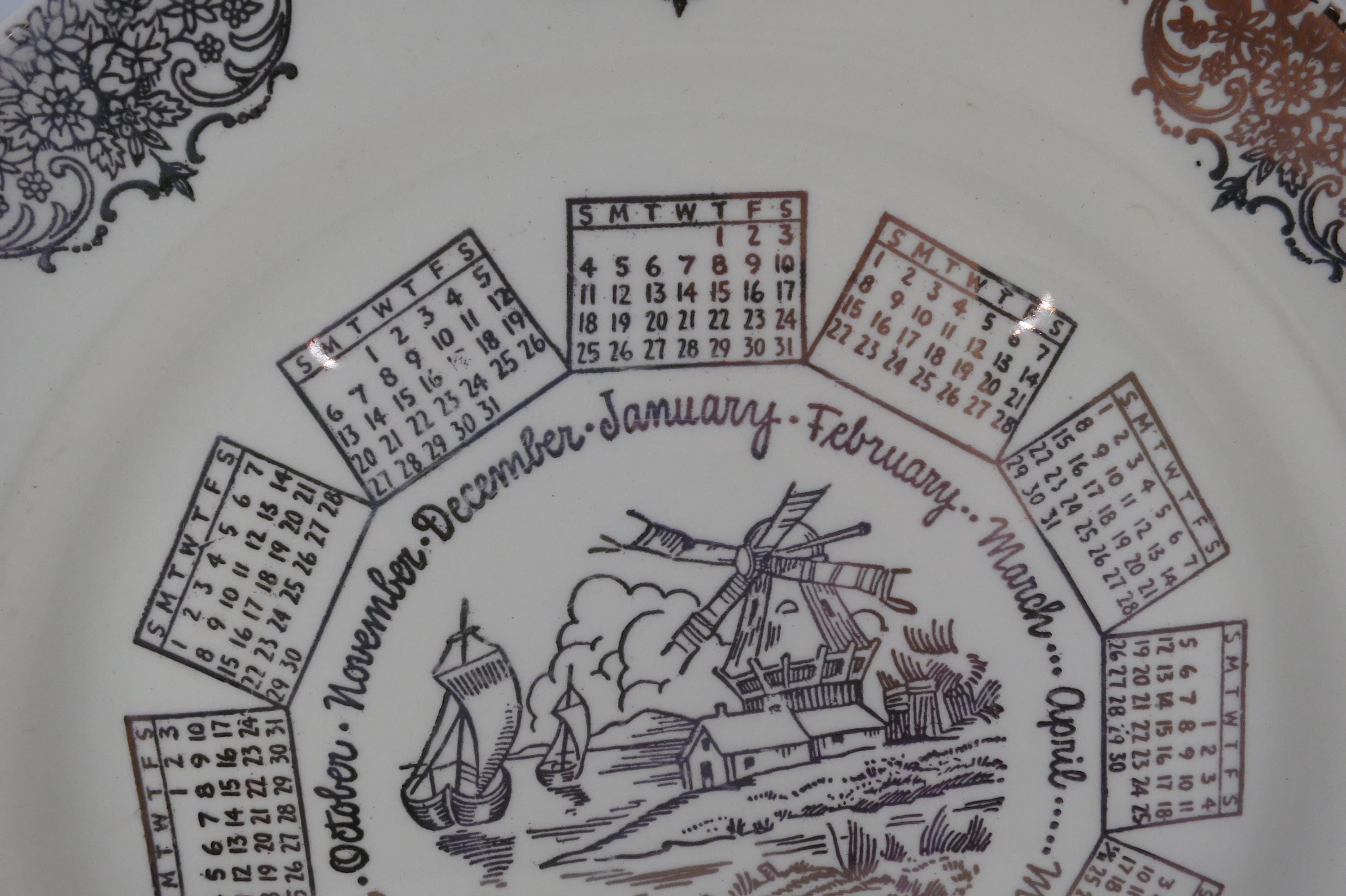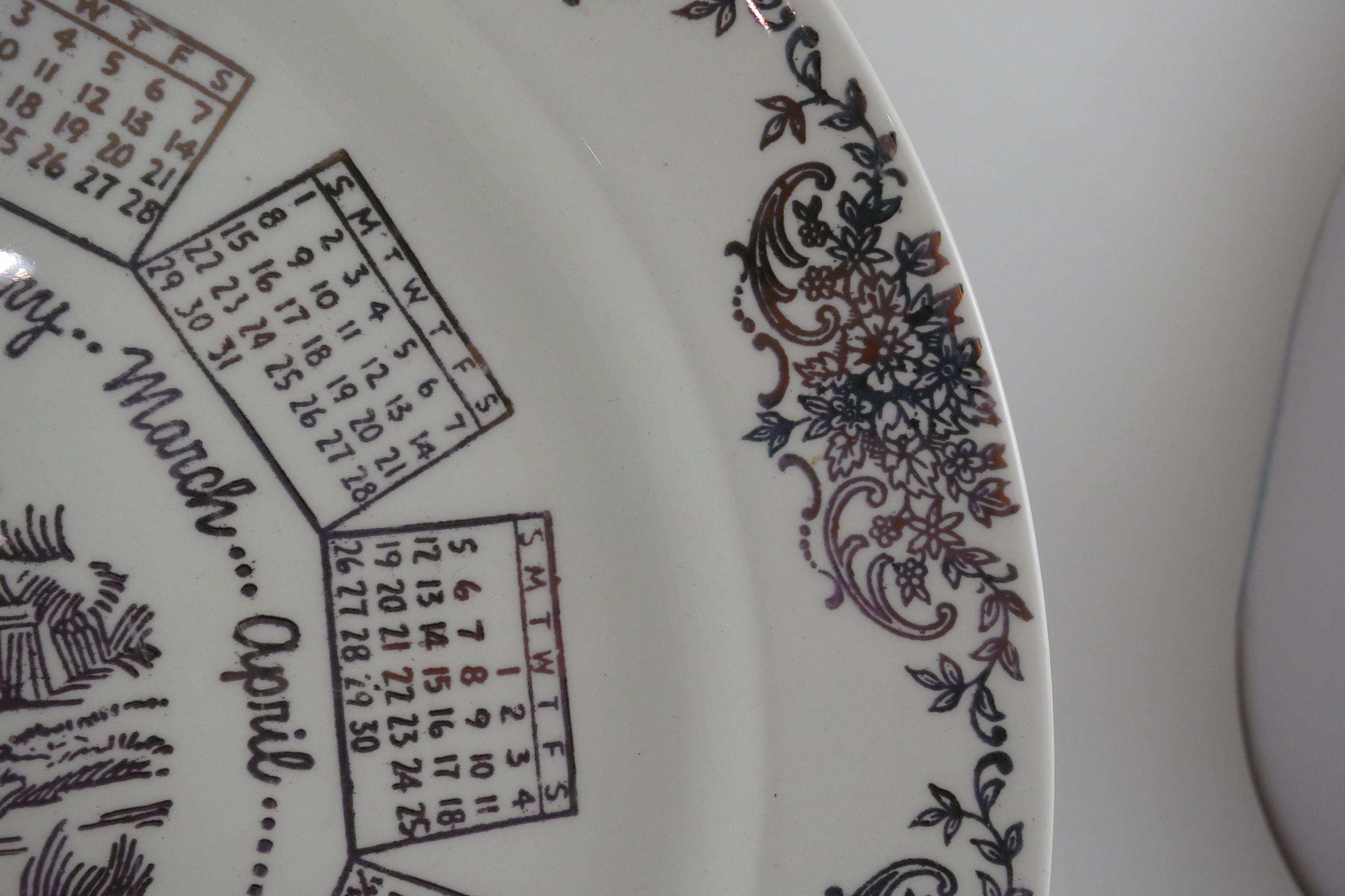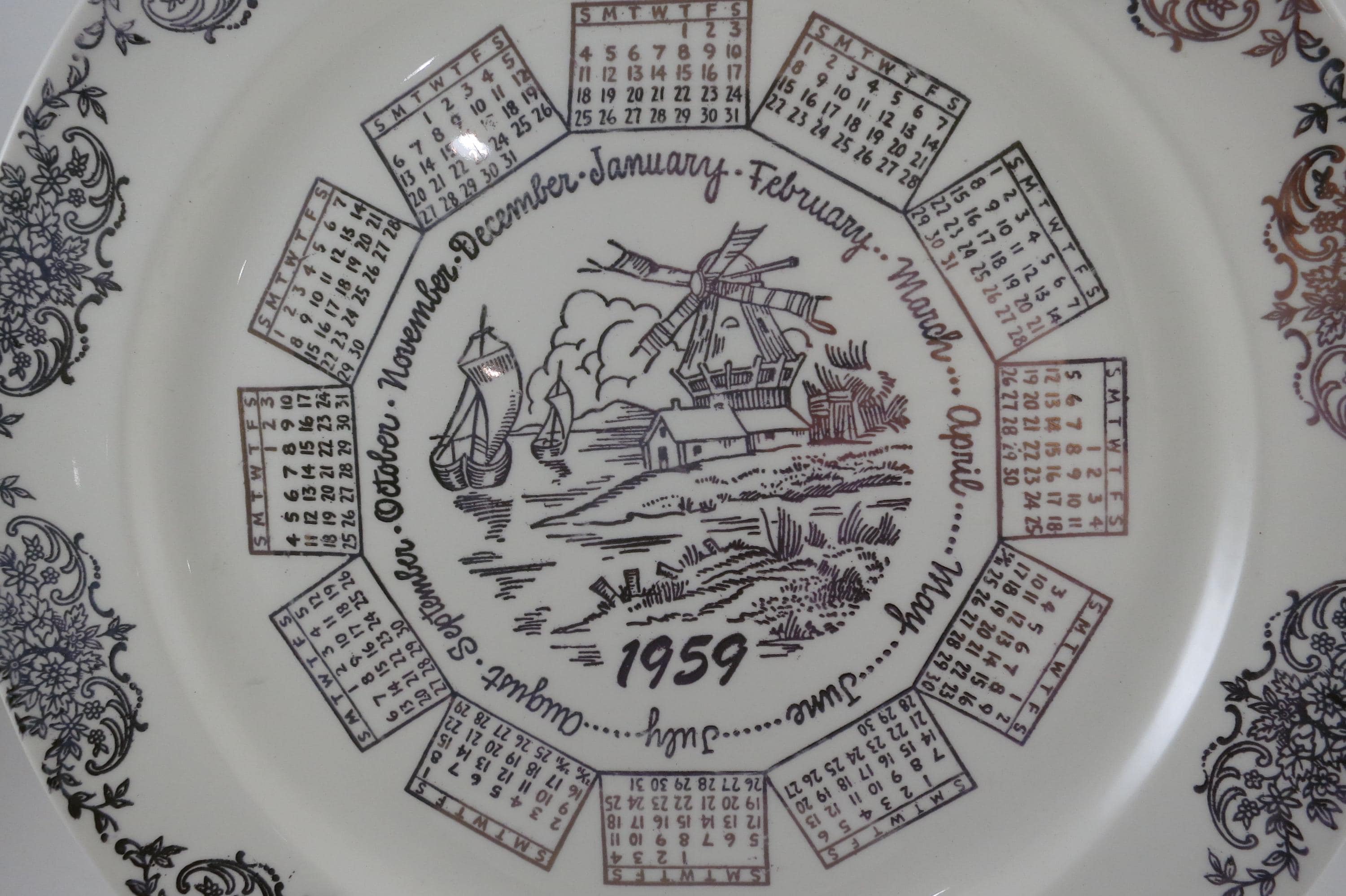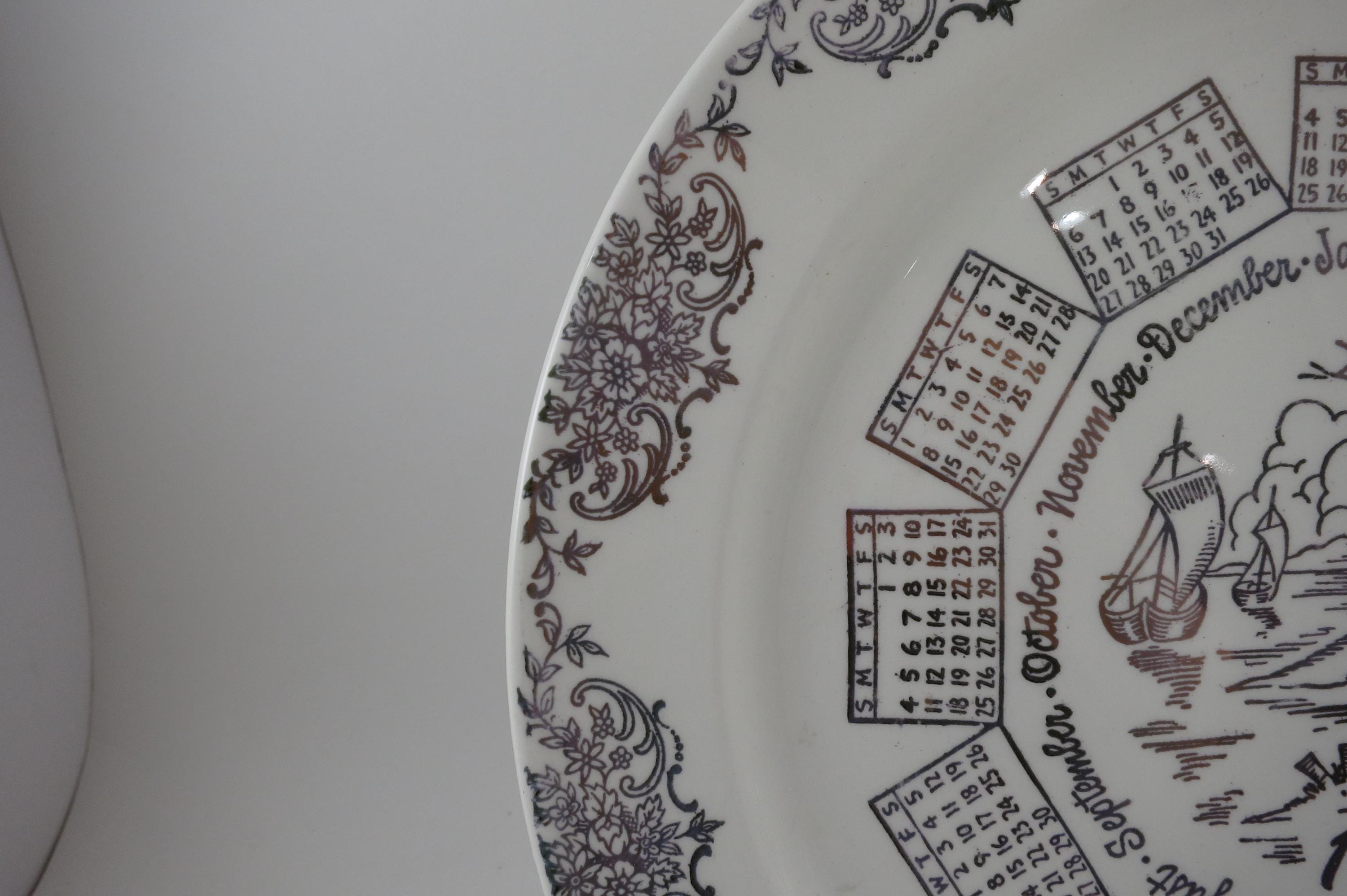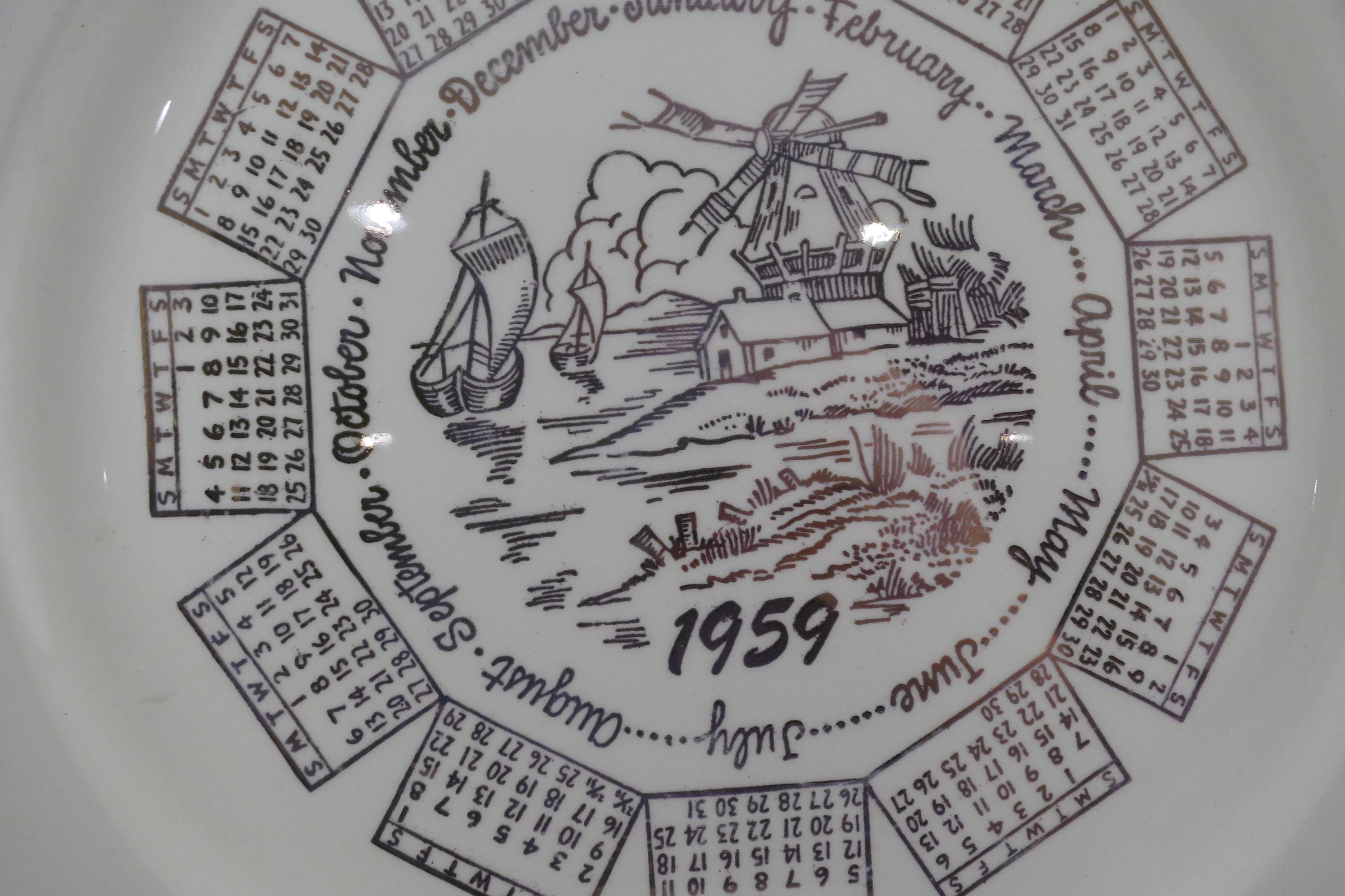 Vintage 1959 Calendar Plate Taylor Smith Taylor Ivory Gold Accents with Family Note.