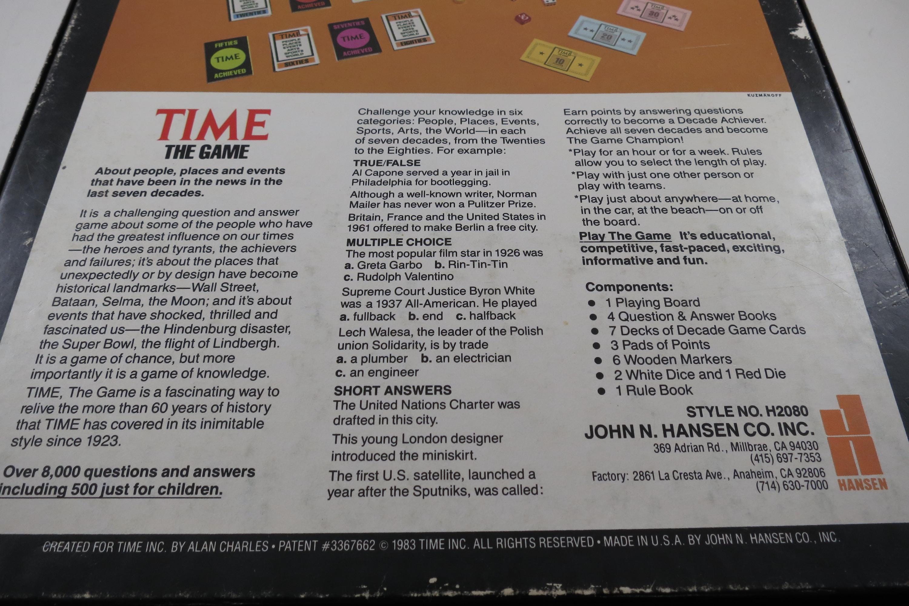 Vintage 1983 Hansen Bookshelf Time The Game 100% Complete.