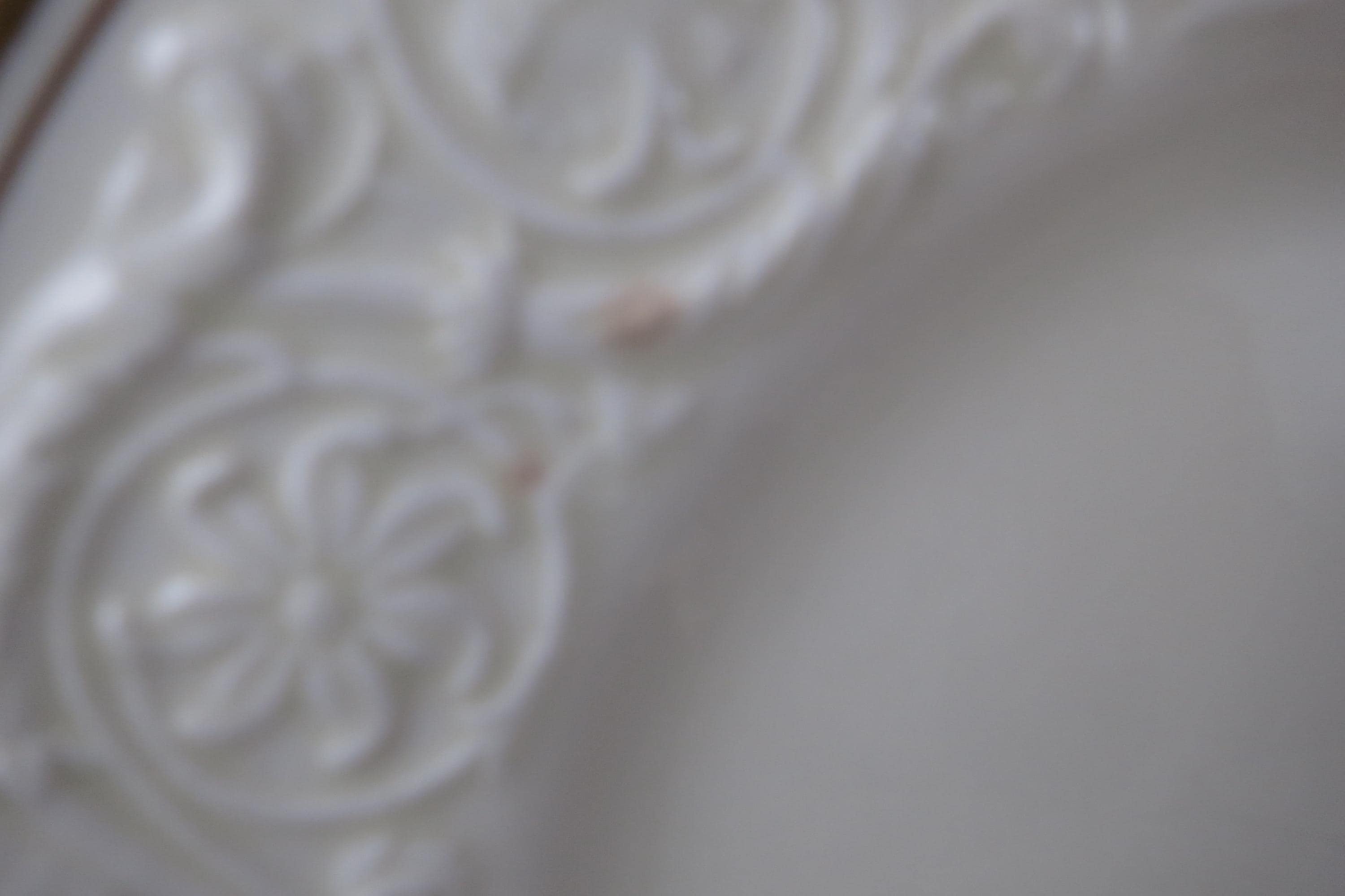 These 7 plates are in very good condition. They are chip and crack free but do have small brown spots in the porcelain, common for this type. These will work quite well with frequently used sets, several of them have barely visible spots.