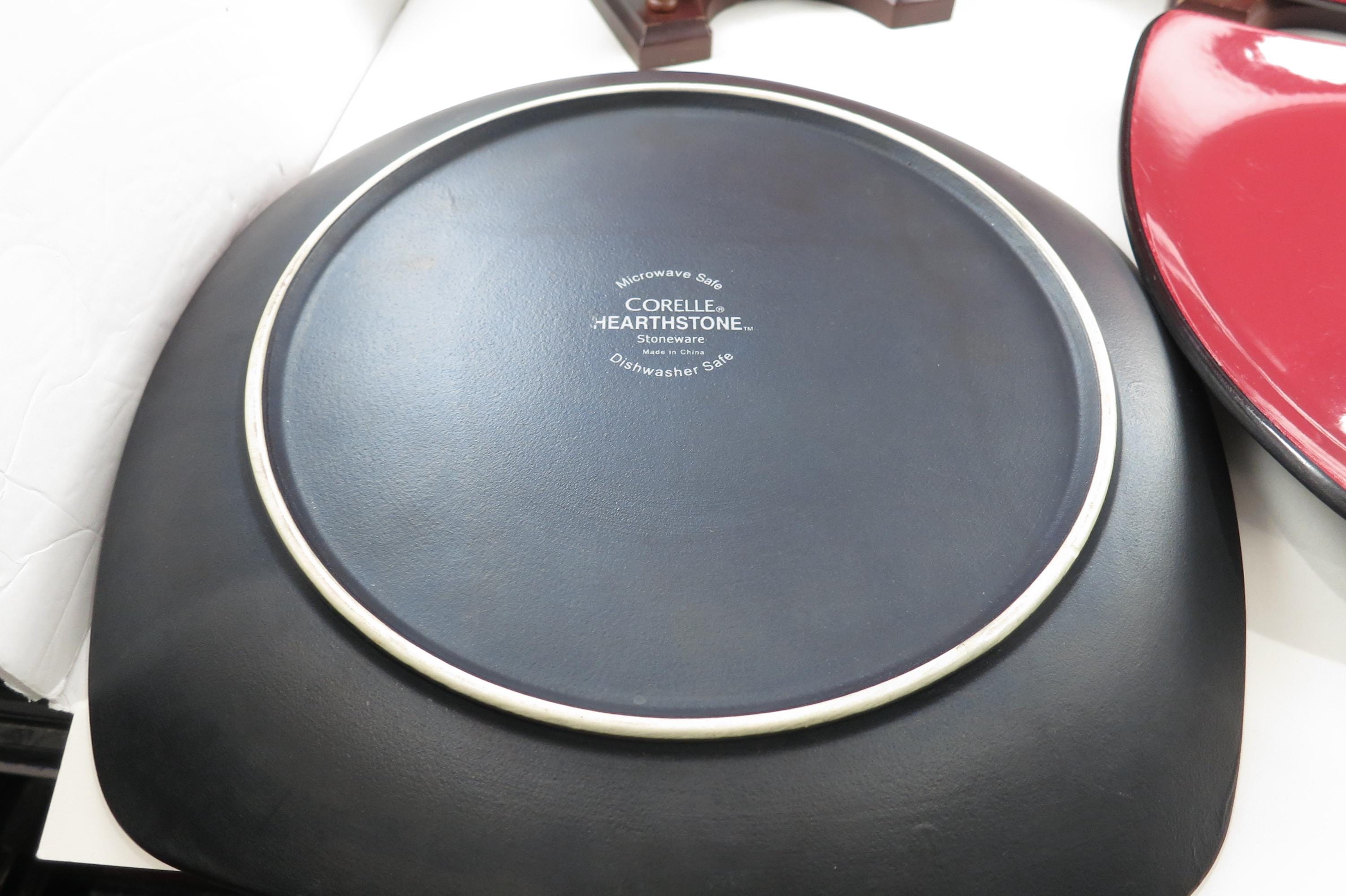 Set of 4 Corelle Hearthstone Chili Red Square 11 3/4 Inch Dinner Plates