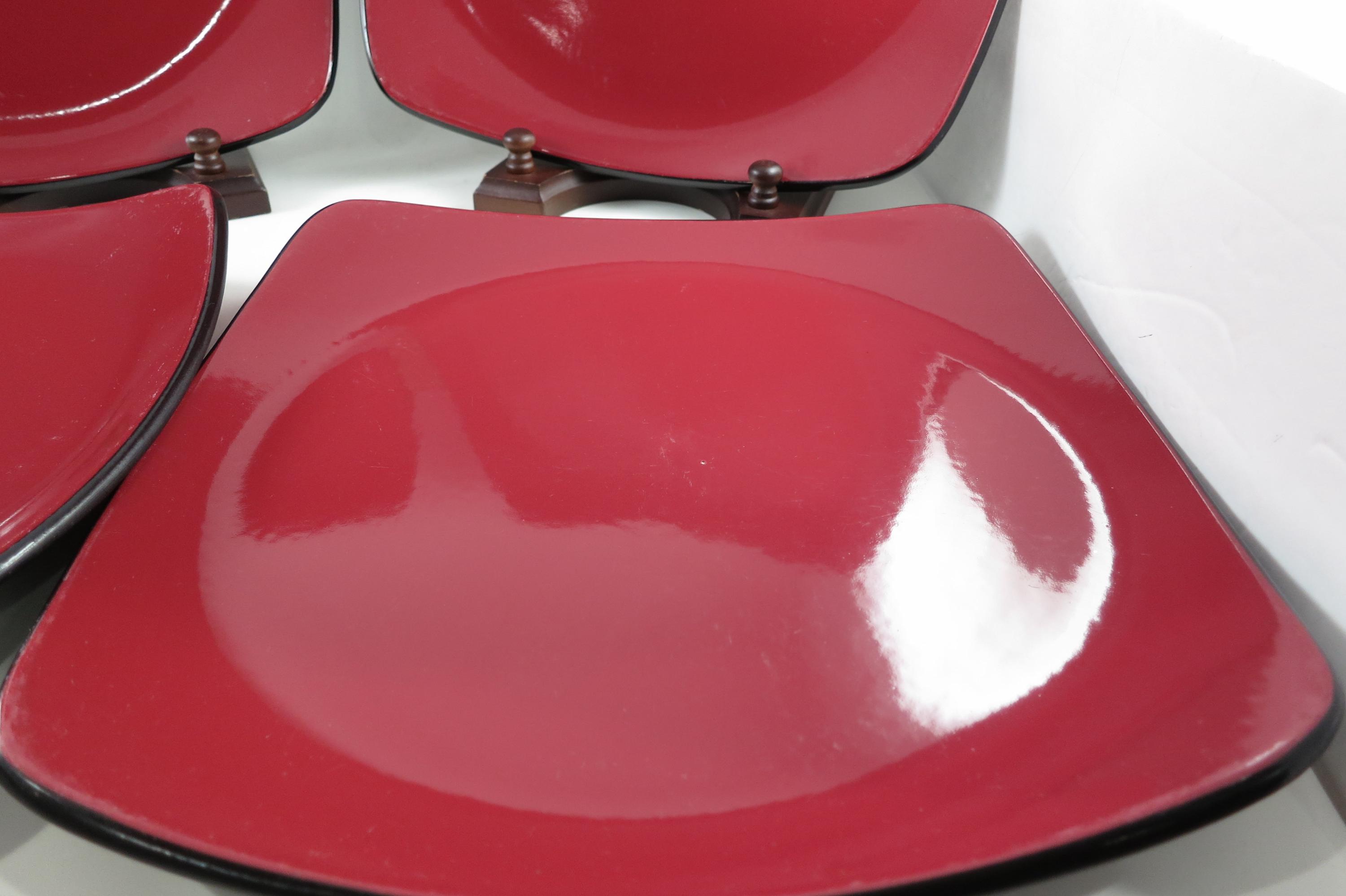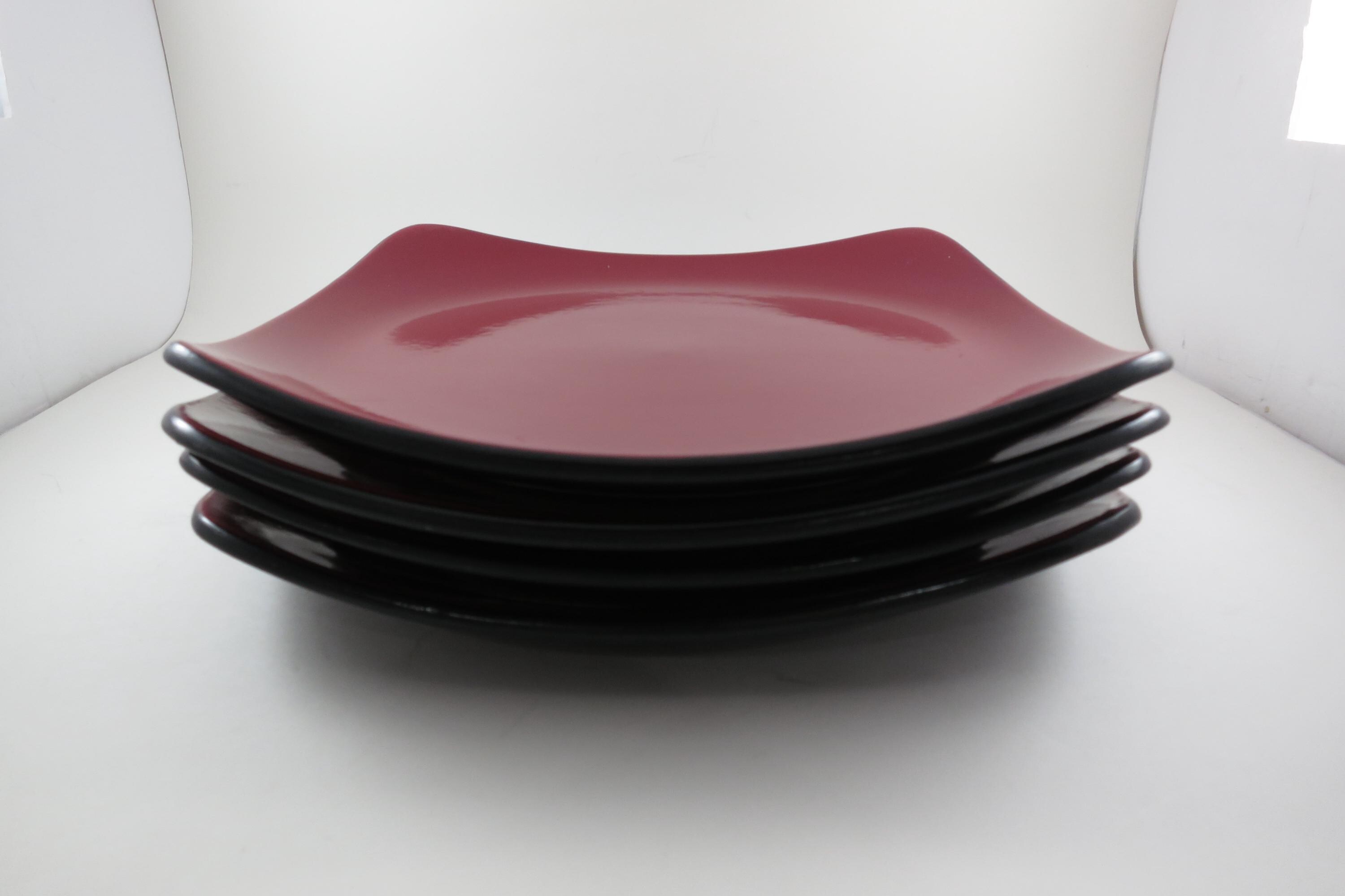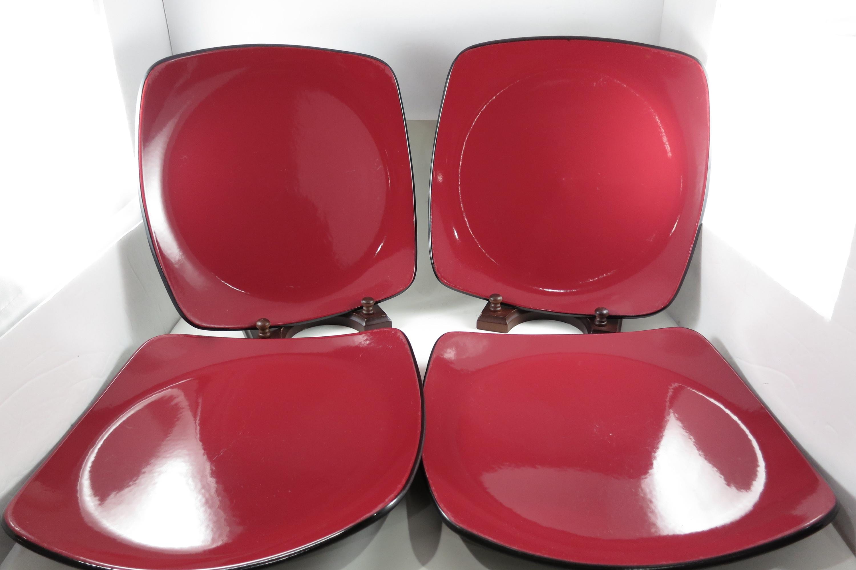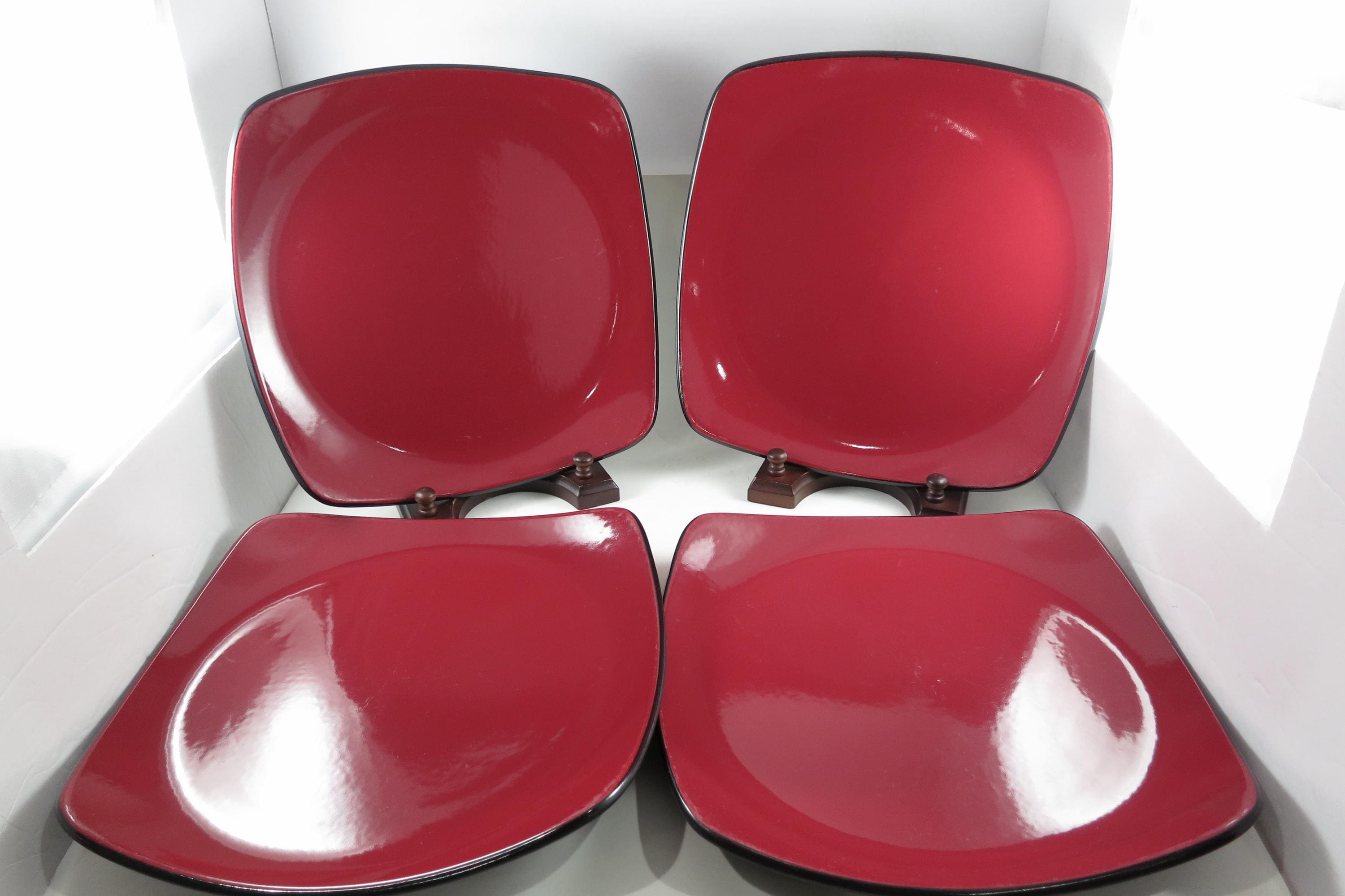 All four plates are in excellent condition with no chips, cracks or damages. These are the Square Chili Red Pattern. Each measures 11 3/4 inches.
