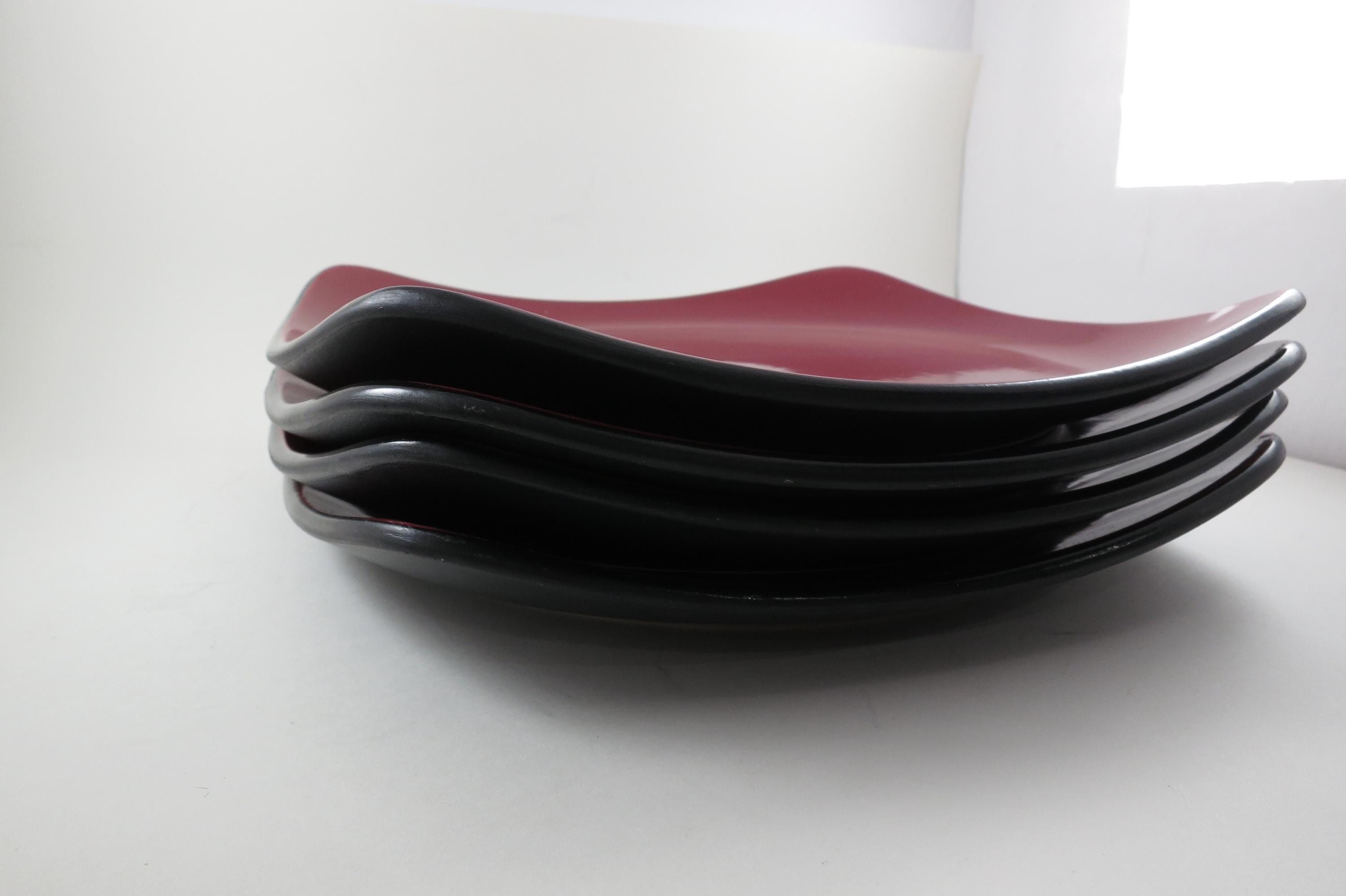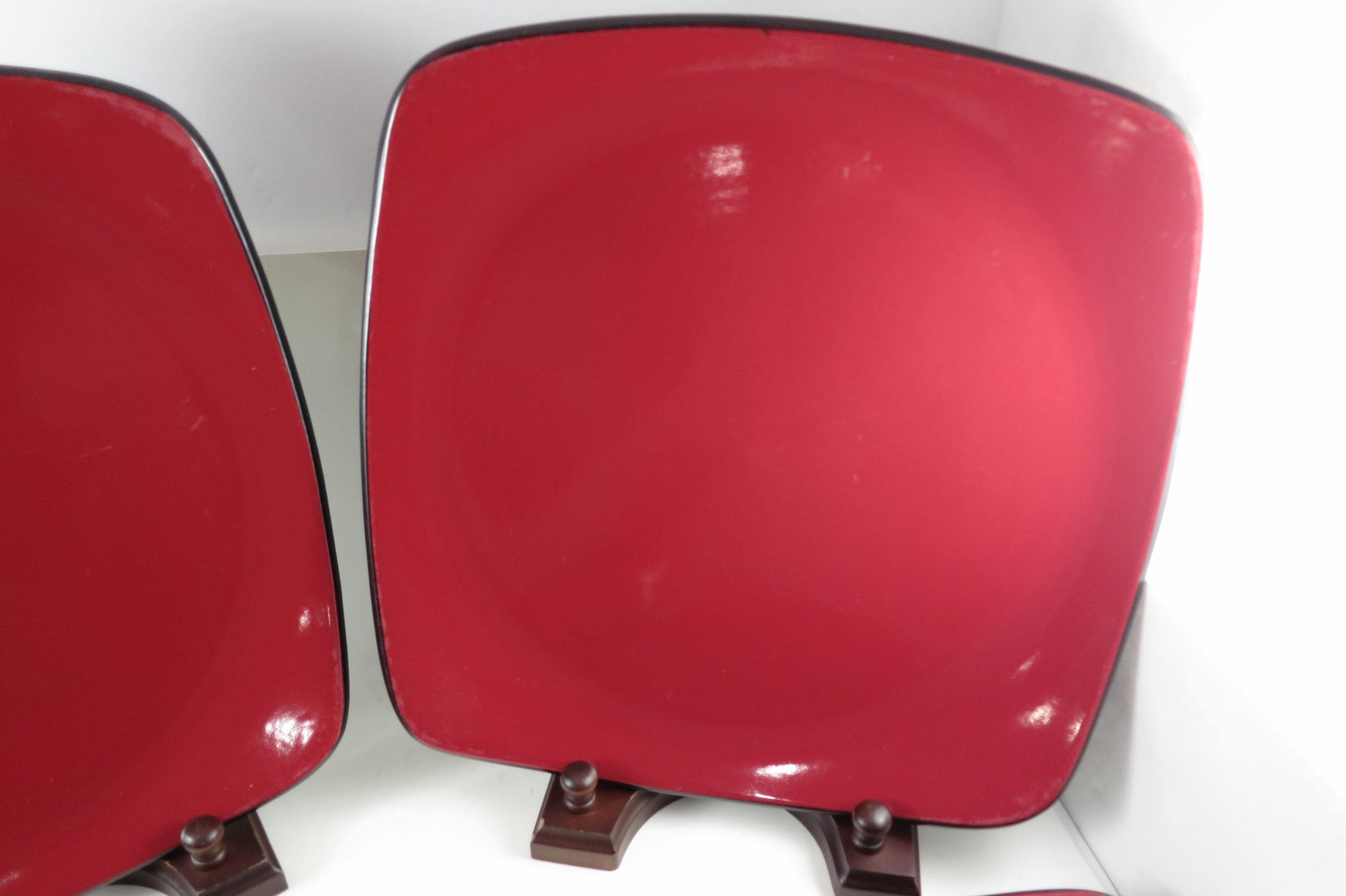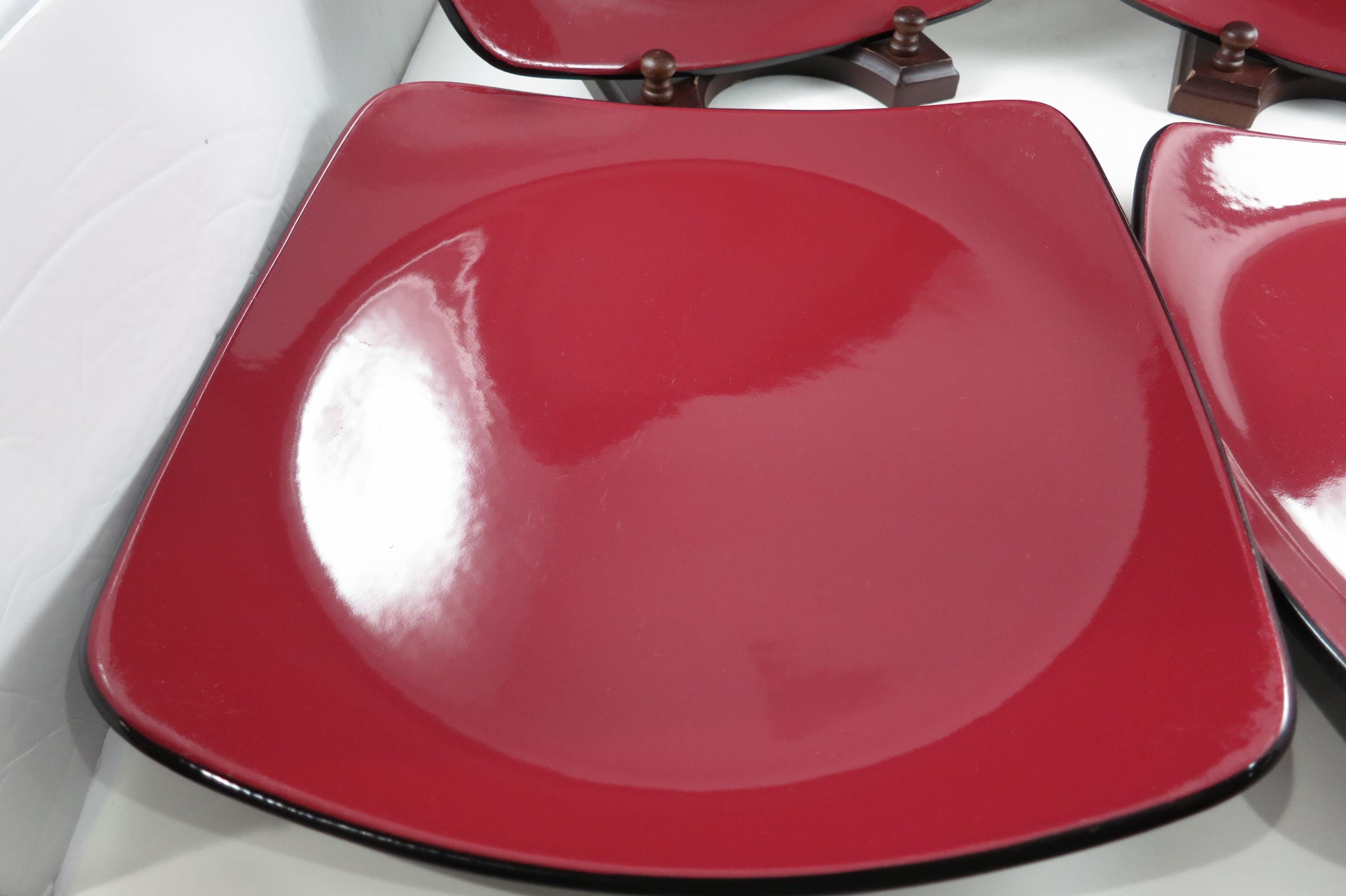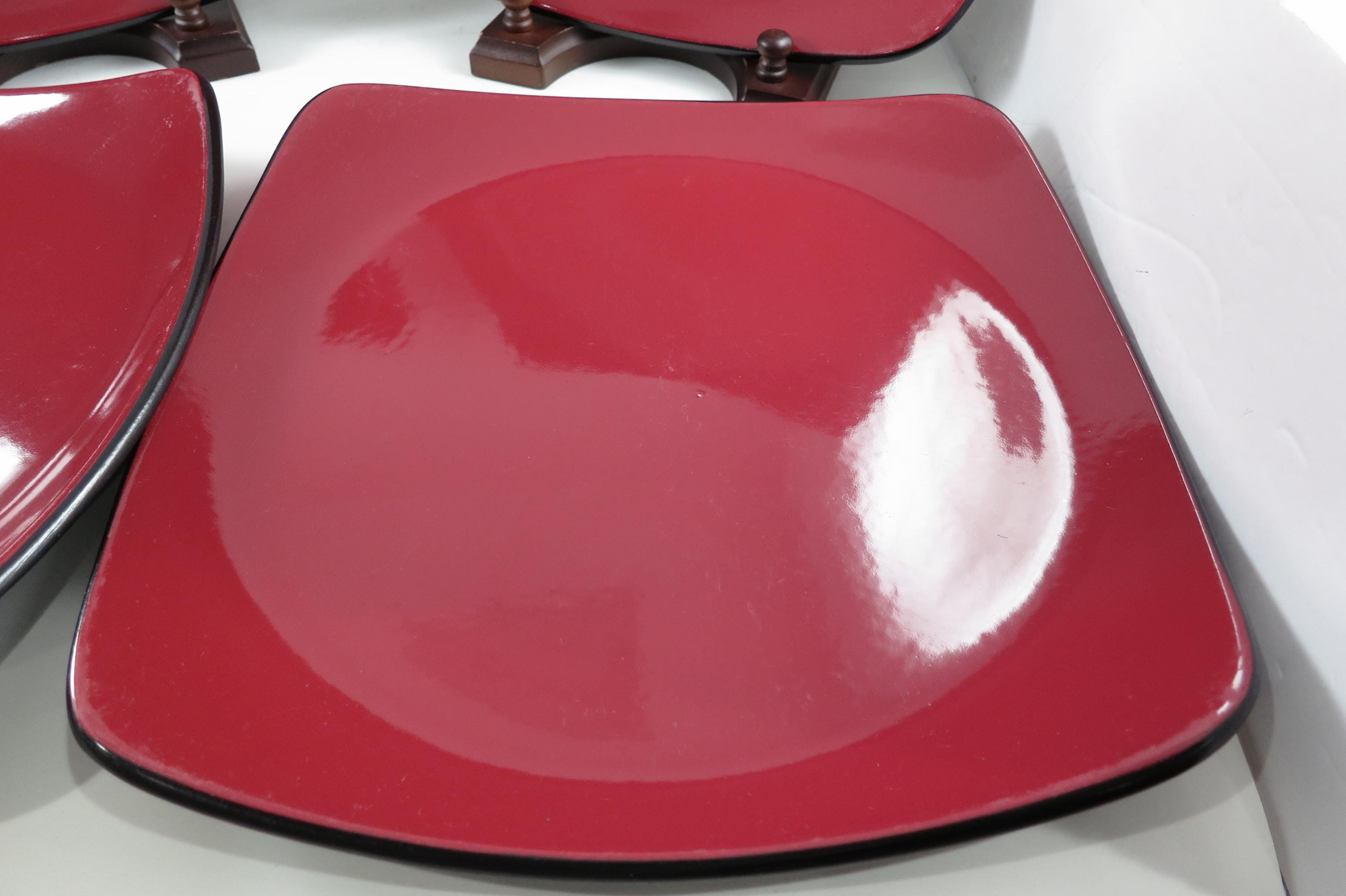 All four plates are in excellent condition with no chips, cracks or damages. These are the Square Chili Red Pattern. Each measures 11 3/4 inches.