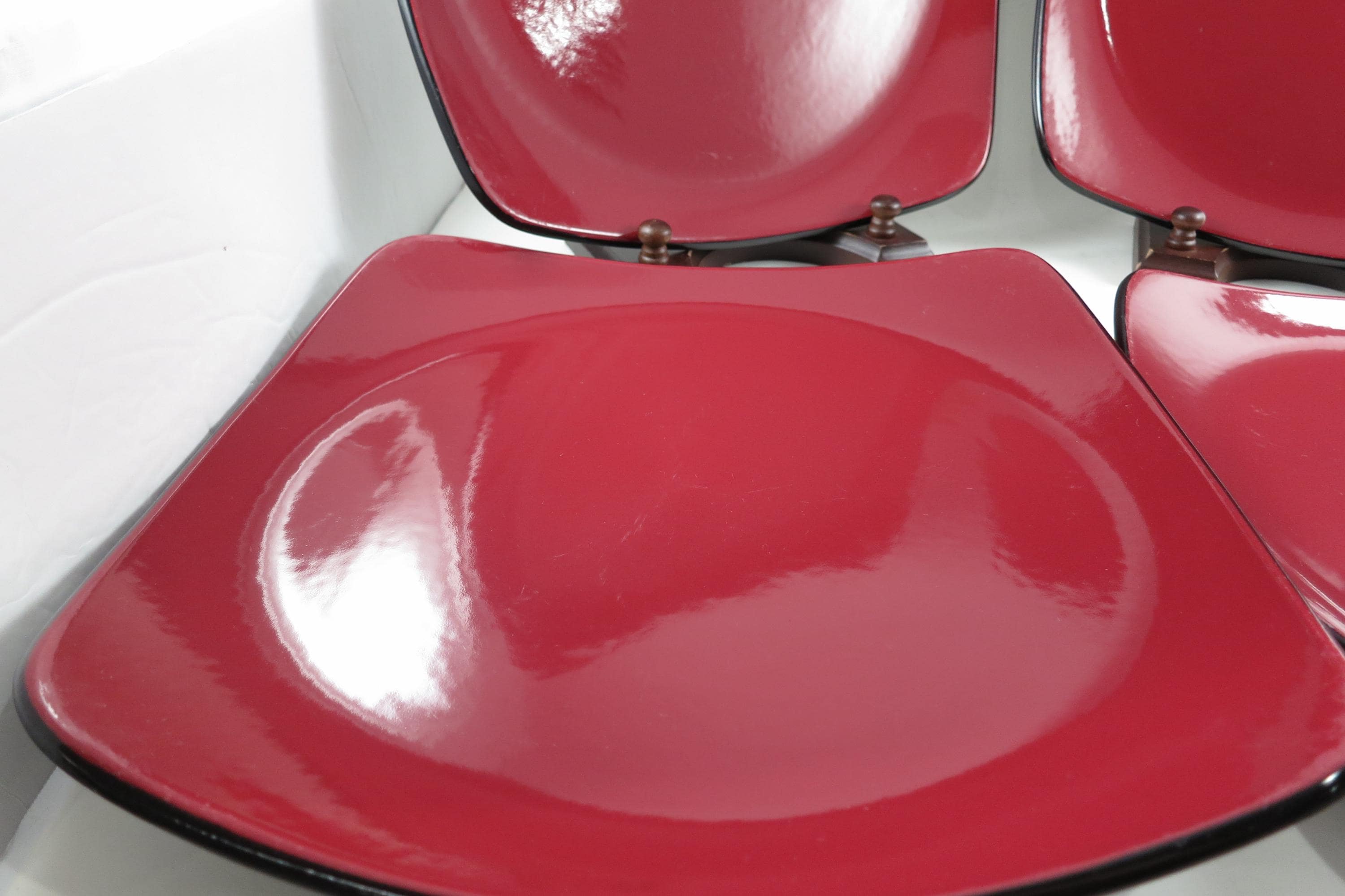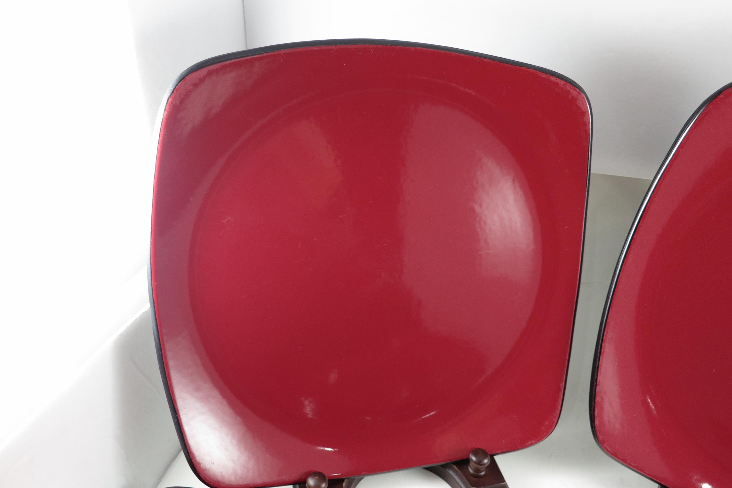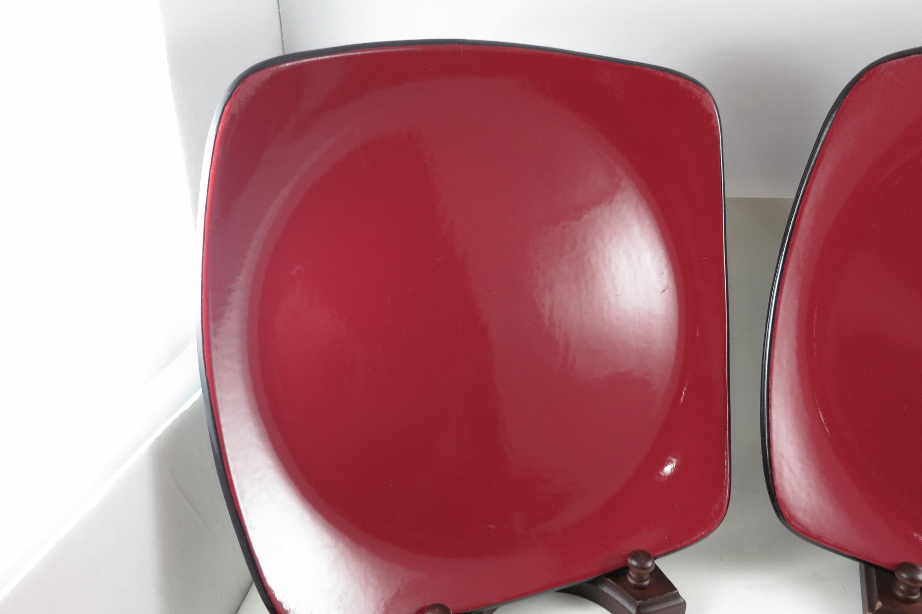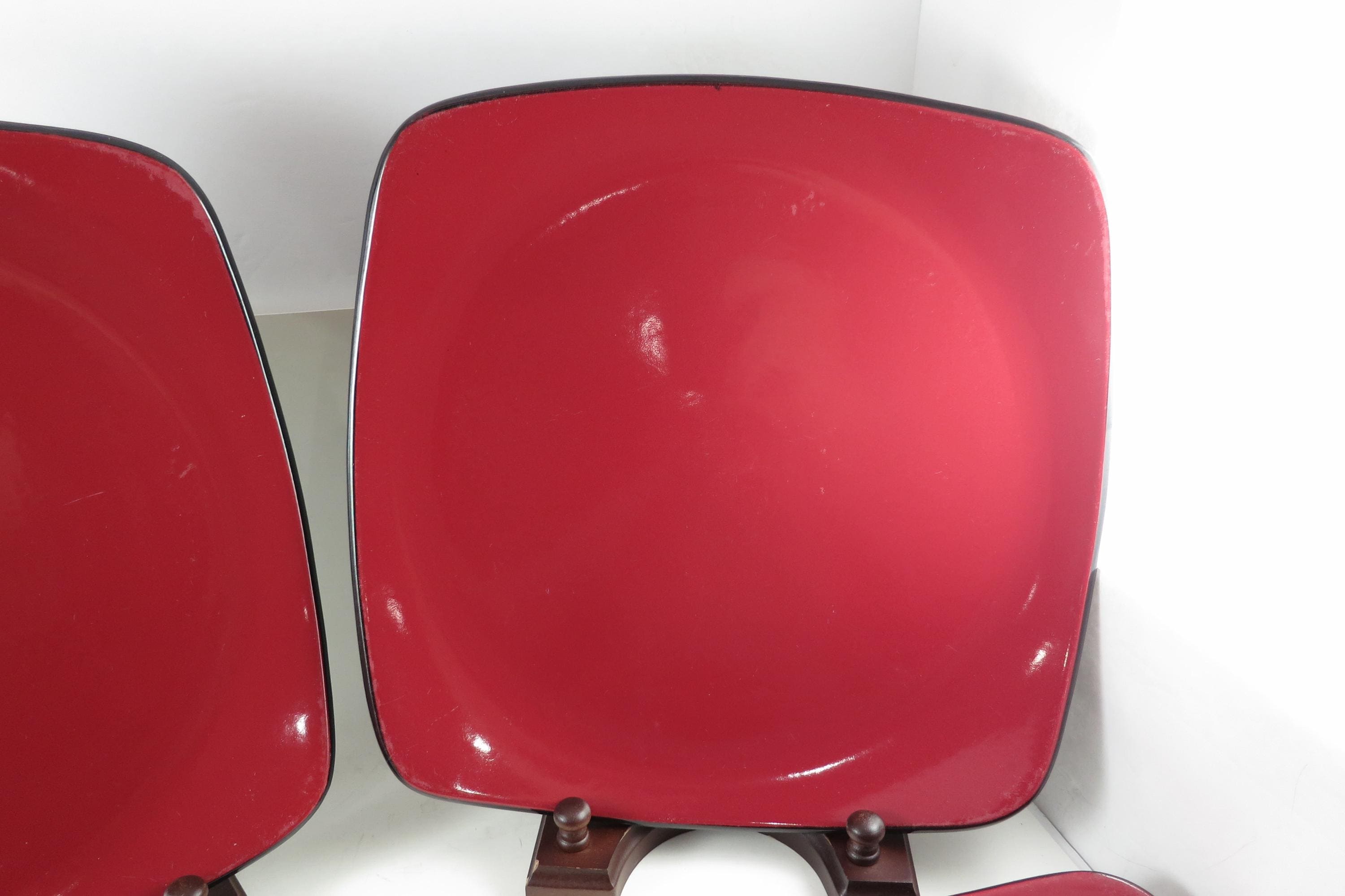 All four plates are in excellent condition with no chips, cracks or damages. These are the Square Chili Red Pattern. Each measures 11 3/4 inches.
