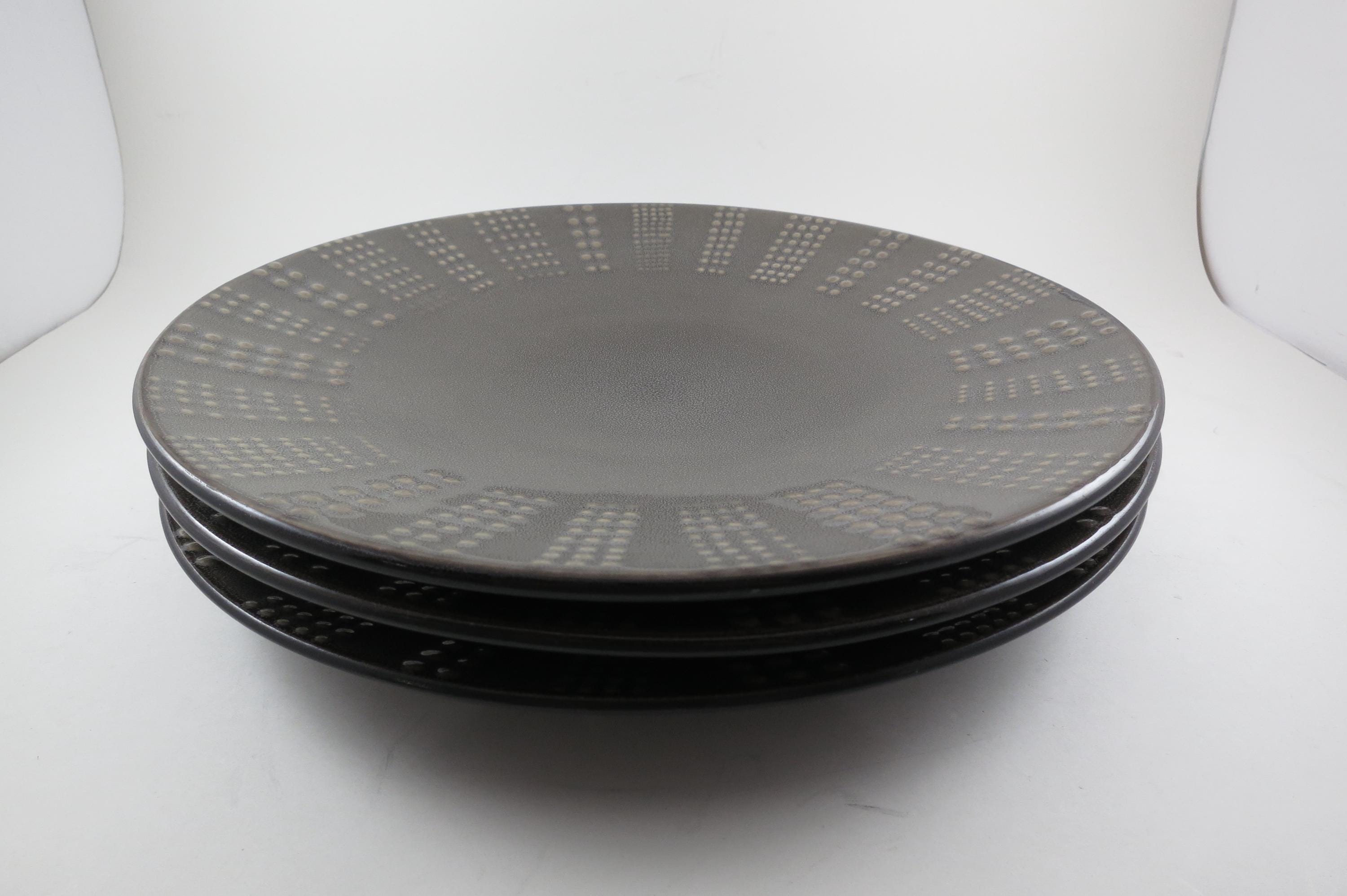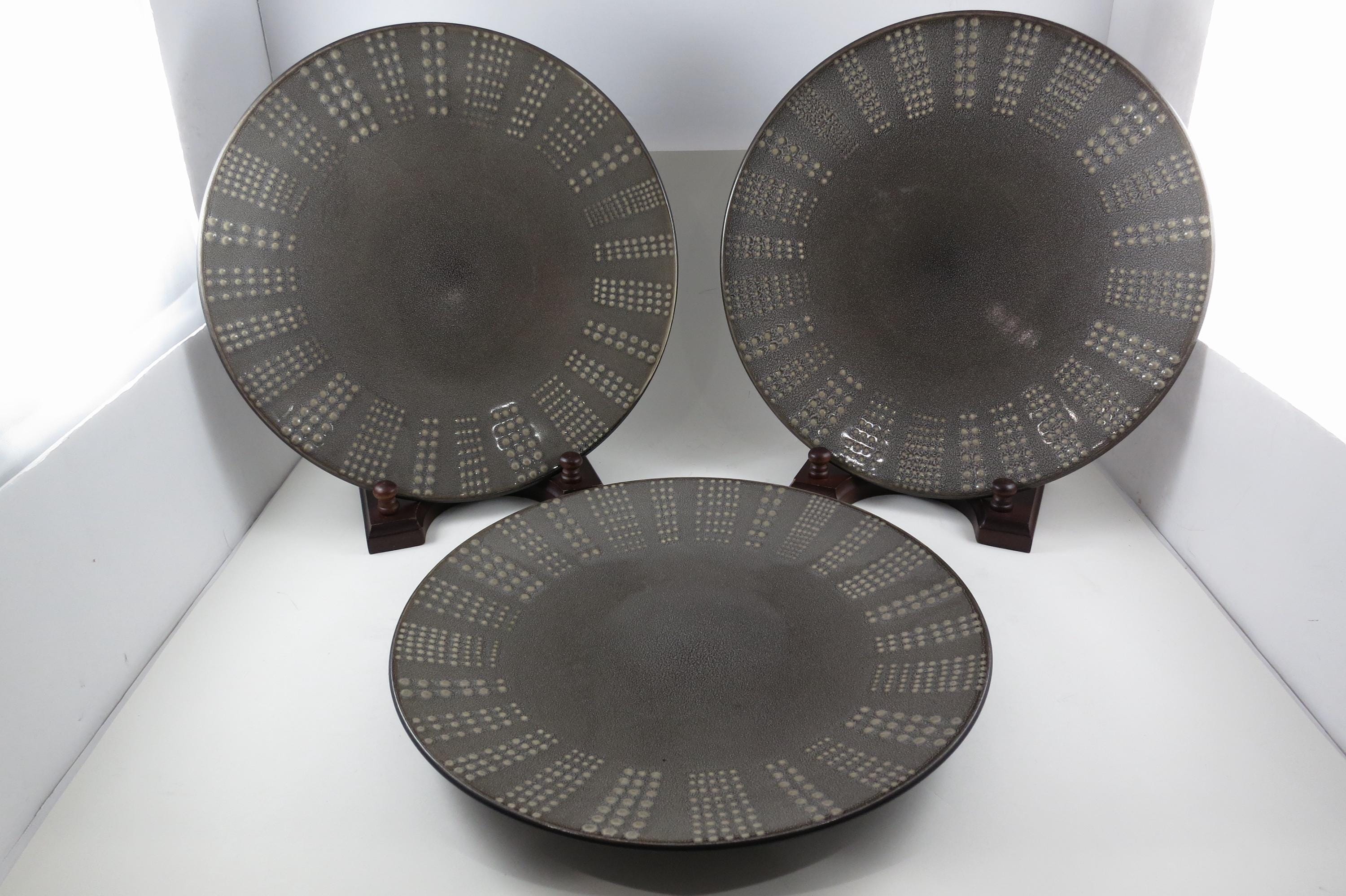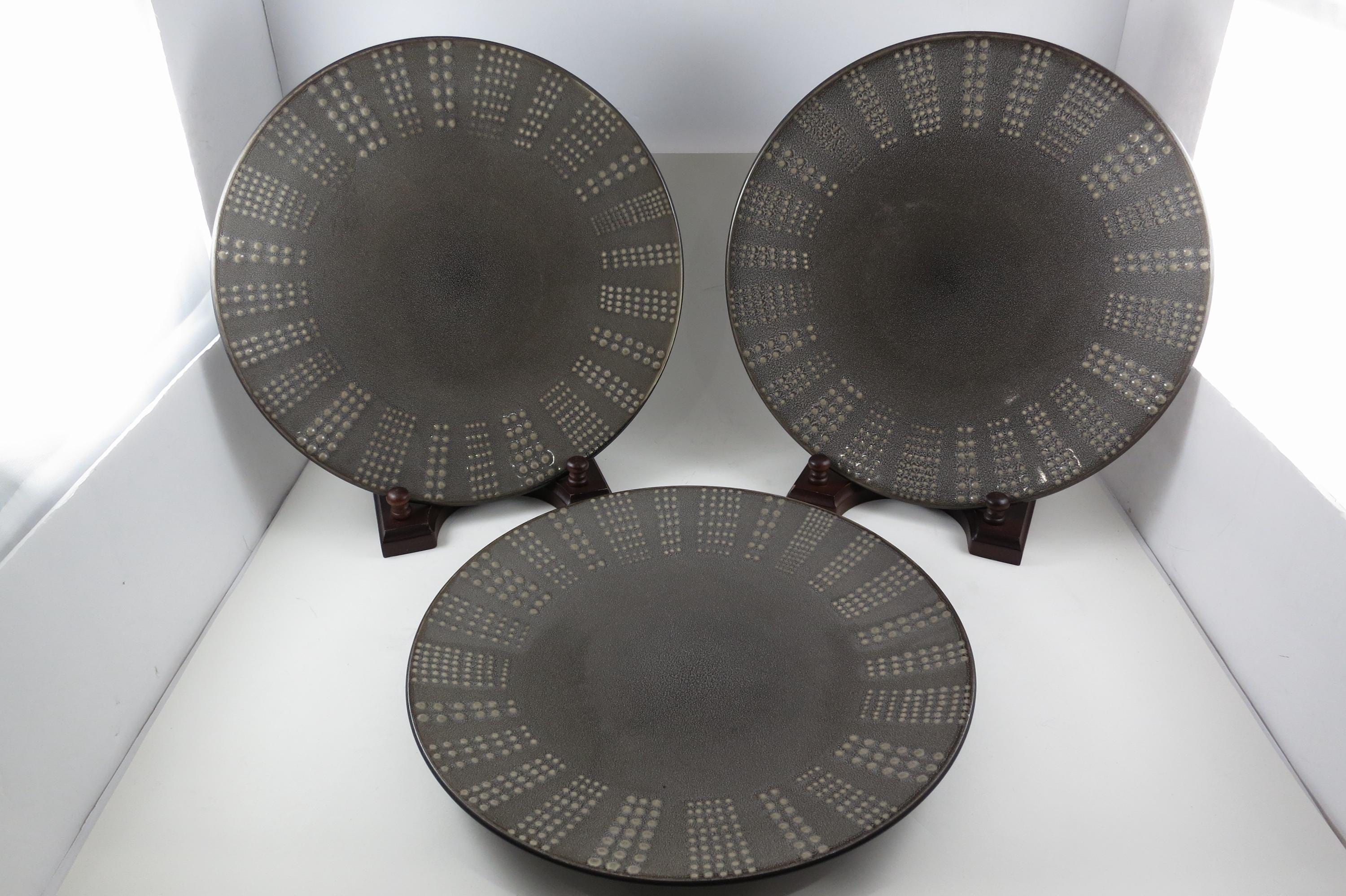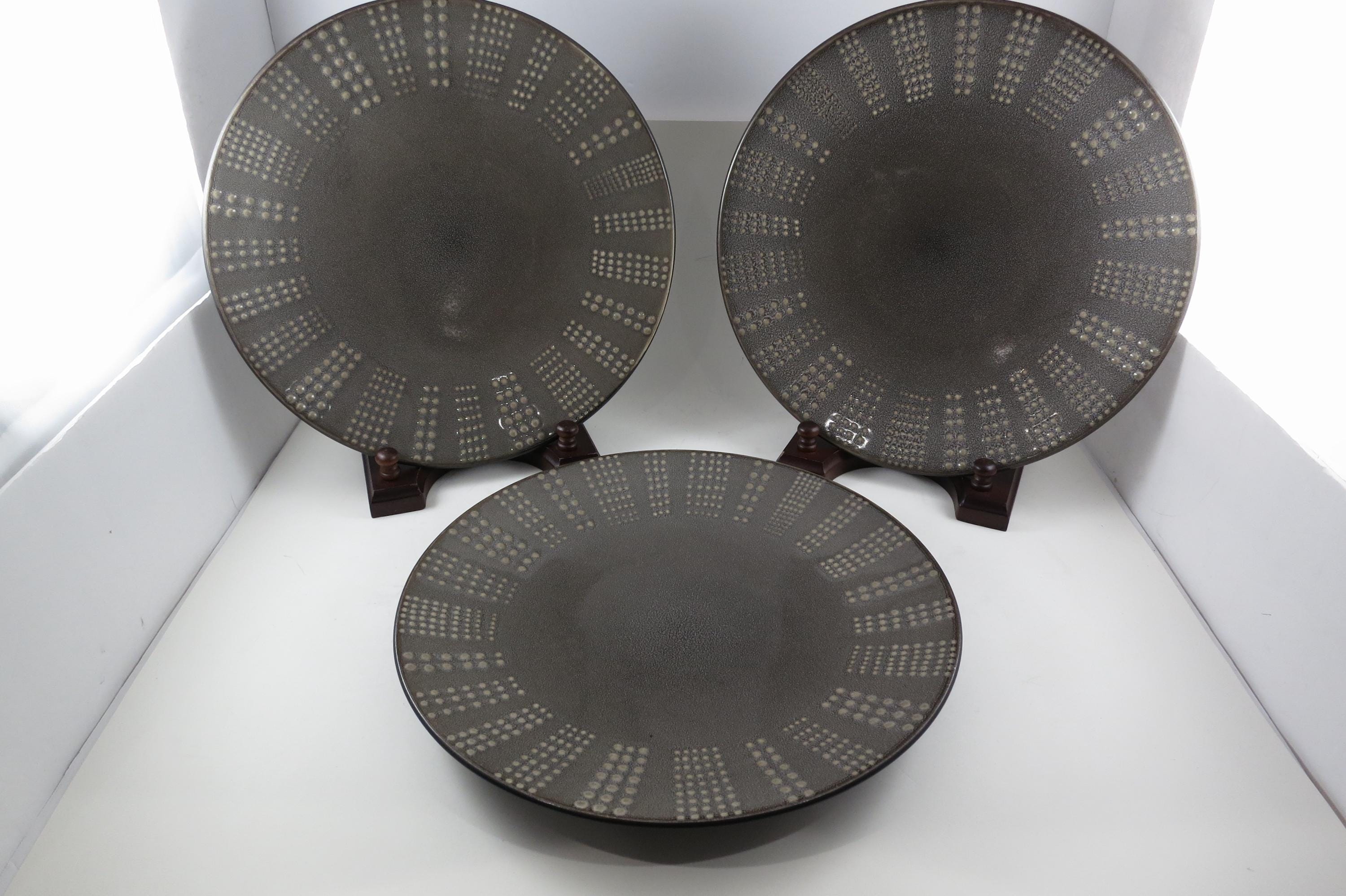 Set of Three Vintage Mikasa Gourmet Basics Daymon Heather Gray Pattern 11 1/8 Inch Dinner Plates.