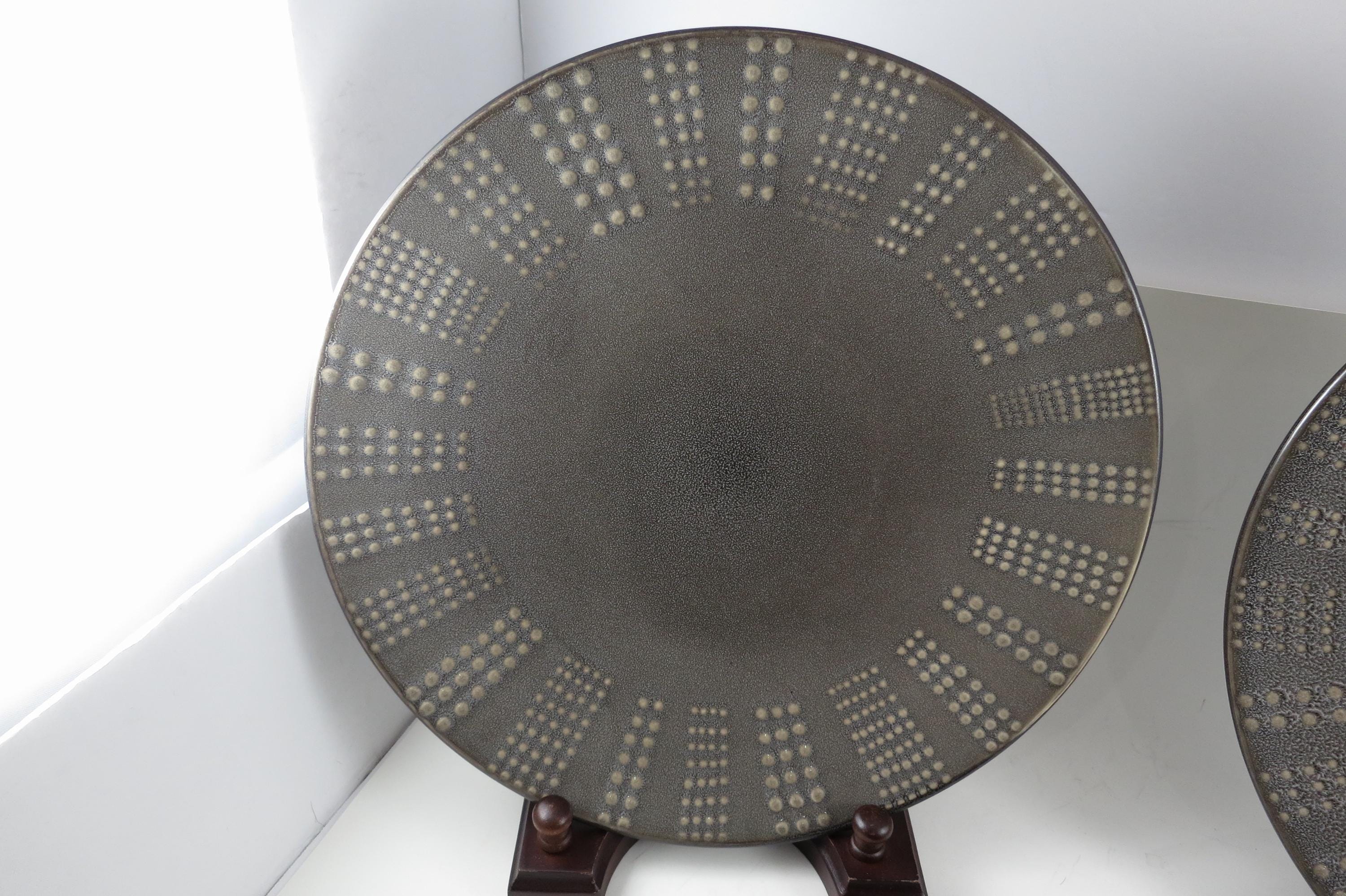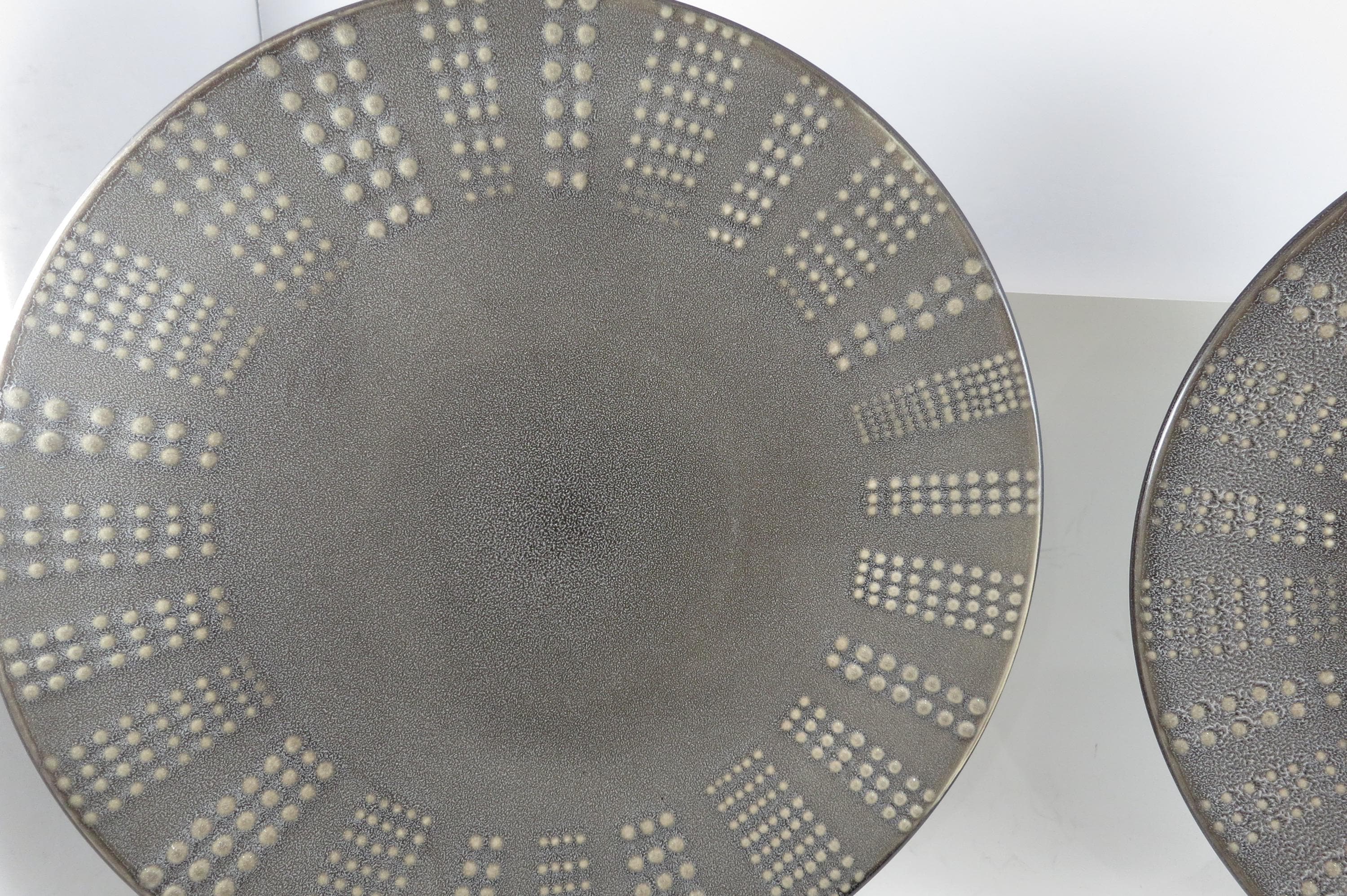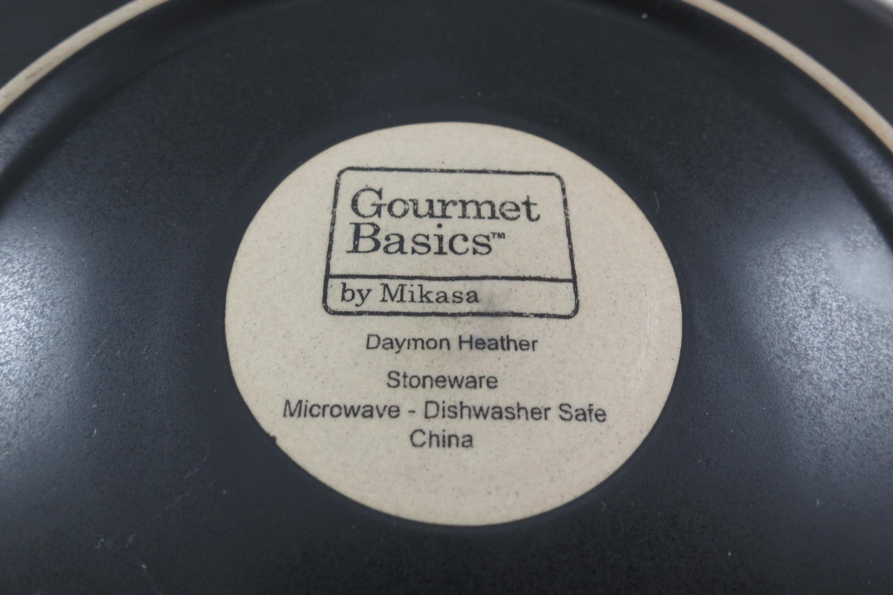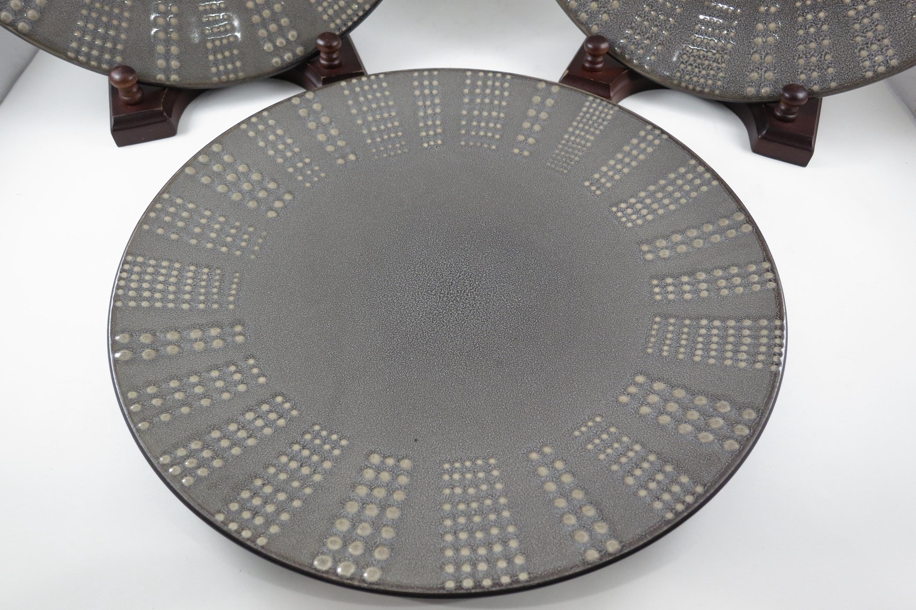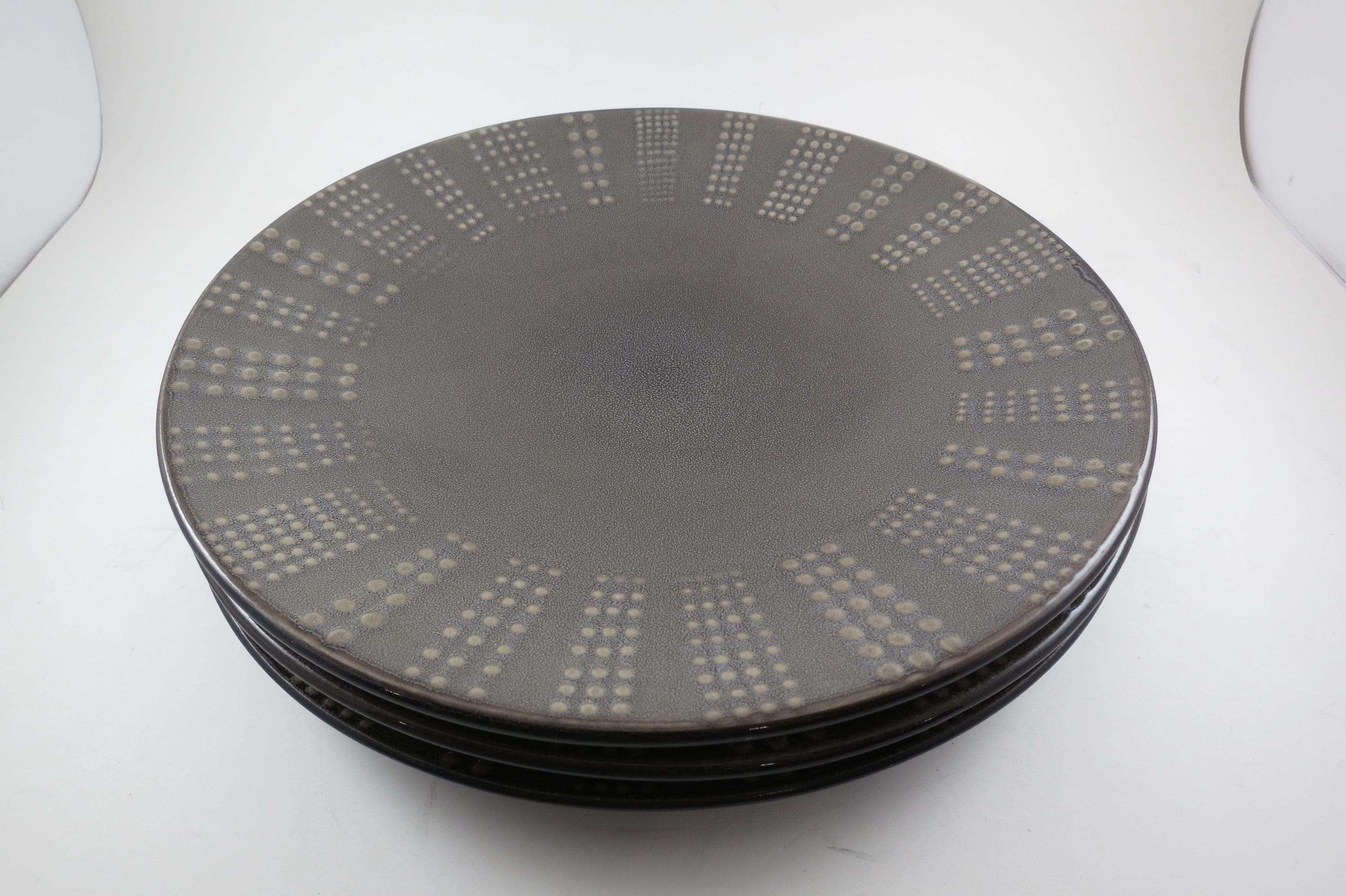 Set of Three Vintage Mikasa Gourmet Basics Daymon Heather Gray Pattern 11 1/8 Inch Dinner Plates.