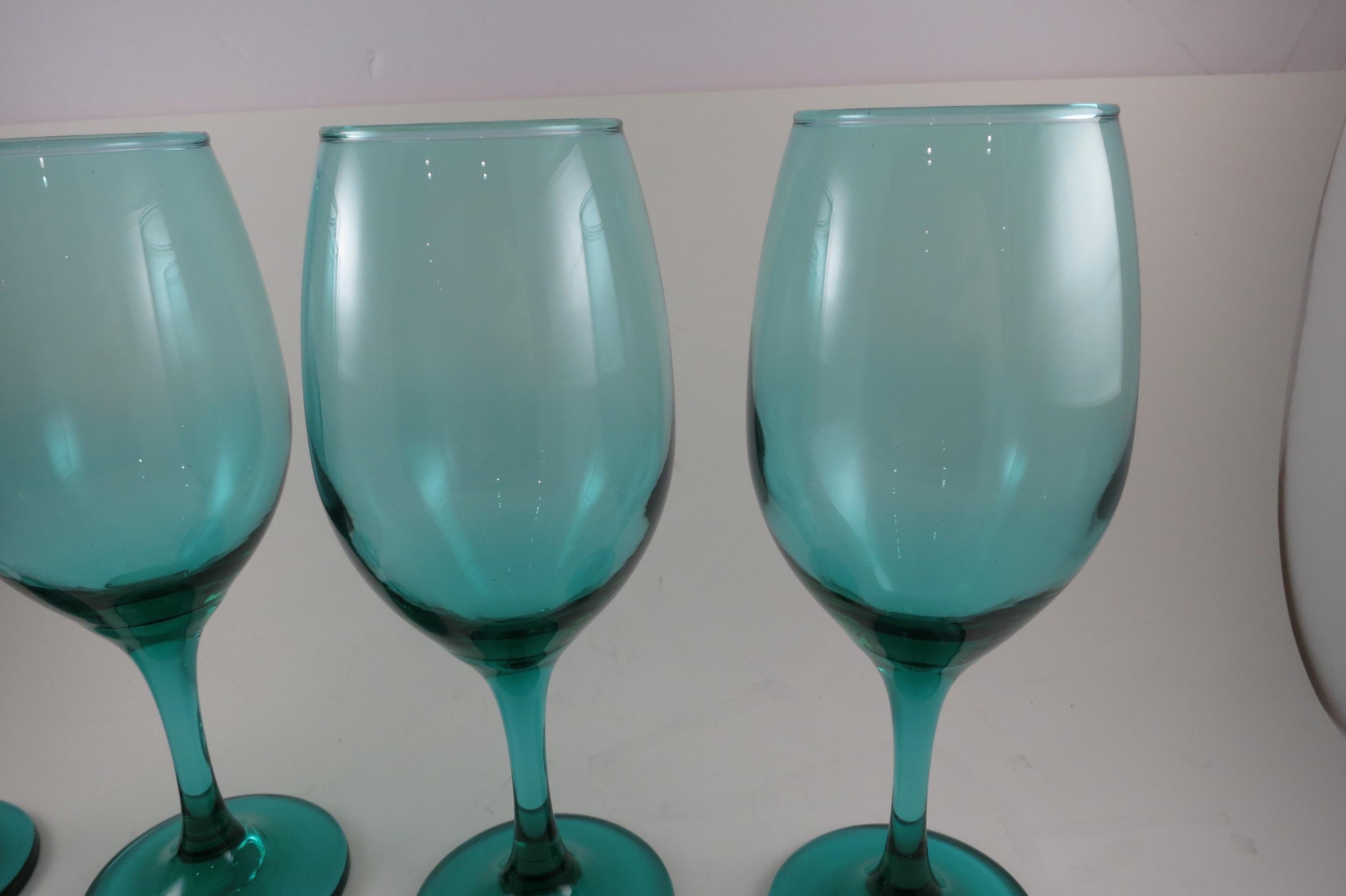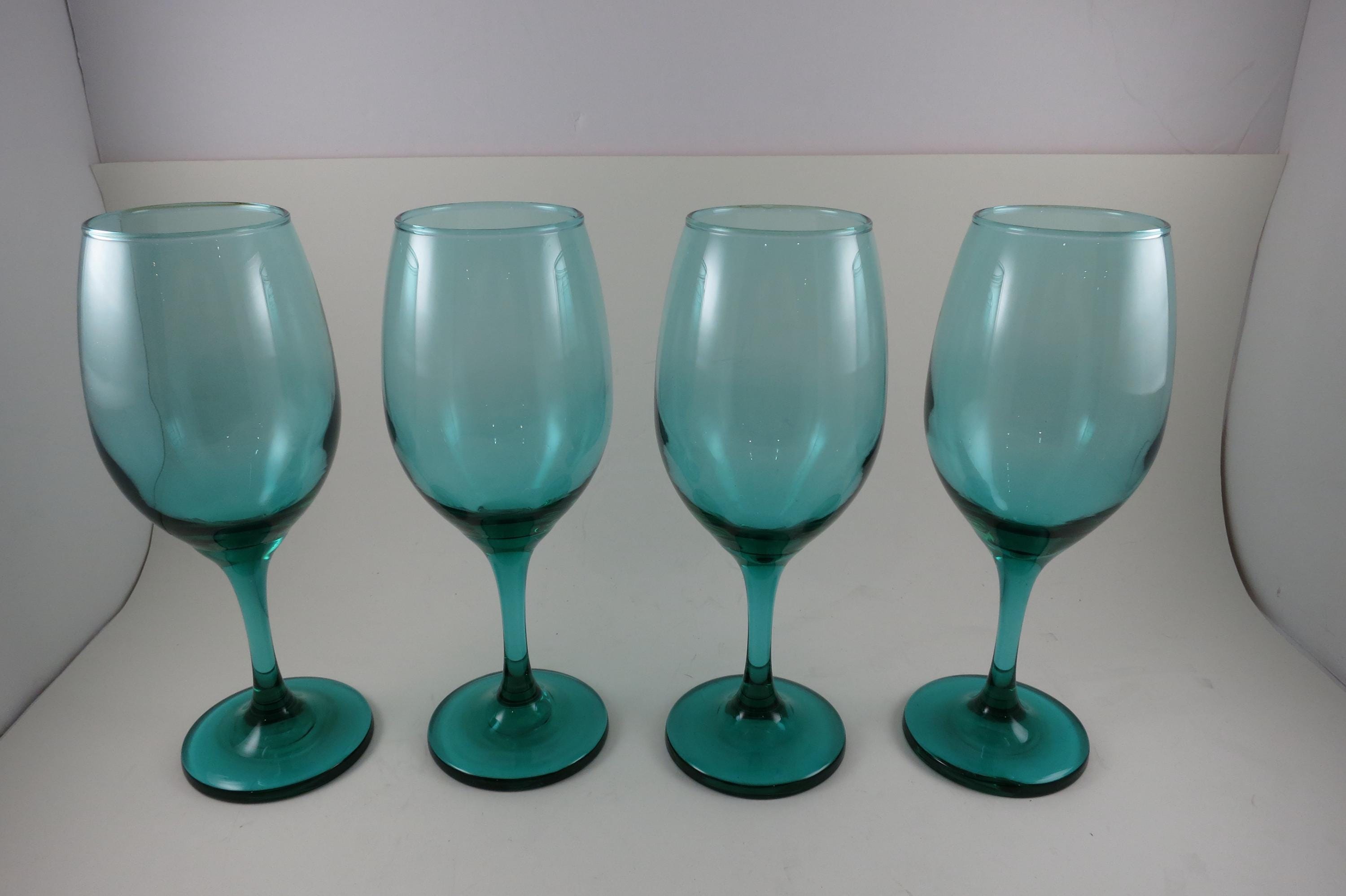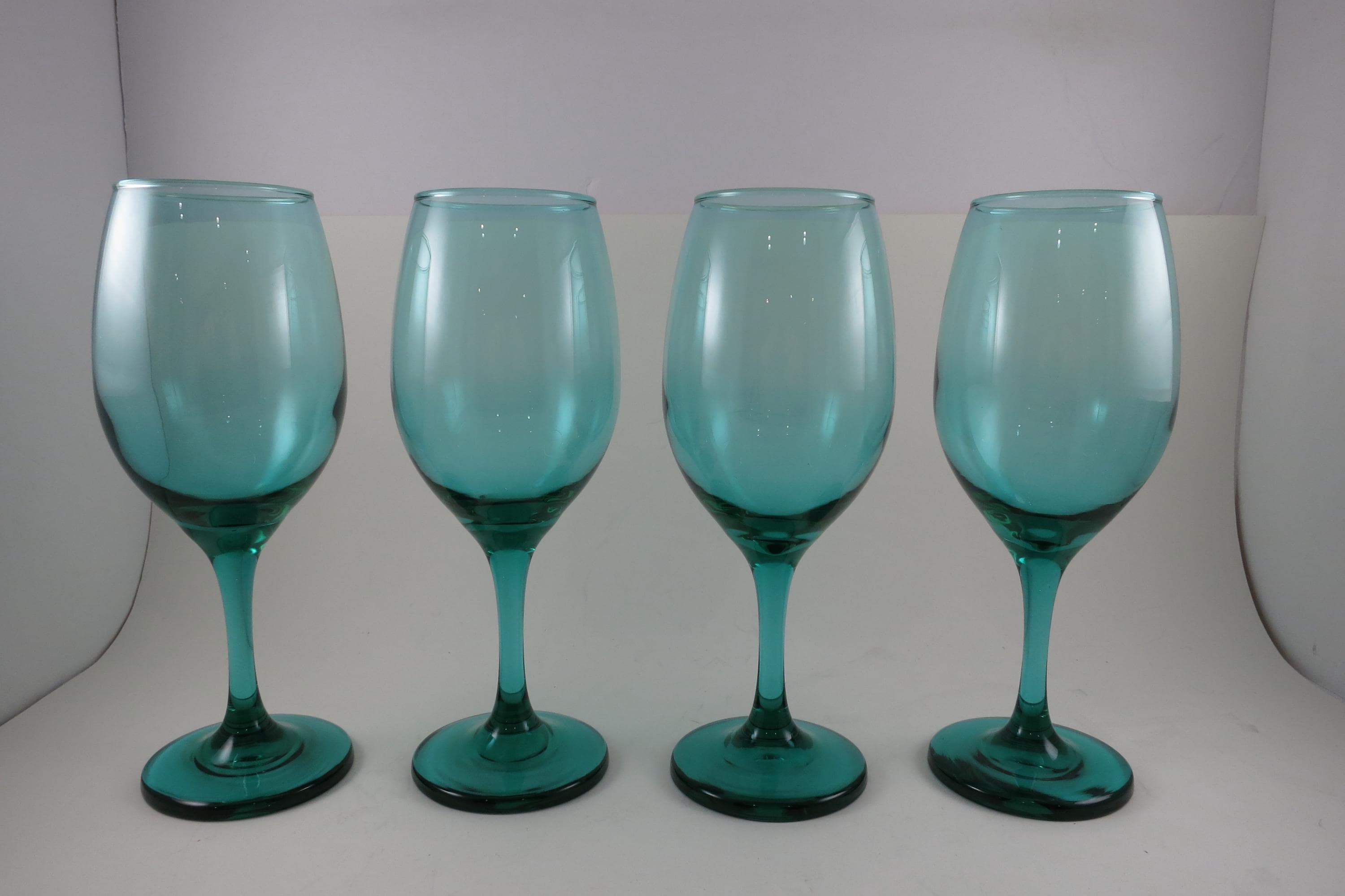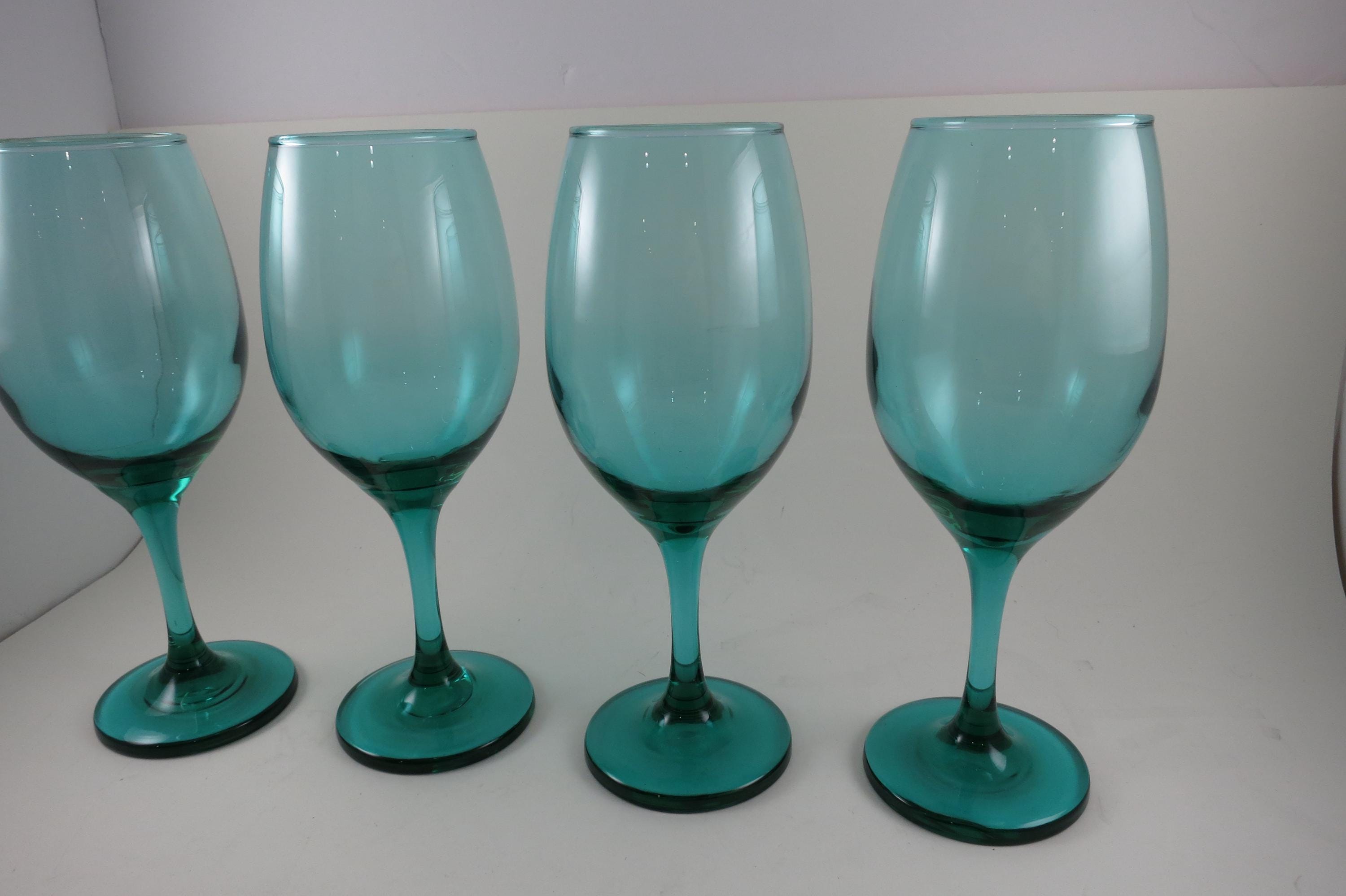 Set of 4 Vintage Libby Medium Green Stemmed Wine Glasses (8 1/4 Inches)