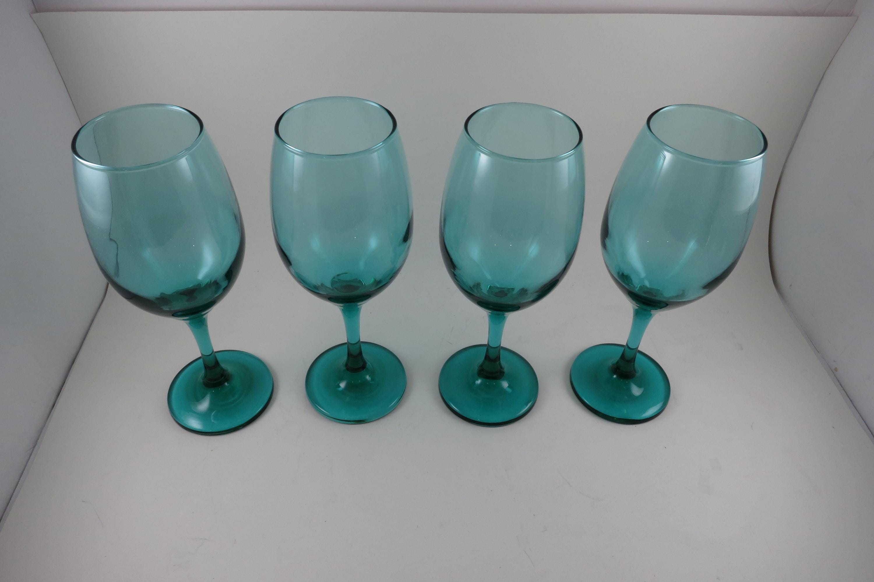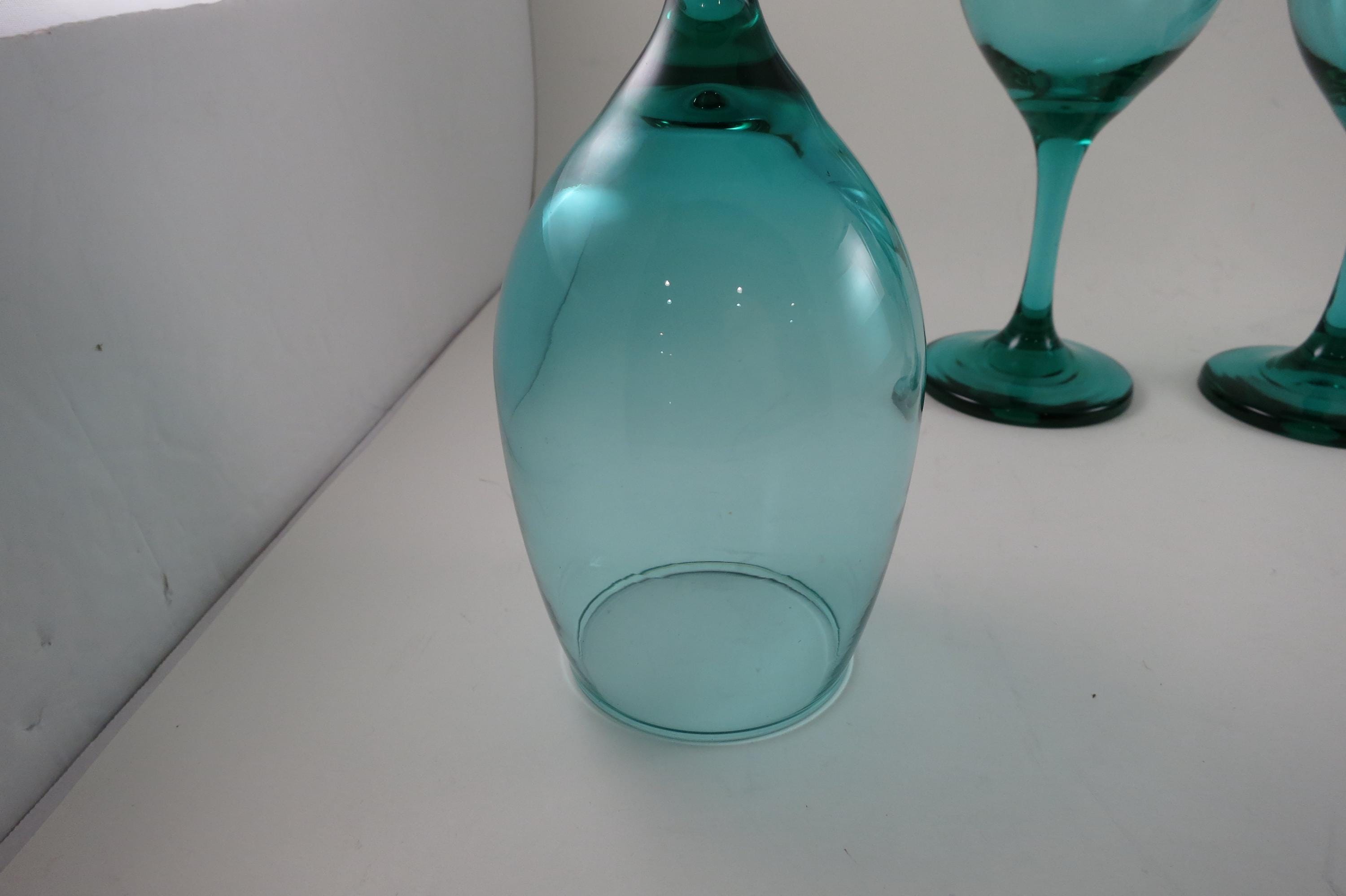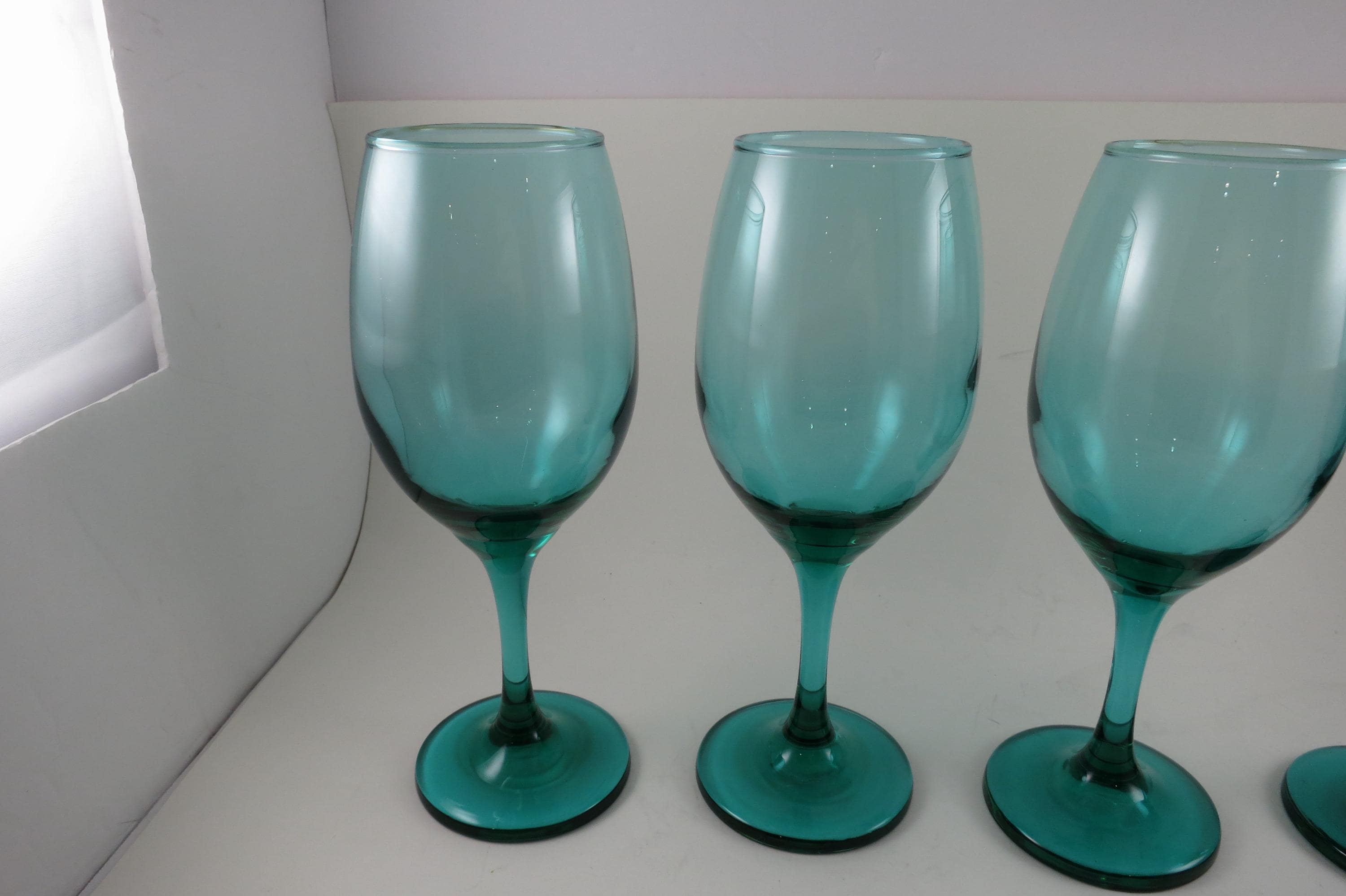 Set of 4 Vintage Libby Medium Green Stemmed Wine Glasses (8 1/4 Inches)