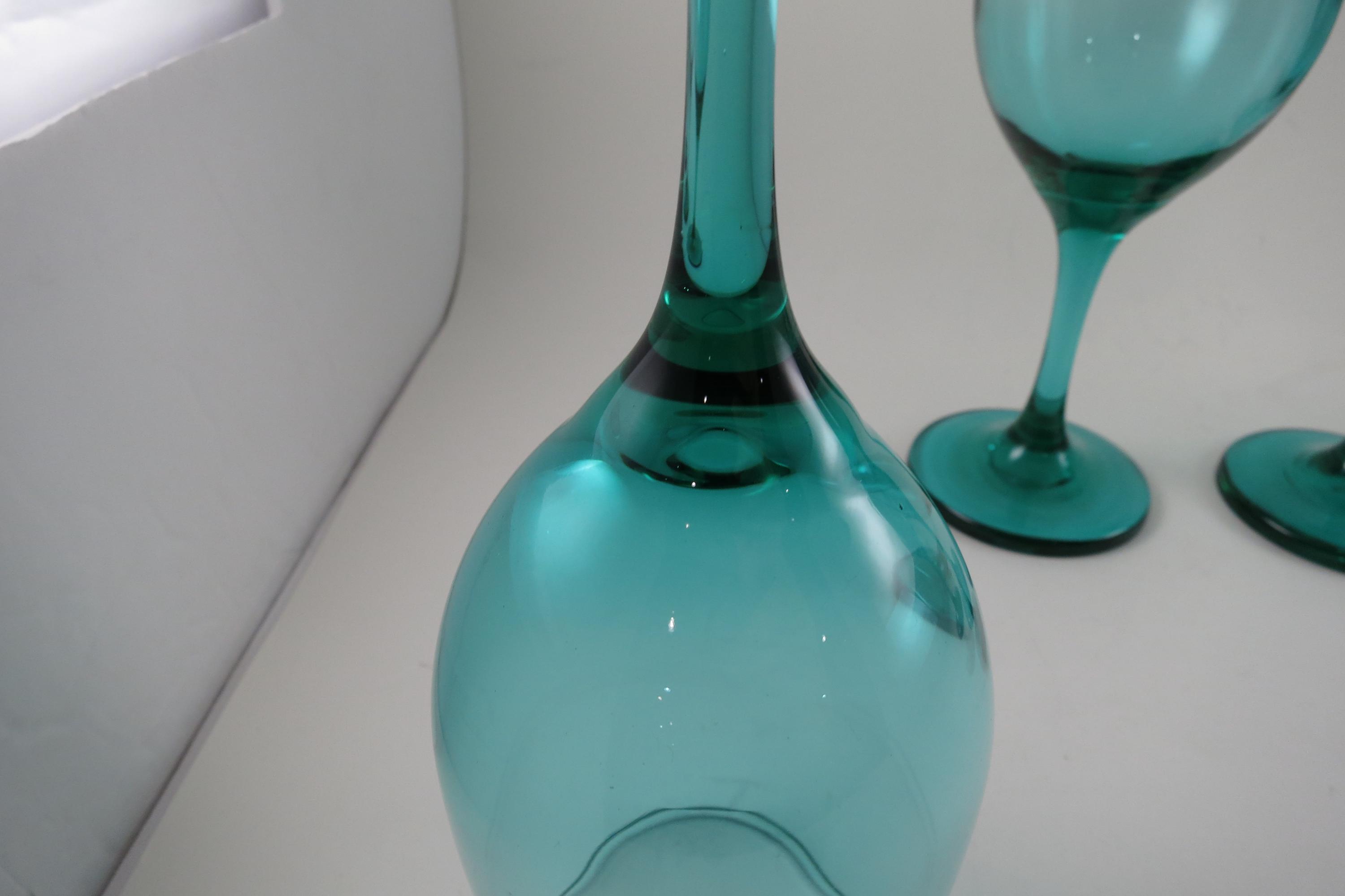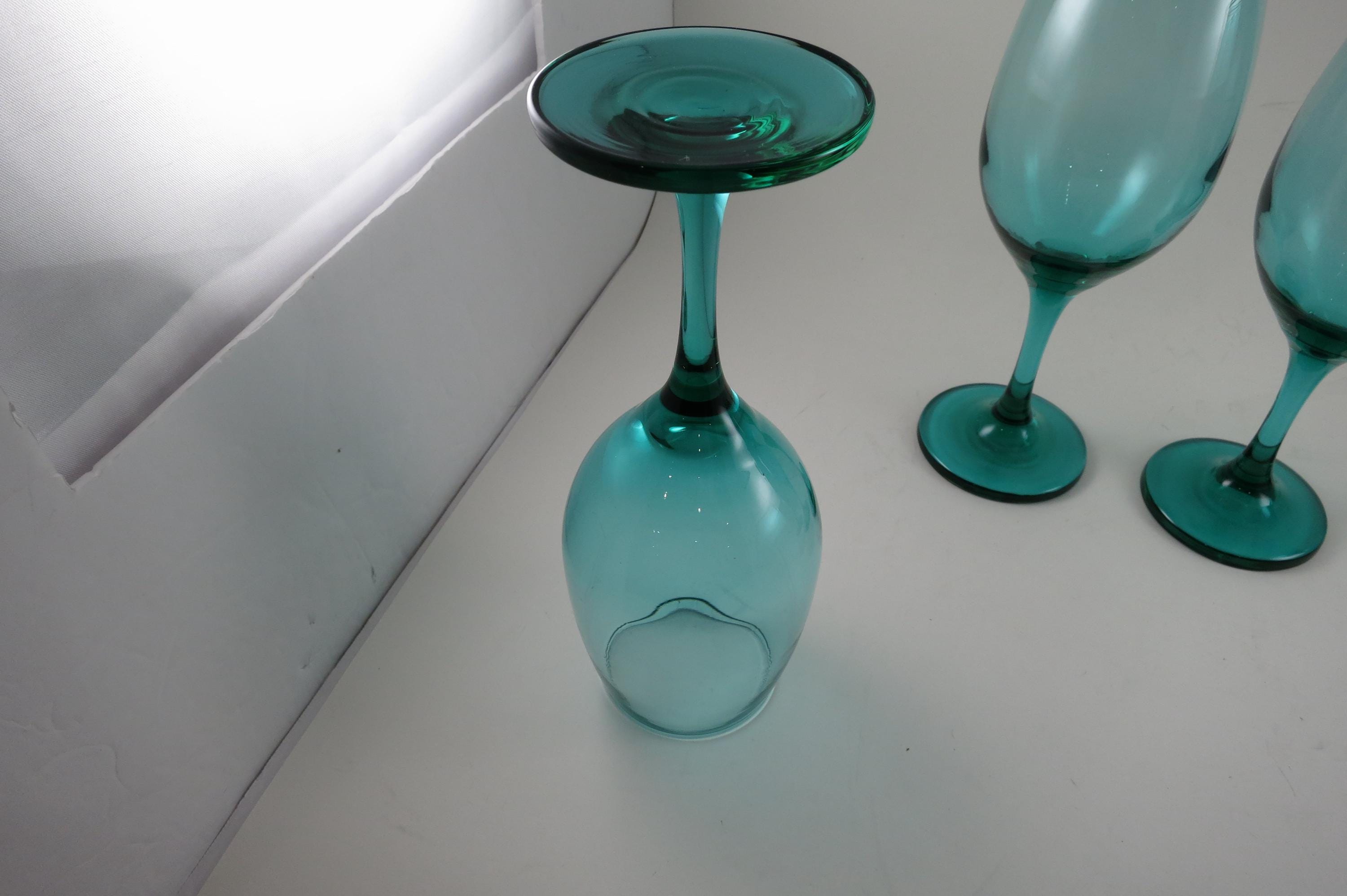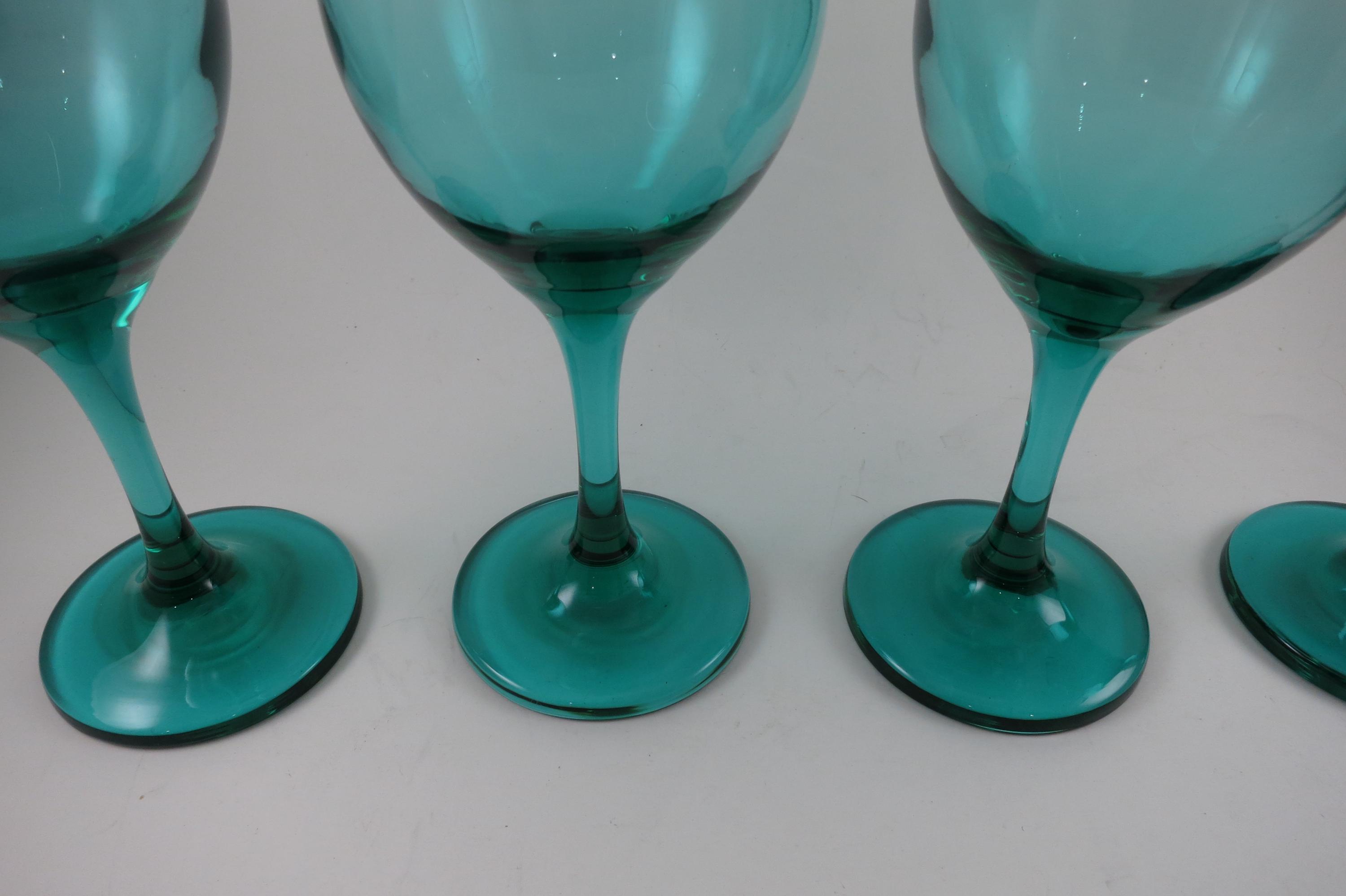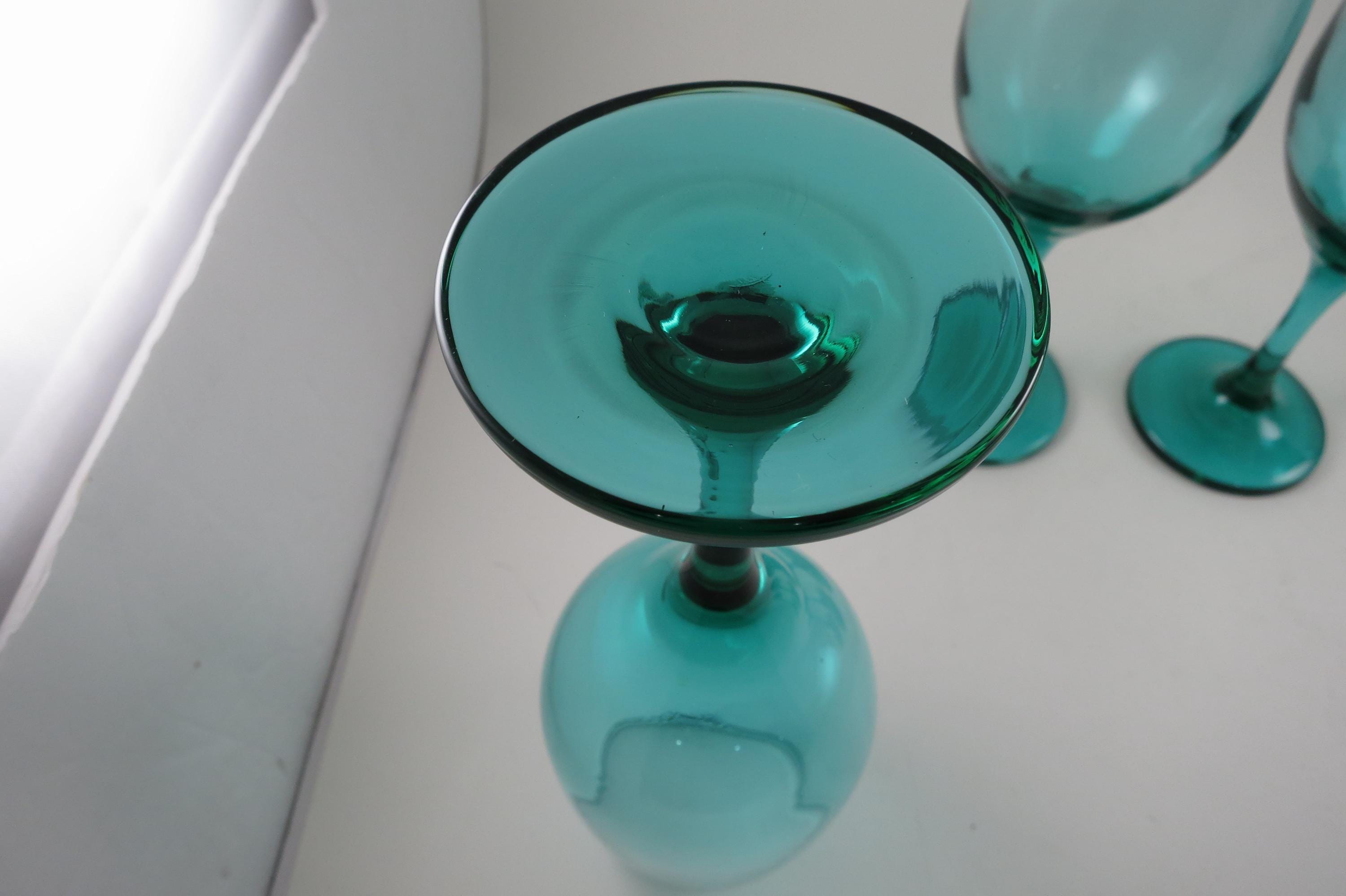 Set of 4 Vintage Libby Medium Green Stemmed Wine Glasses (8 1/4 Inches)