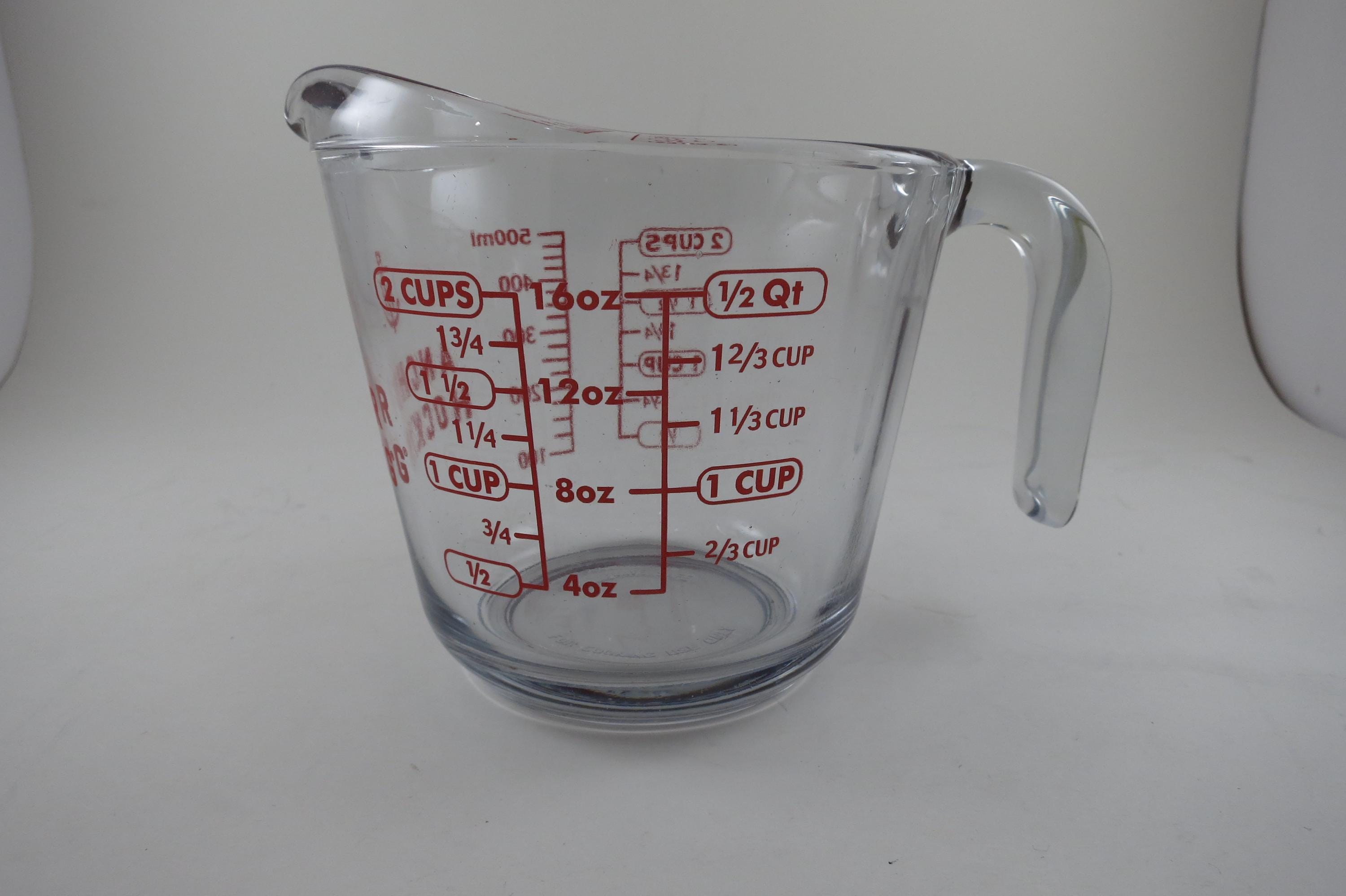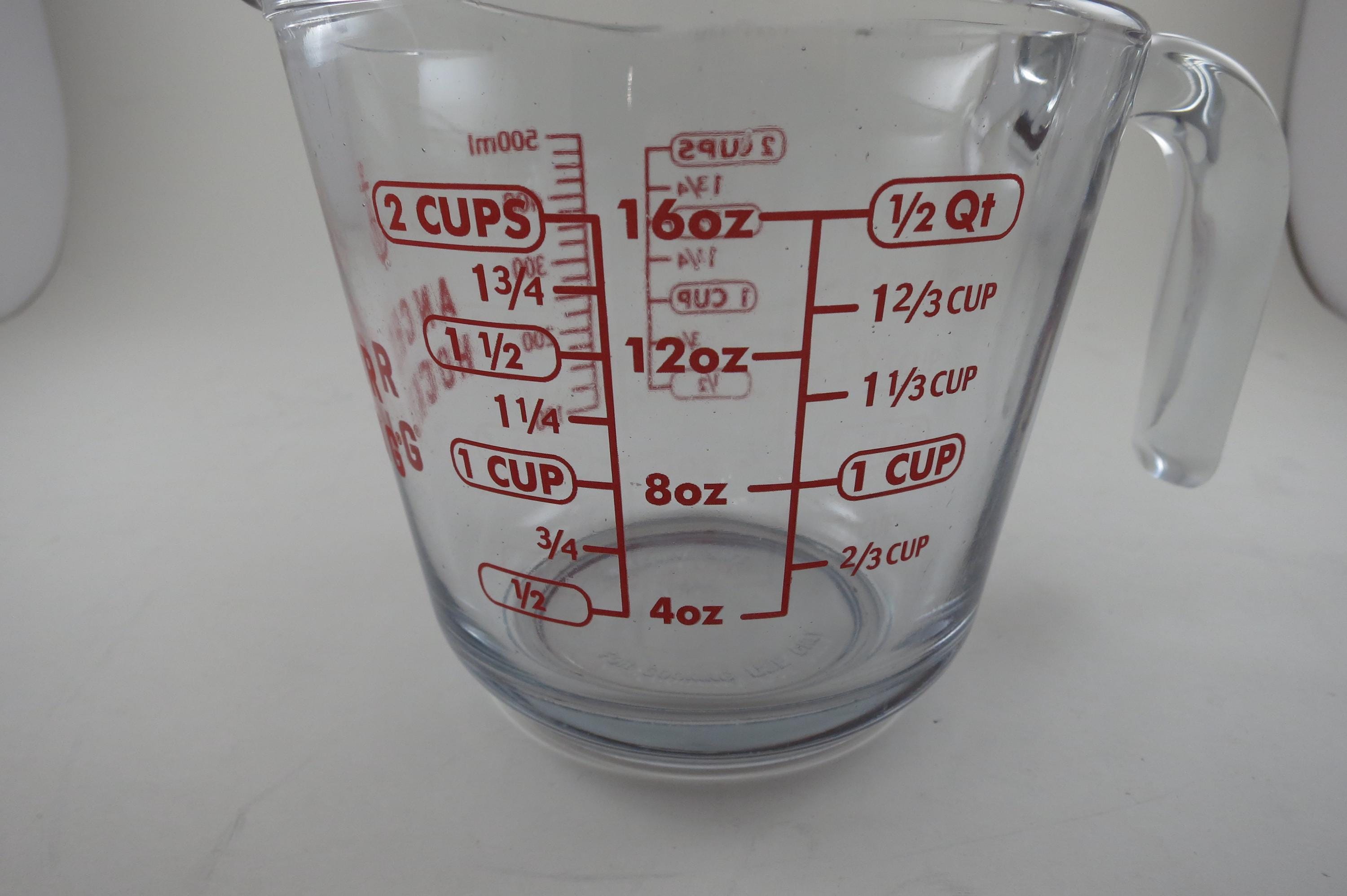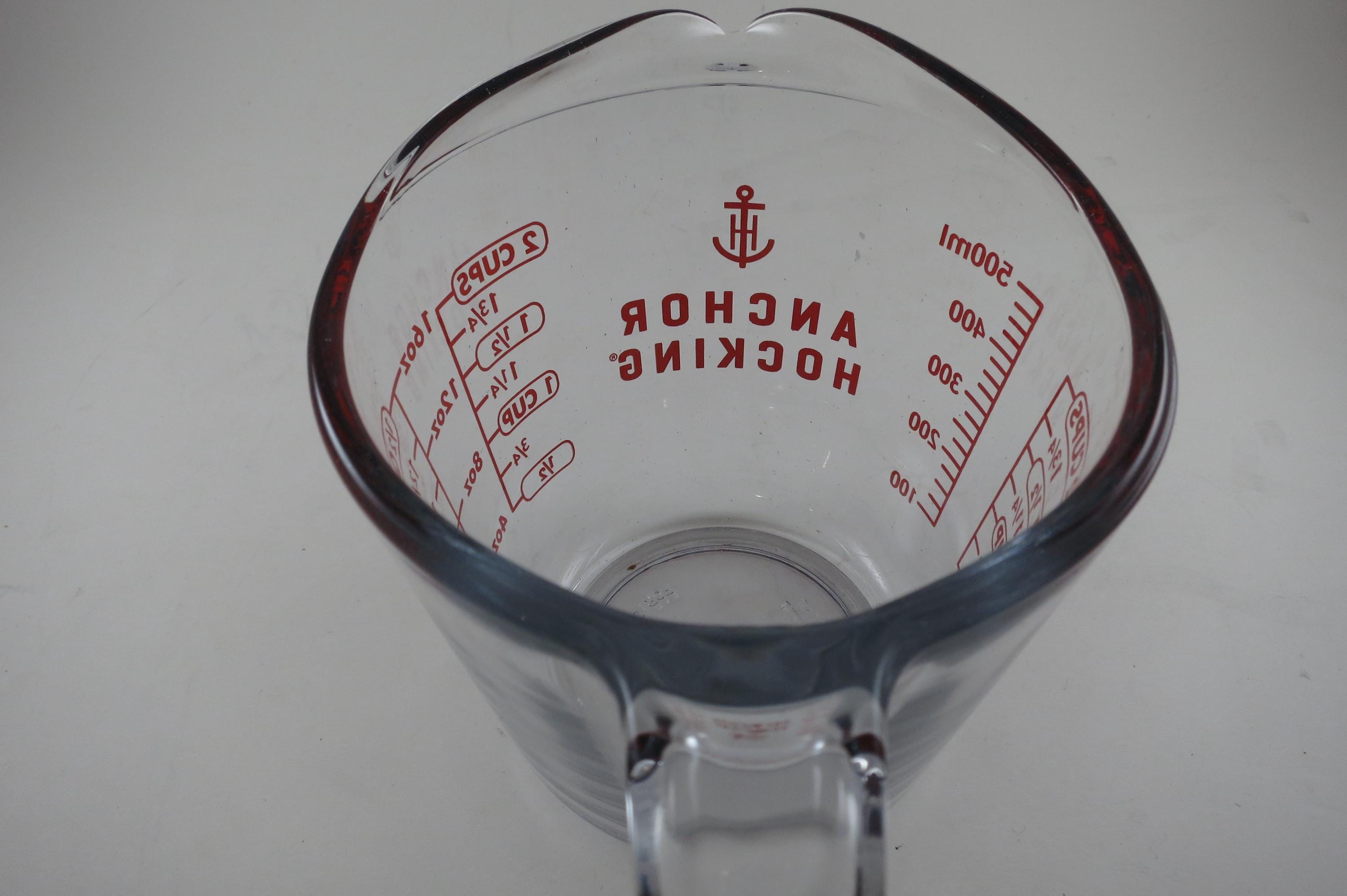 Anchor Hocking 2 Cup Measuring Cup with Red Lettering Excellent Condition.