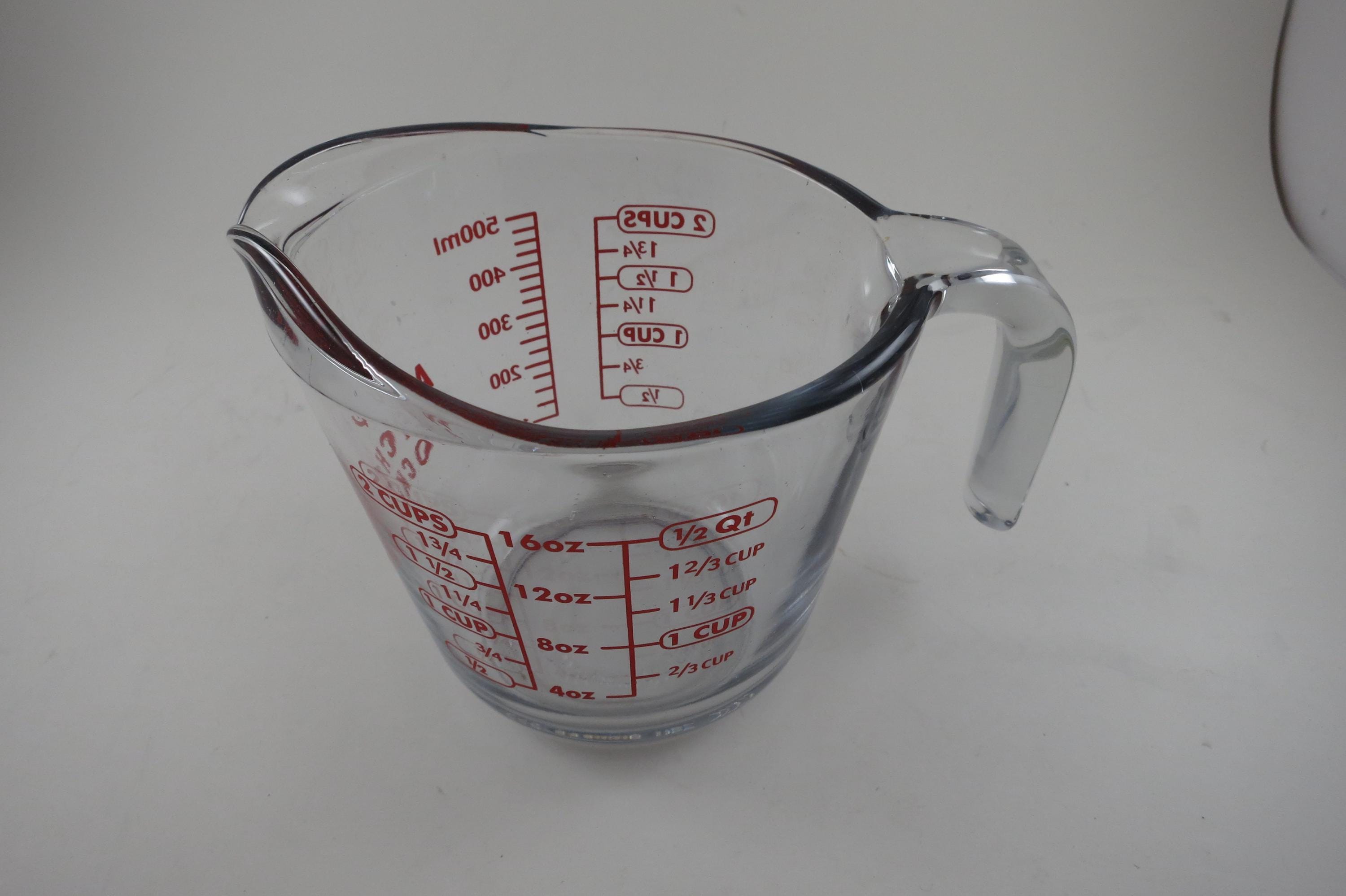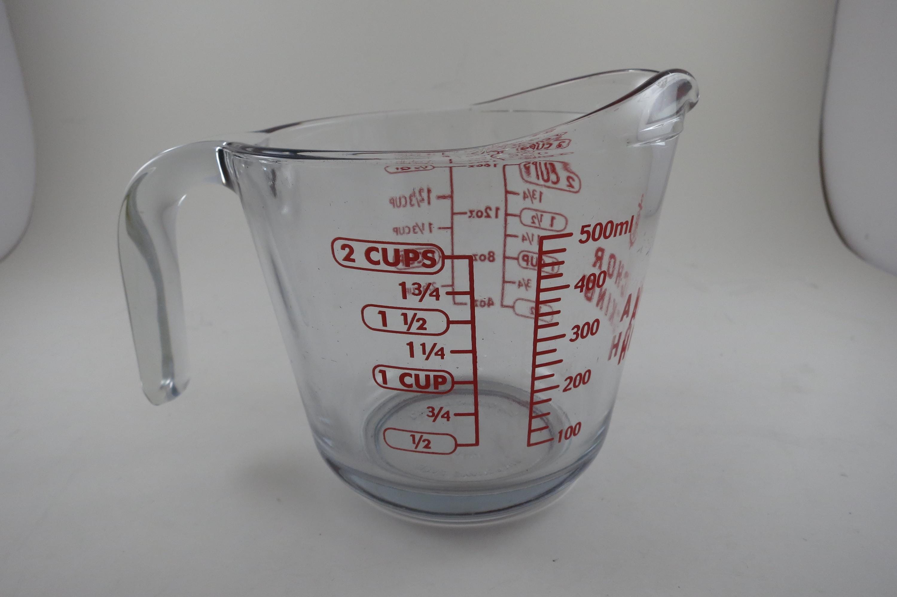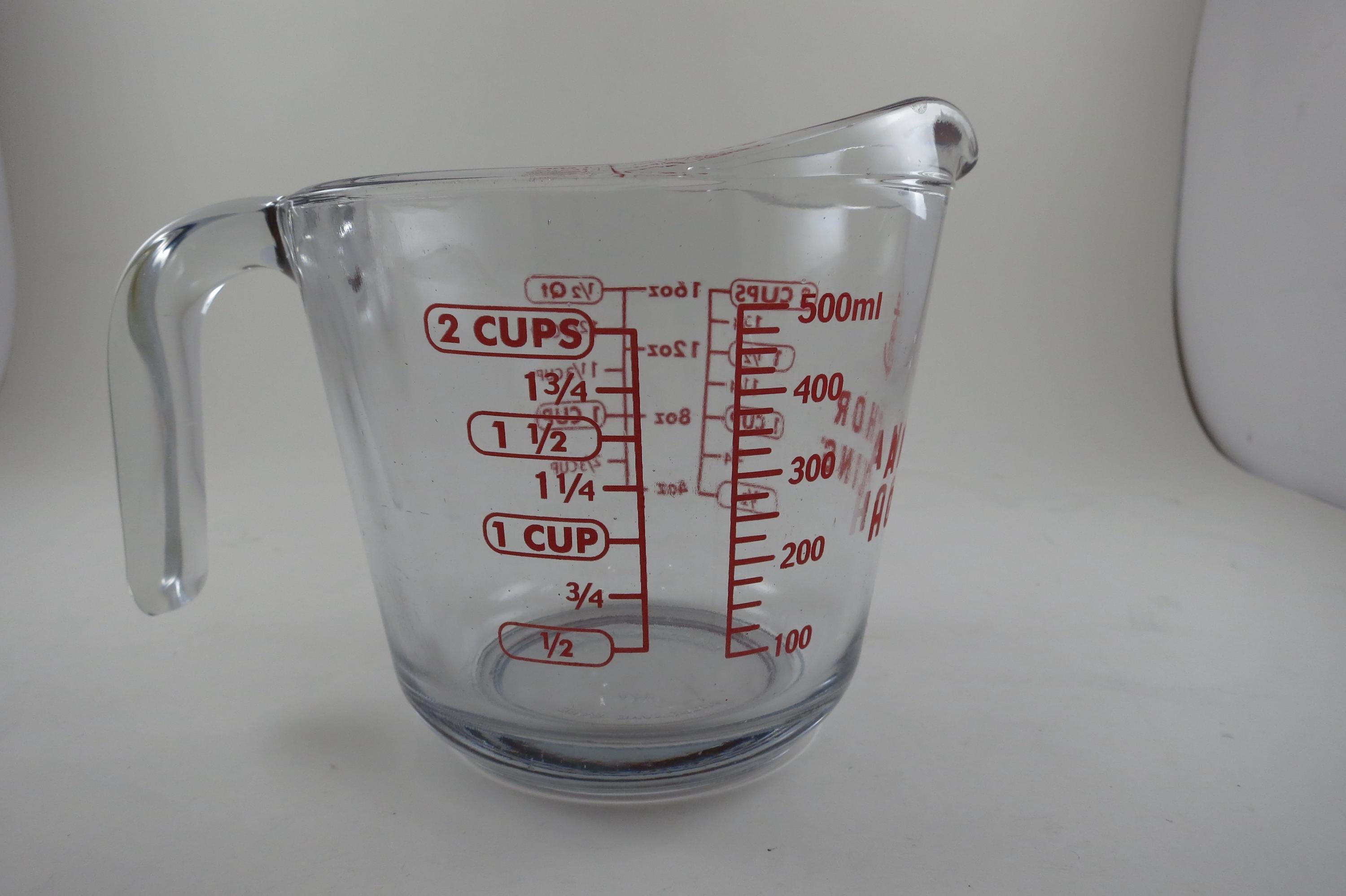 Anchor Hocking 2 Cup Measuring Cup with Red Lettering Excellent Condition.