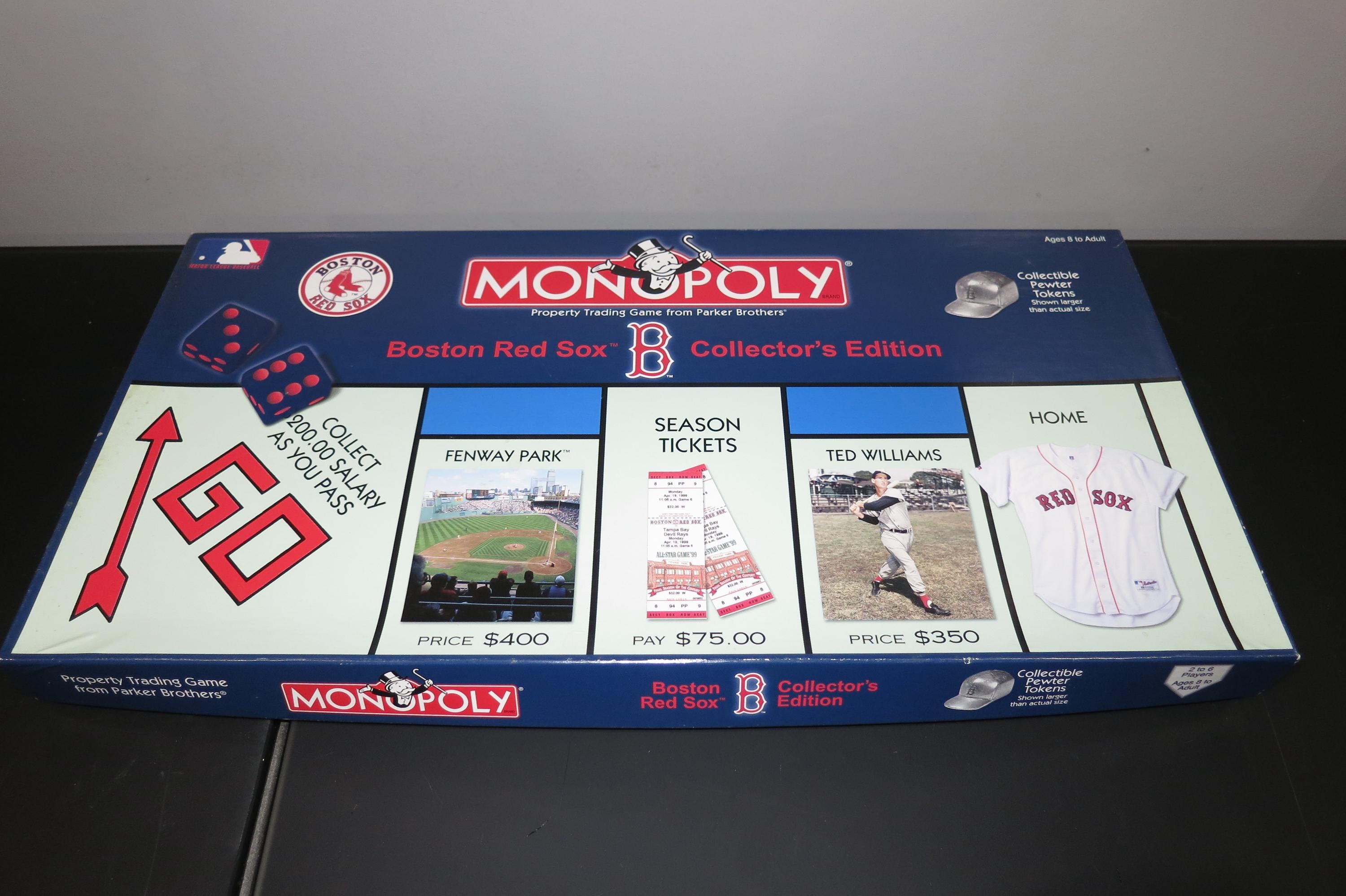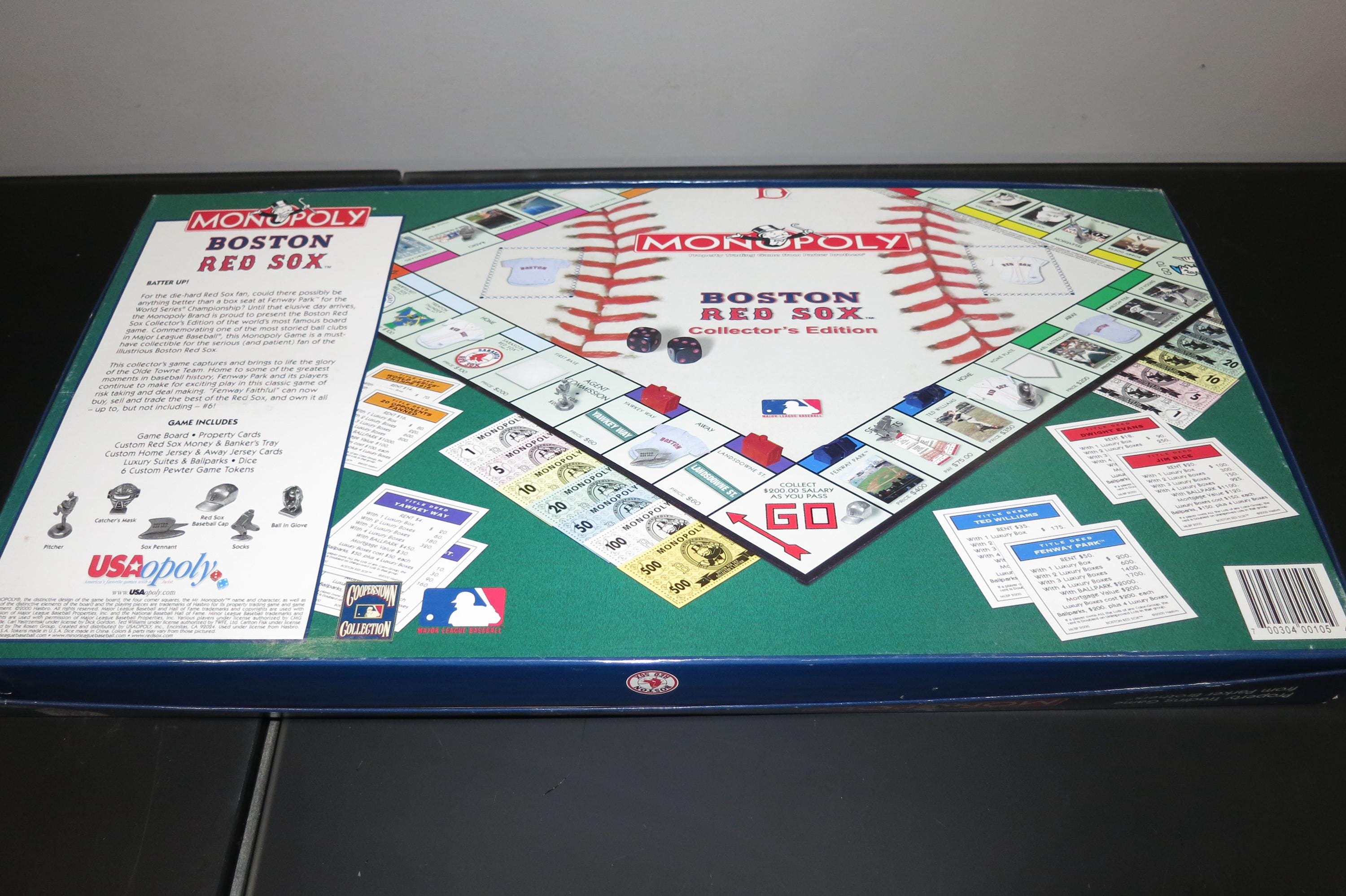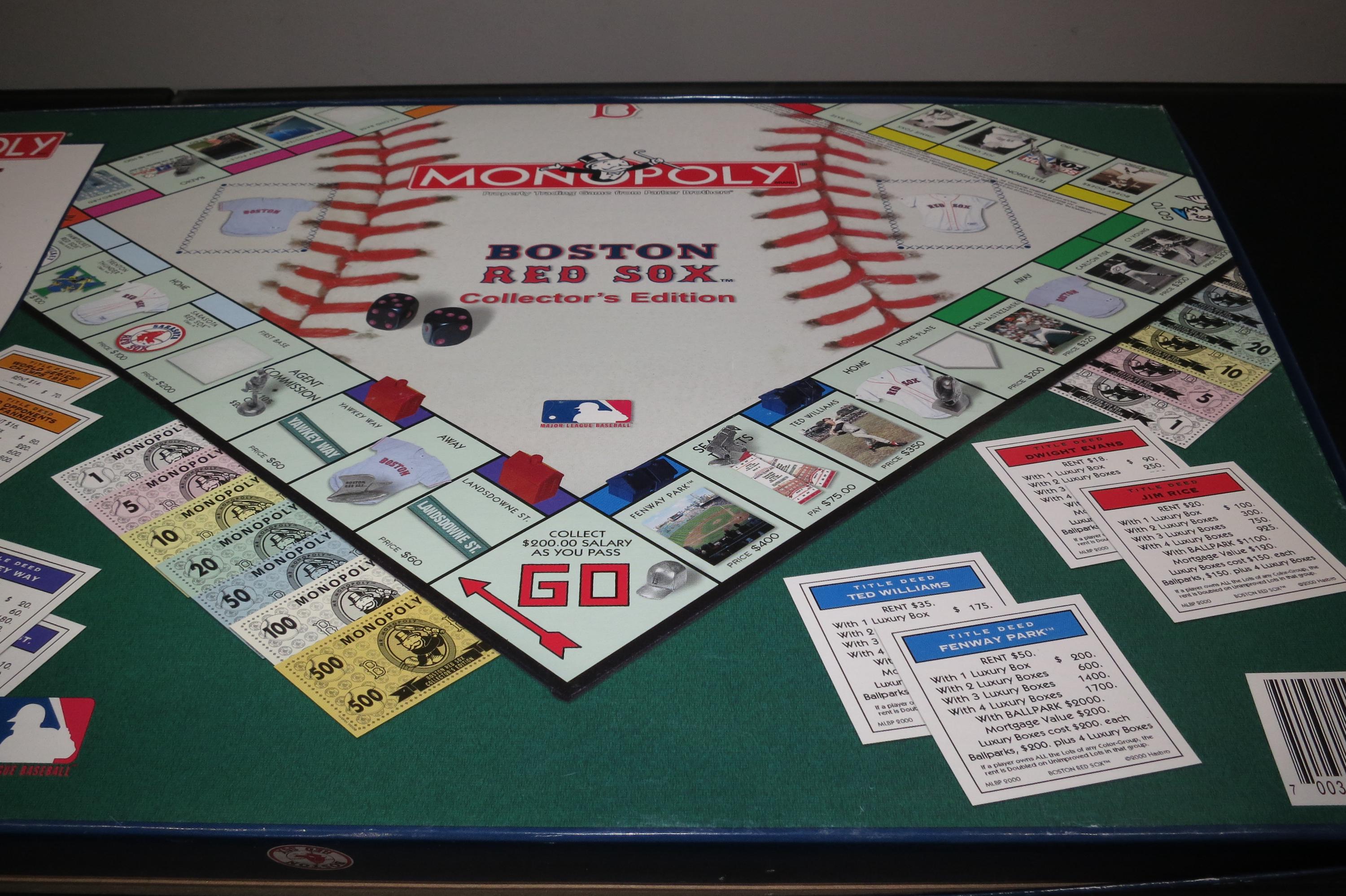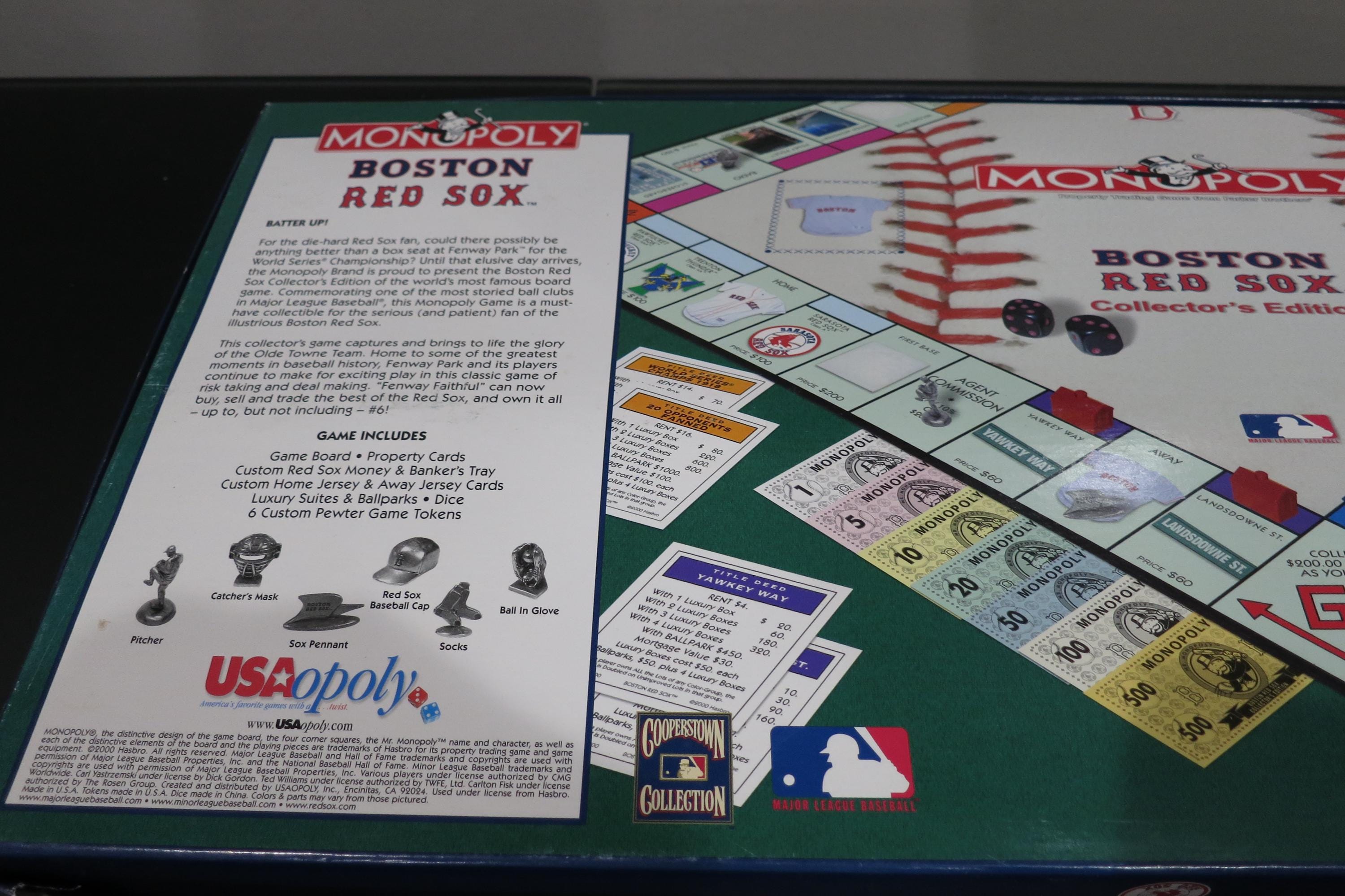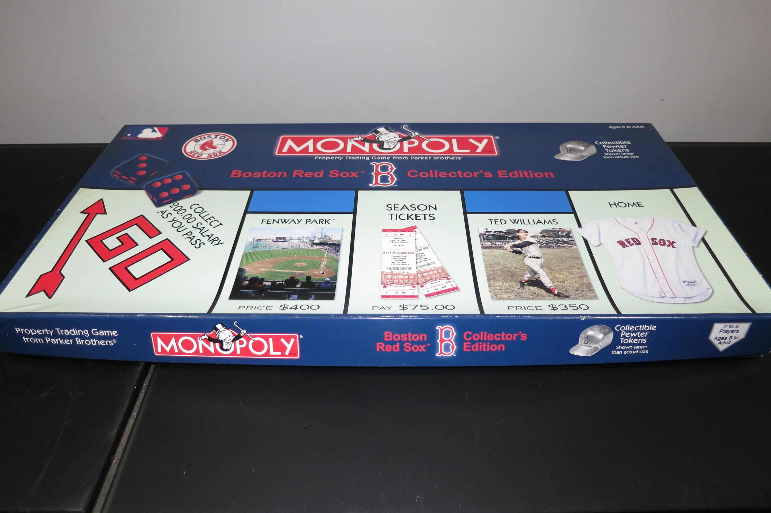 2000 Board Game Monopoly Boston Red Sox Edition 100% Complete Excellent Condition. Very neat version, especially for the Boston Fan! Game features Six Custom Pewter Tokens, Custom Houses, Hotels and Money, Red Dice and the original instructions. Box shows light wear. Game is 100% Complete and ready to play.