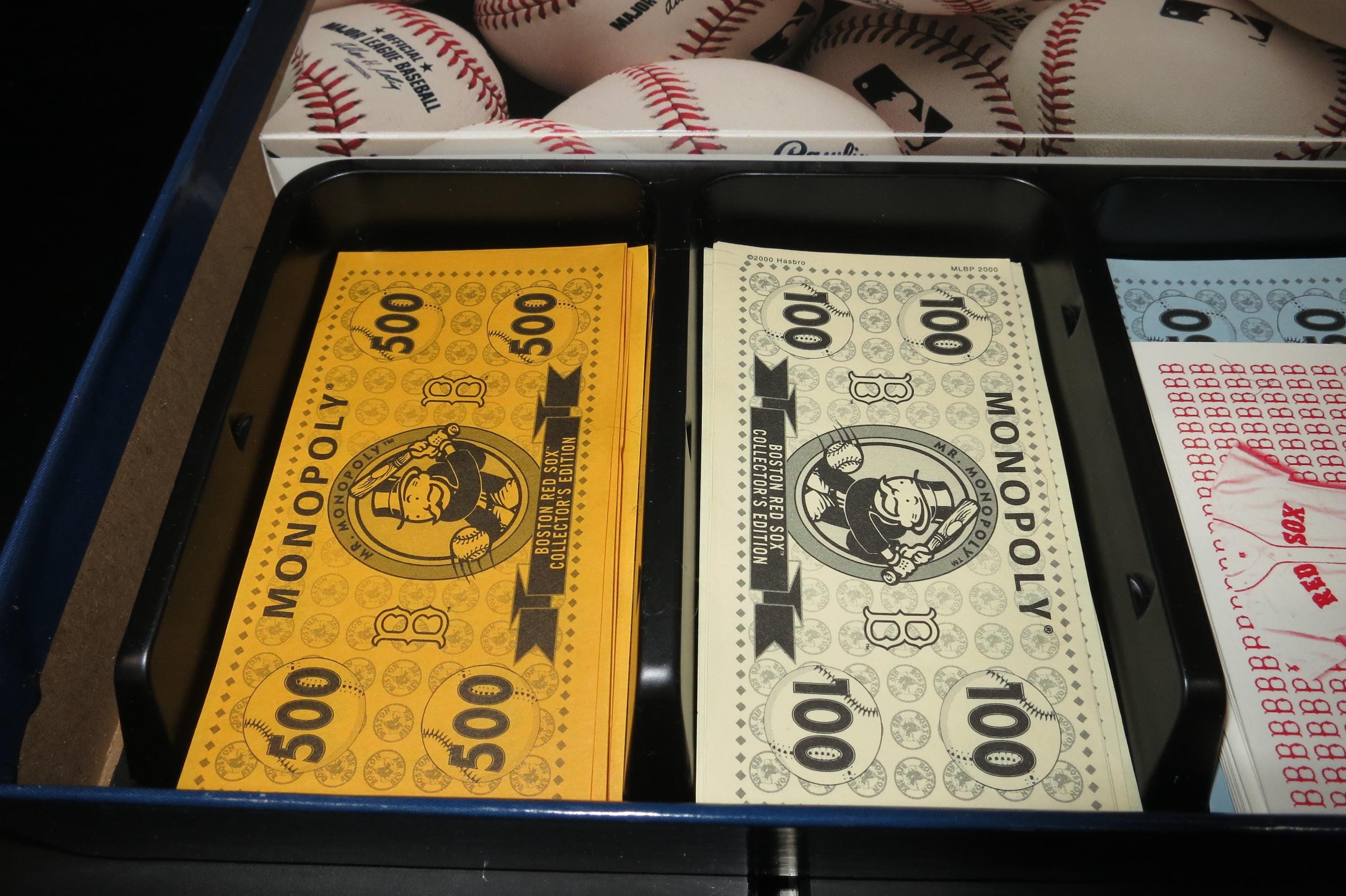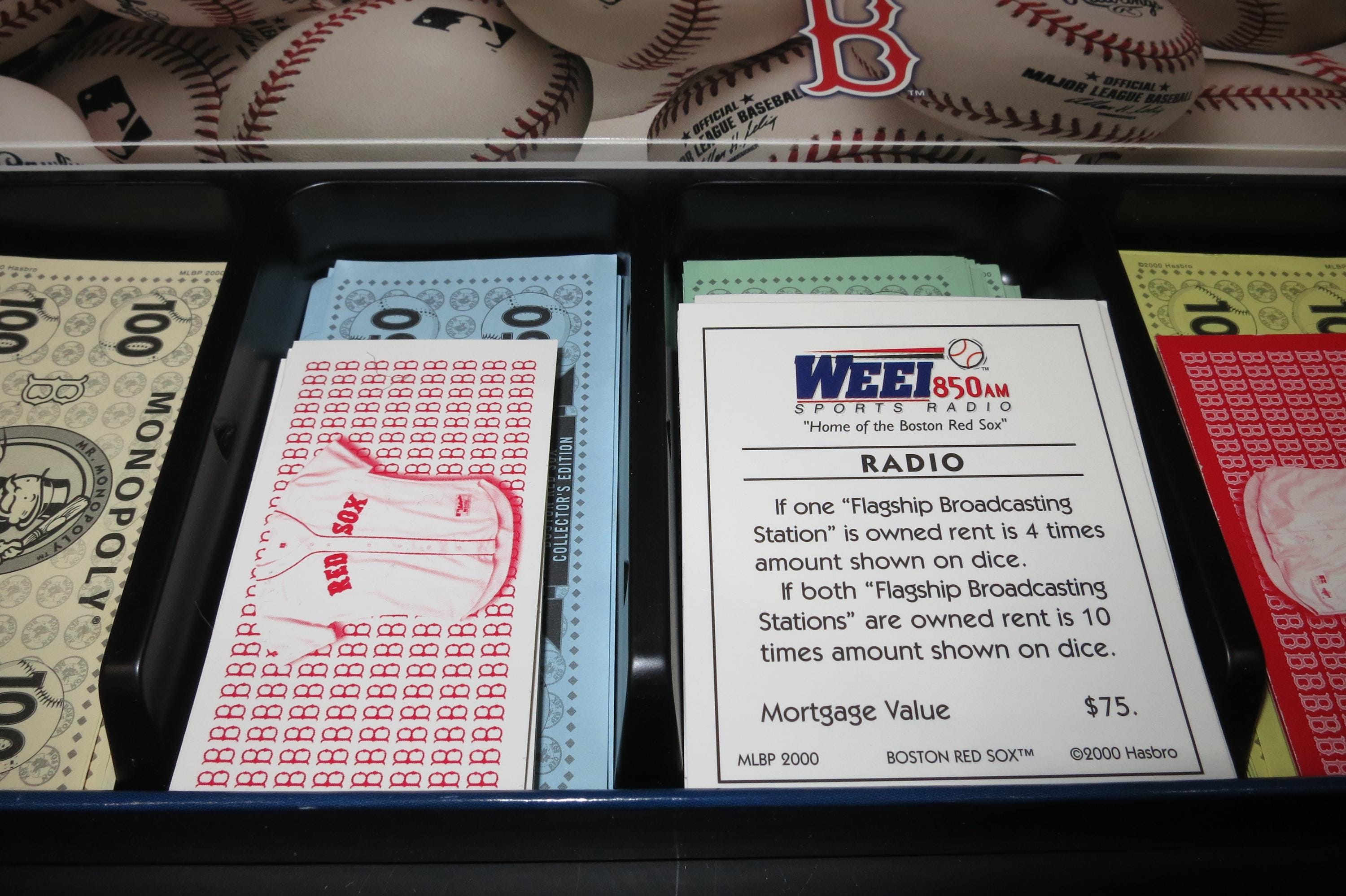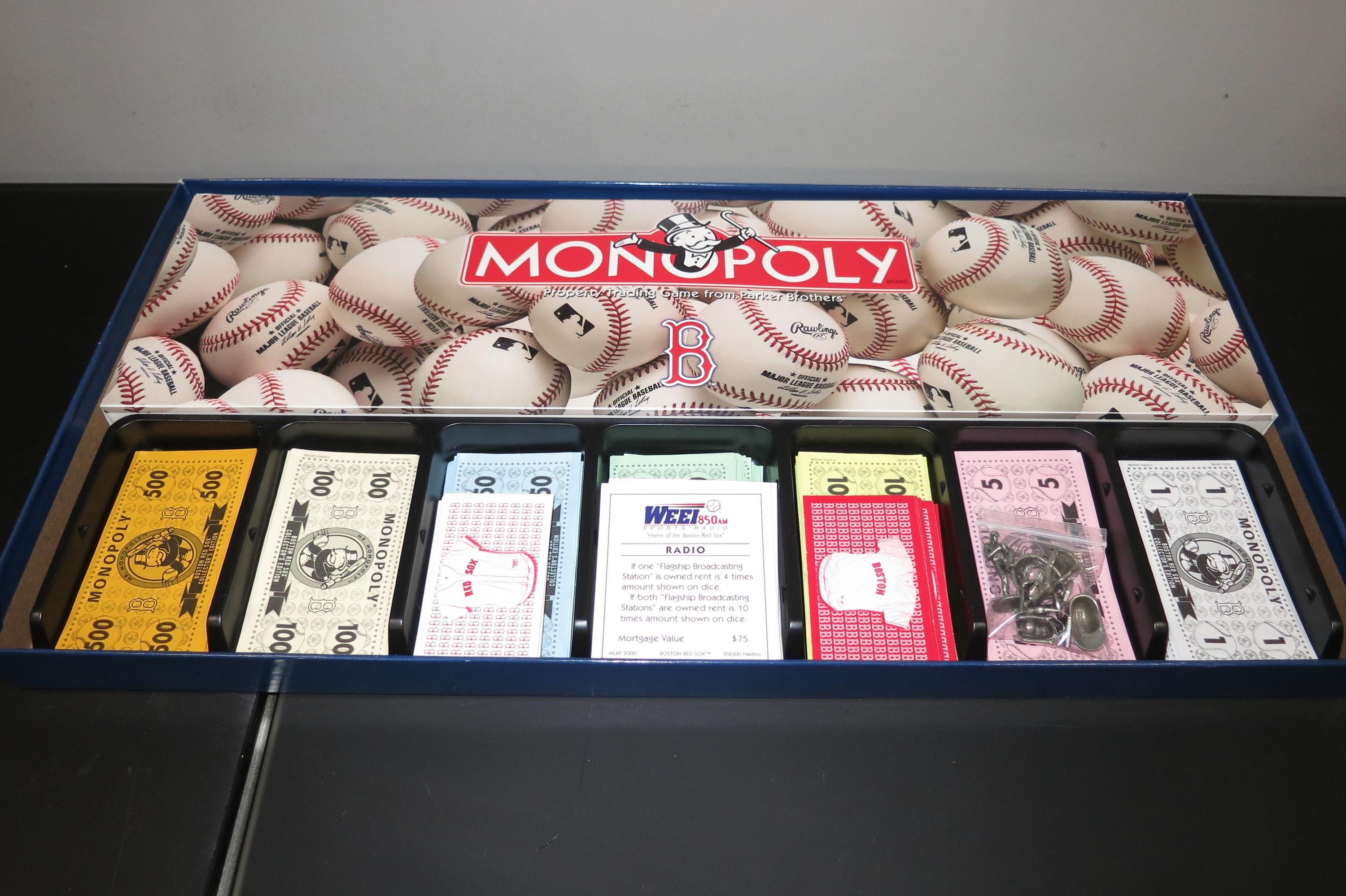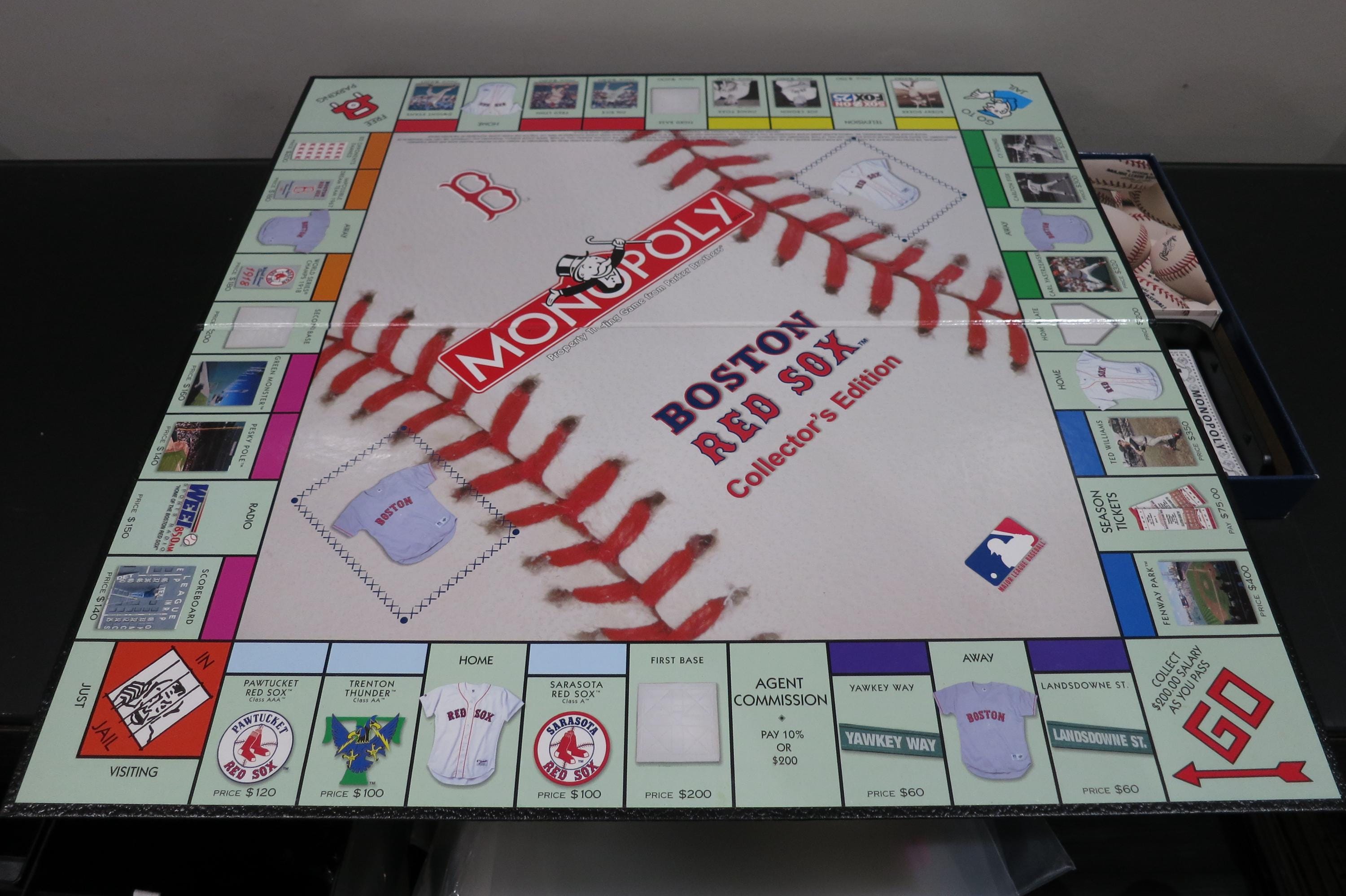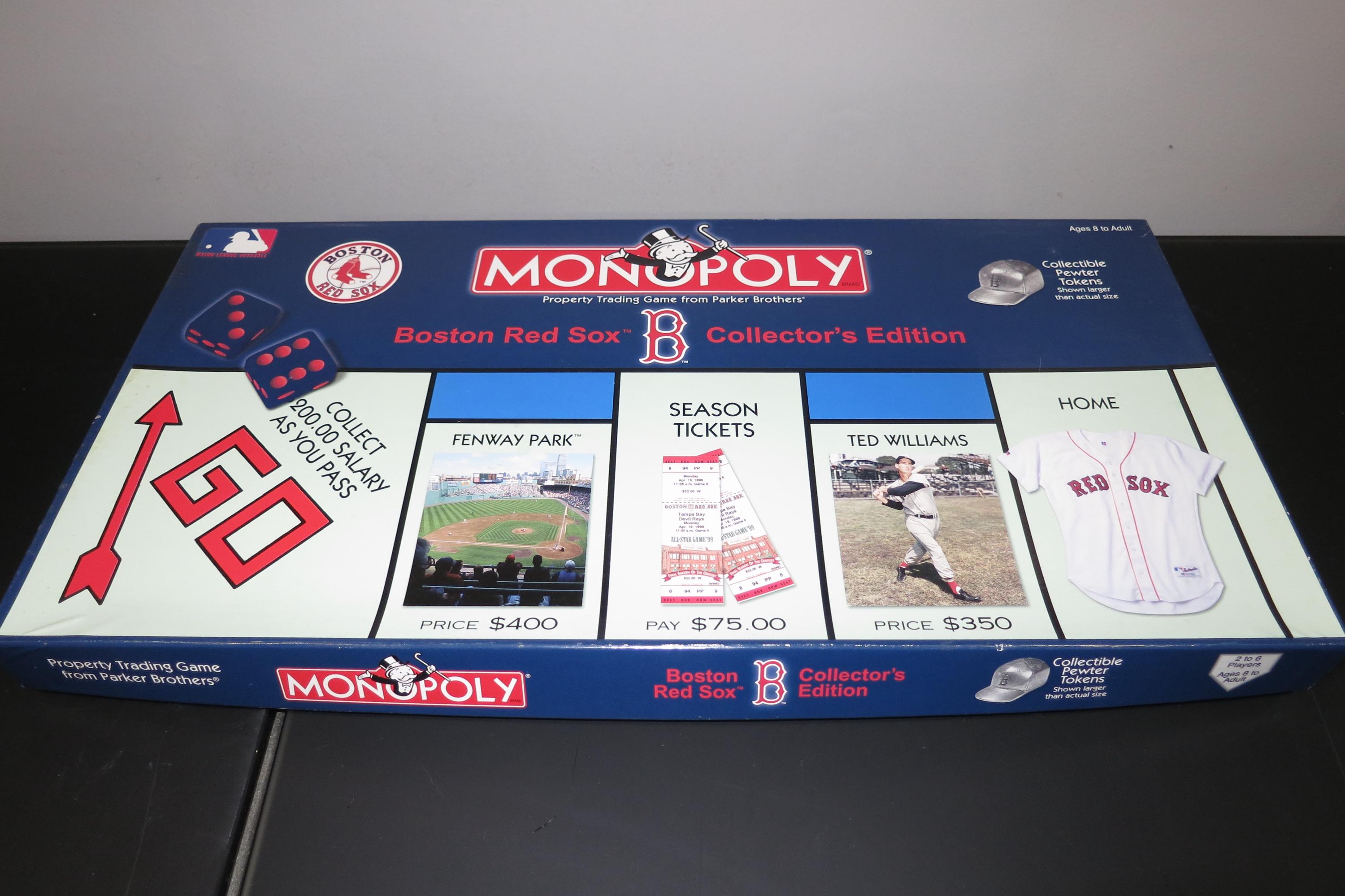 2000 Board Game Monopoly Boston Red Sox Edition 100% Complete Excellent Condition. Very neat version, especially for the Boston Fan! Game features Six Custom Pewter Tokens, Custom Houses, Hotels and Money, Red Dice and the original instructions. Box shows light wear. Game is 100% Complete and ready to play.