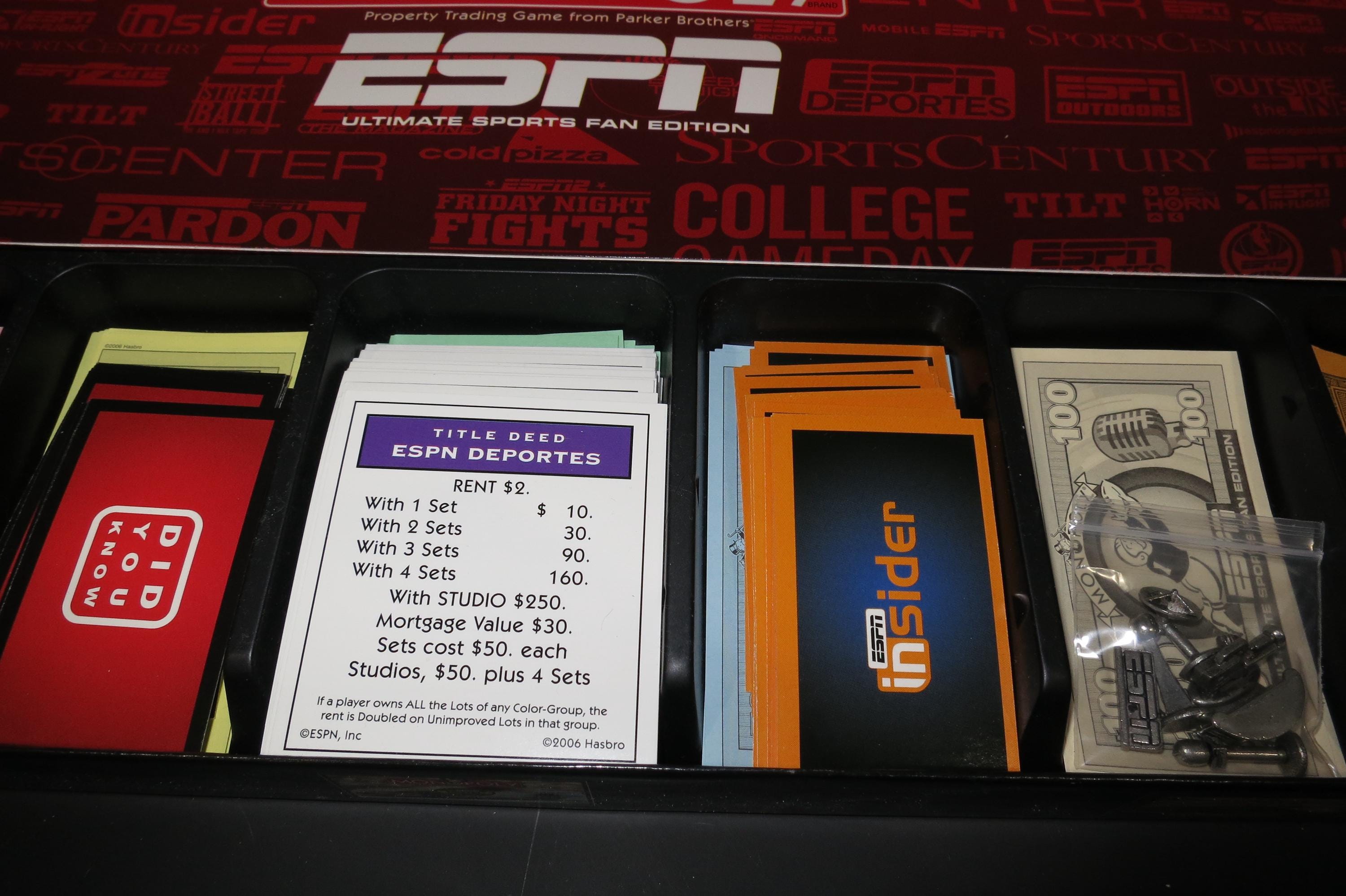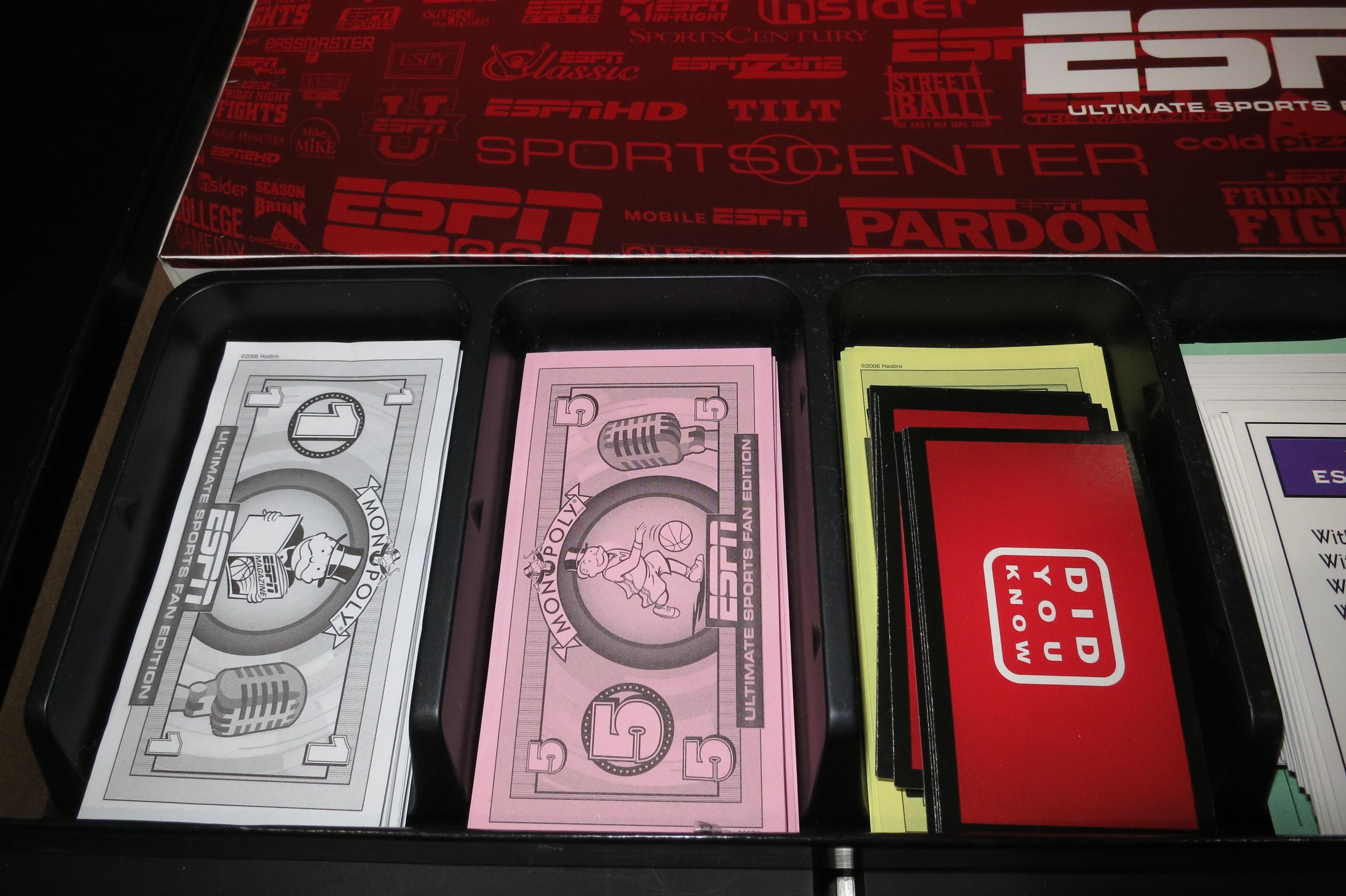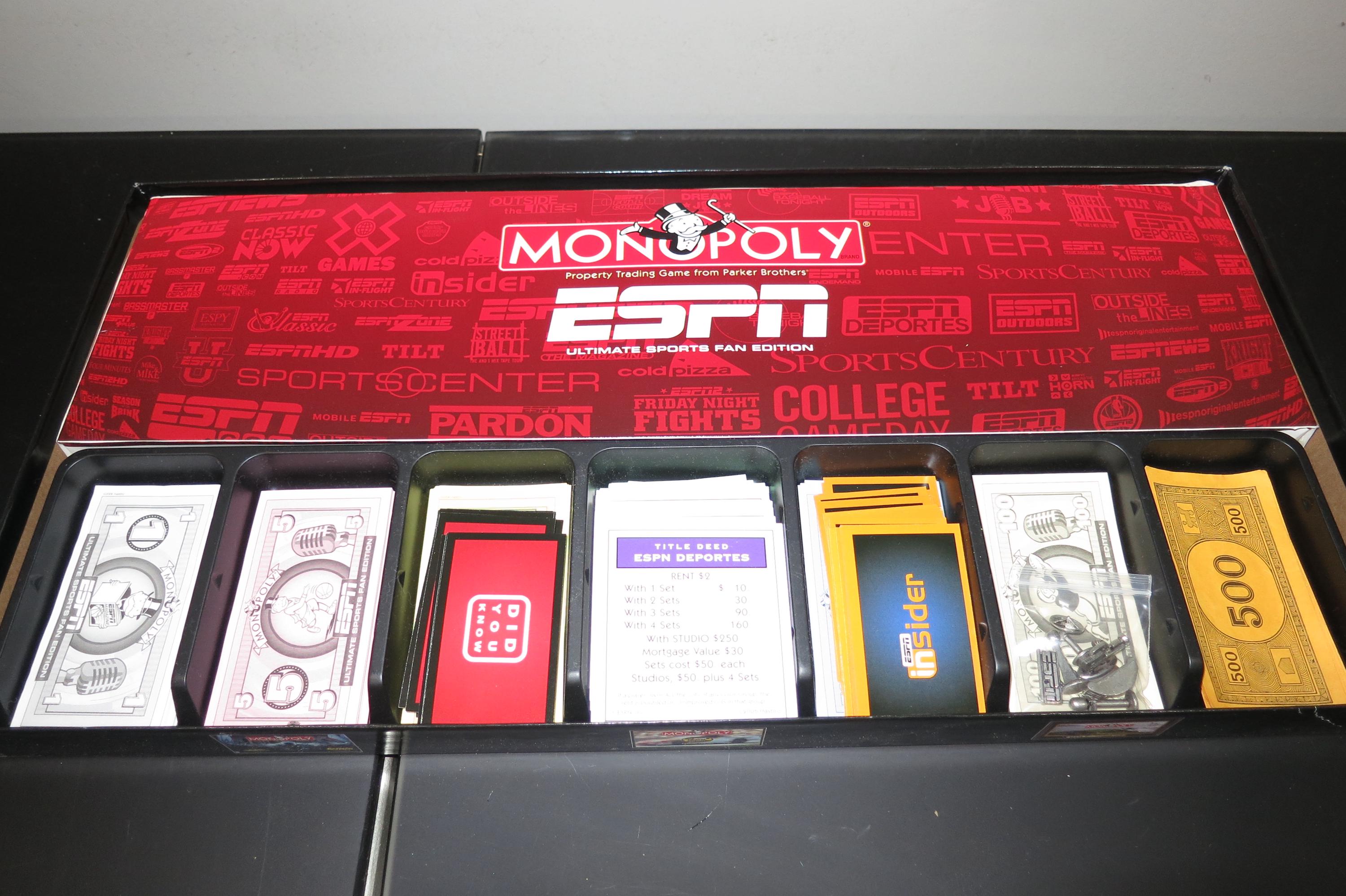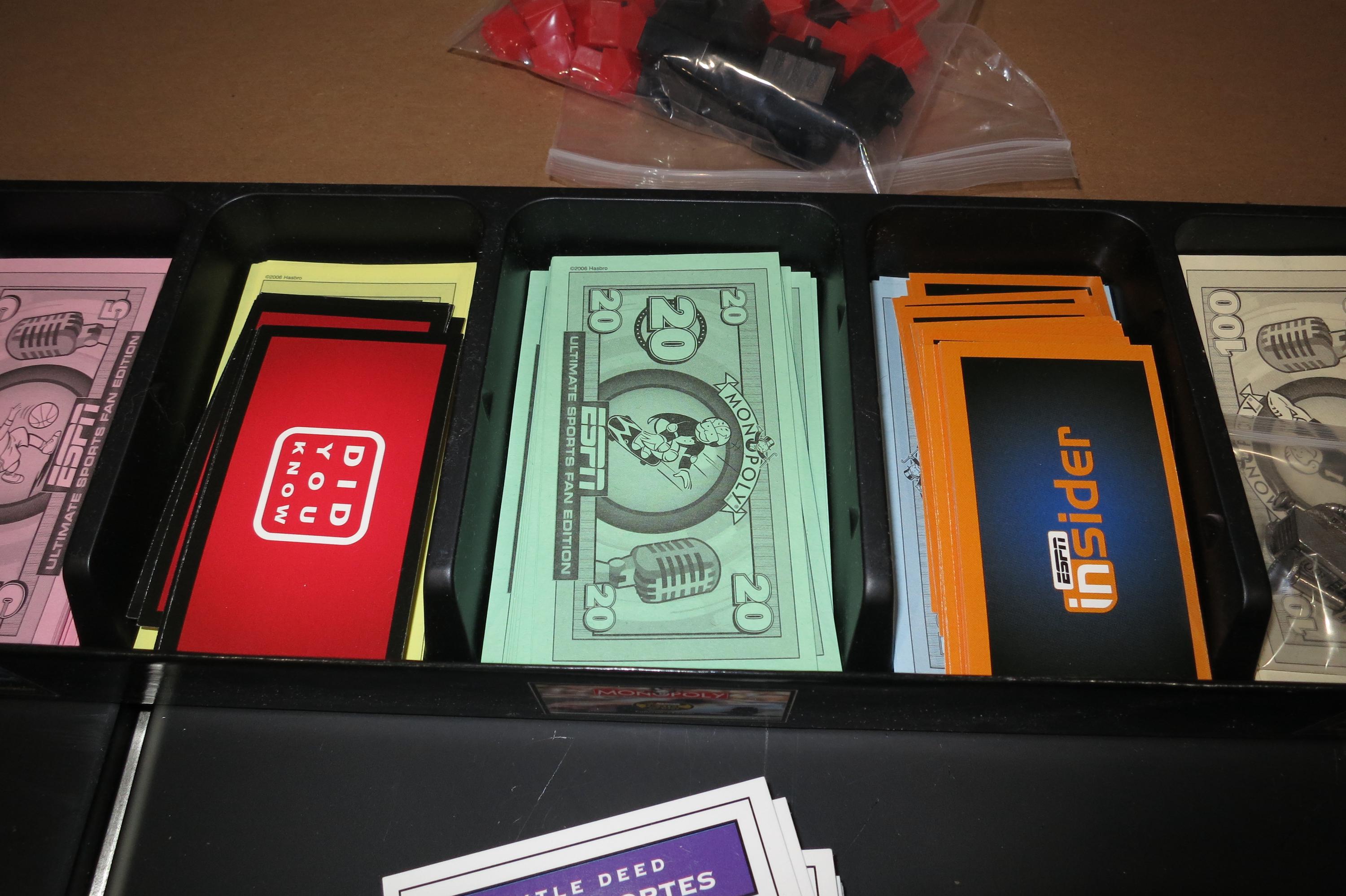 Ready to play! Custom everything, for some reason the 500 dollar bills are the standard ones found in the basic game, everything else is ESPN!