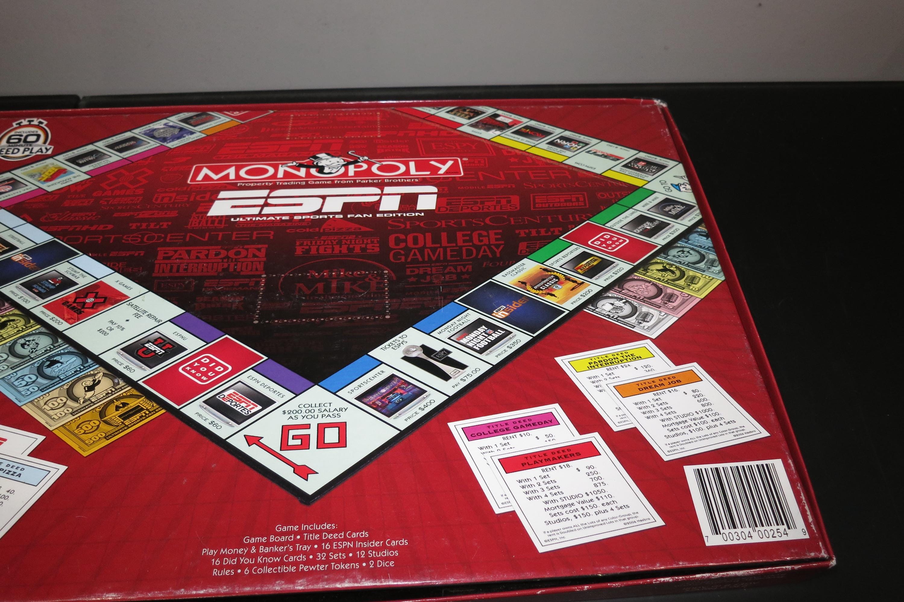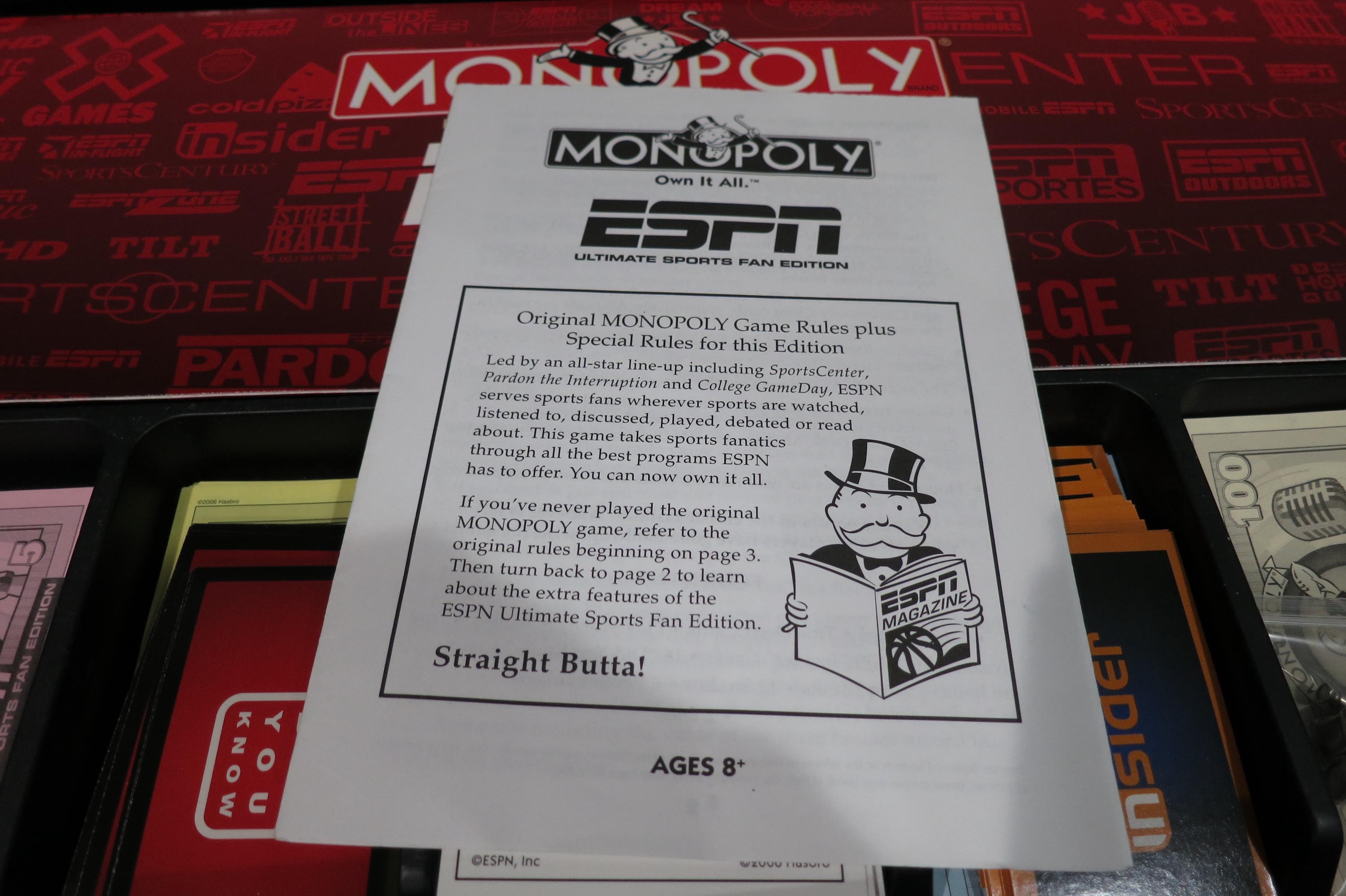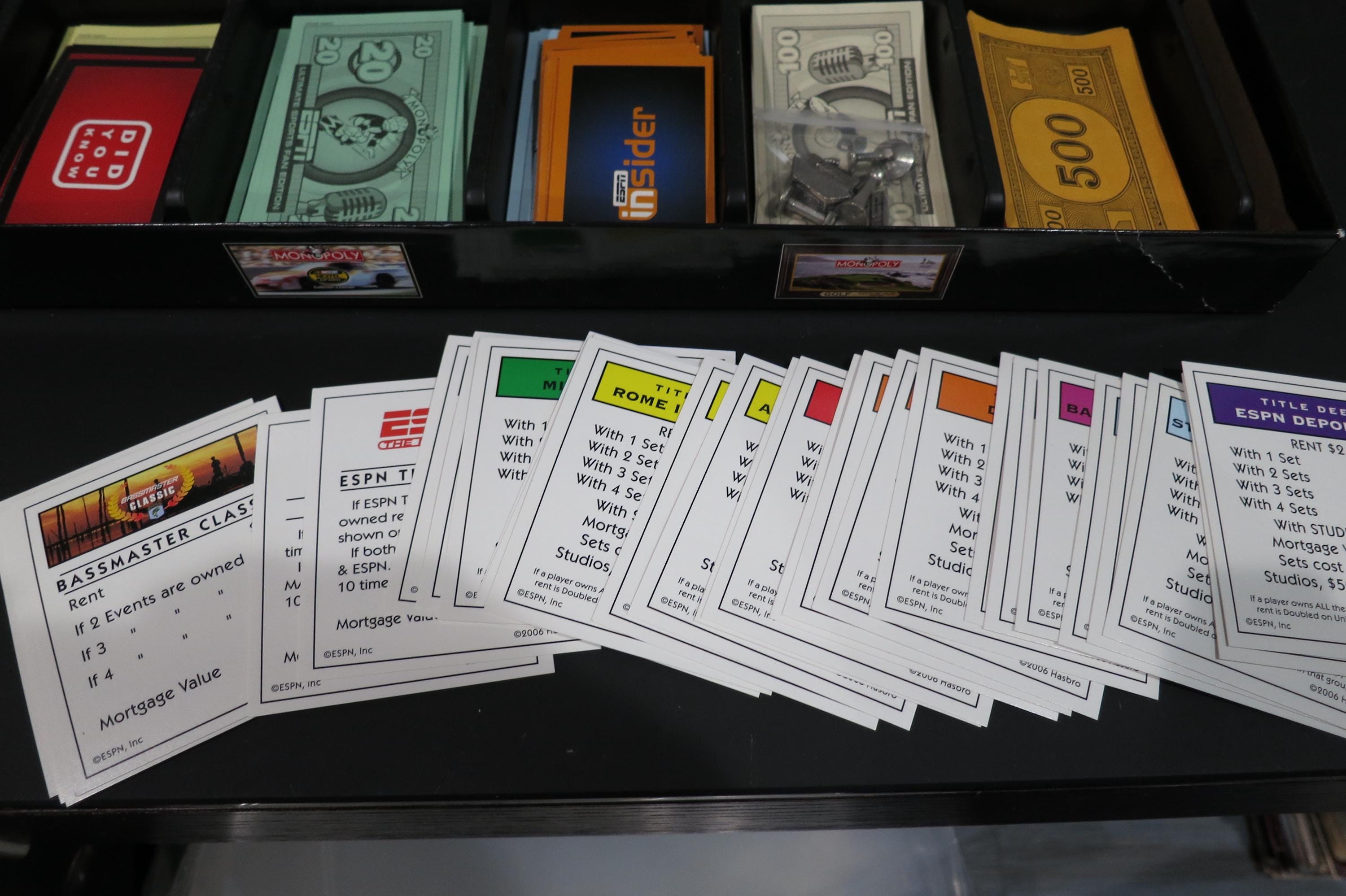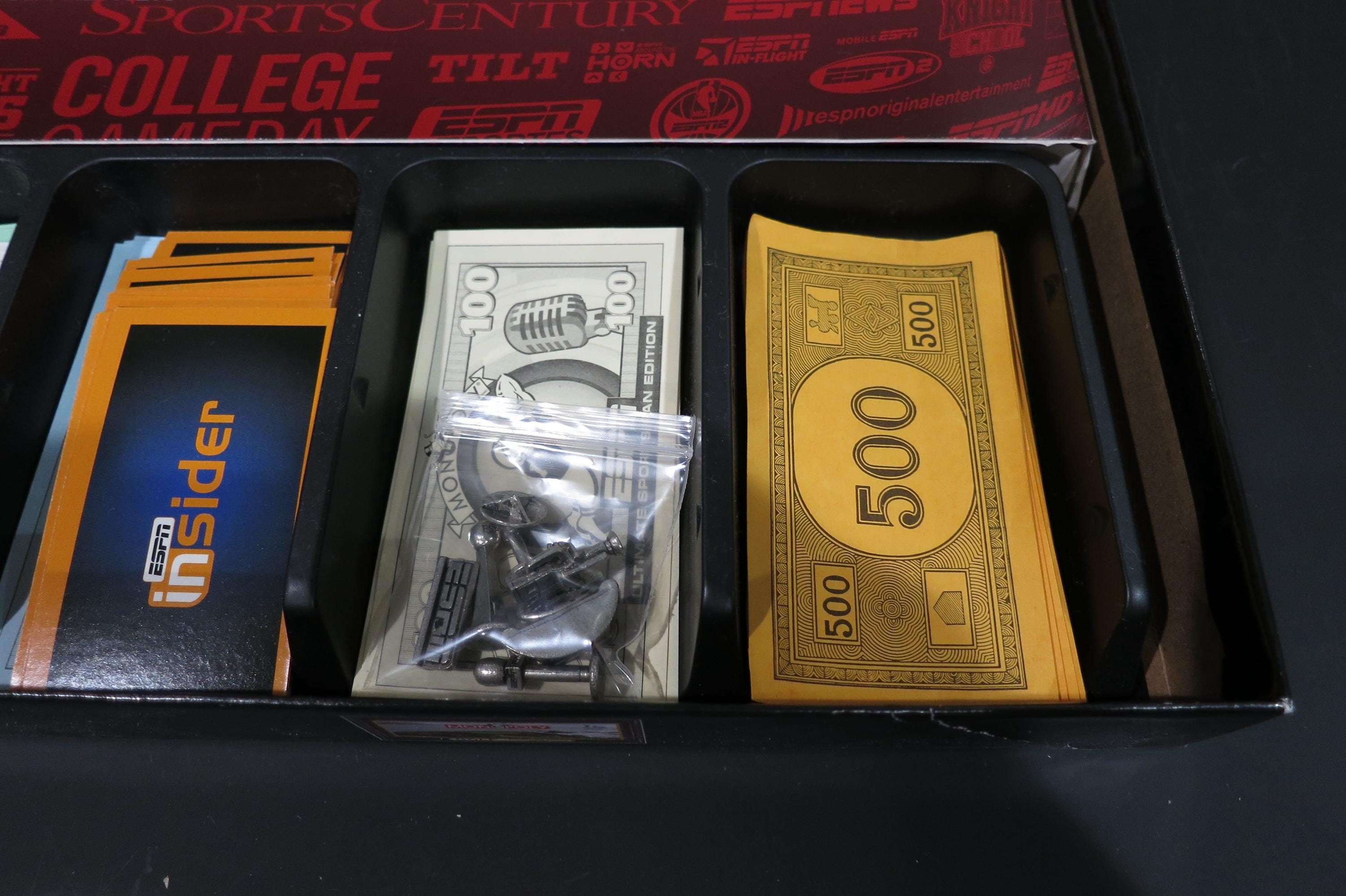 Ready to play! Custom everything, for some reason the 500 dollar bills are the standard ones found in the basic game, everything else is ESPN!