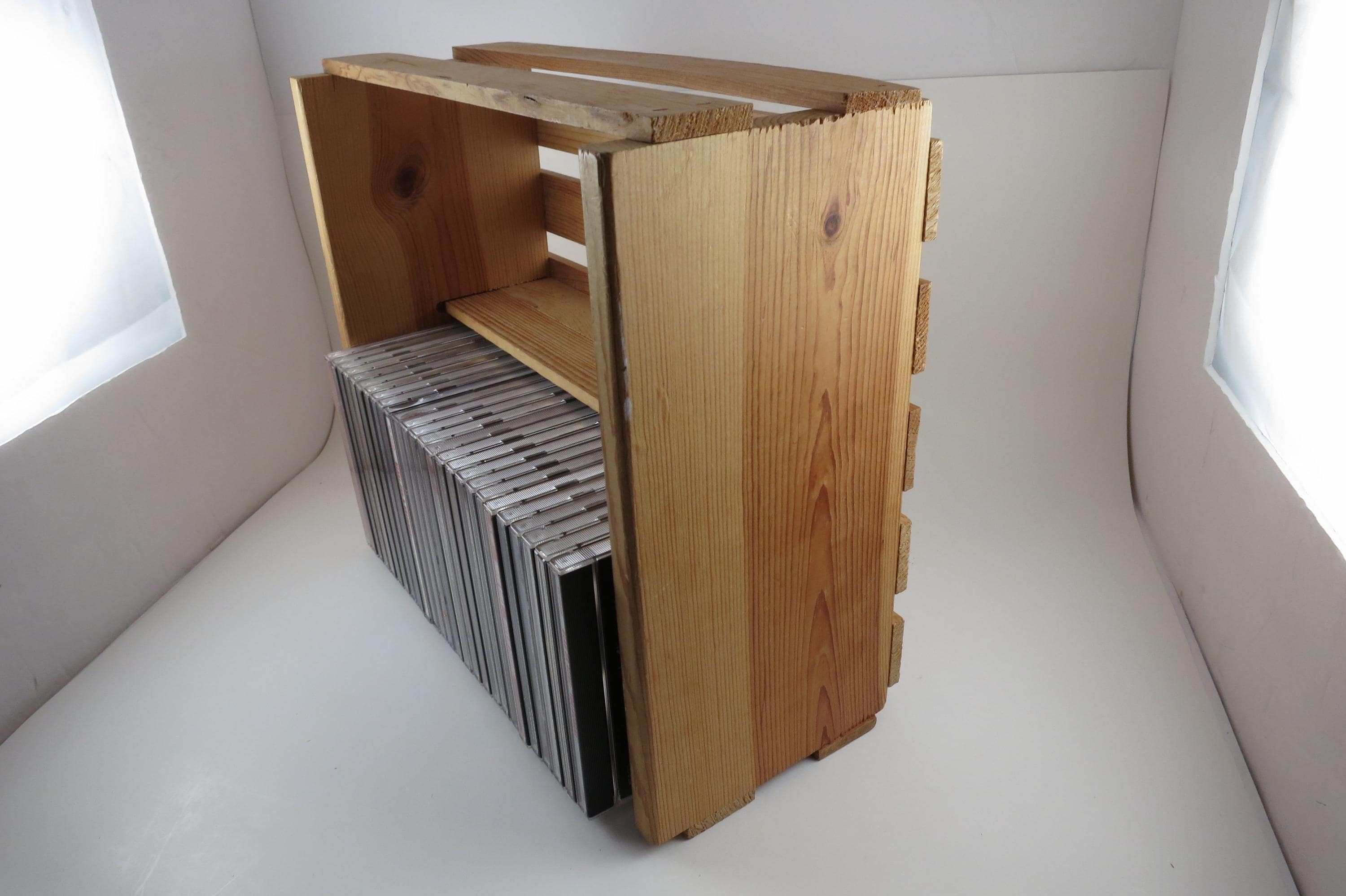 Vintage Double Wooden CD Crate: Double Holder, 50 Discs. Excellent Original Condition. Measures 12 1/4 x 11 x 5.