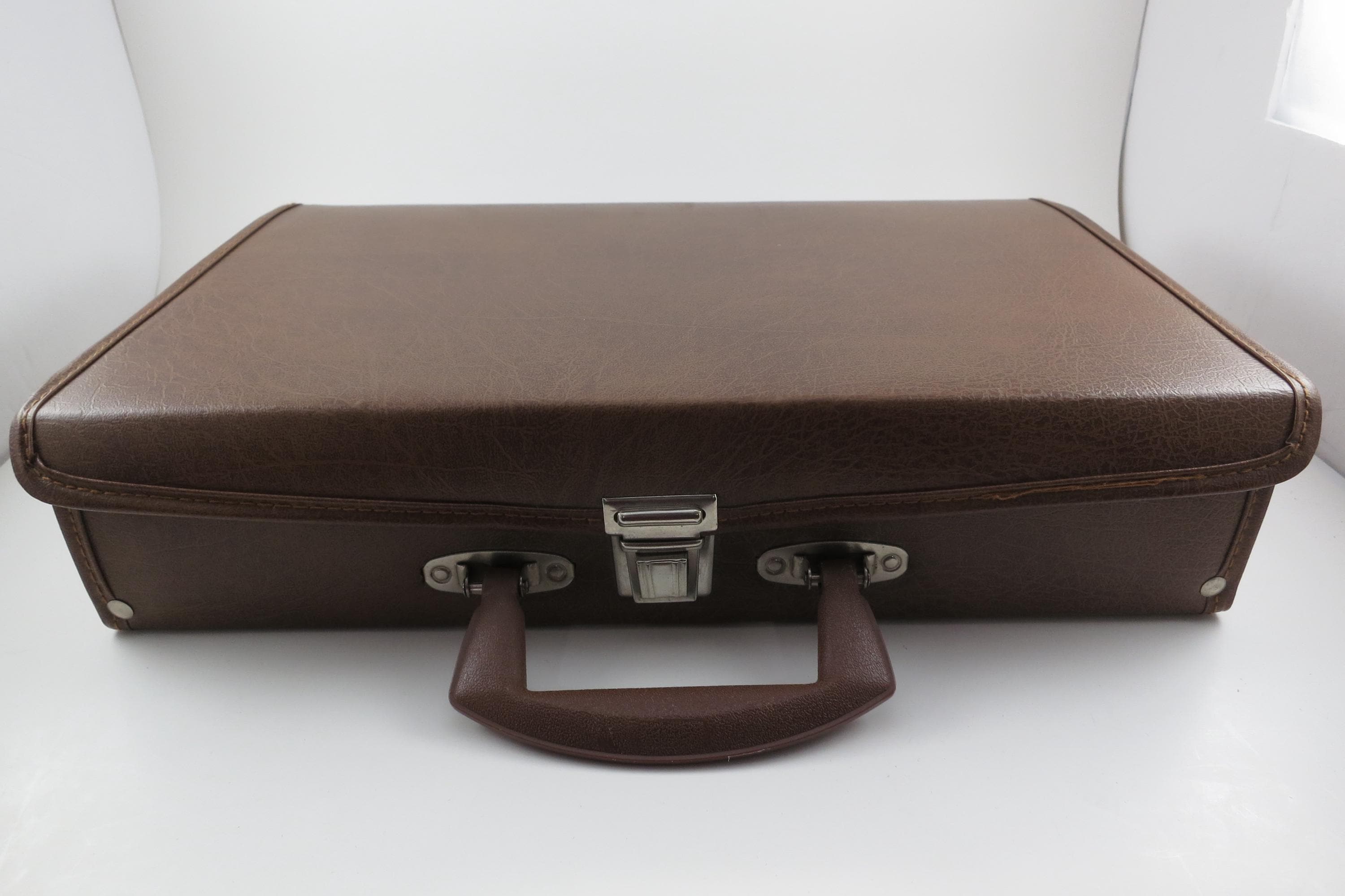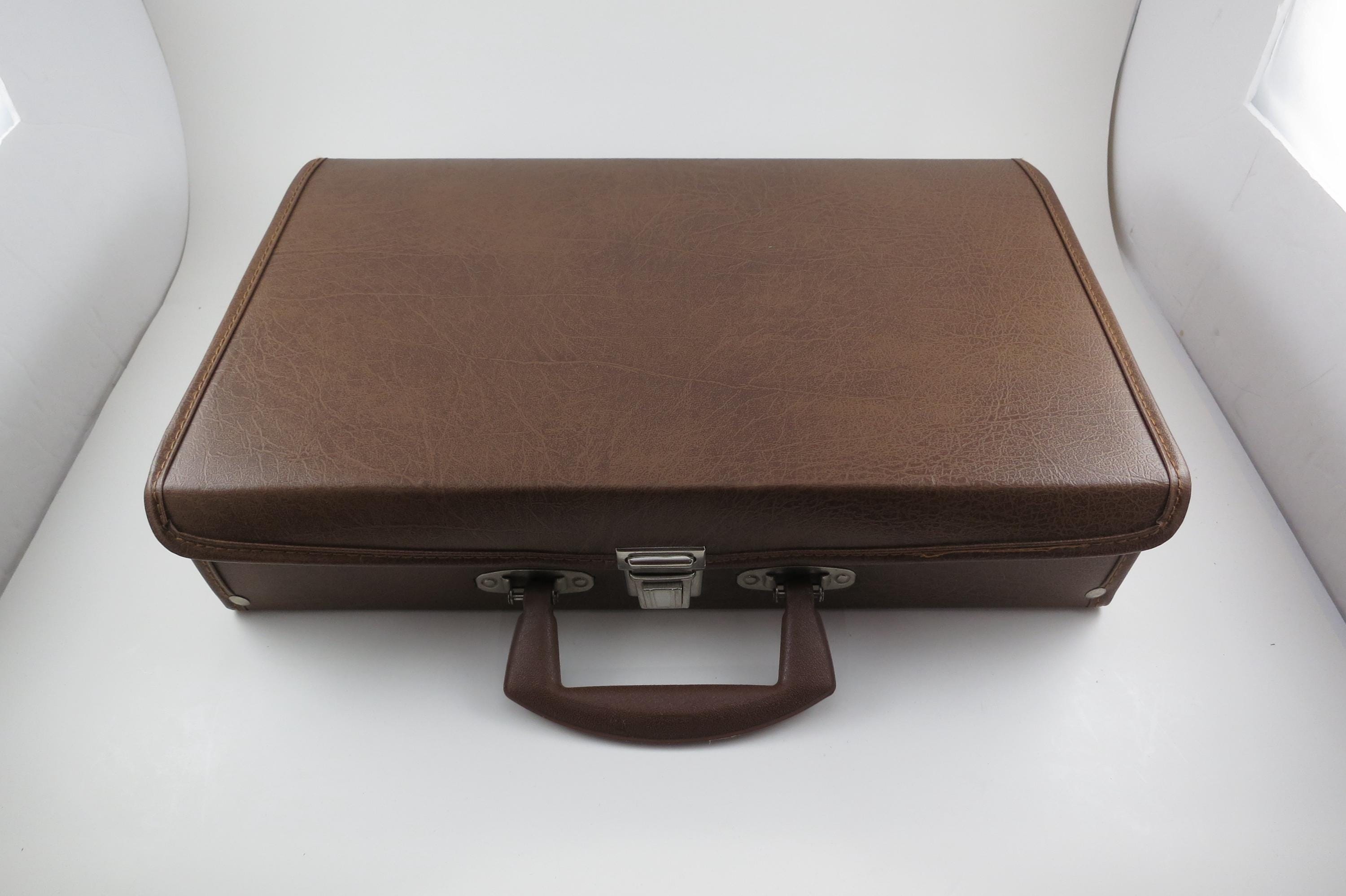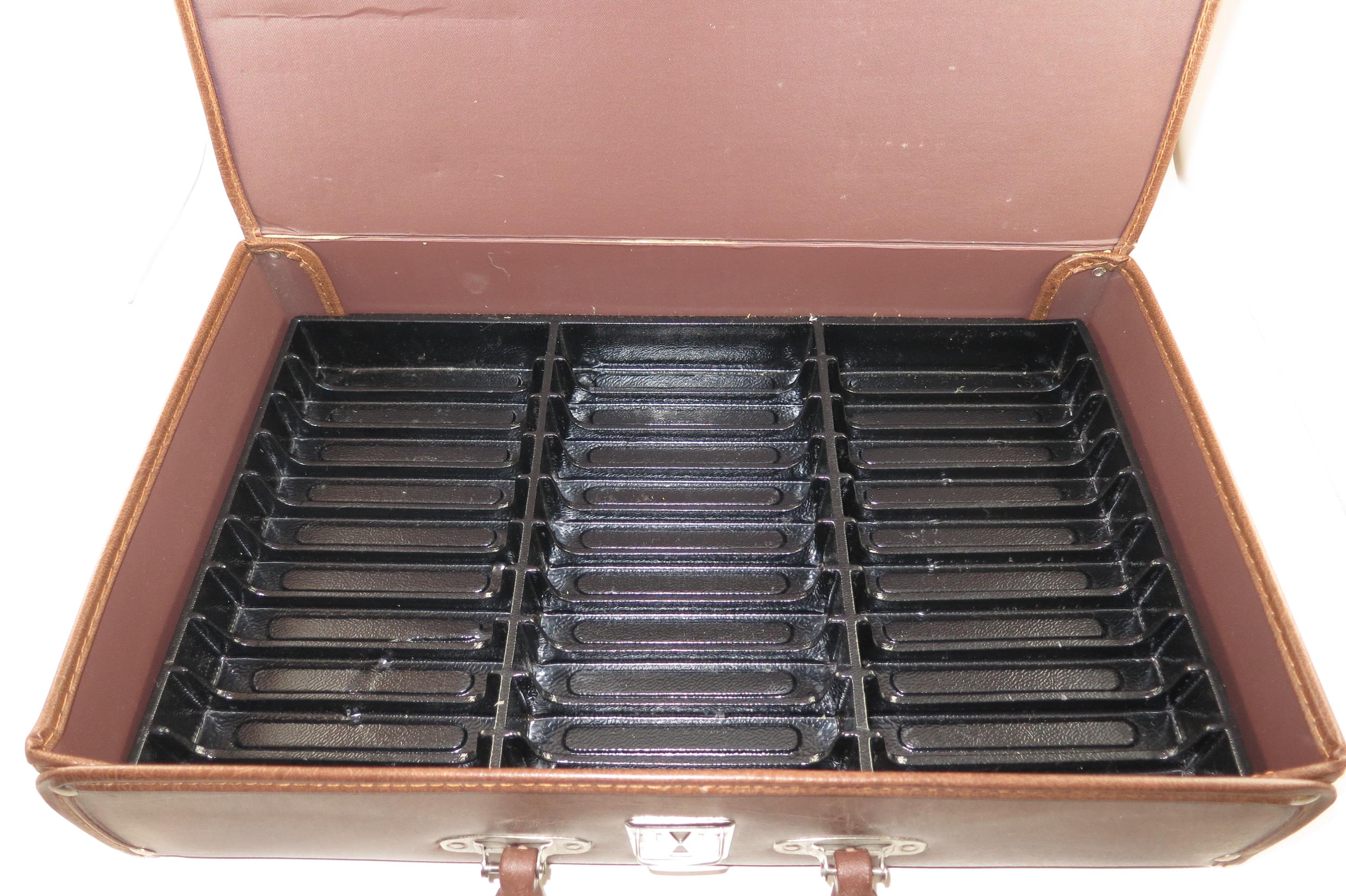 Service Mfg Co 30 Cassette Hard Shell Carrying Case Faux Brown Leather Double Latches and Handle Excellent Condition. Holds 30 tapes, three rows of ten. Perfect for your vintage cassette tapes!