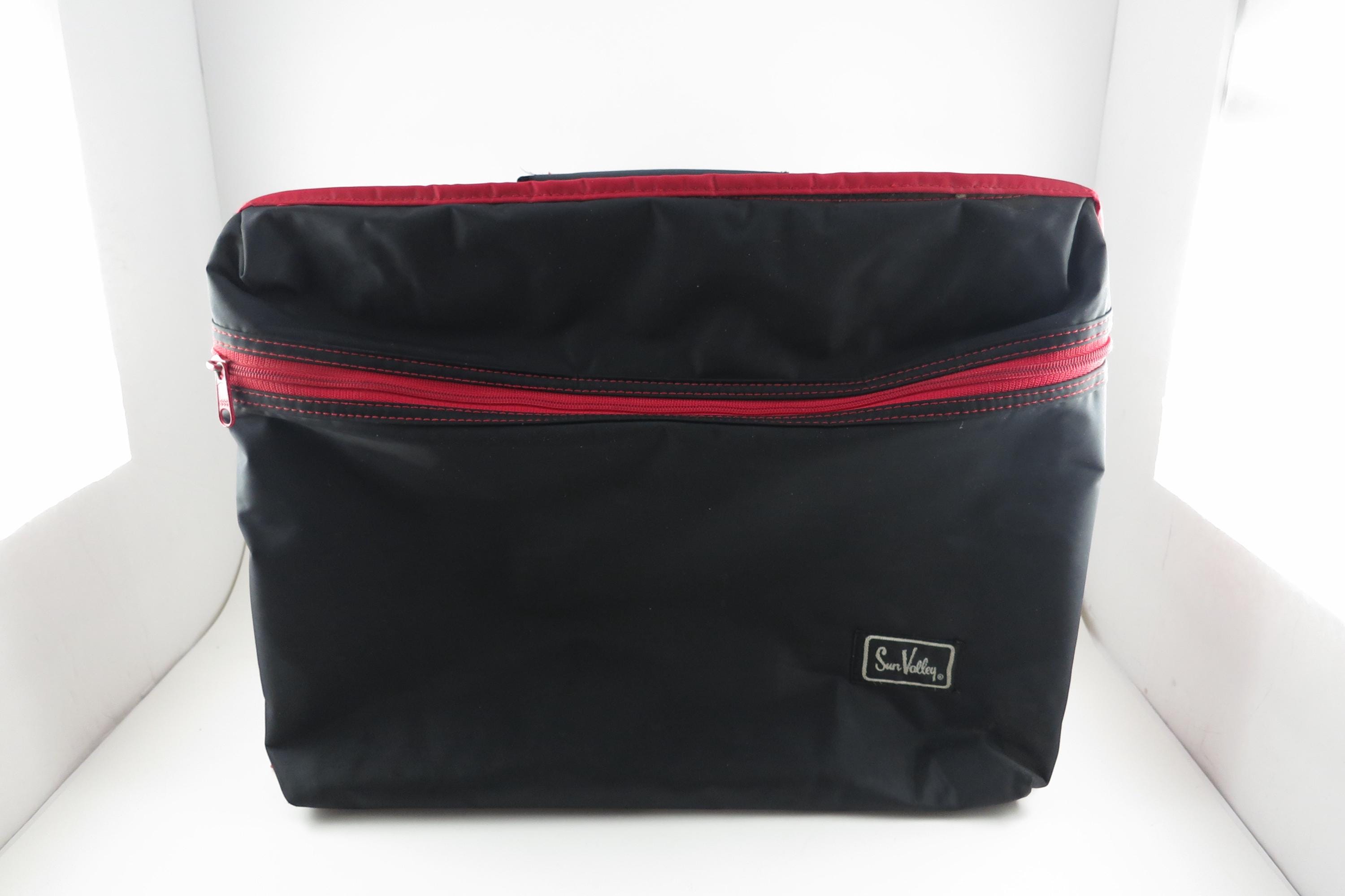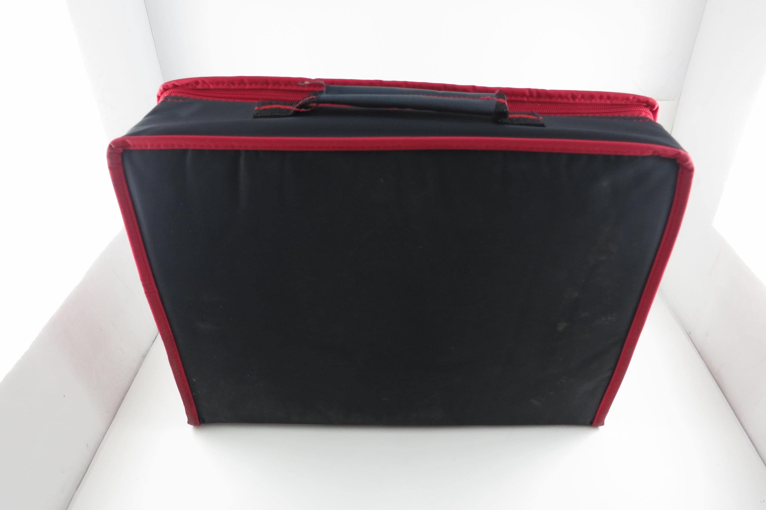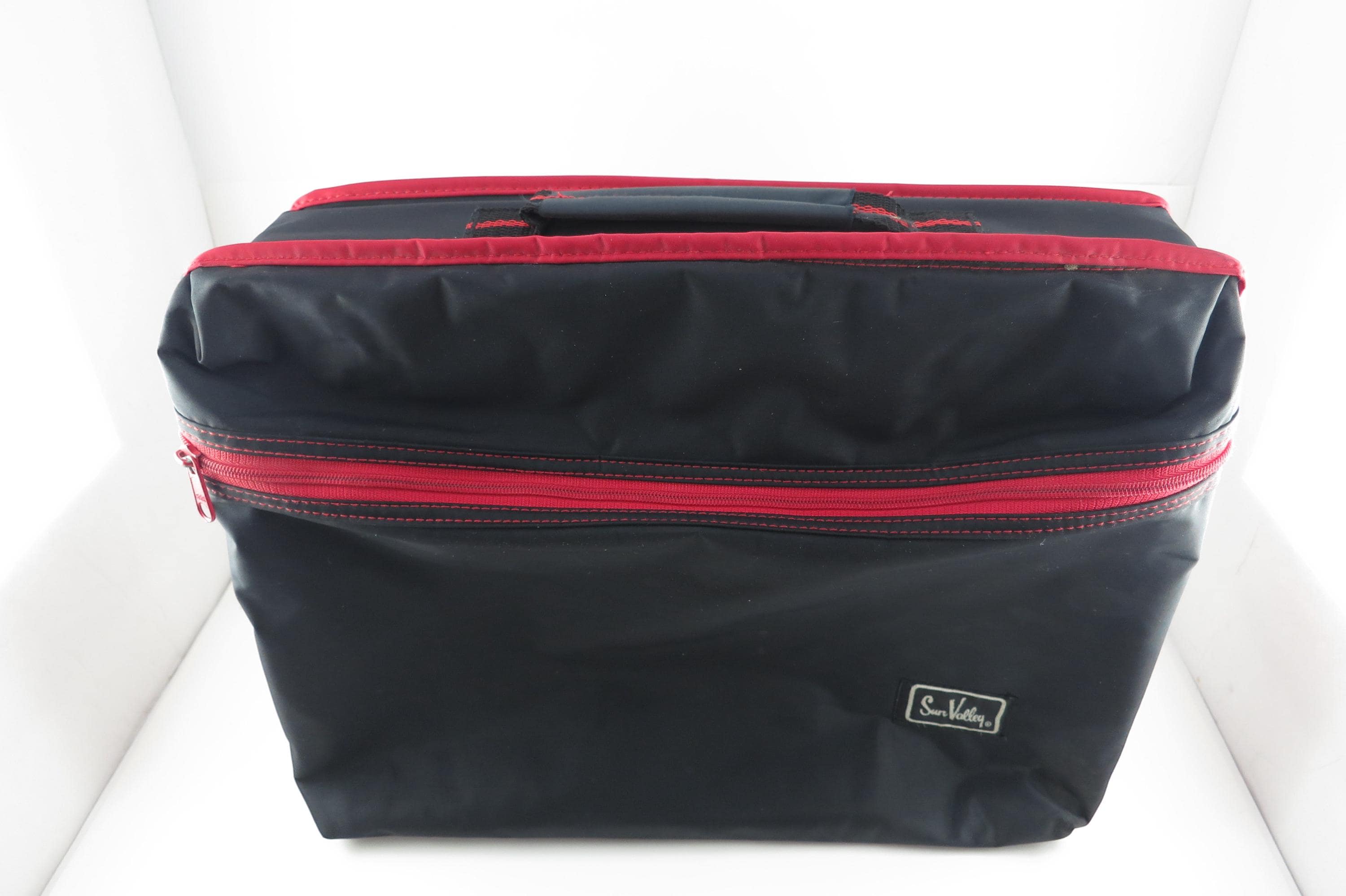 1980's Sun Valley Red & Black Cassette Tape Carrying Case Holds 30 Cassettes with Hard Inner Tray. Excellent condition and ready to use. Zippered Compartment on the front. Perfect for your vintage cassette tapes!