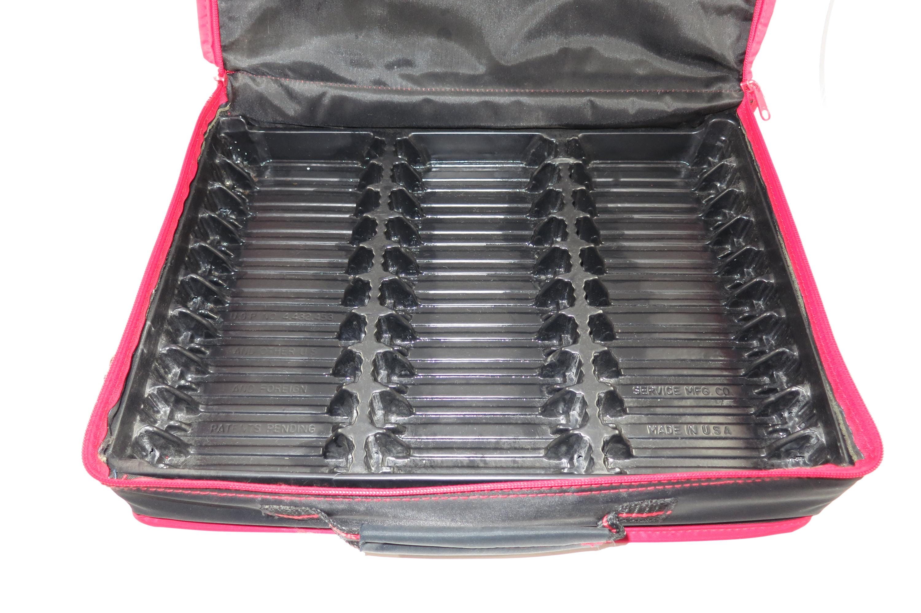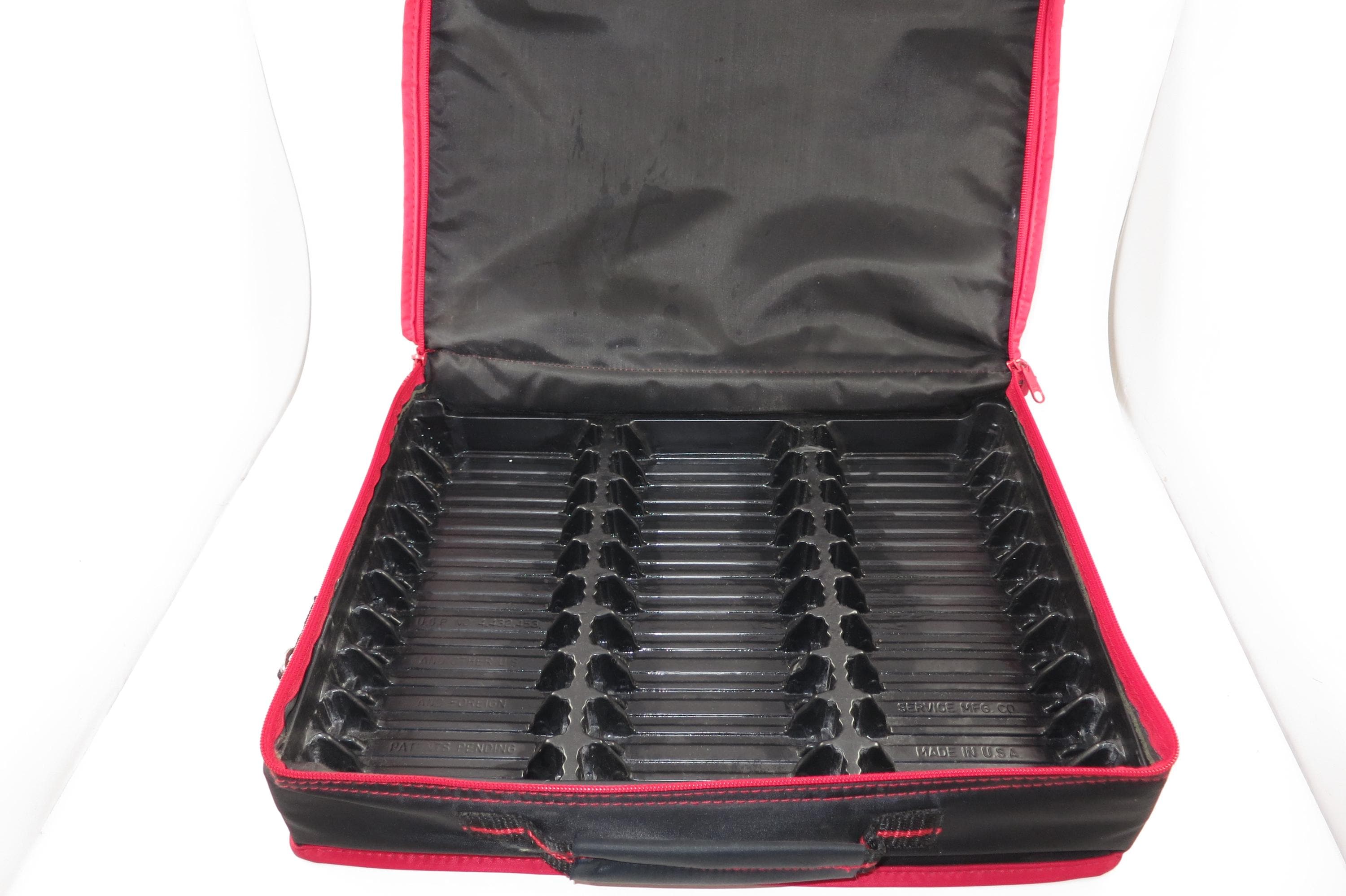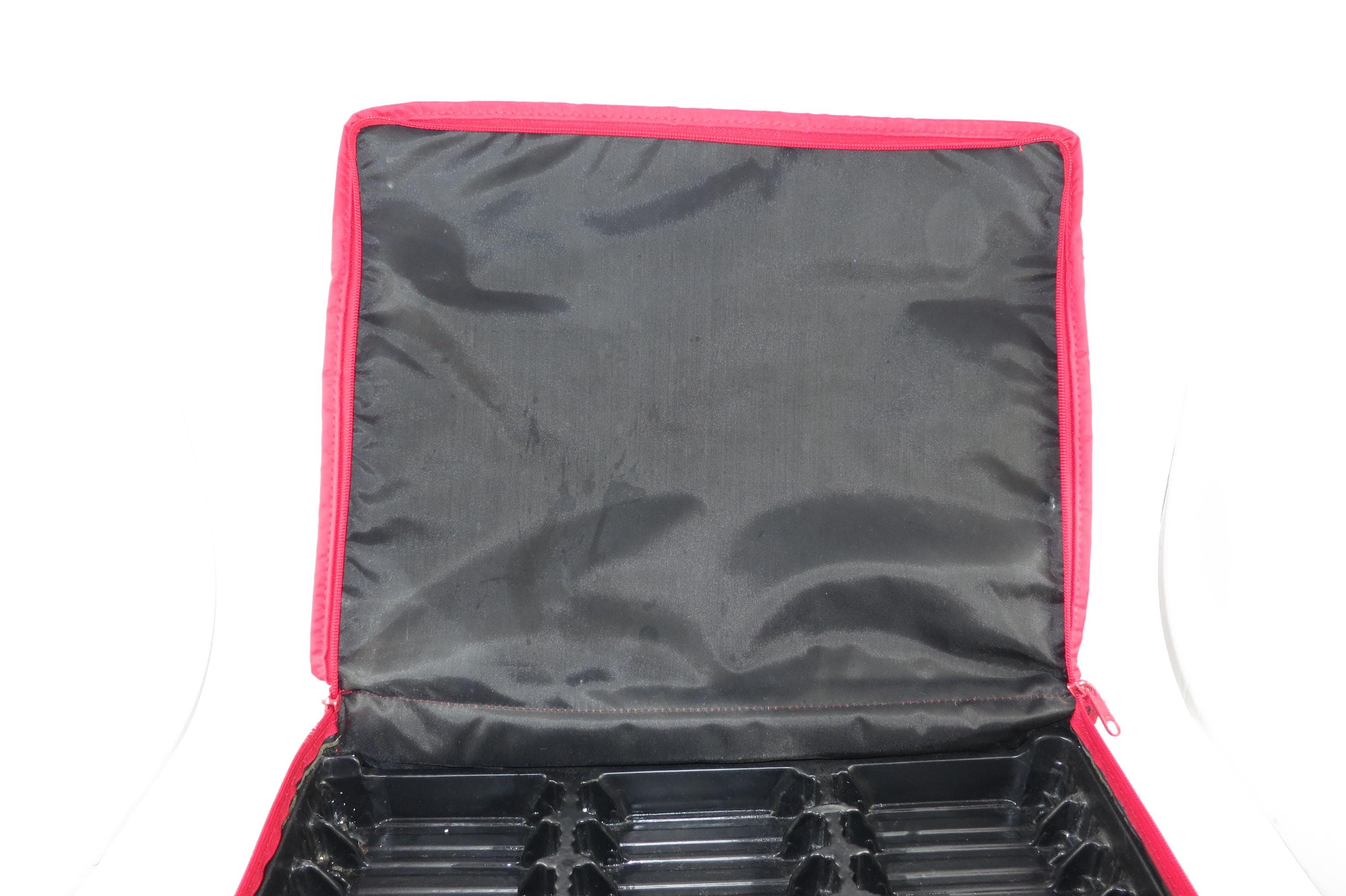 1980's Sun Valley Red & Black Cassette Tape Carrying Case Holds 30 Cassettes with Hard Inner Tray. Excellent condition and ready to use. Zippered Compartment on the front. Perfect for your vintage cassette tapes!