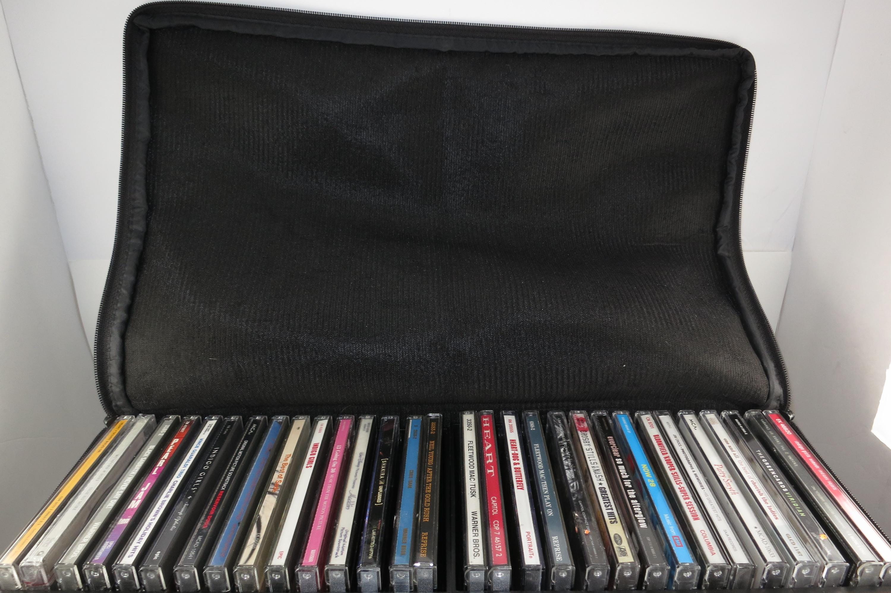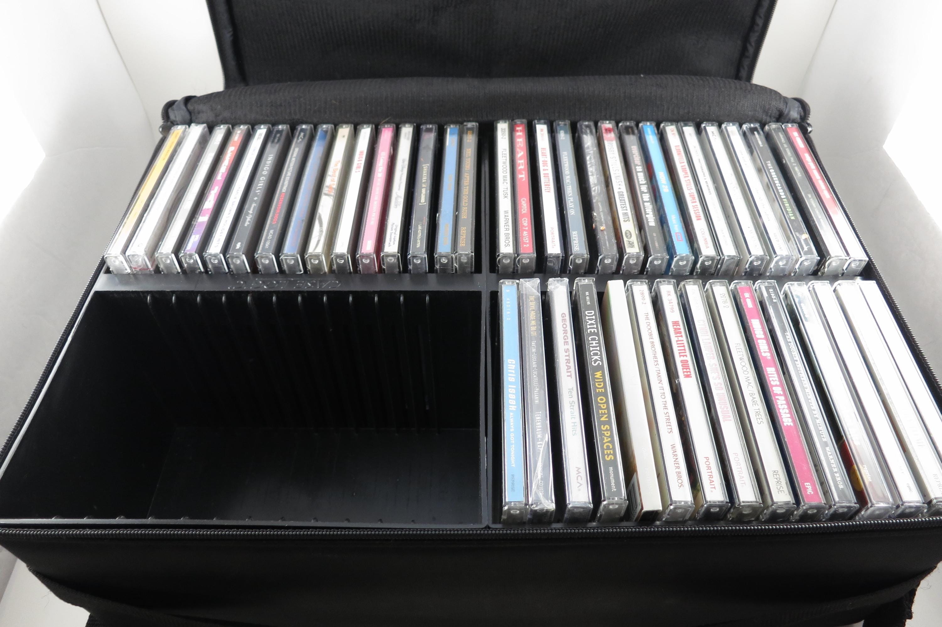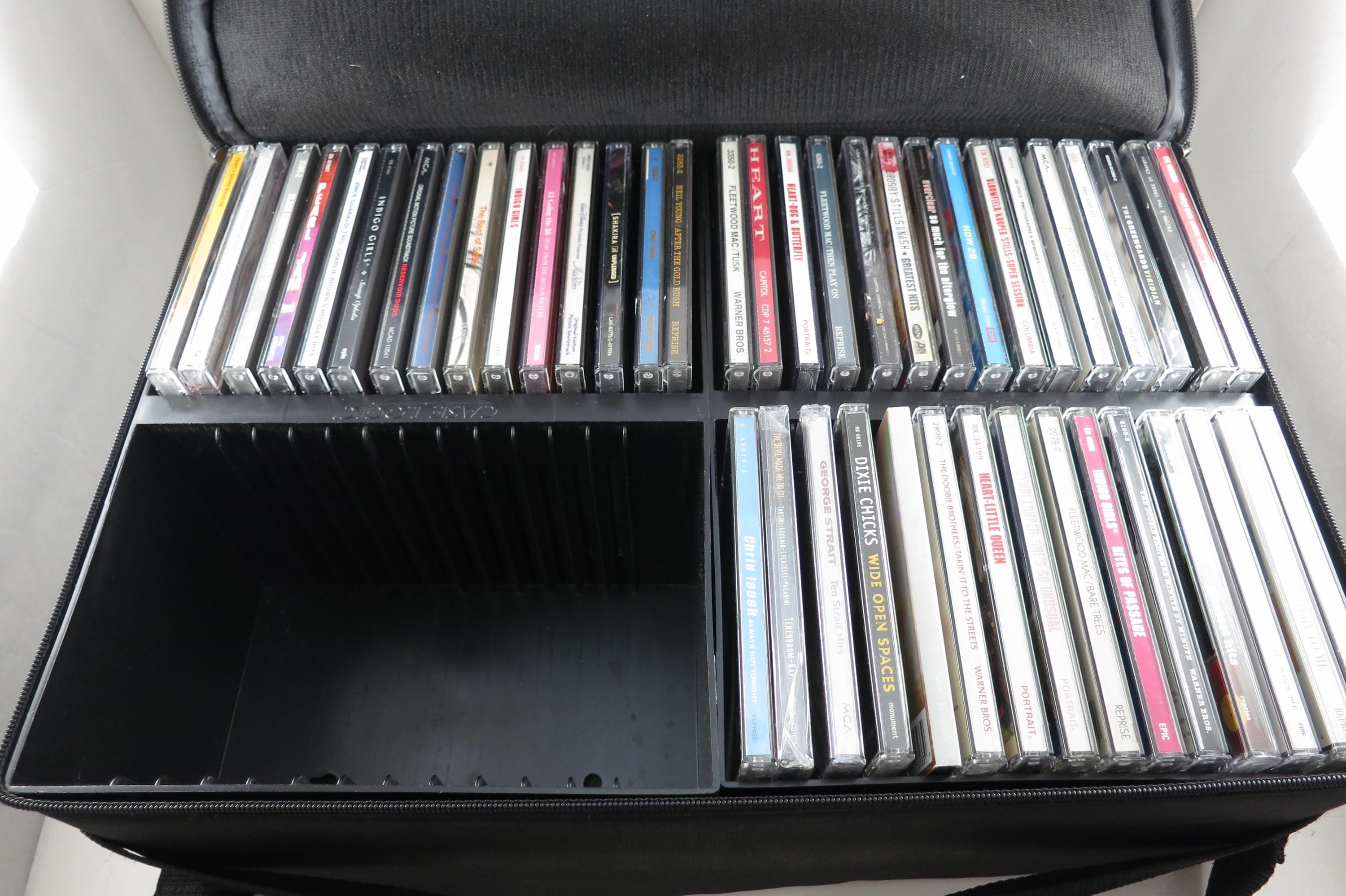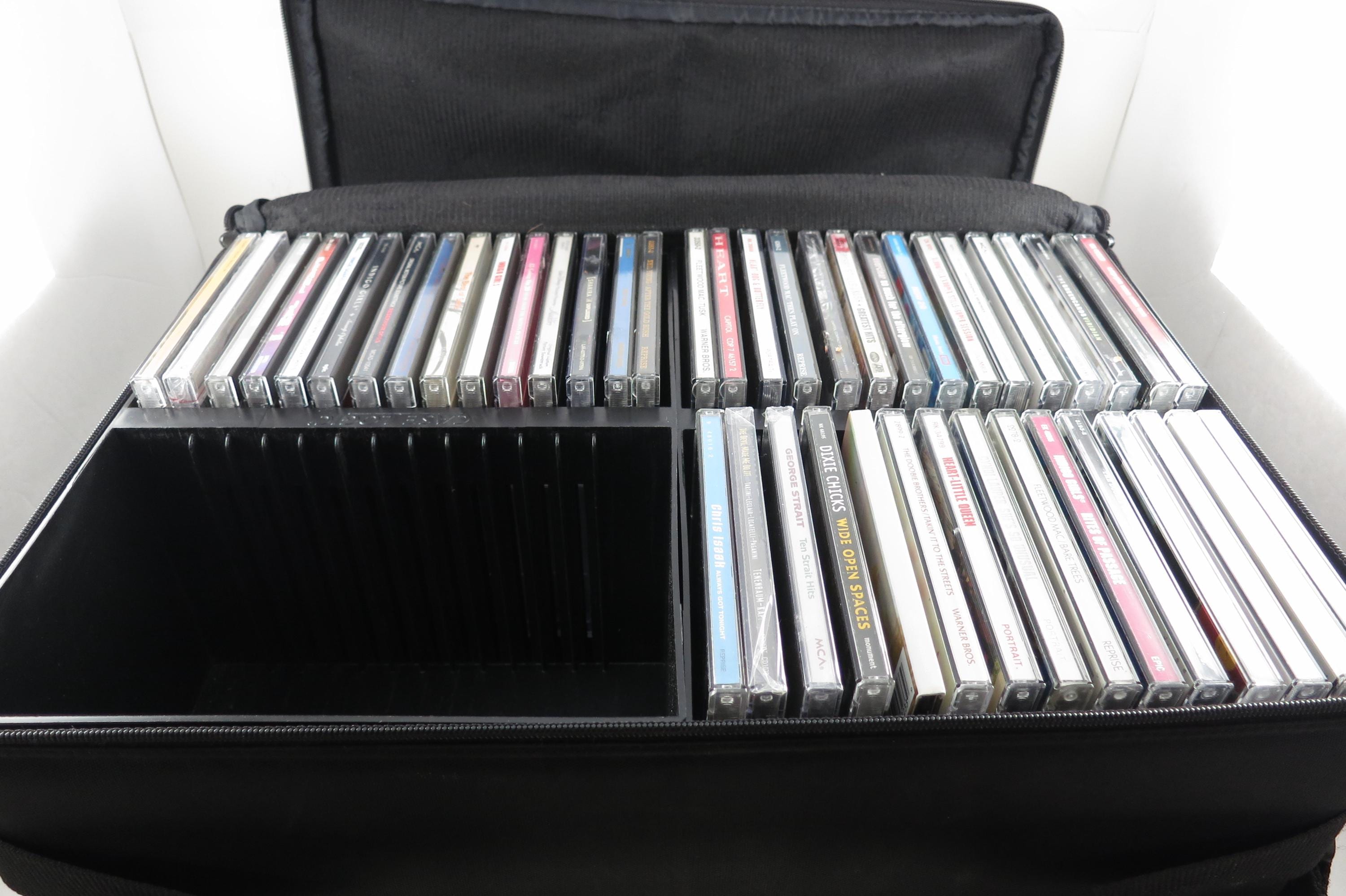 1990's Case Logic Black Mega Double CD Carrying Case Holds 60 Discs Carrying Strap Handle Excellent Condition. This is a large size case that can hold 60 regular discs or 52 regular discs and 8 Double Discs in their cases. It has a carrying handle and shoulder strap. Great condition.