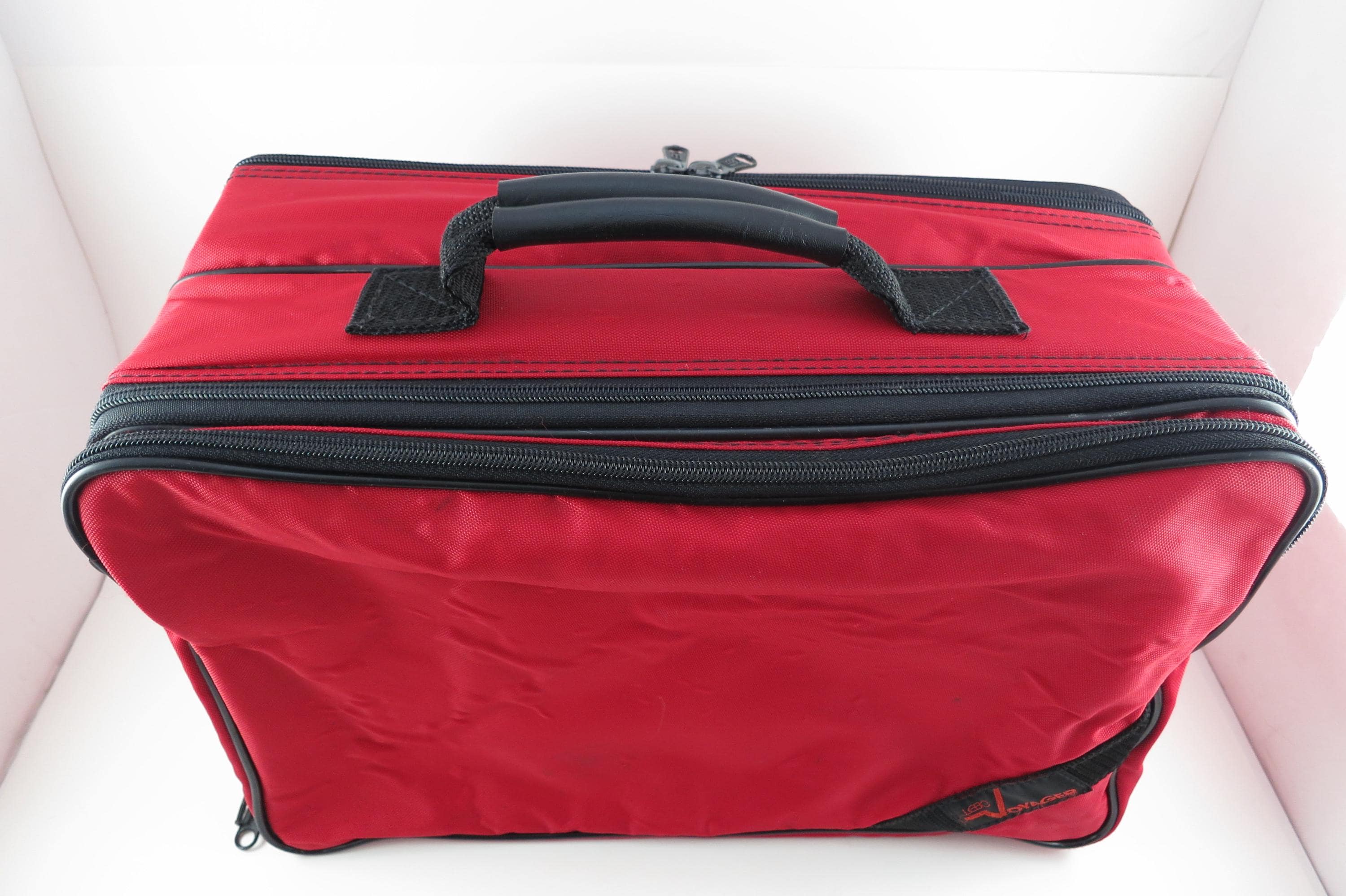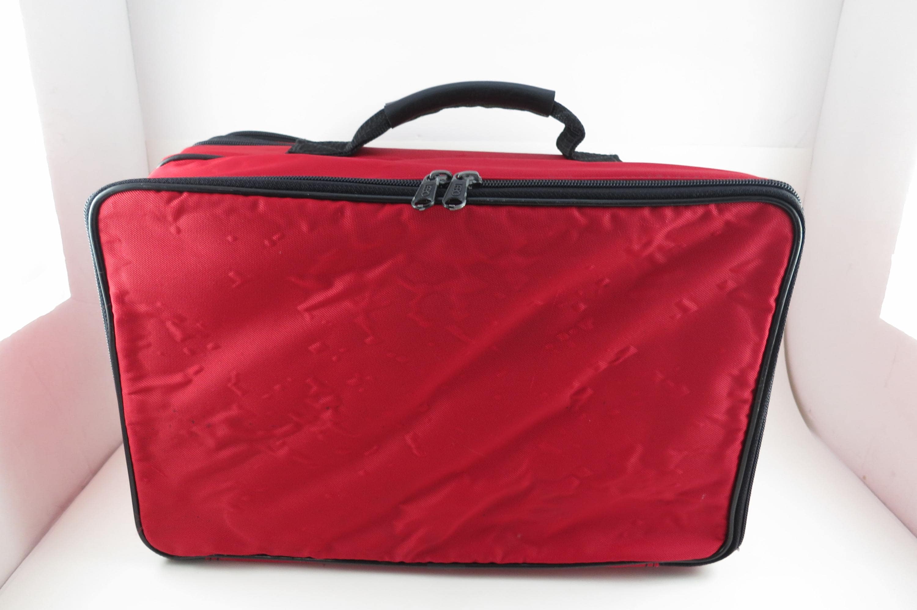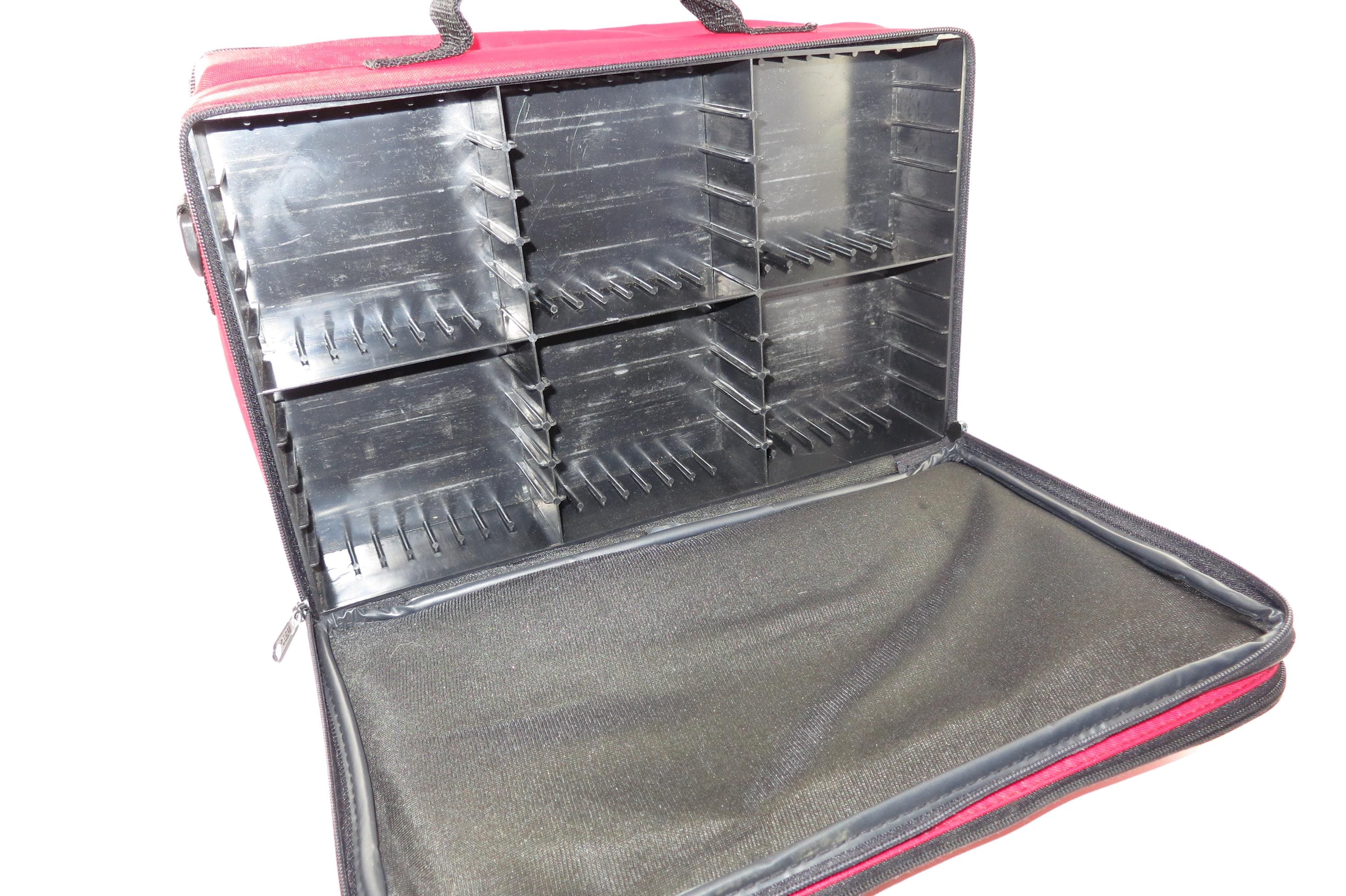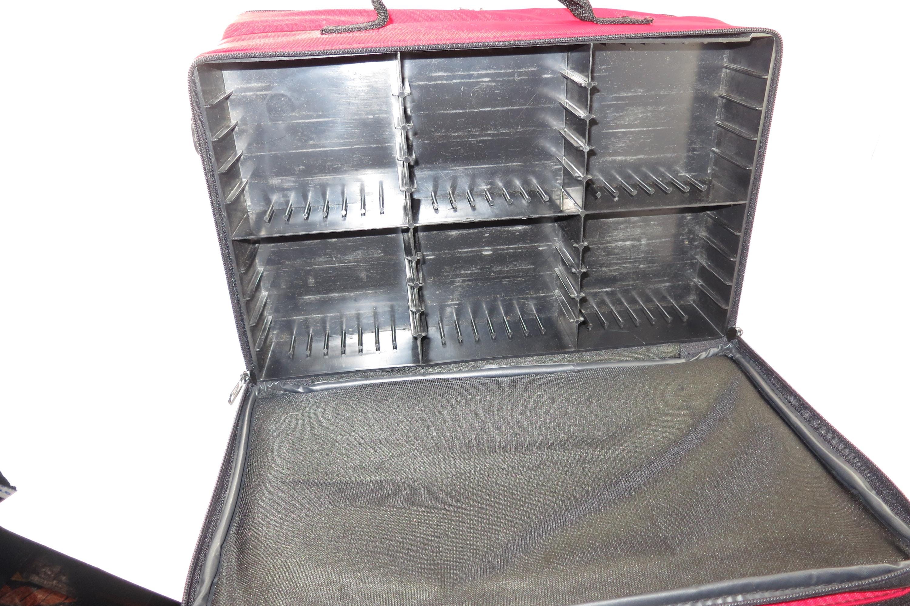 1980s Lebo Cassette Tape Case: Red & Black, Holds 60 Tapes. Excellent condition and ready to use. Zippered Compartment on the front. Perfect for your vintage cassette tapes!