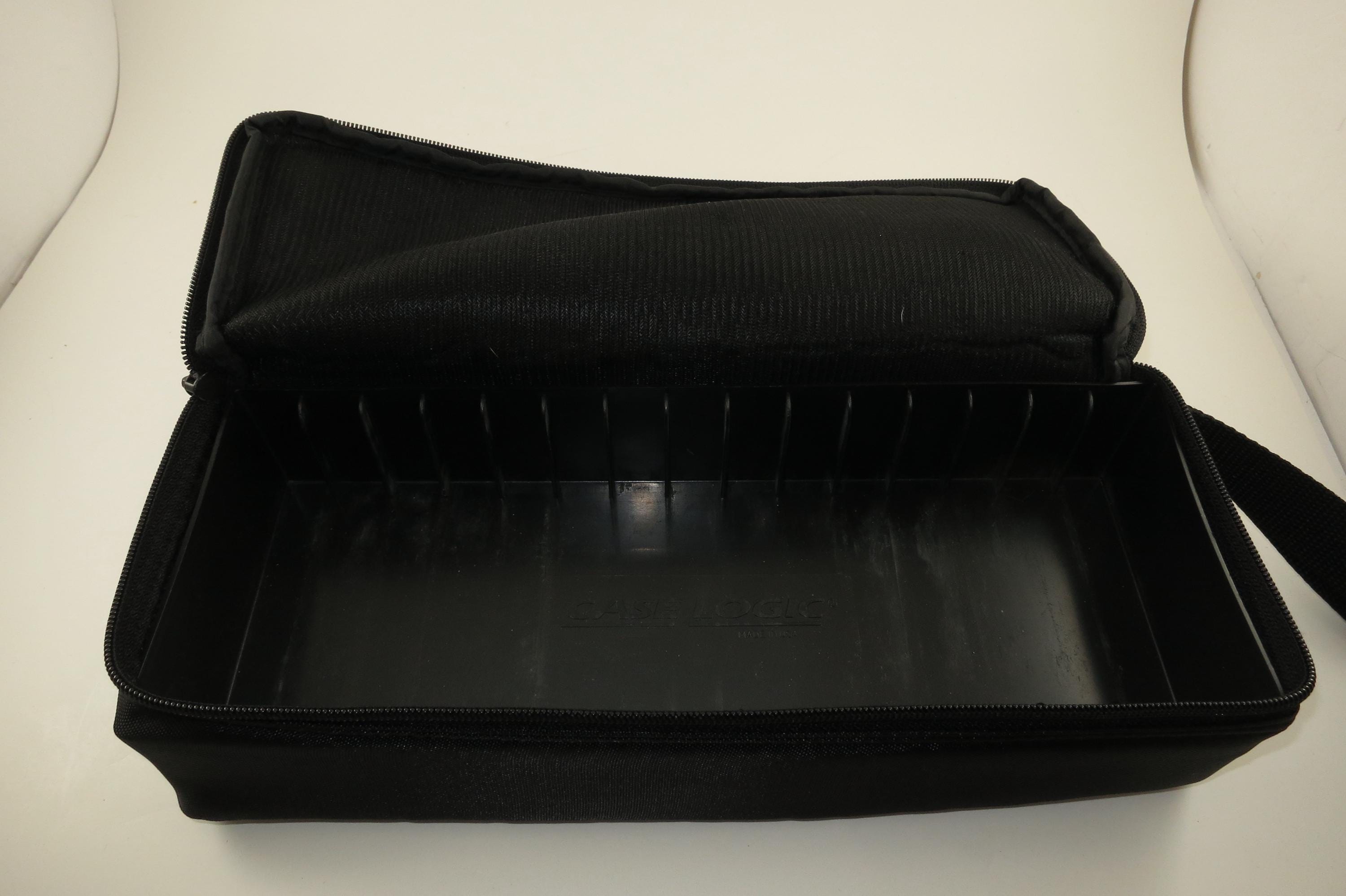 1980's Case Logic Black Cassette Tape Carrying Case Holds 15 Cassettes with Hard Inner Tray. Excellent condition and ready to use.