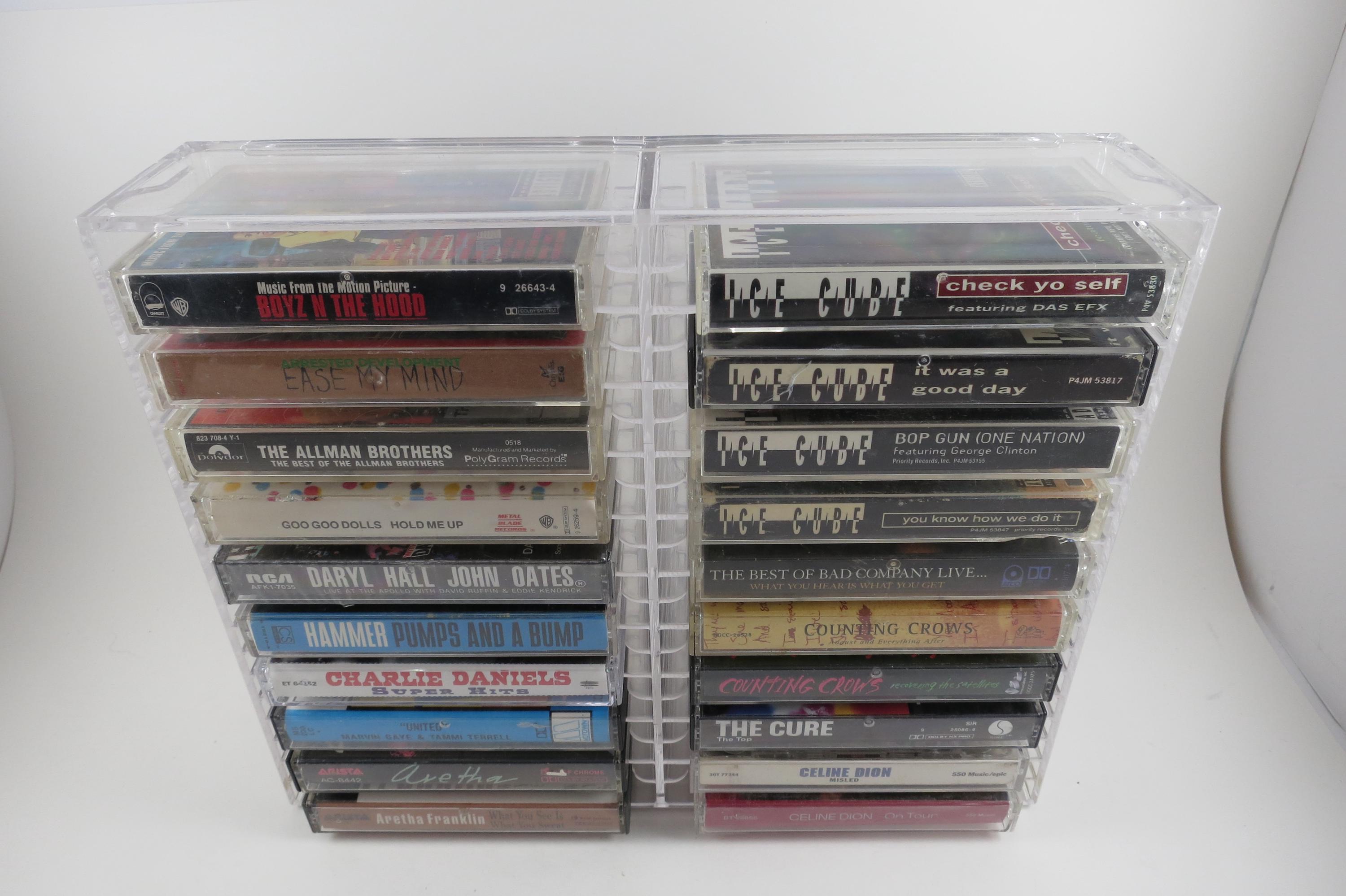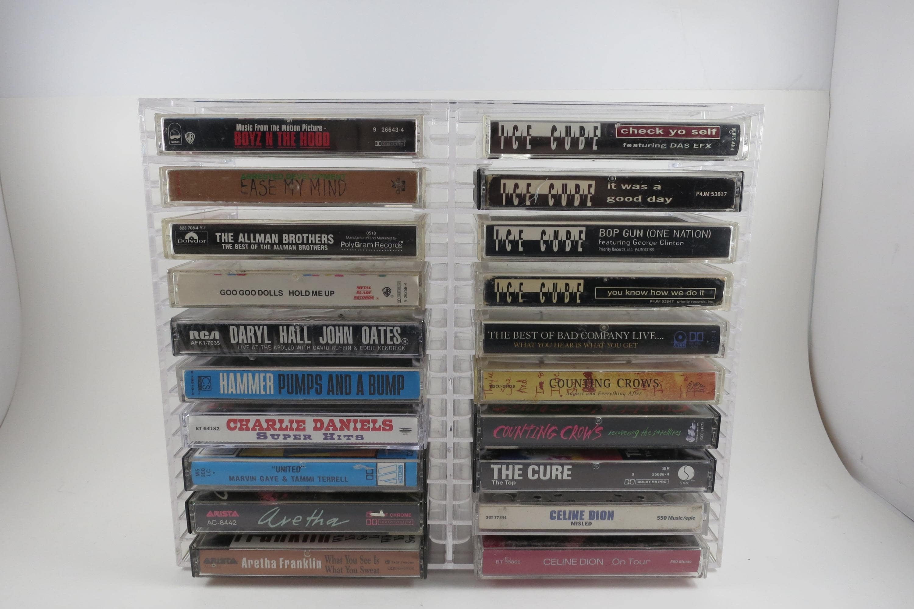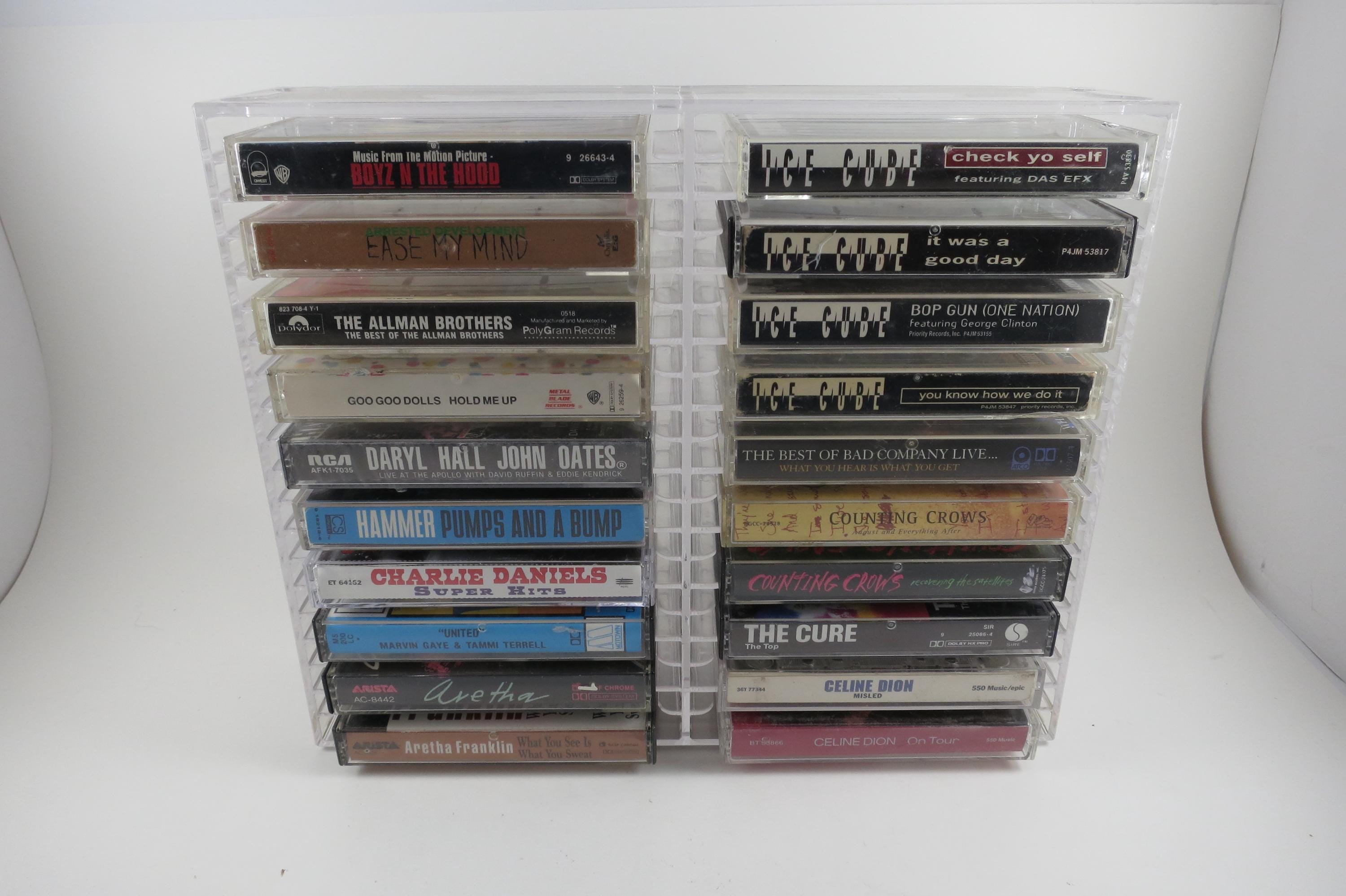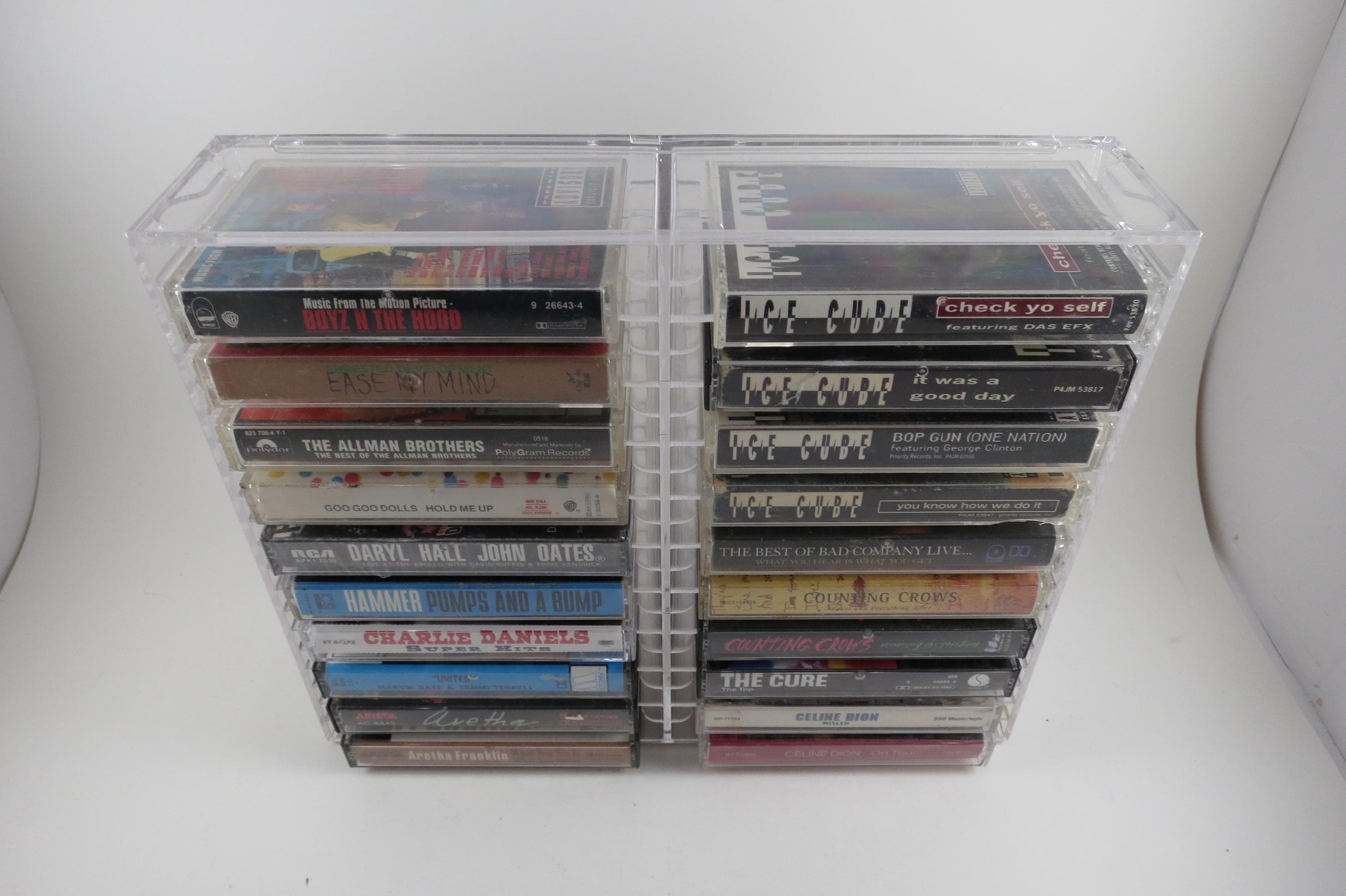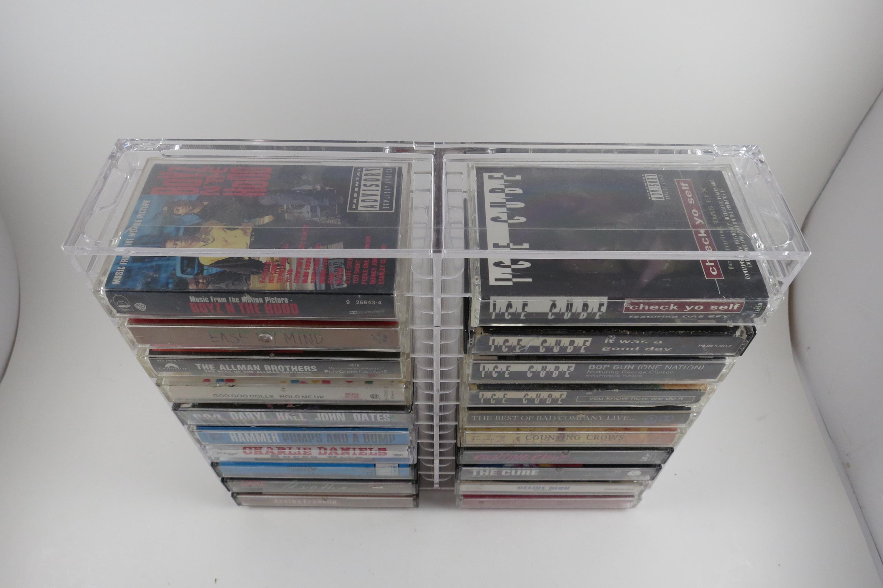 Vintage 1991 Clear Acrylic Cassette Holder Holds 20 Tapes Excellent Used Condition. Holds 20 Cassettes in their cases.
