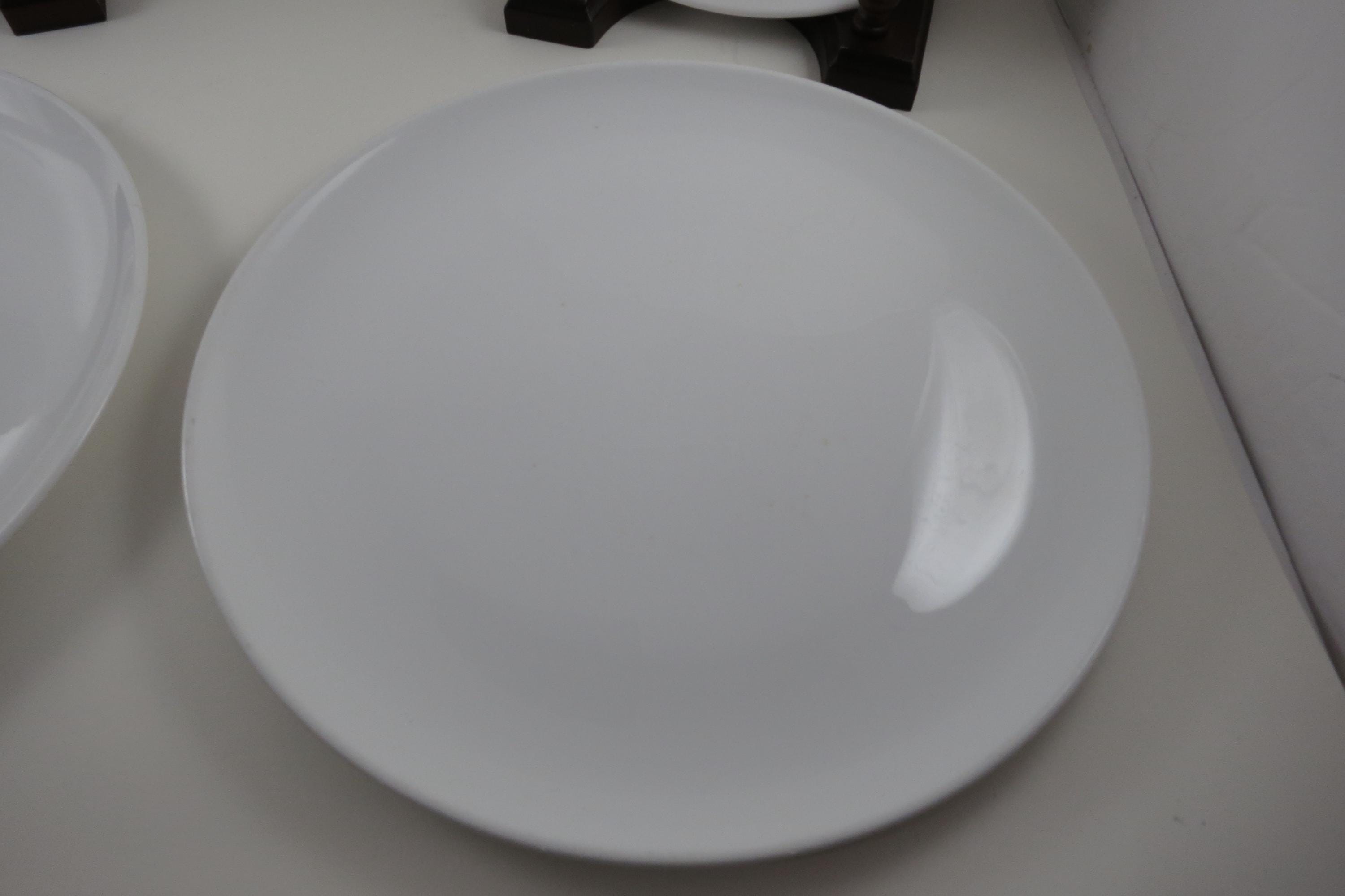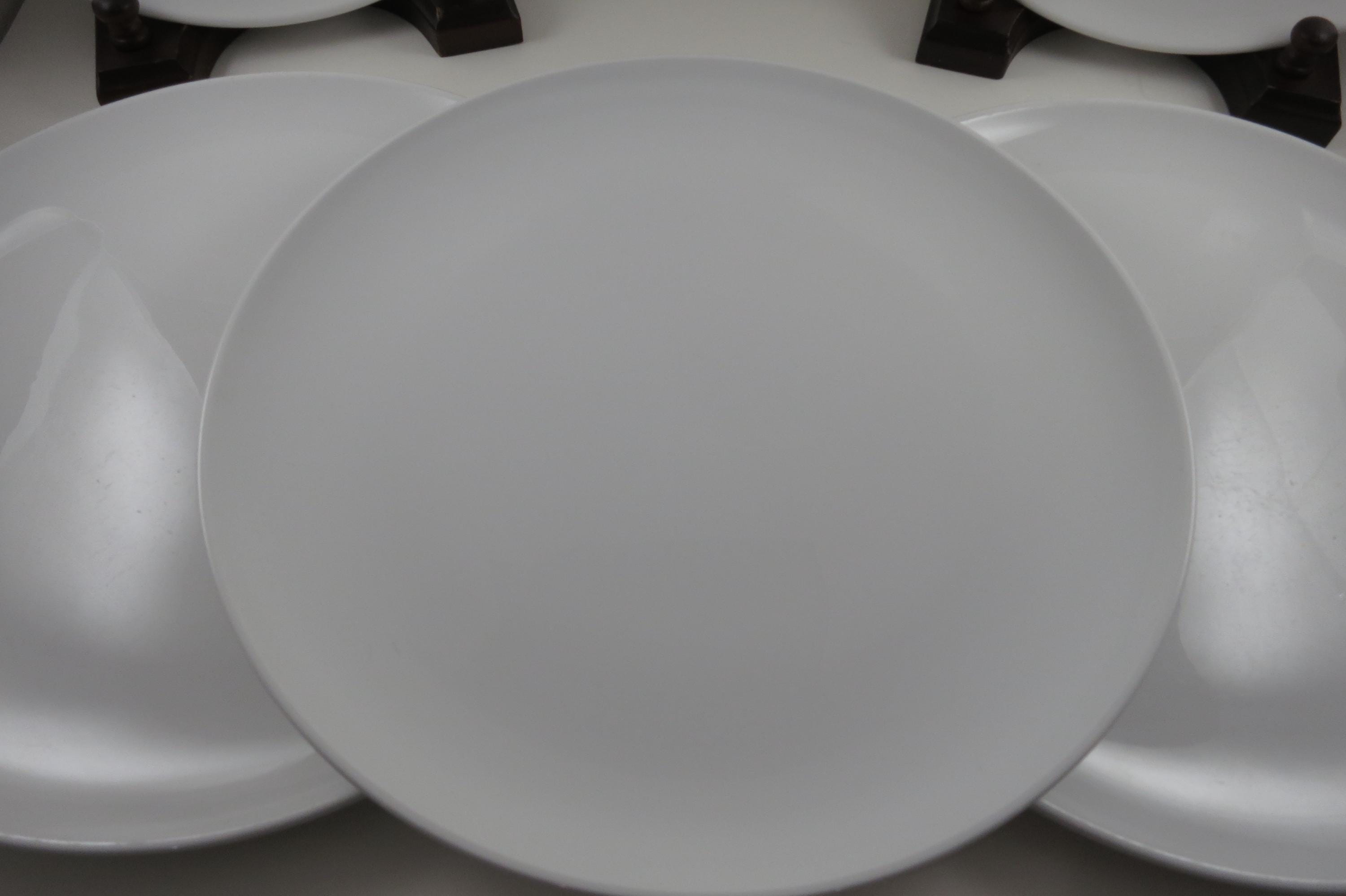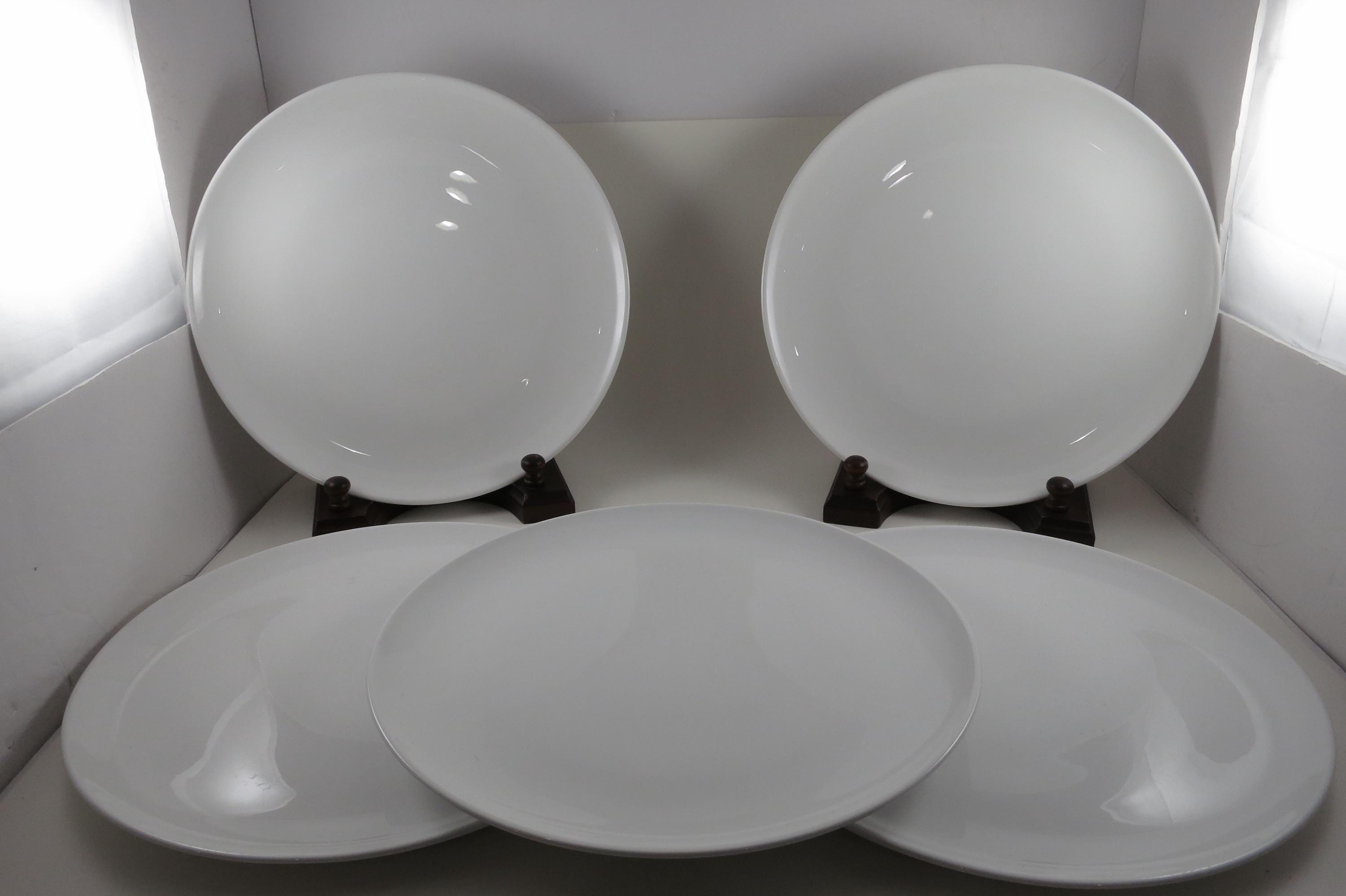 Set of Five Vintage Centura by Corning White Coupe 10 1/8 Inch Dinner Plates.