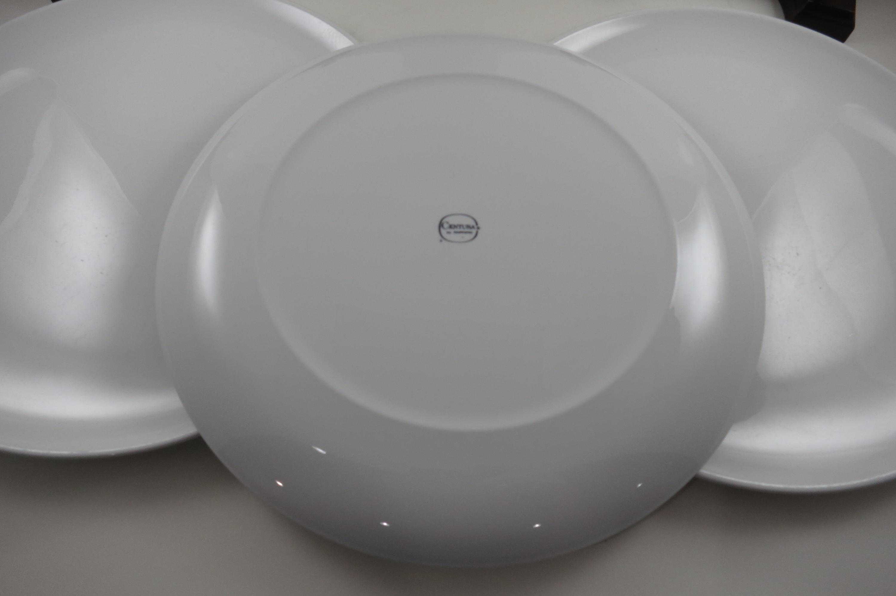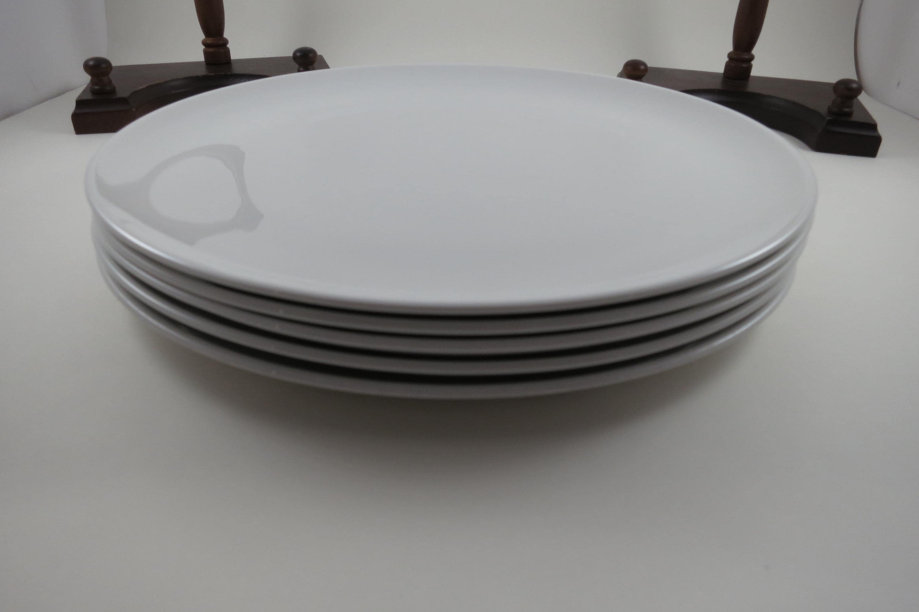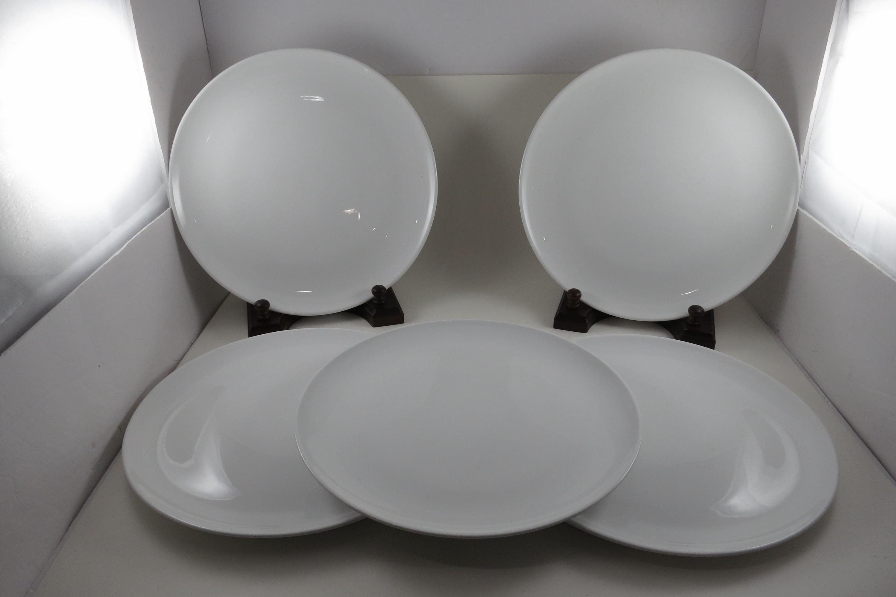 Set of Five Vintage Centura by Corning White Coupe 10 1/8 Inch Dinner Plates.