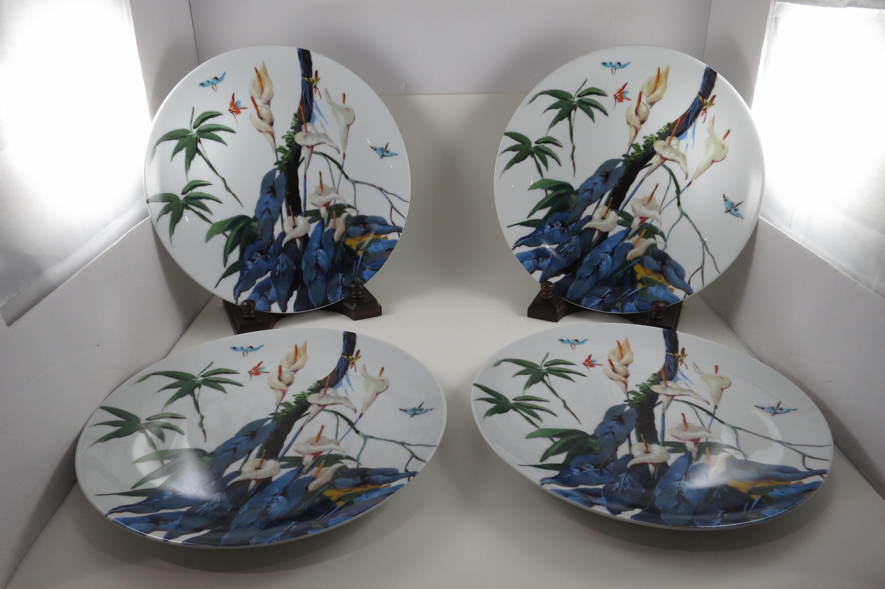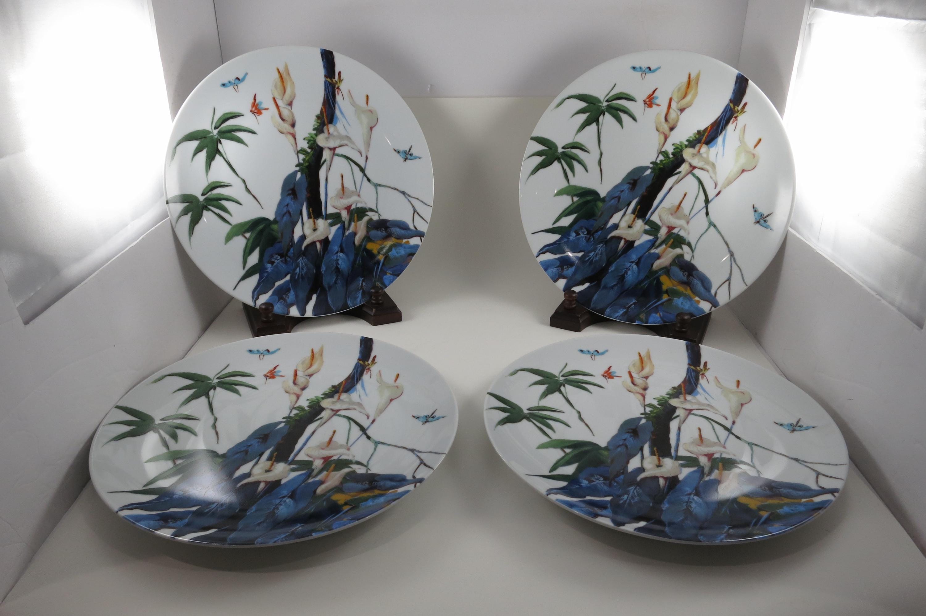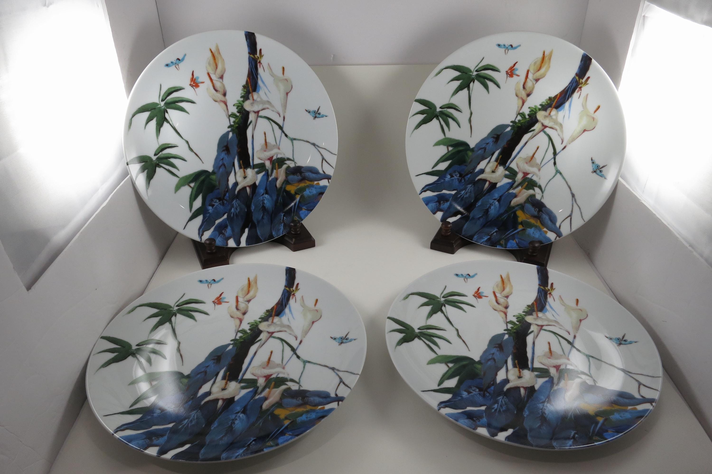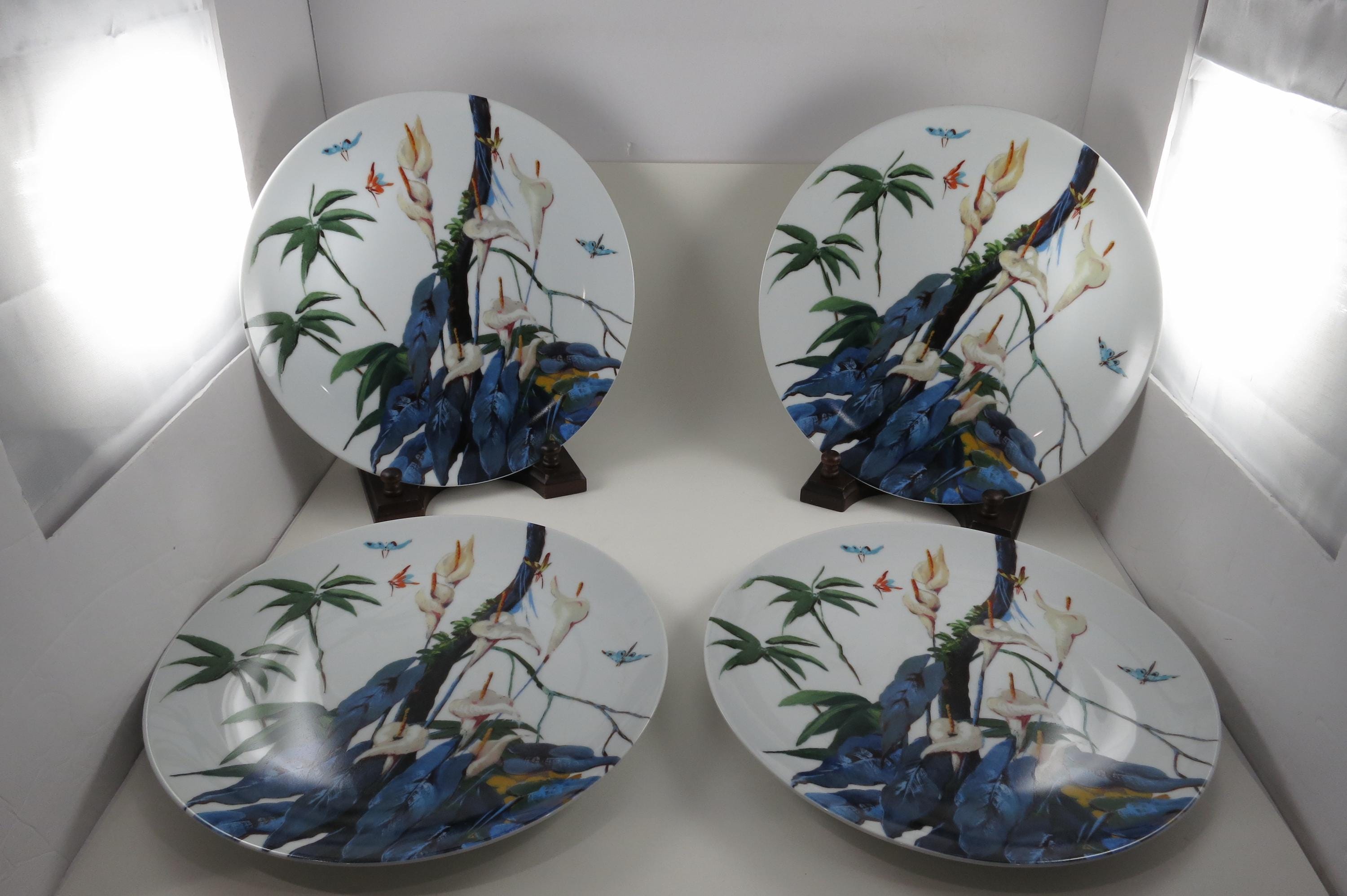 Set of 4 Williams Sonoma Pavao Calla Lilies 10 5/8 Inch Dinner Plates.