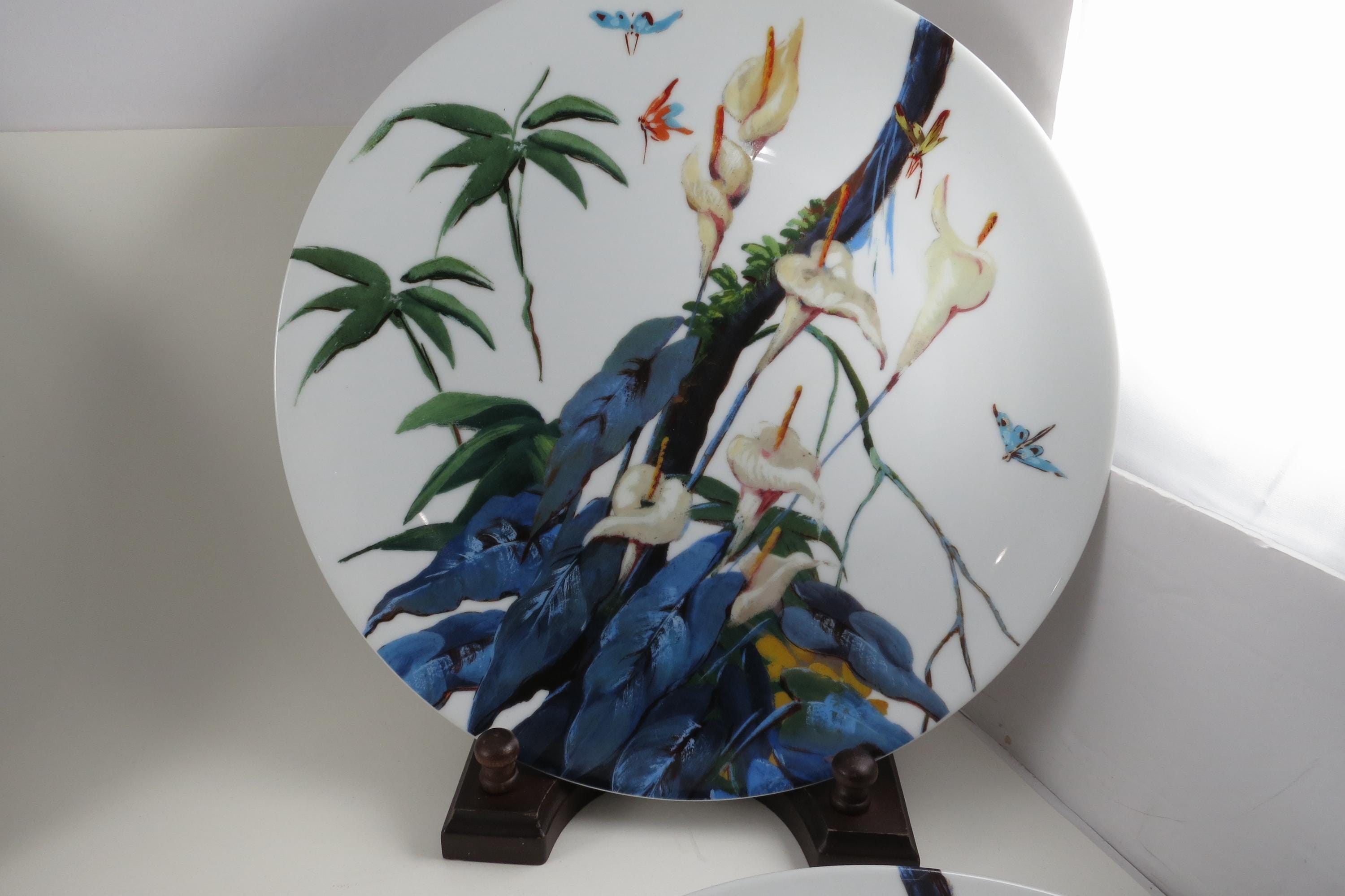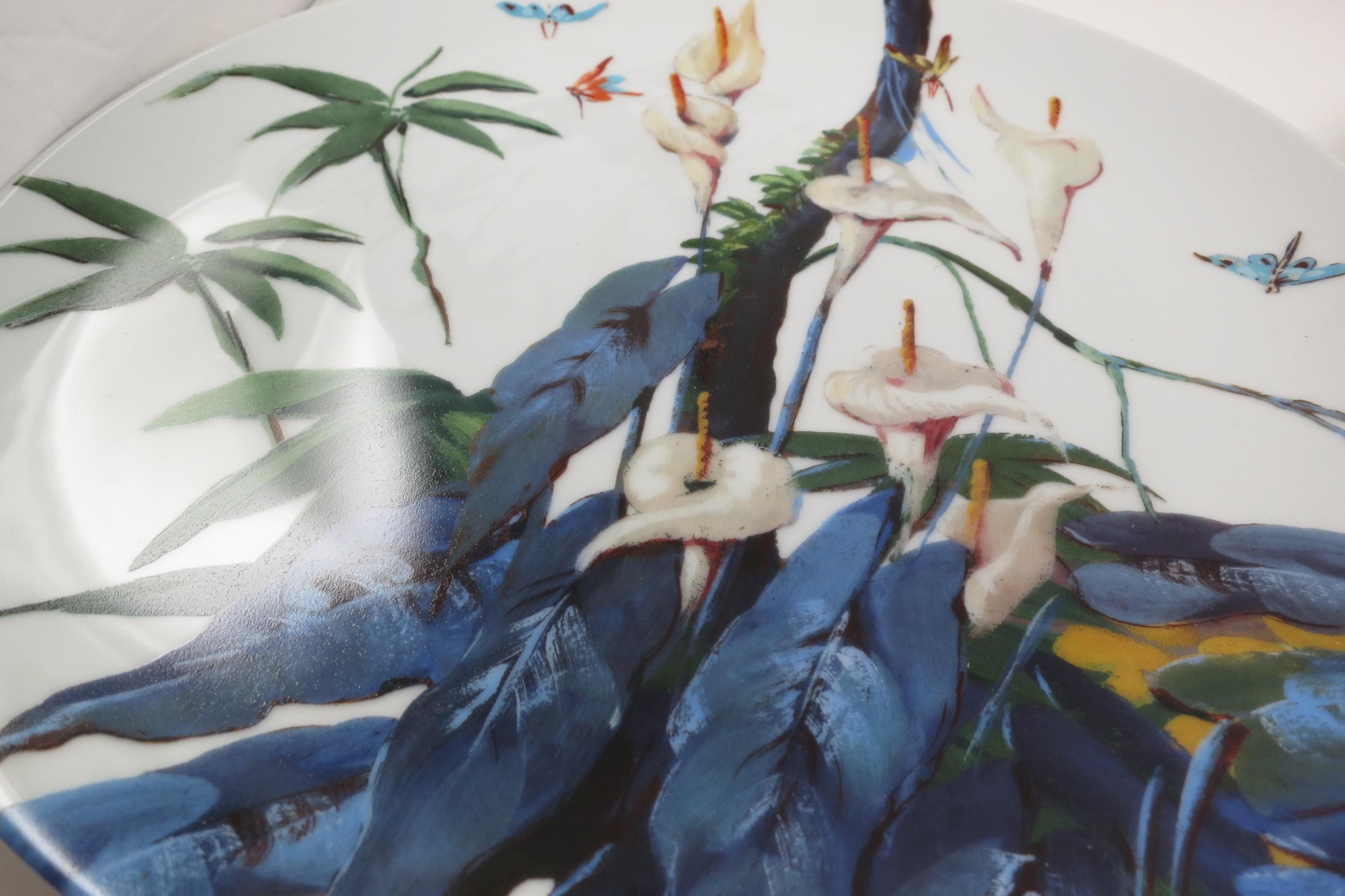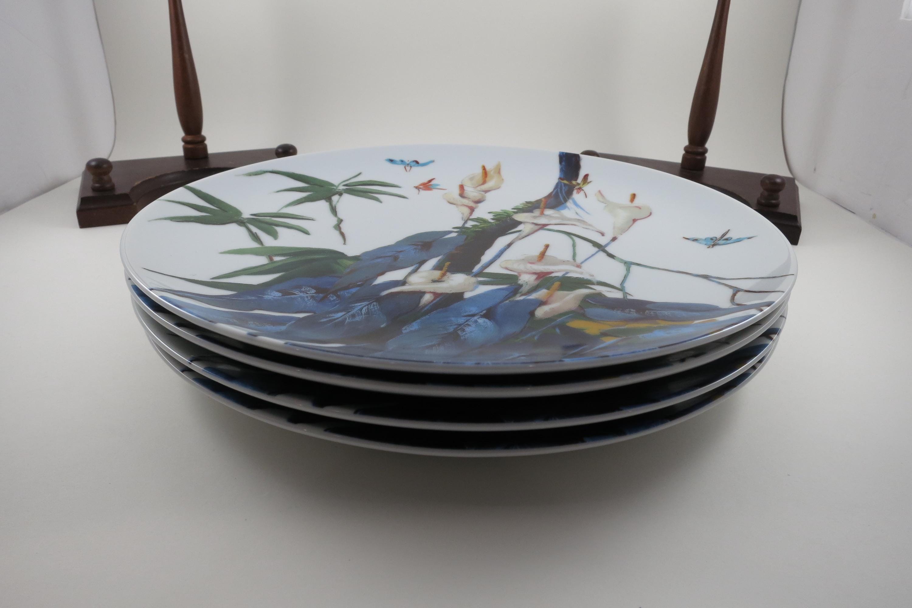 Set of 4 Williams Sonoma Pavao Calla Lilies 10 5/8 Inch Dinner Plates.